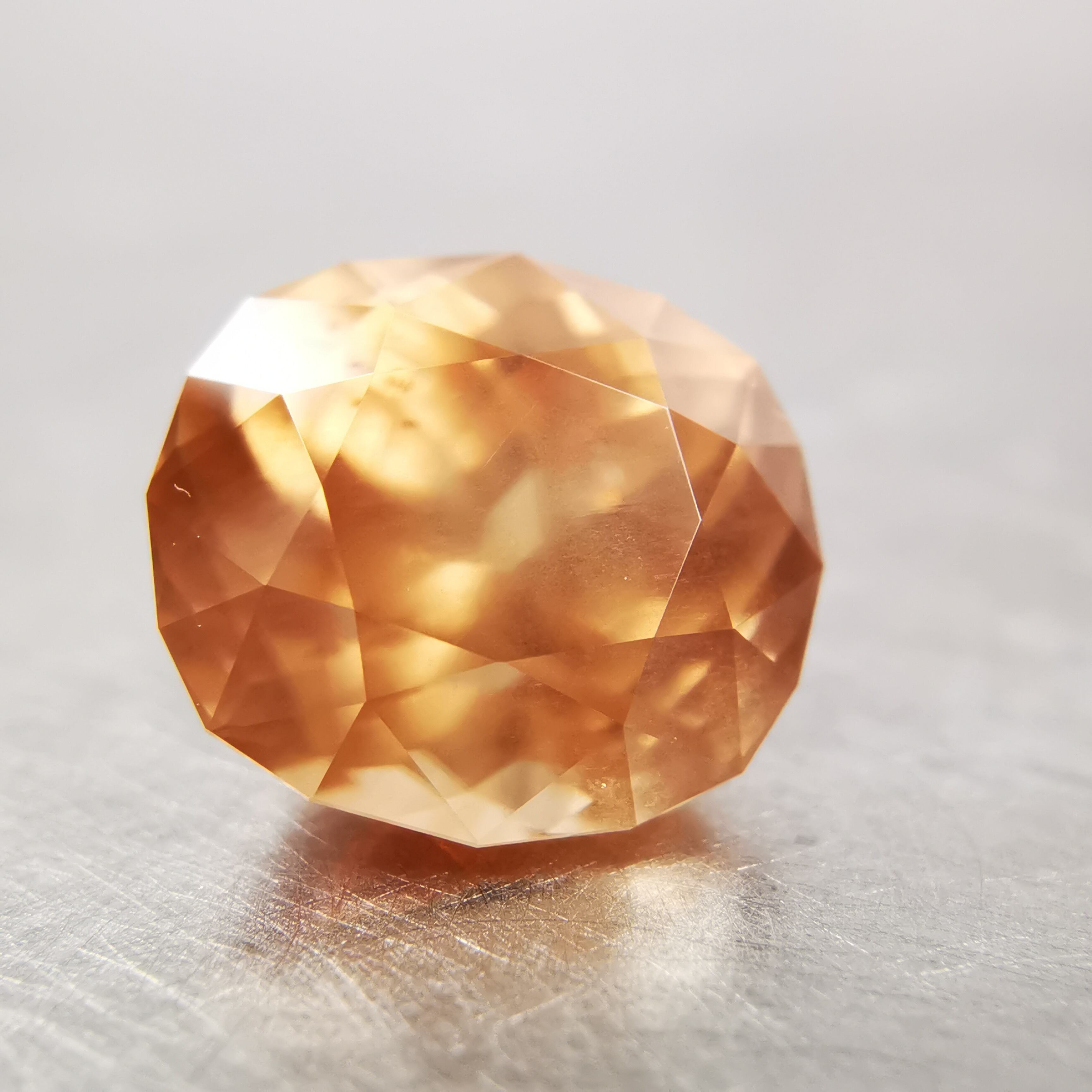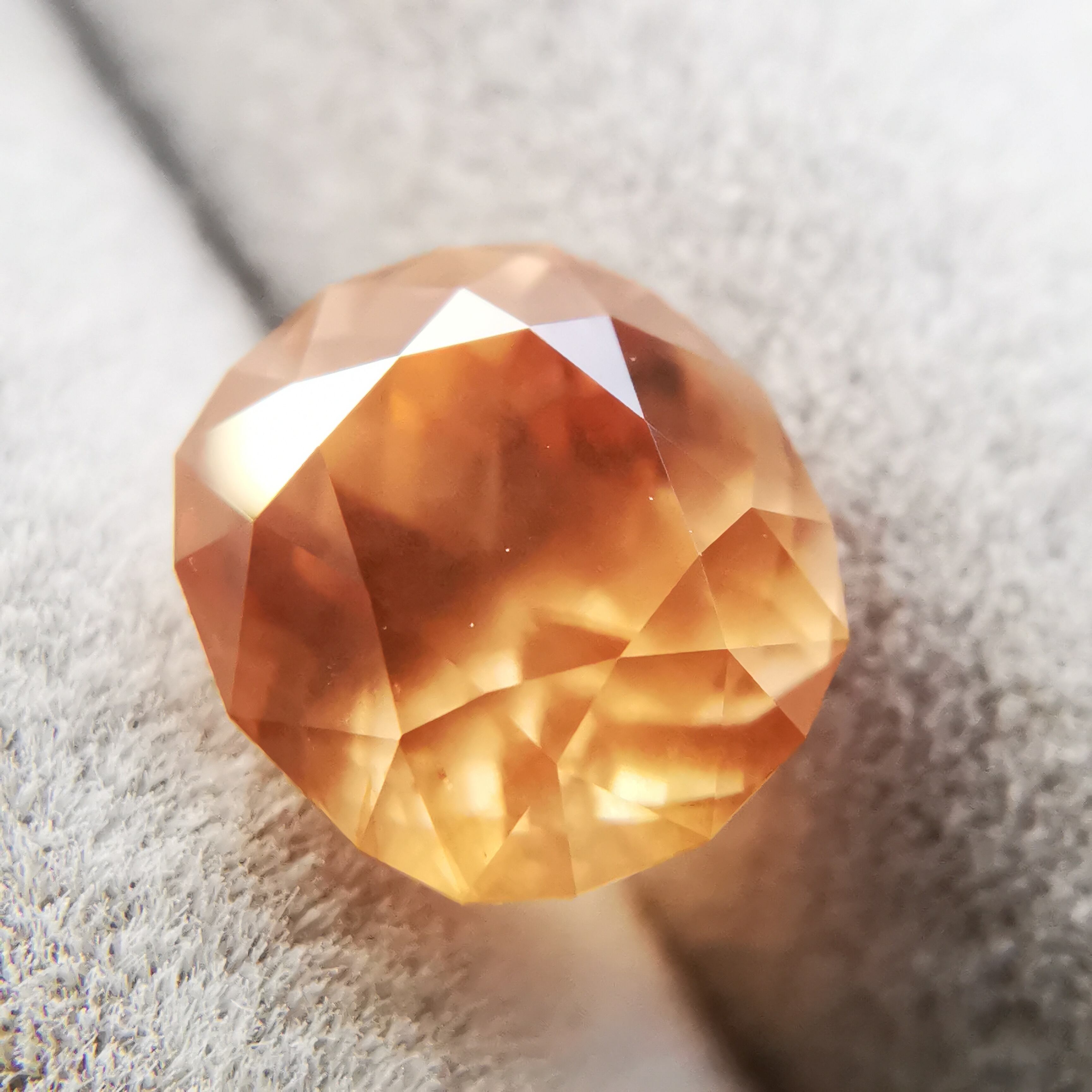 アプリコット色で全体にシルキーなため、ふわりと優しく輝くジルコンです。