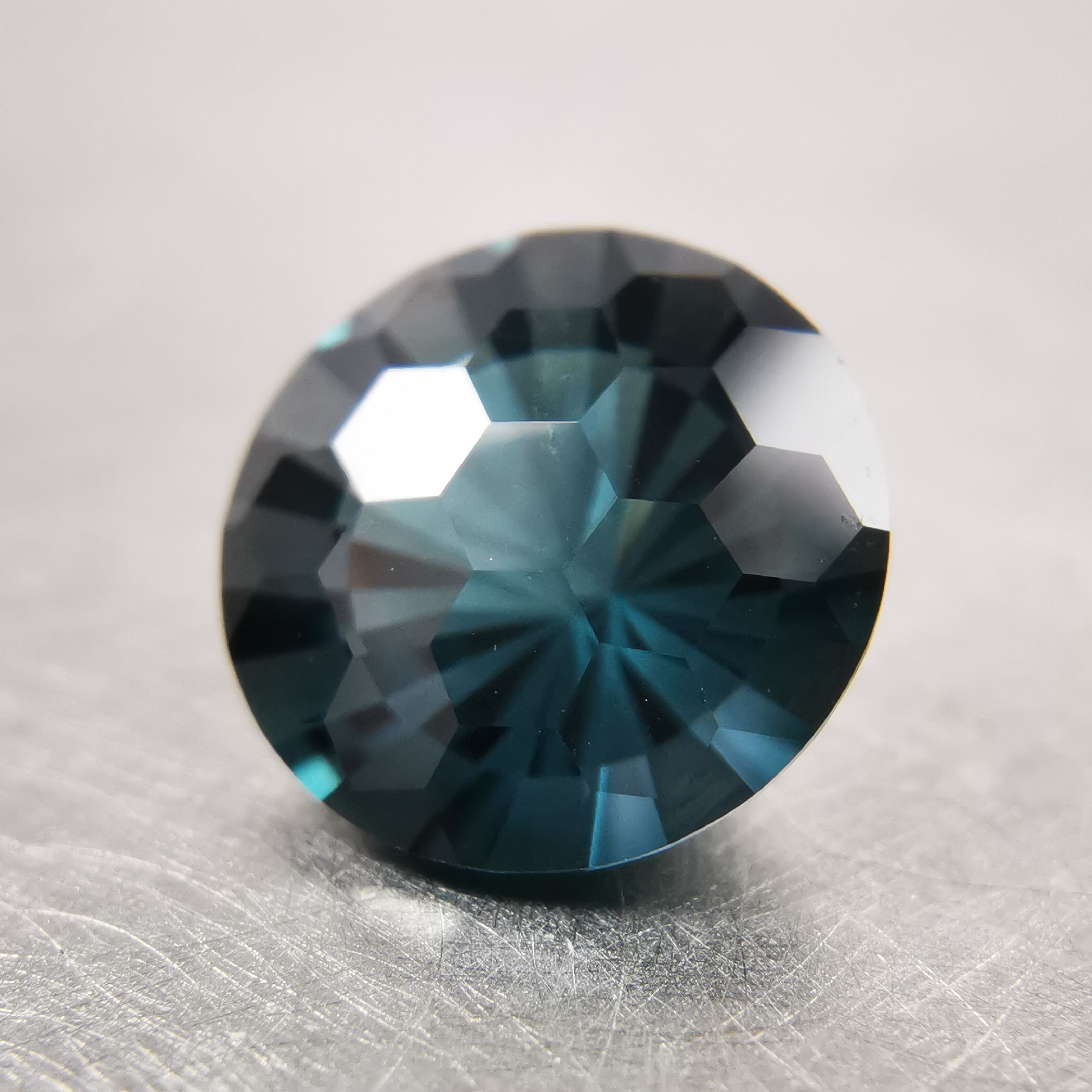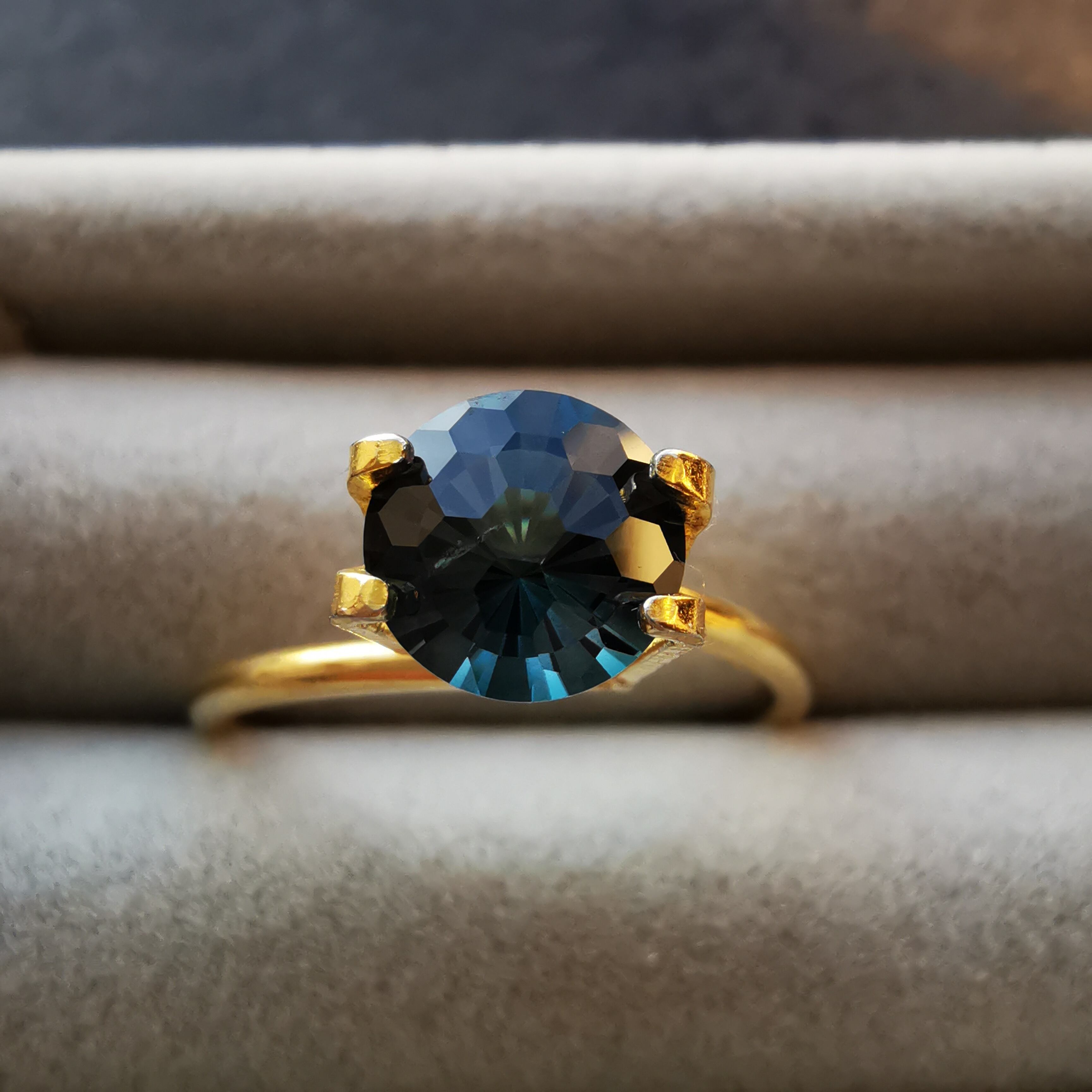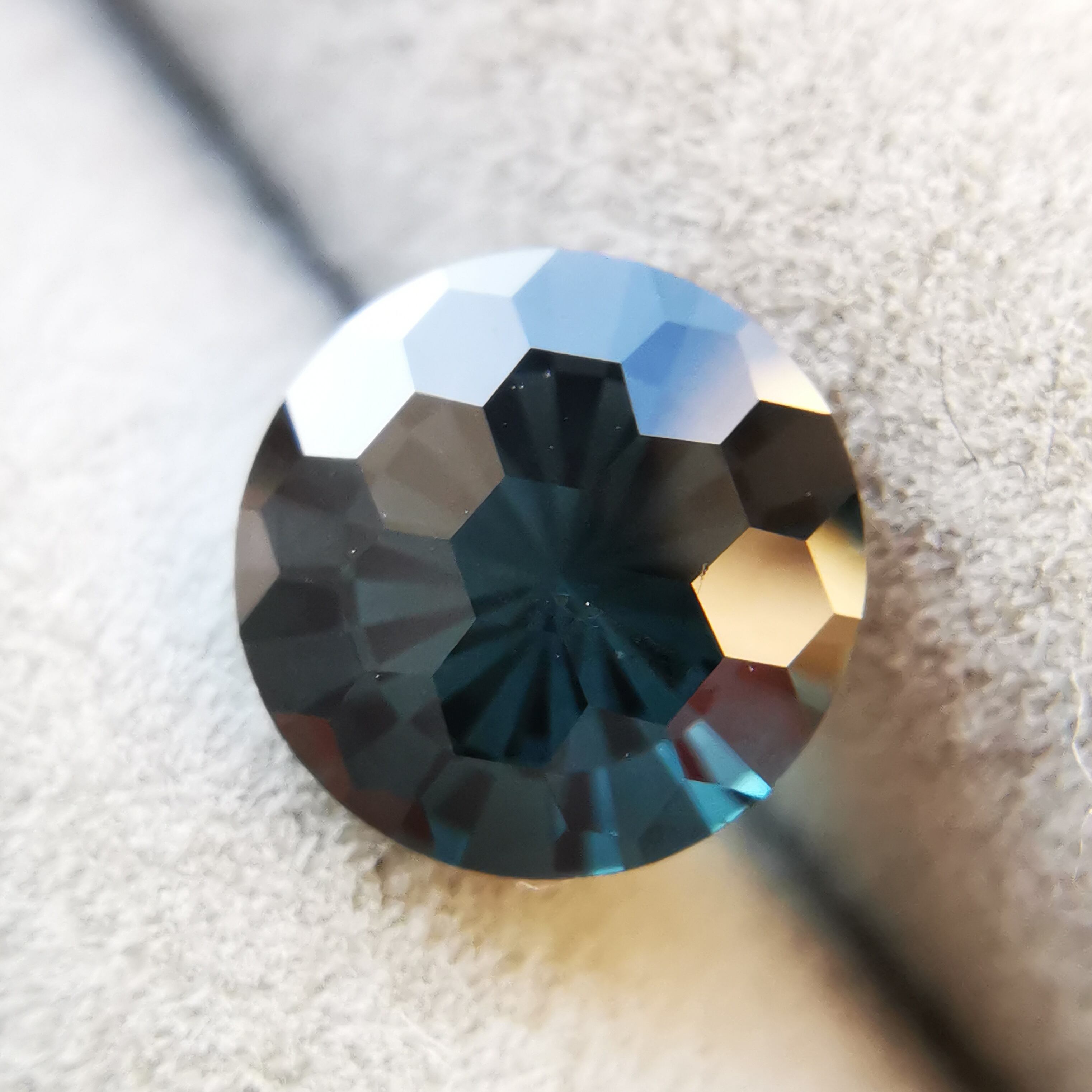 カットが引き立つようなダークトーンのスピネルで、ピーコックカラーのきらめきがチラチラと輝きます。