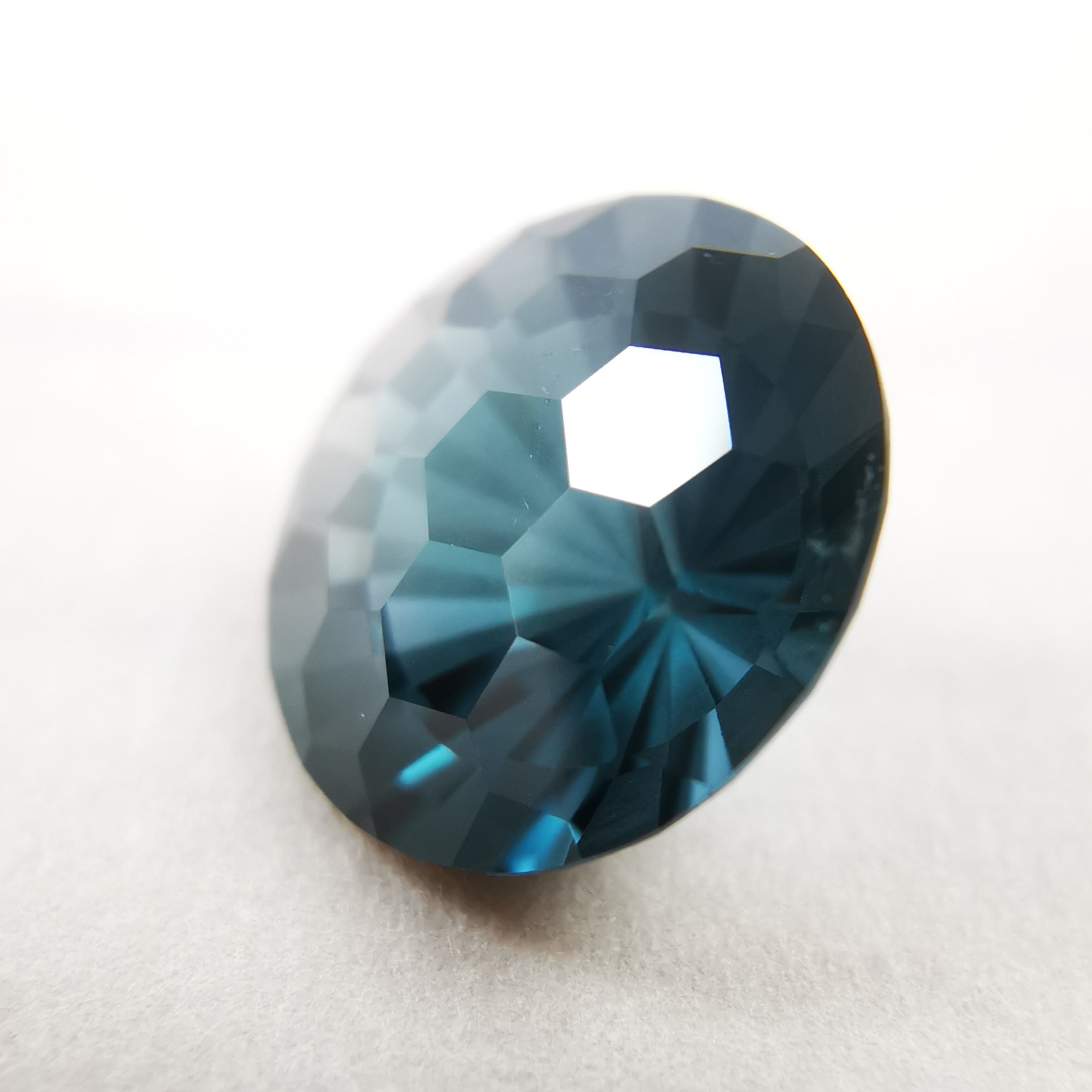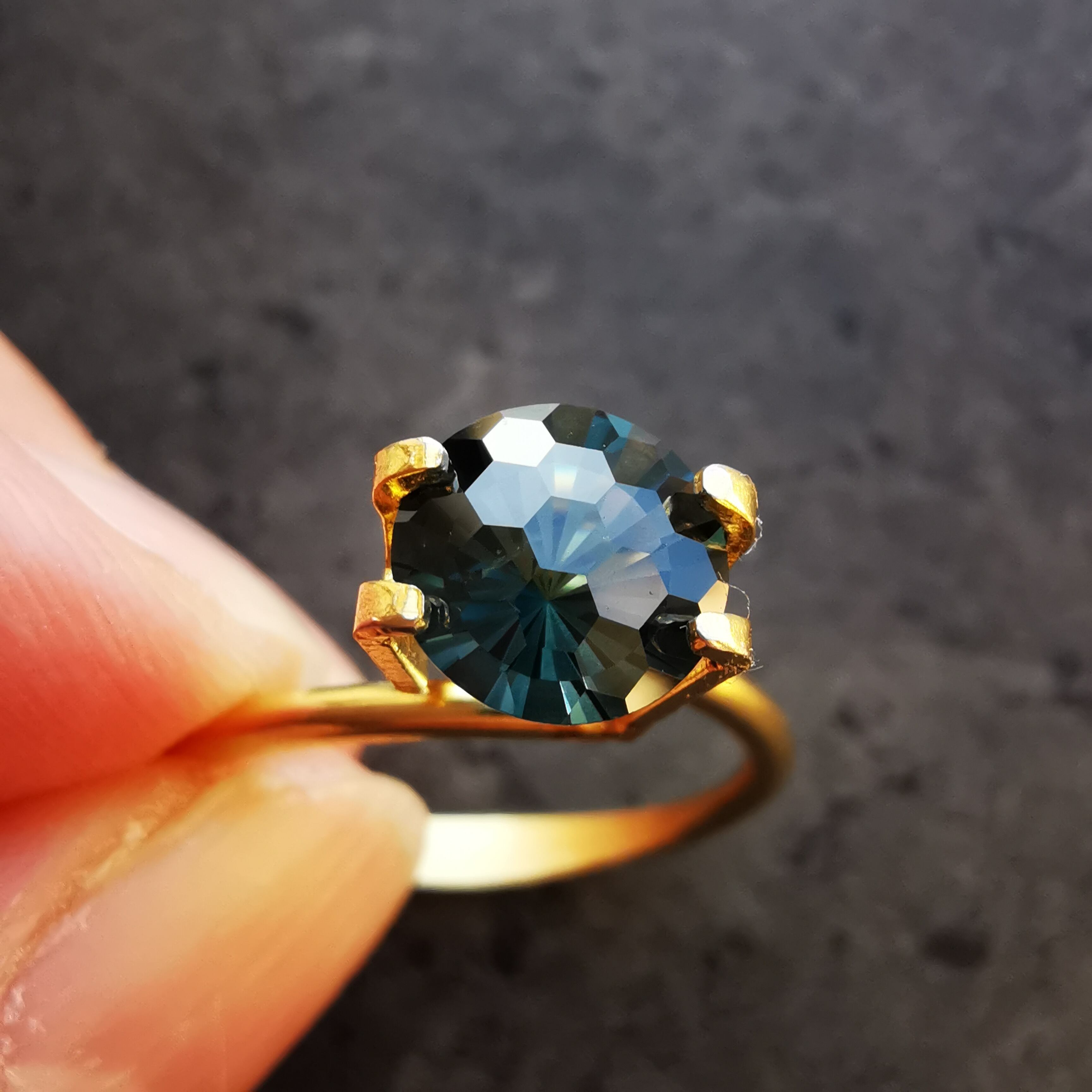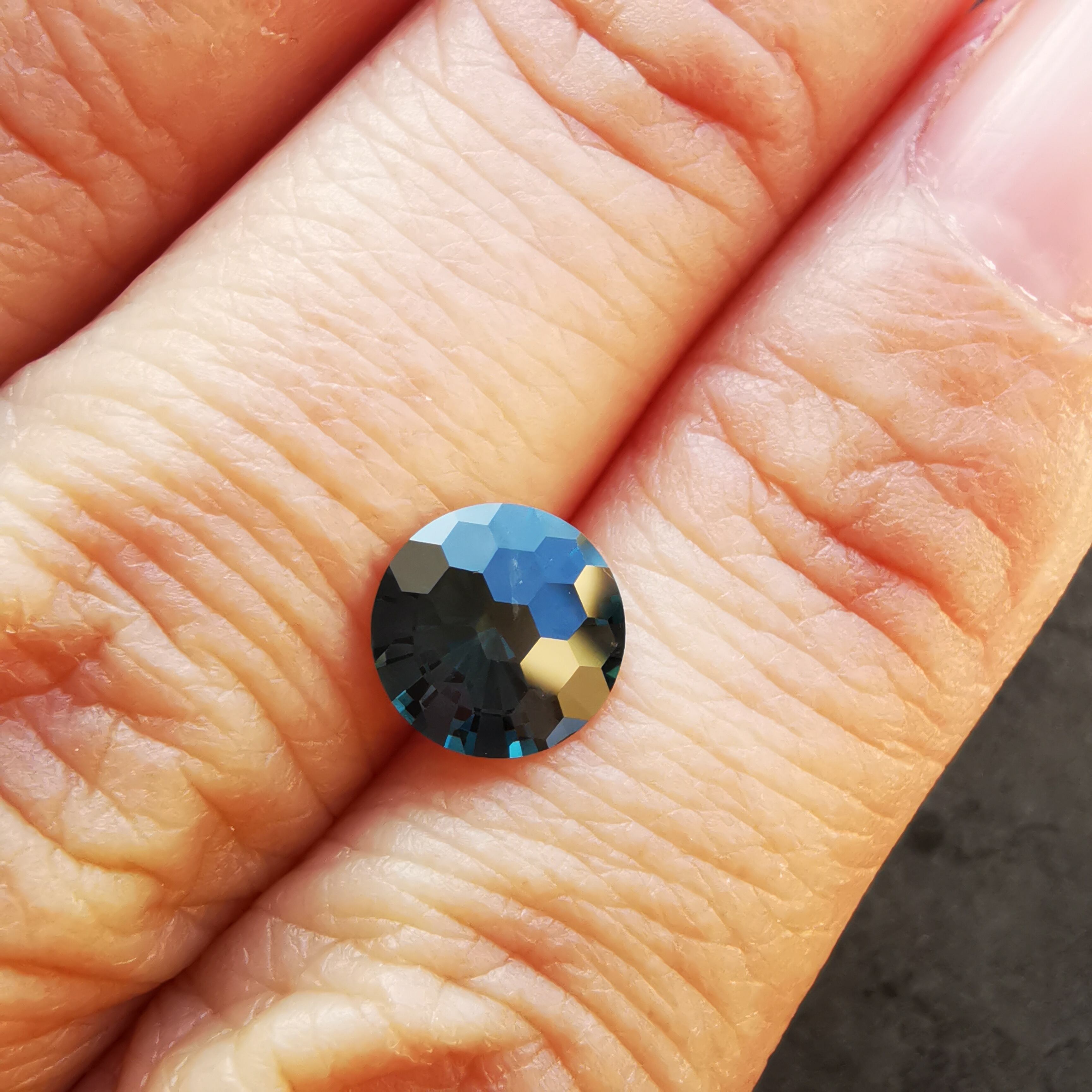 カットが引き立つようなダークトーンのスピネルで、ピーコックカラーのきらめきがチラチラと輝きます。