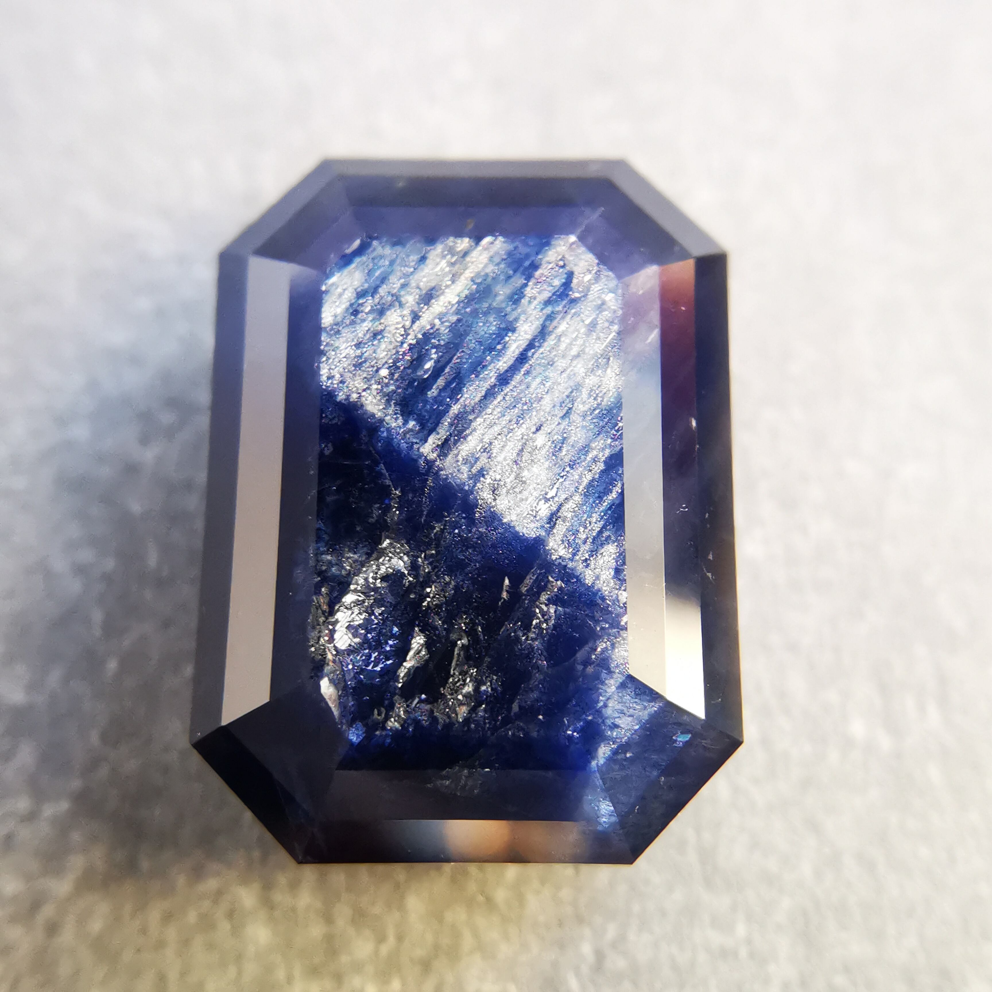 不透明な紺青色の表面を覆うように、シルバーのシラーがたっぷりと入った一石です。