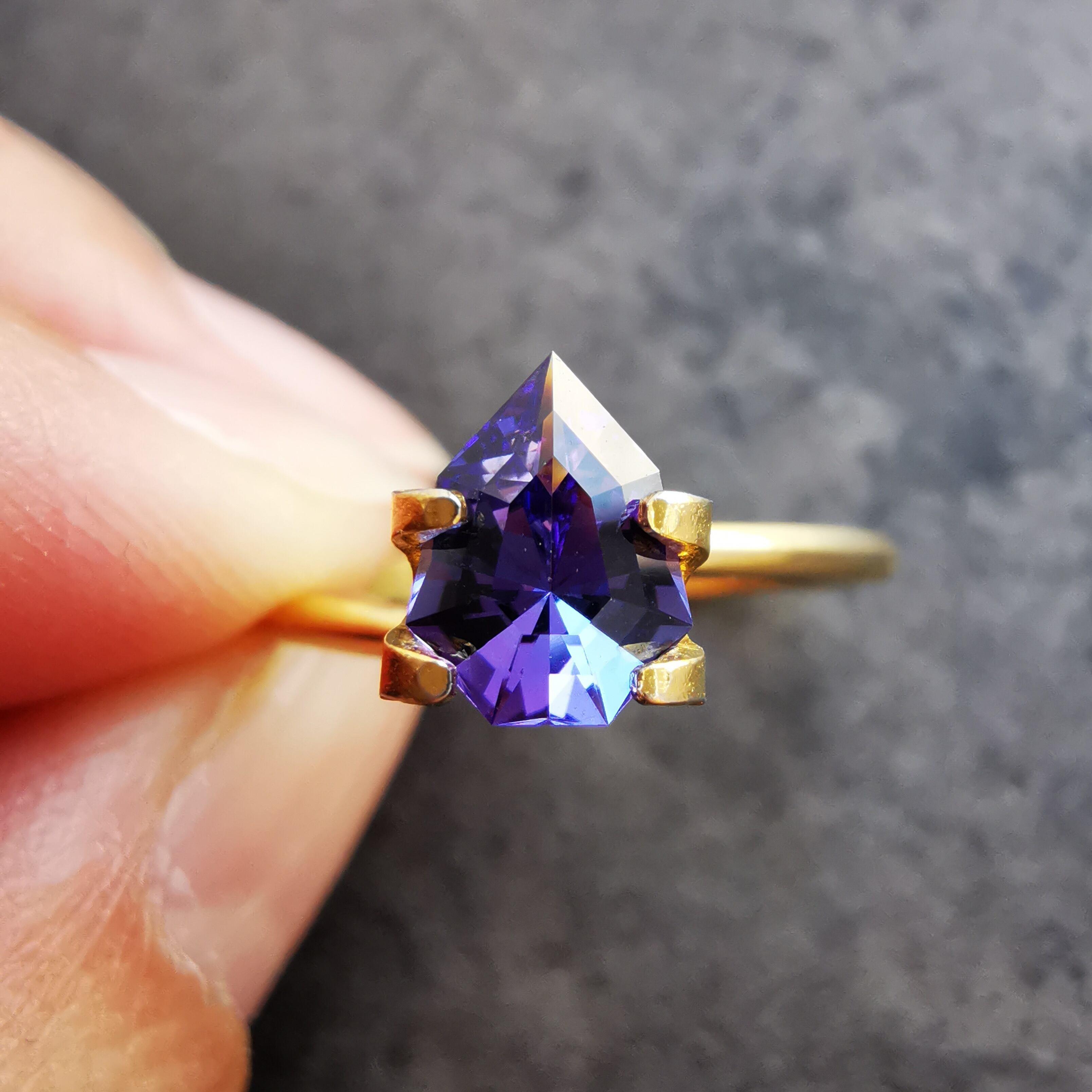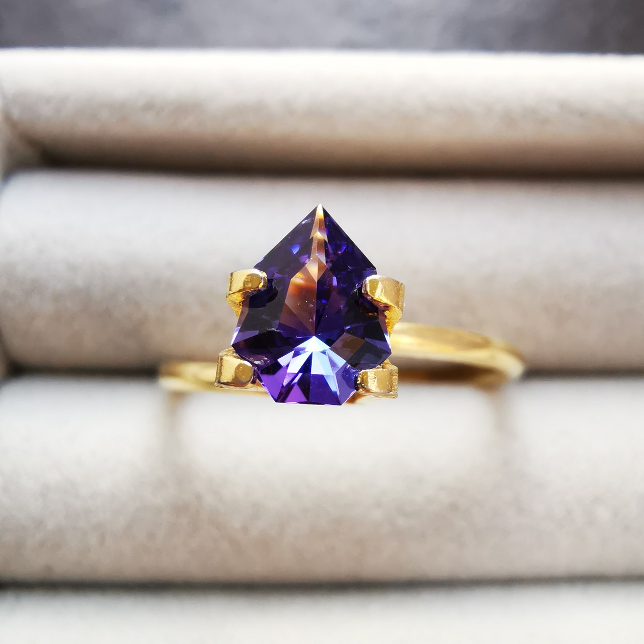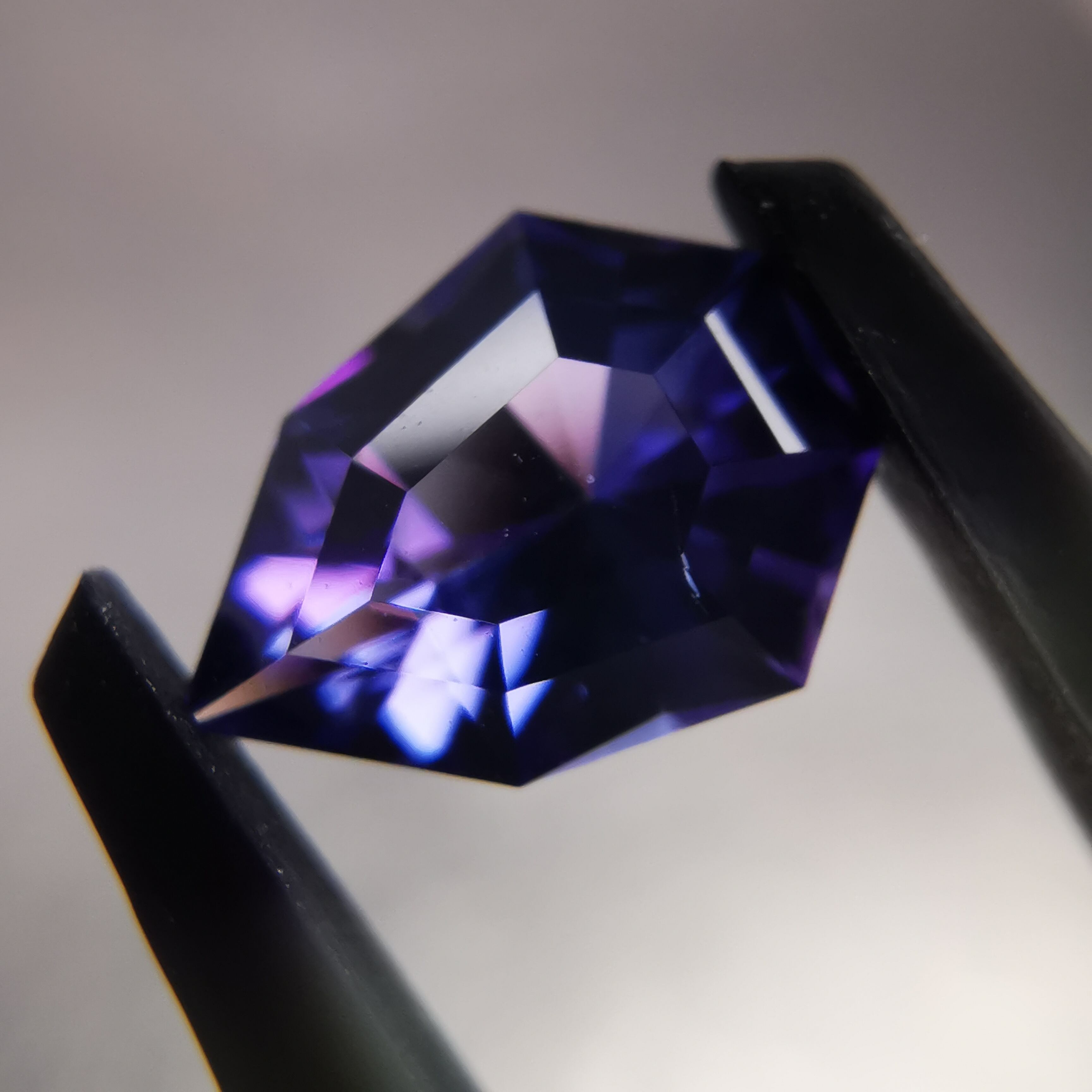 特濃な瑠璃色と妖艶なパープルカラーのタンザナイトです。