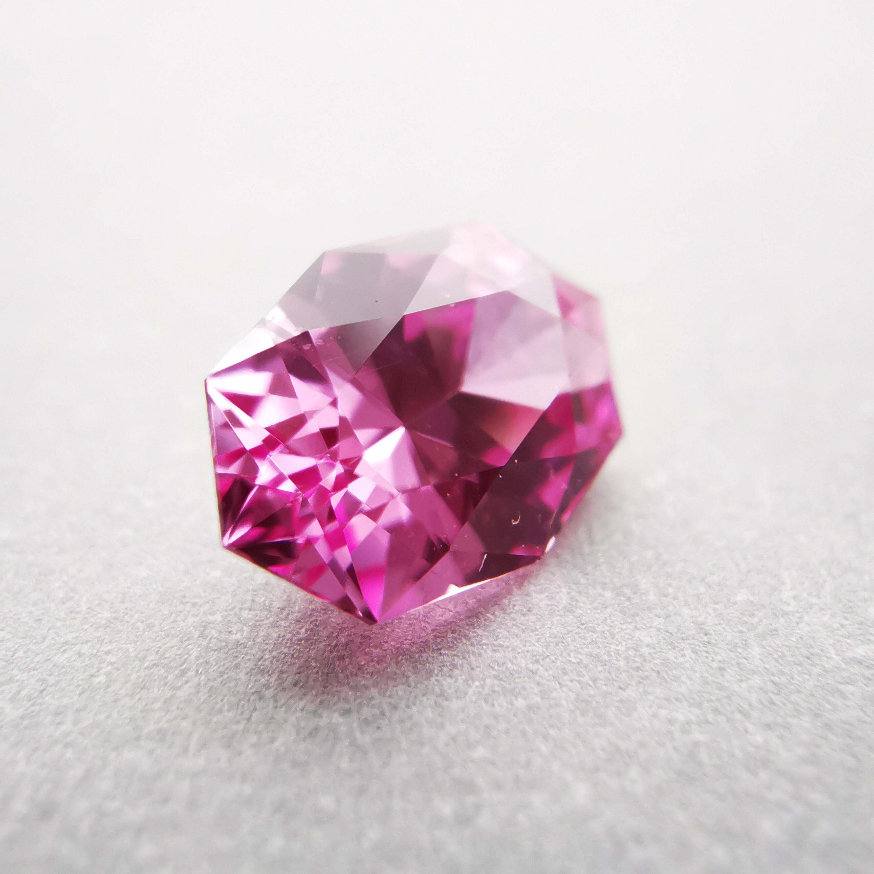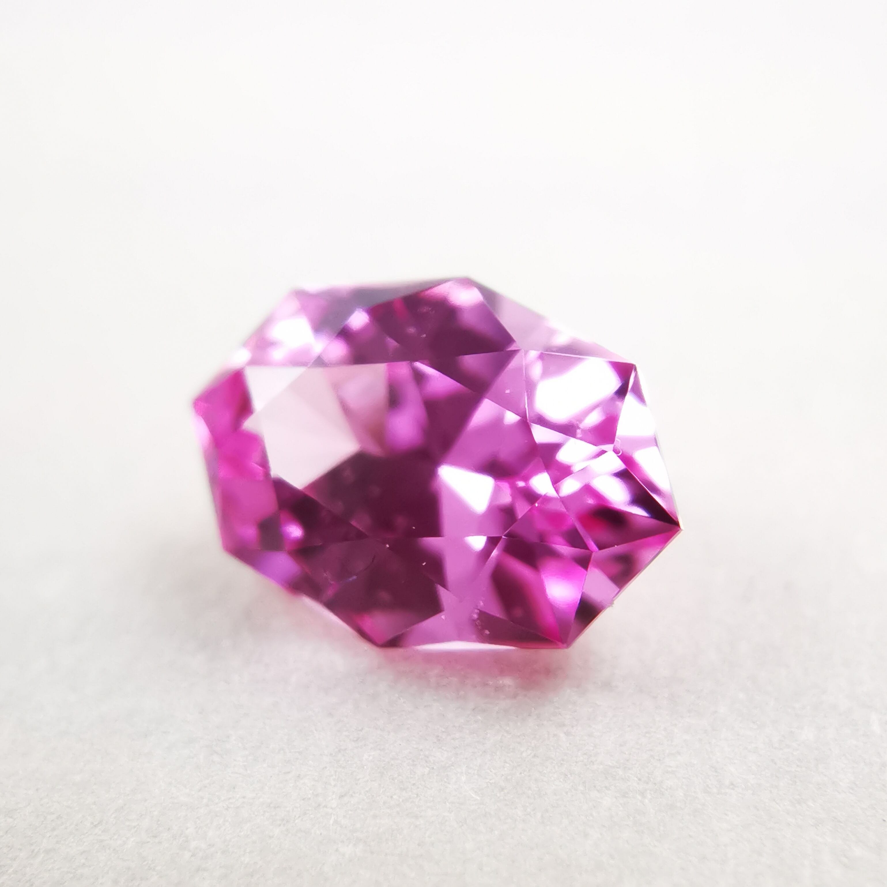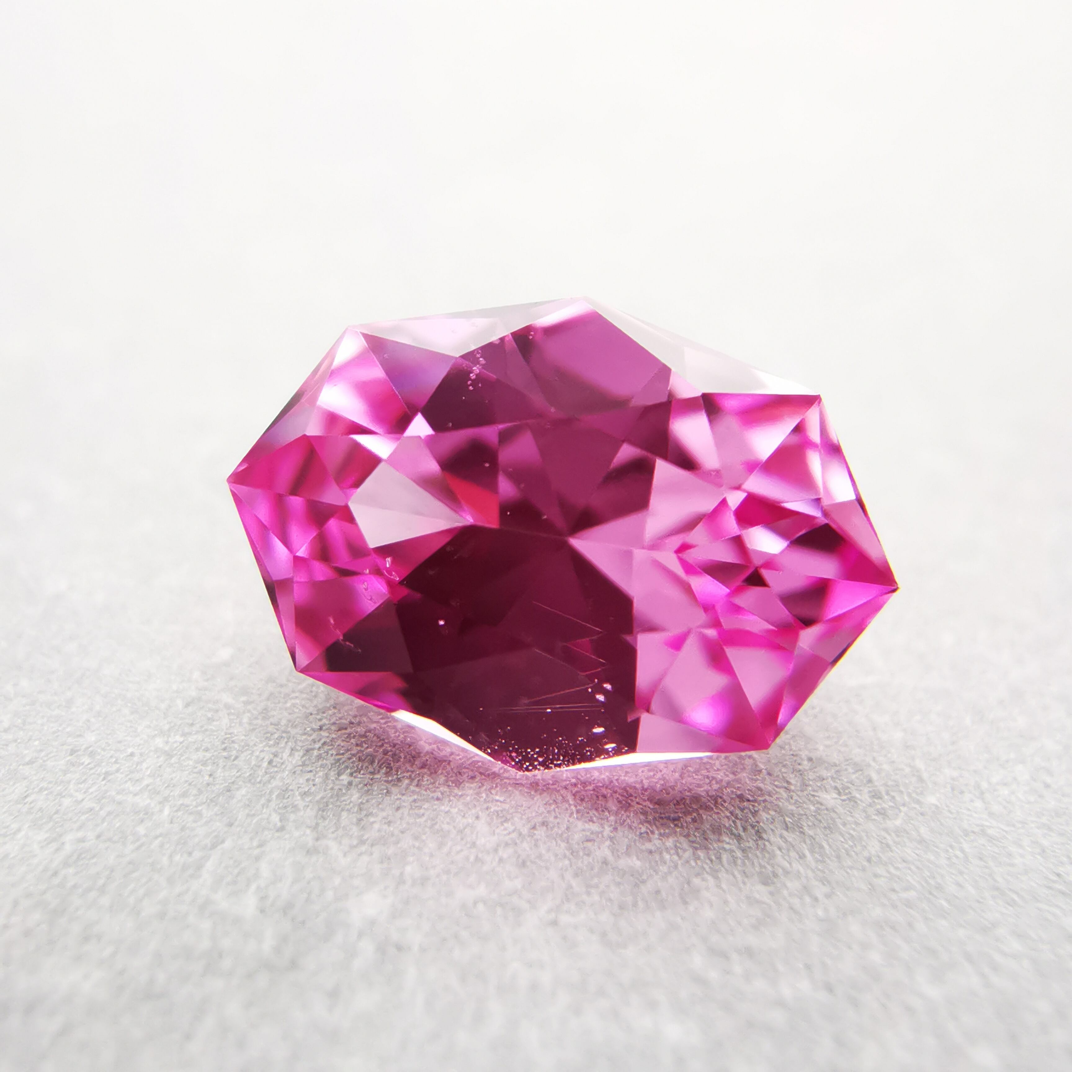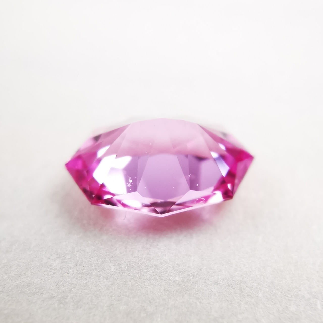 ぱっと明るいビビットピンク、内側からさらにビビットなピンクがきらめきくサファイアです。