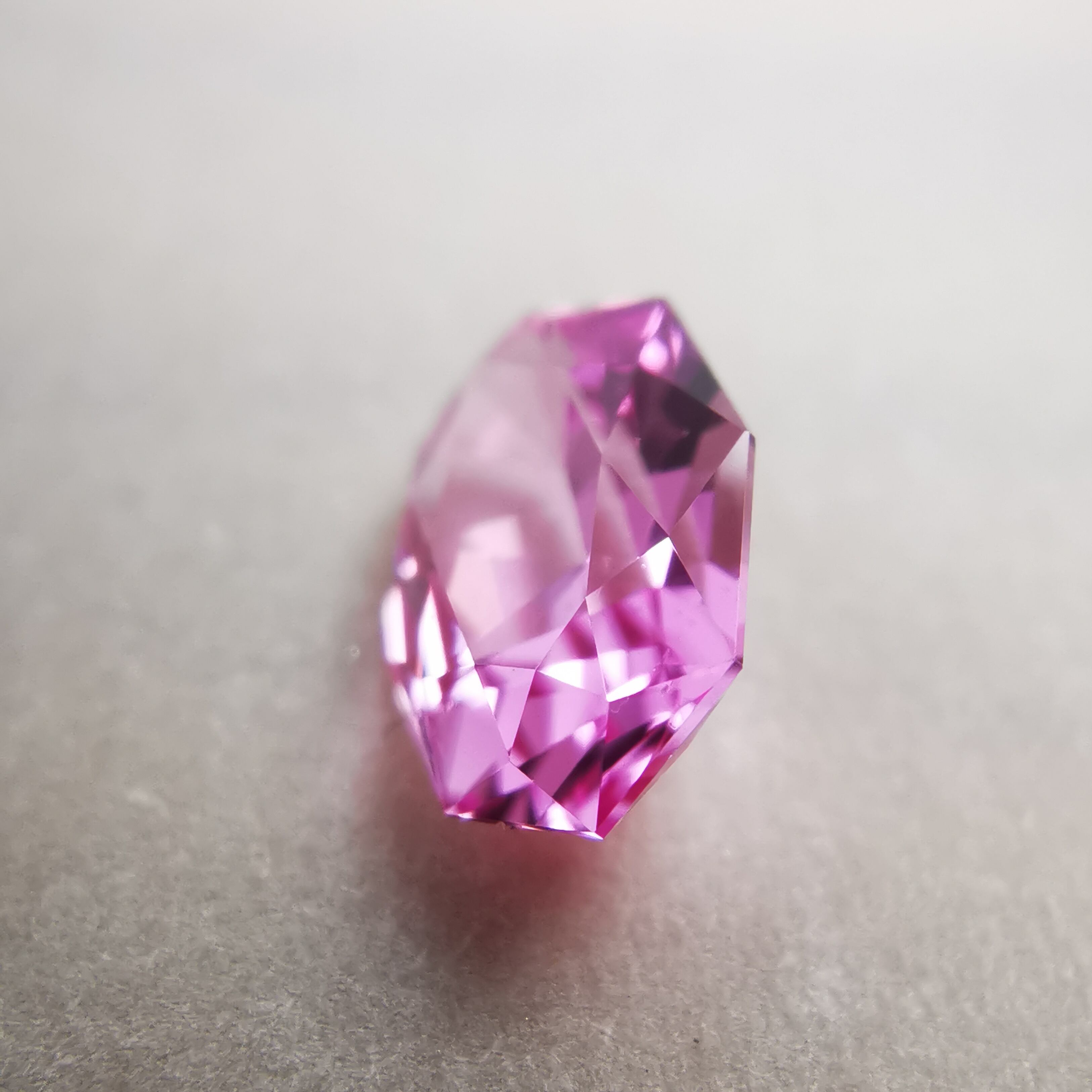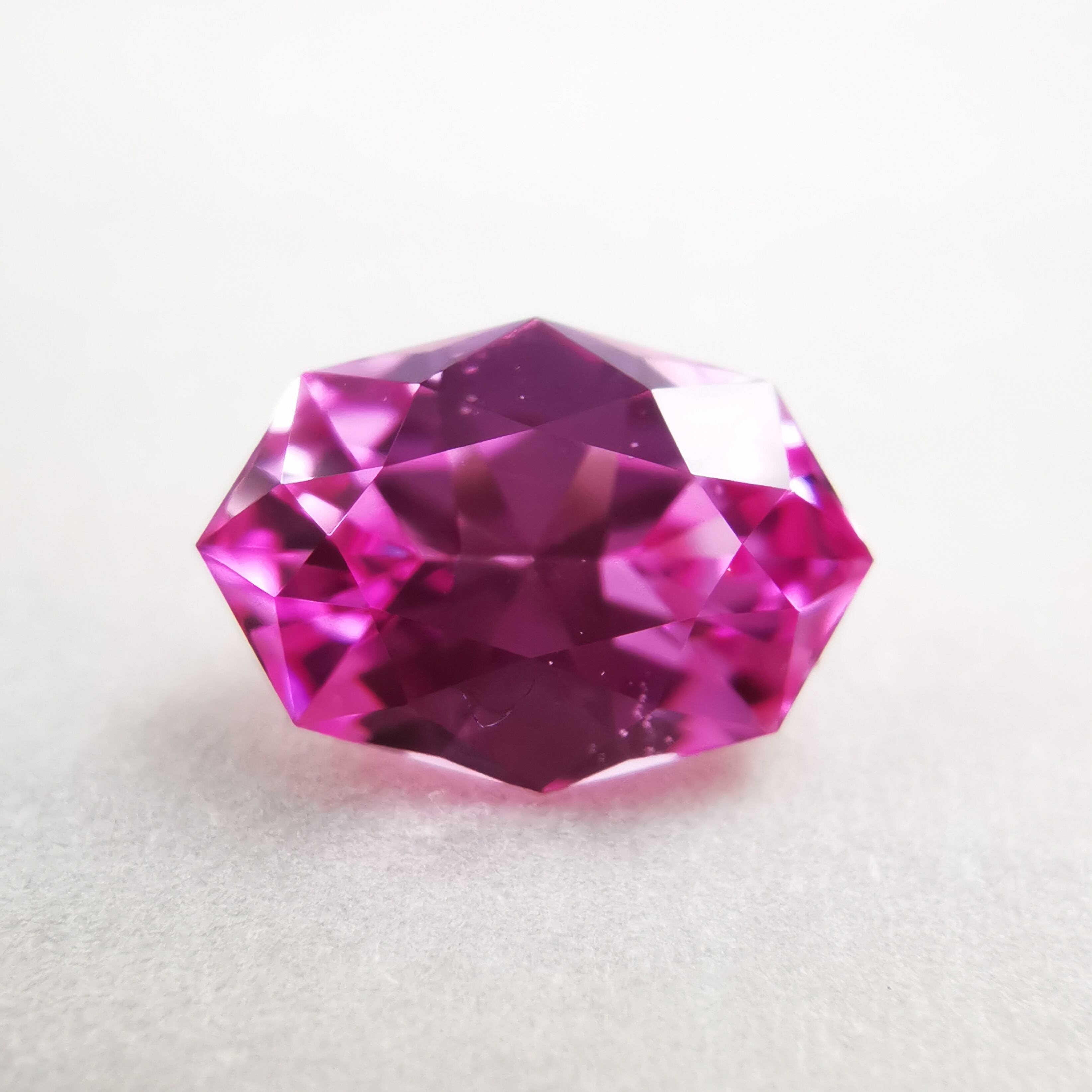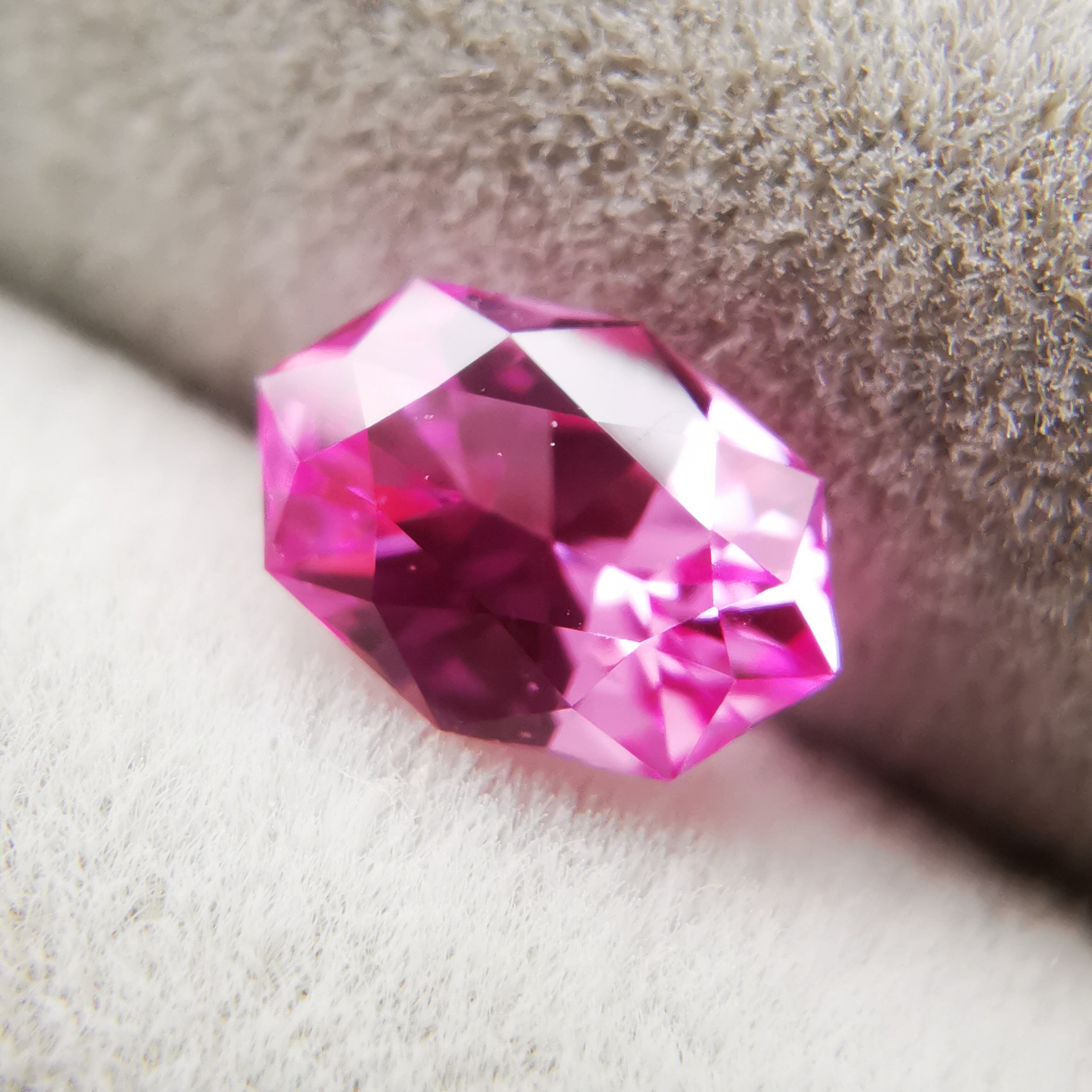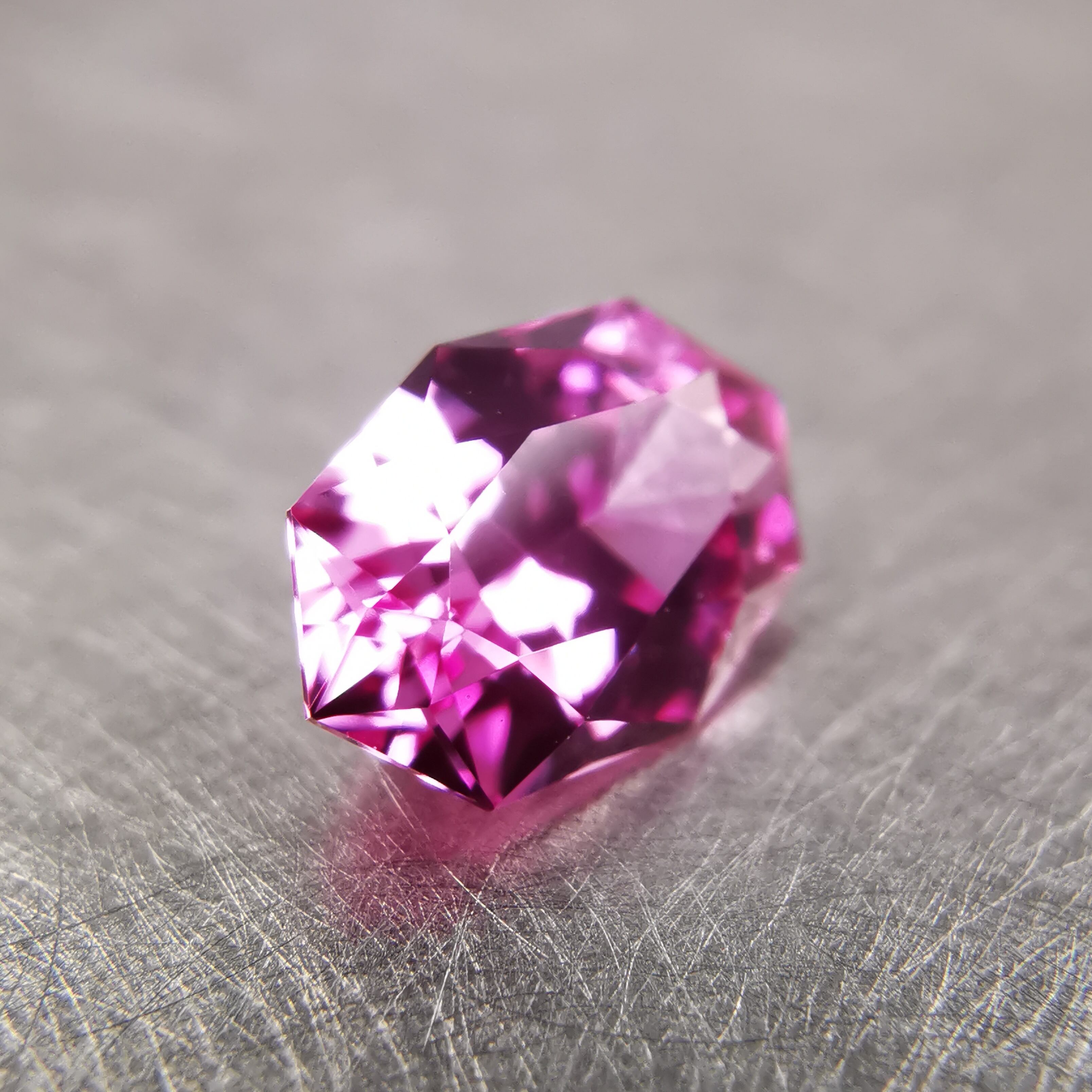 ぱっと明るいビビットピンク、内側からさらにビビットなピンクがきらめきくサファイアです。
