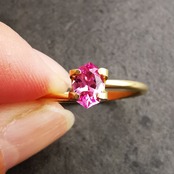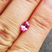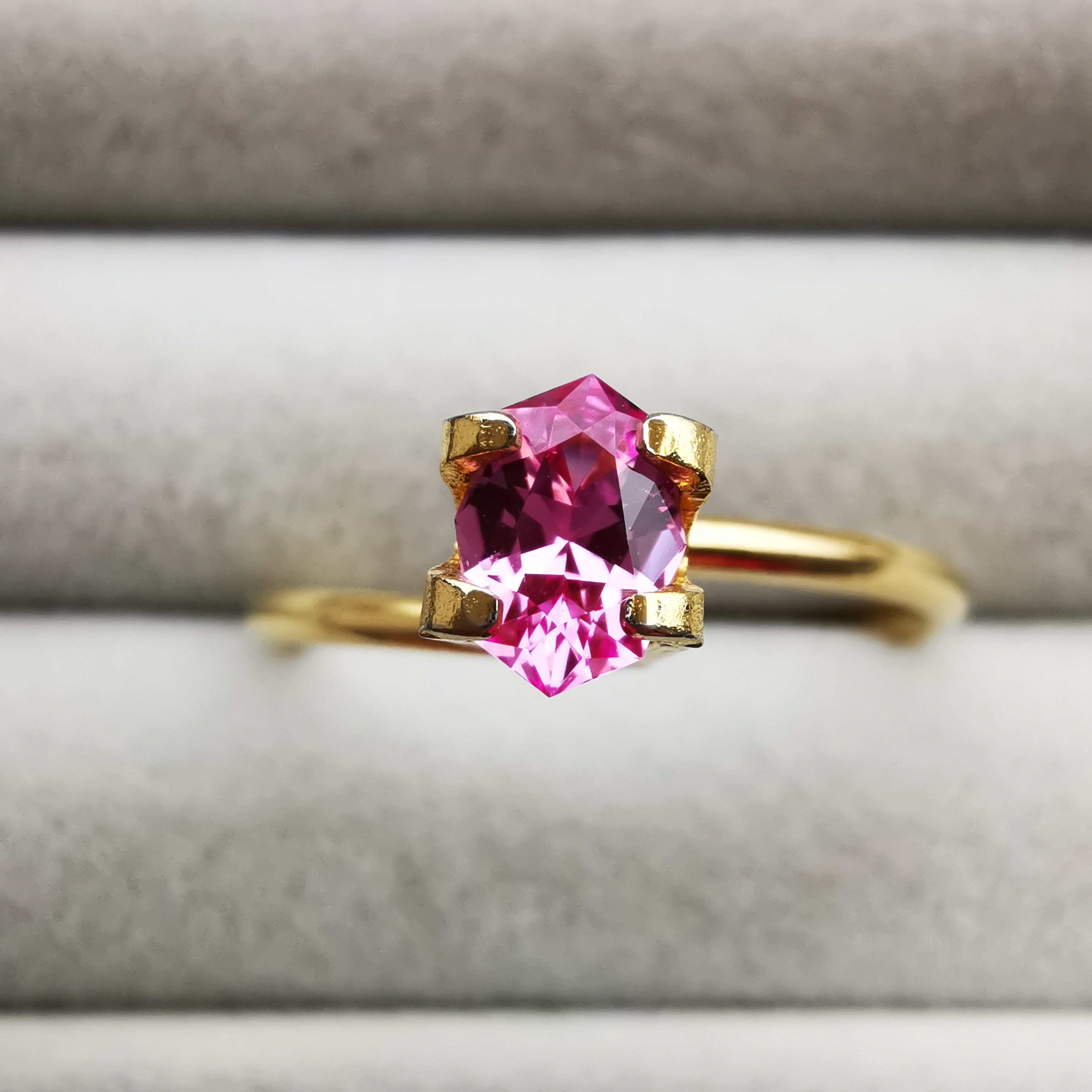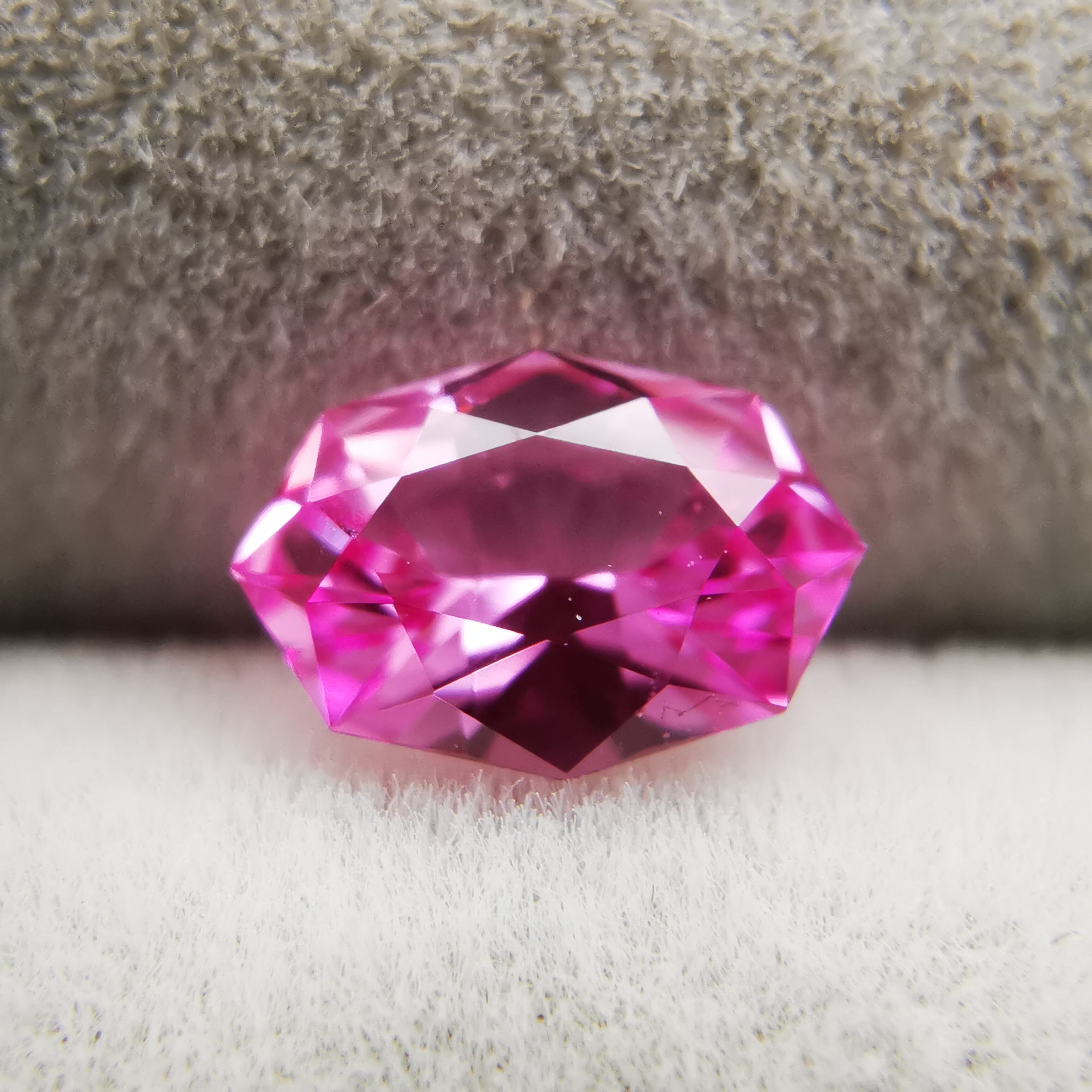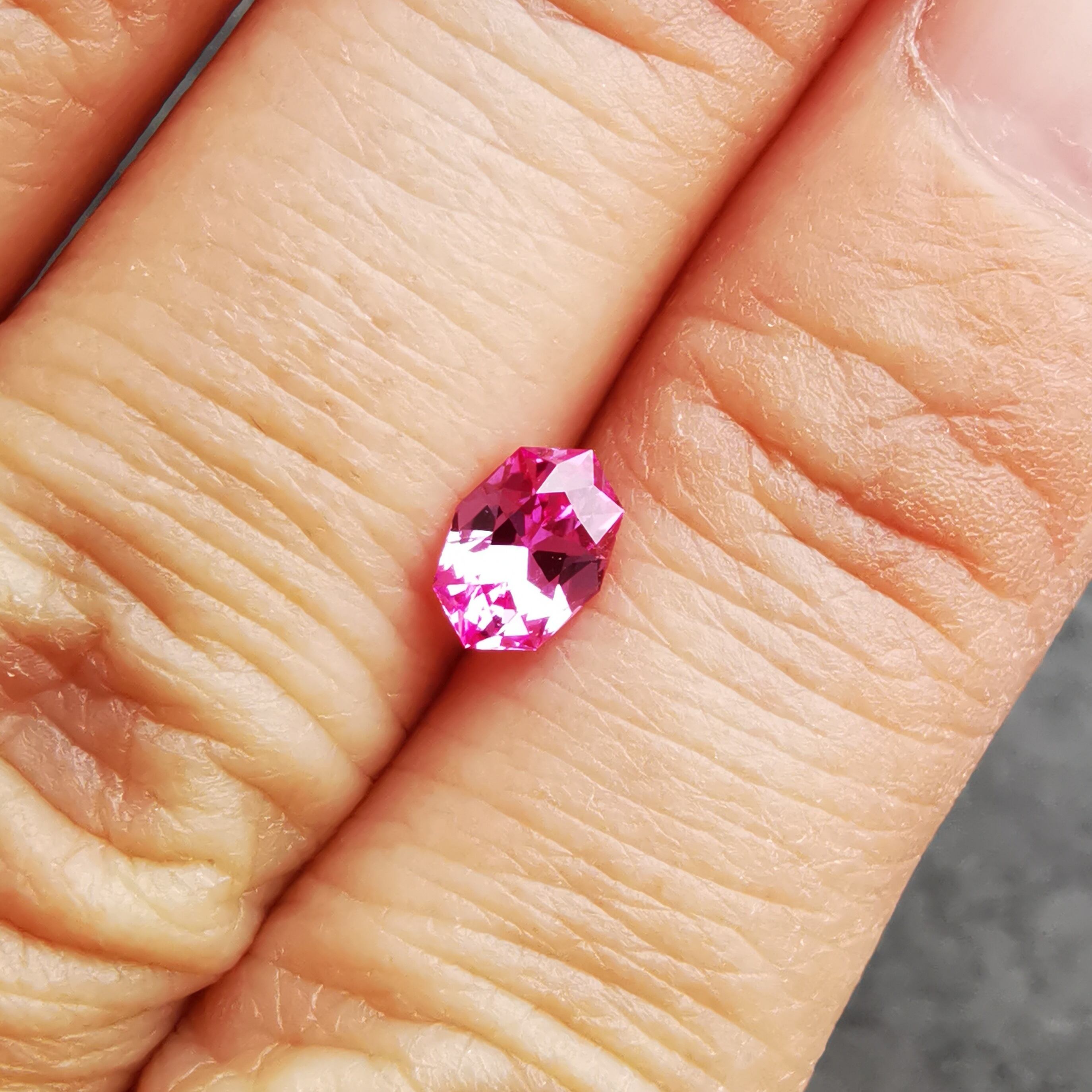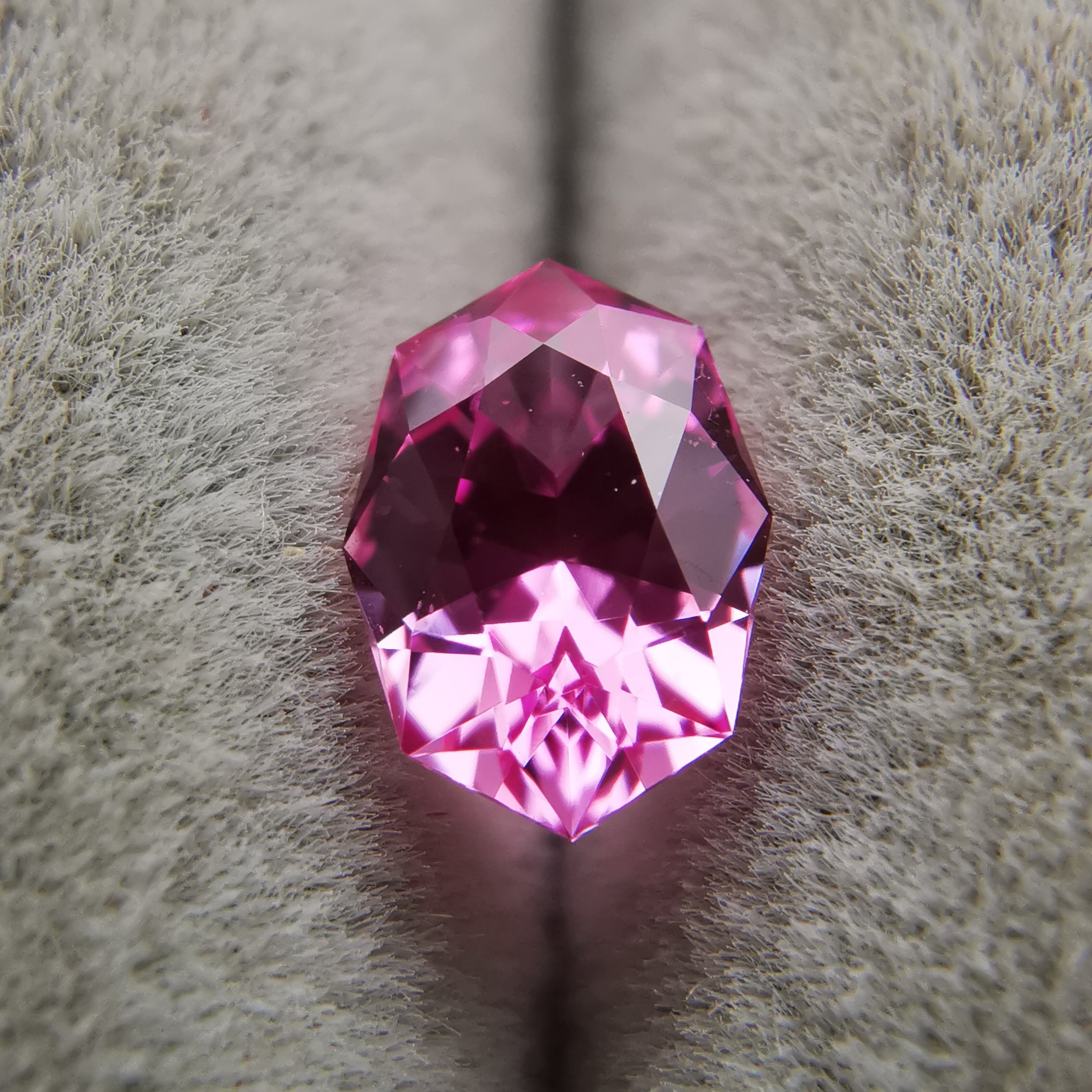 ぱっと明るいビビットピンク、内側からさらにビビットなピンクがきらめきくサファイアです。