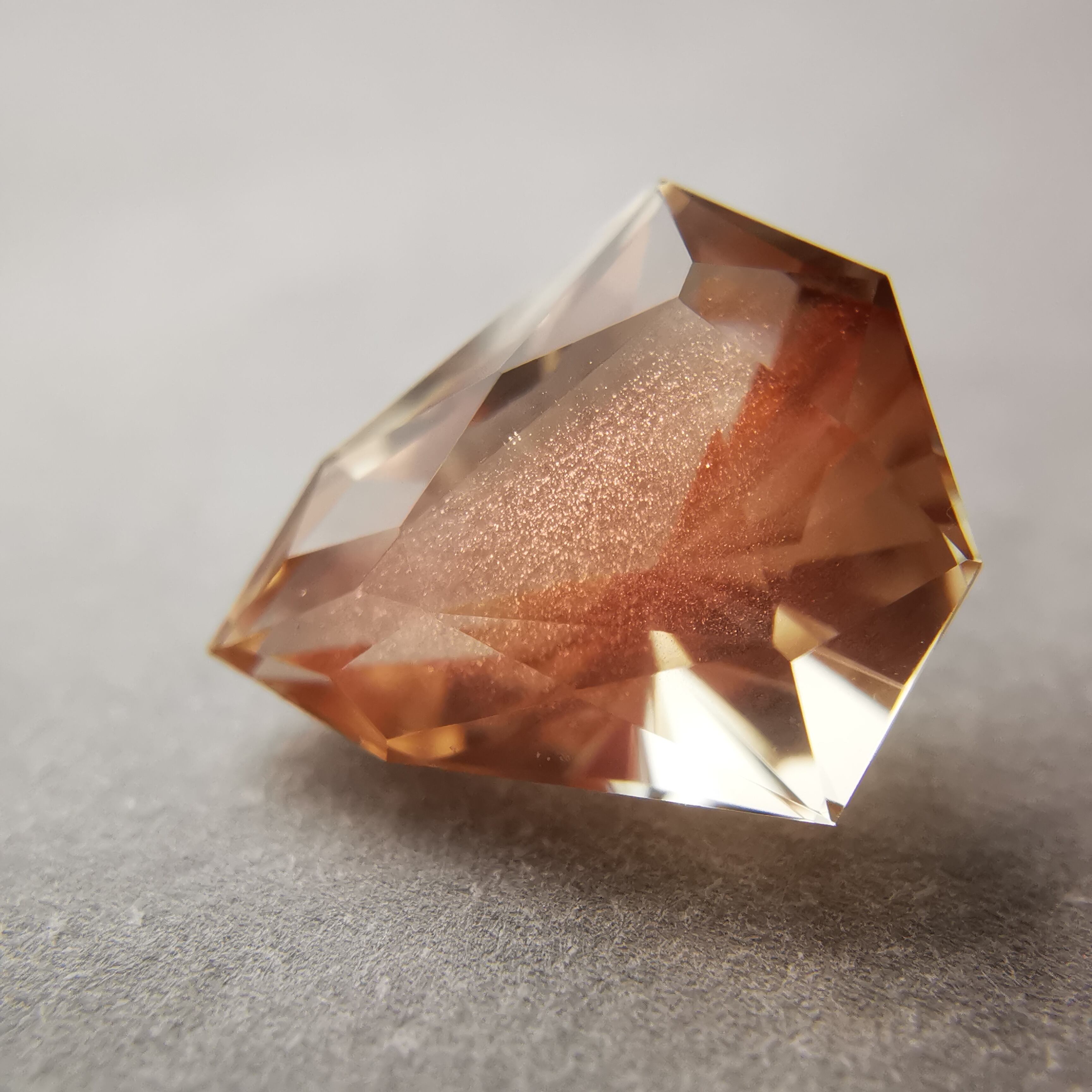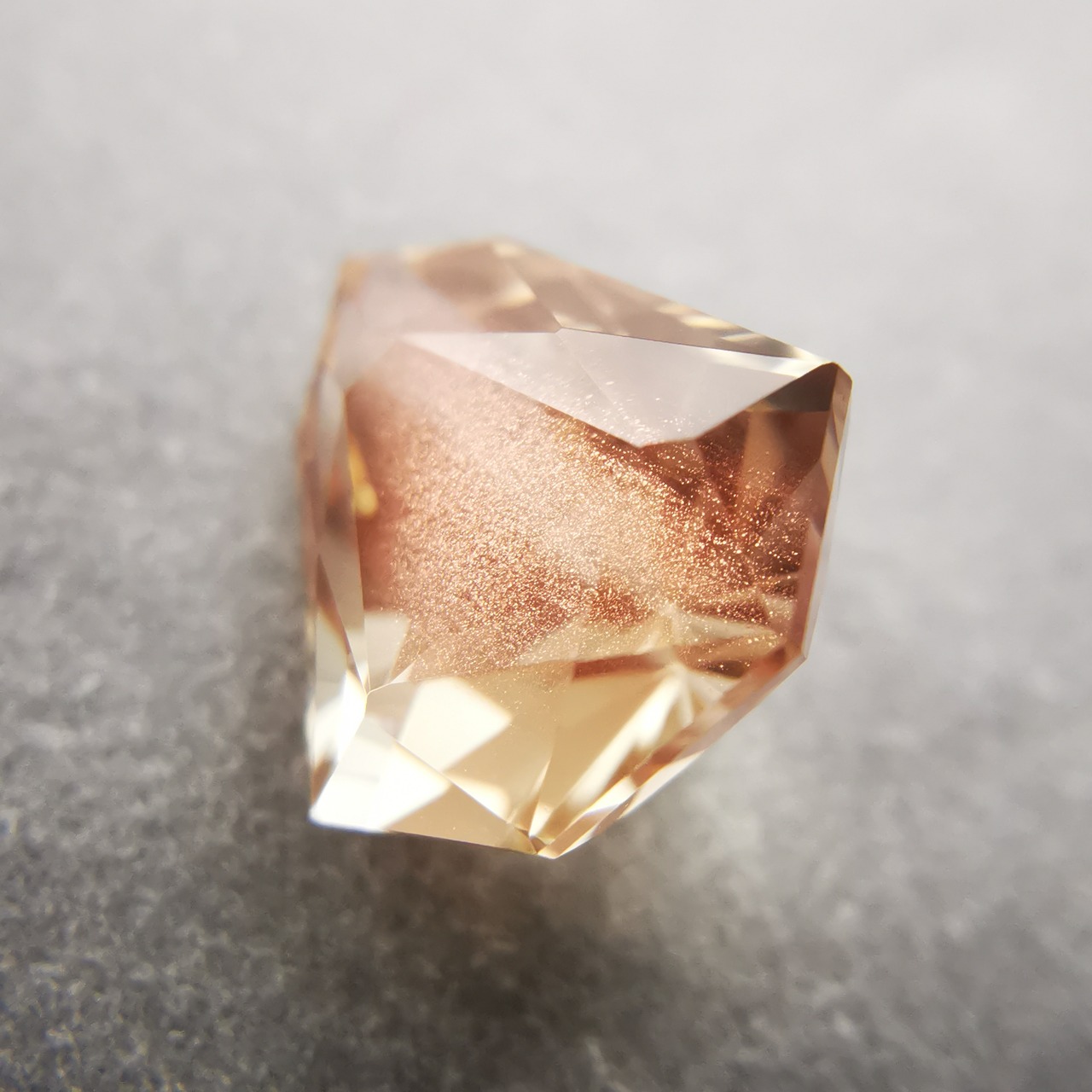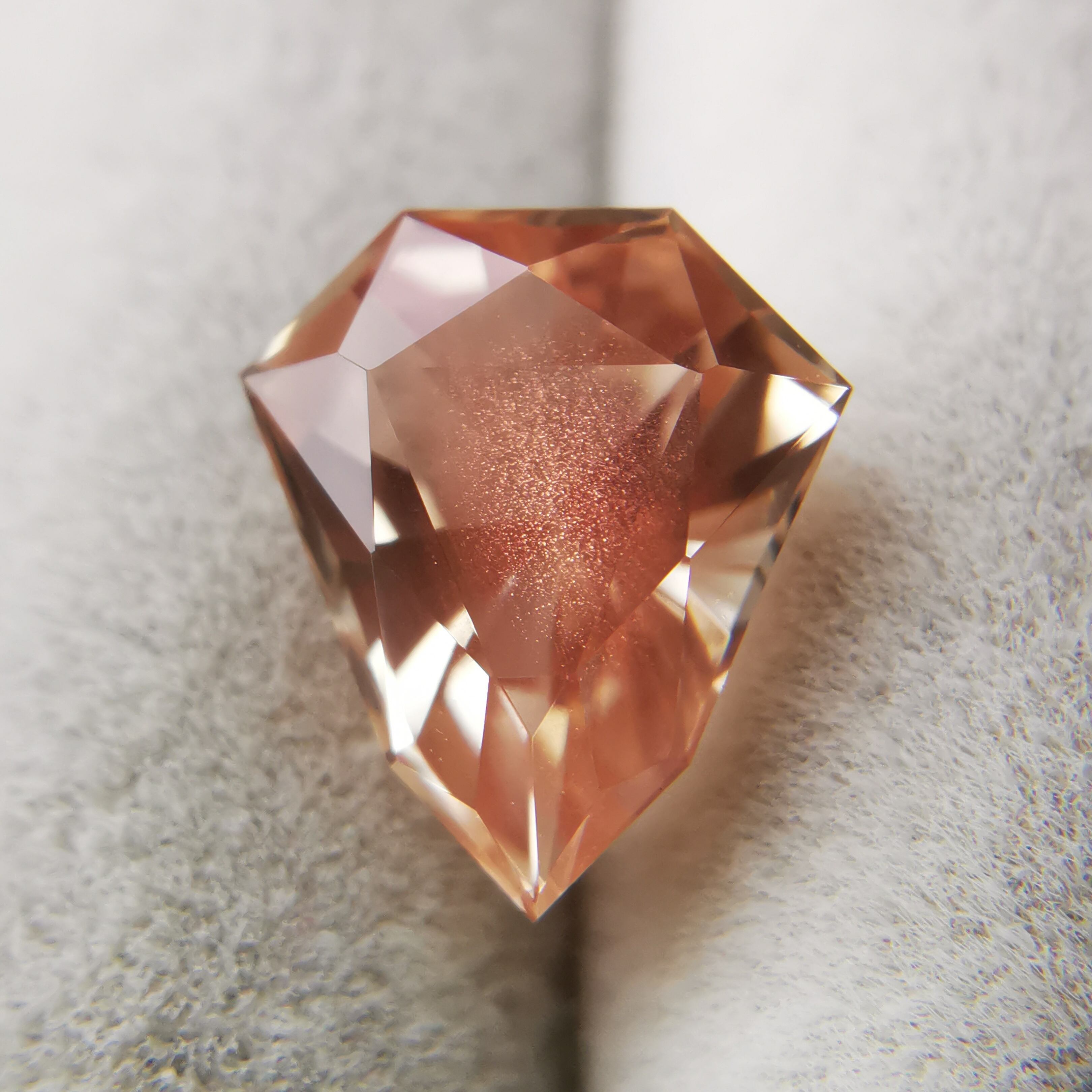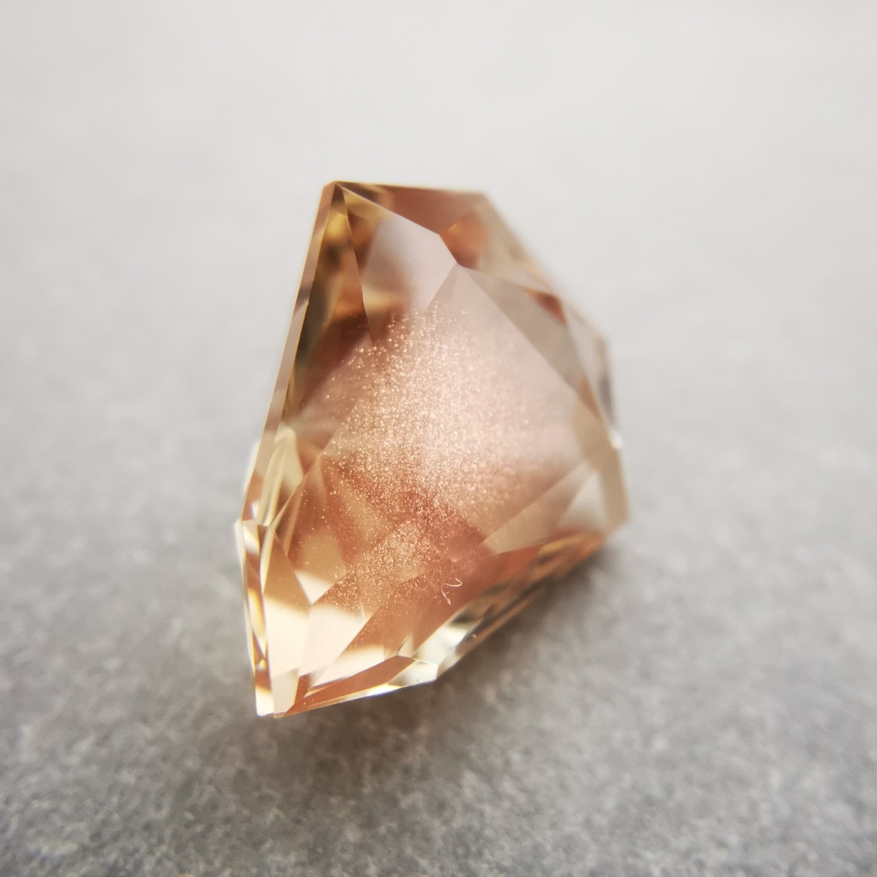 淡いカラー、ジュエルカットを縦長にしたようなフォルムのオレゴンサンストーンです。