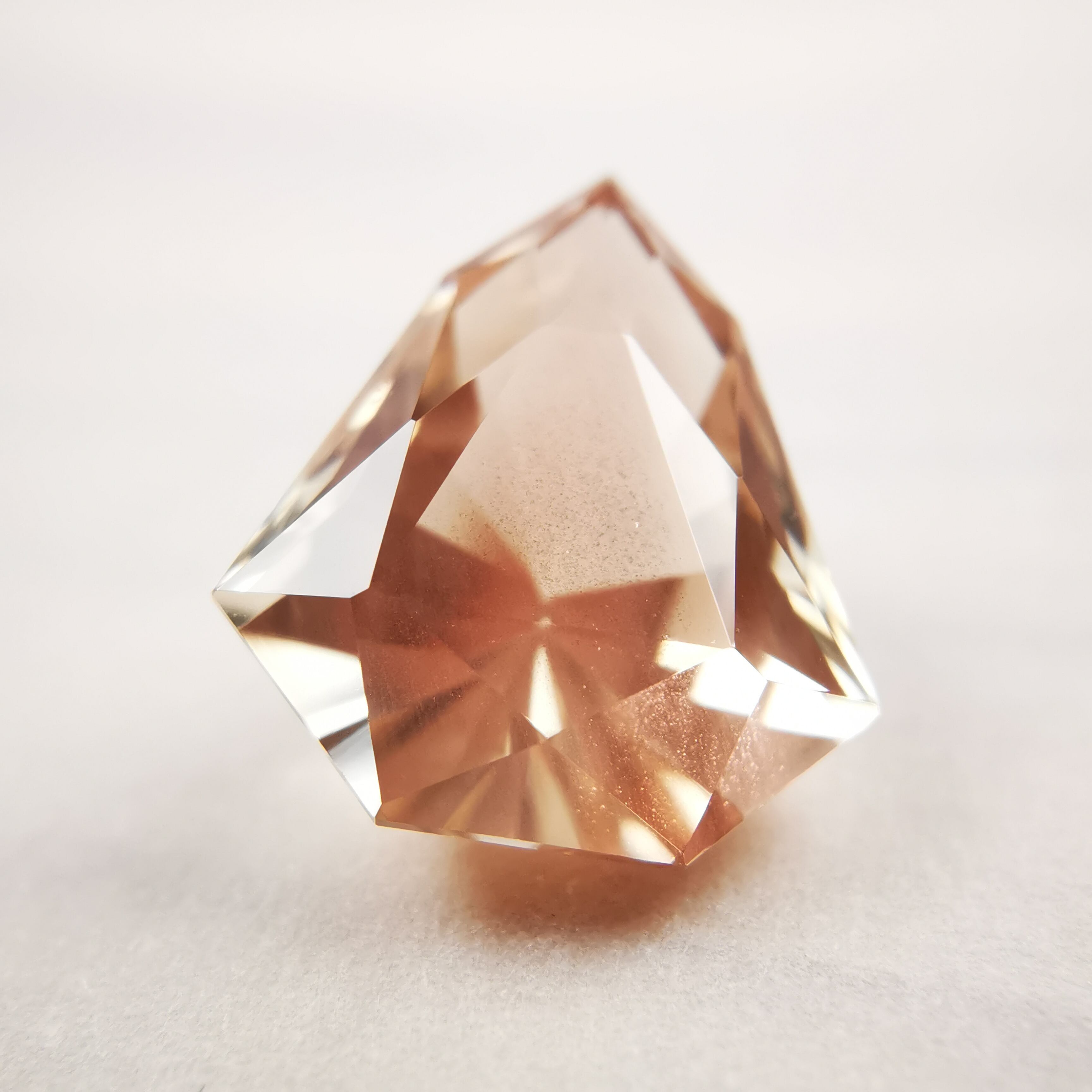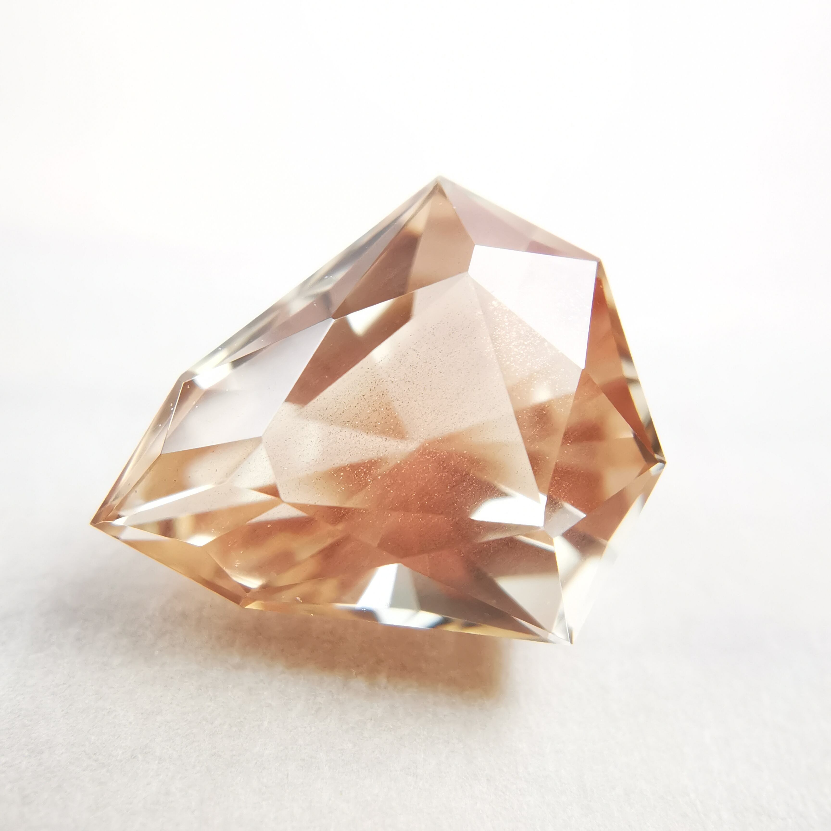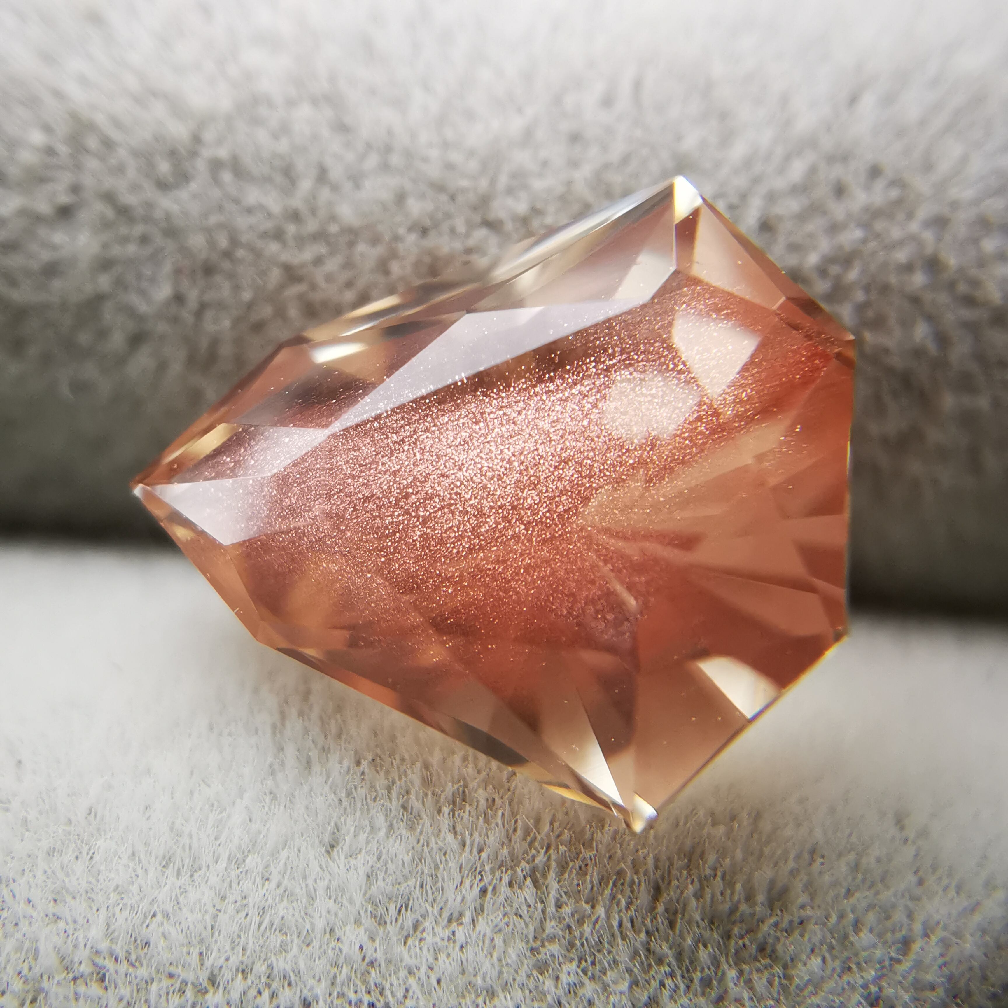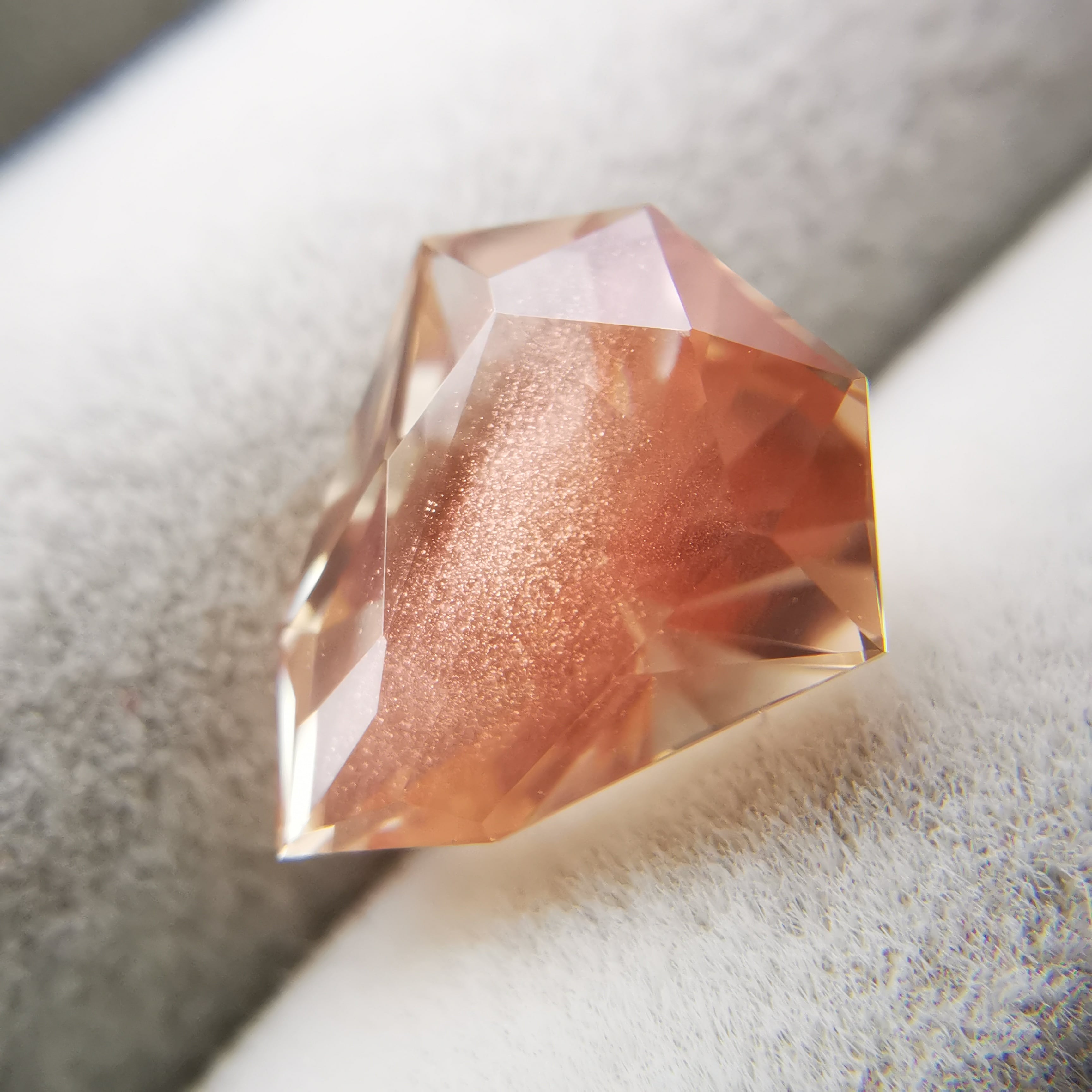 淡いカラー、ジュエルカットを縦長にしたようなフォルムのオレゴンサンストーンです。