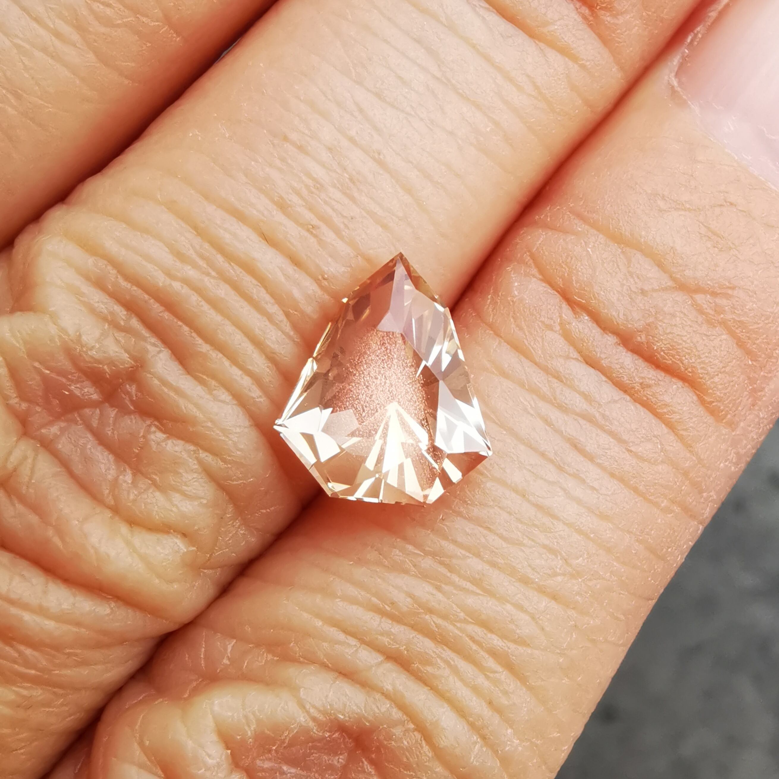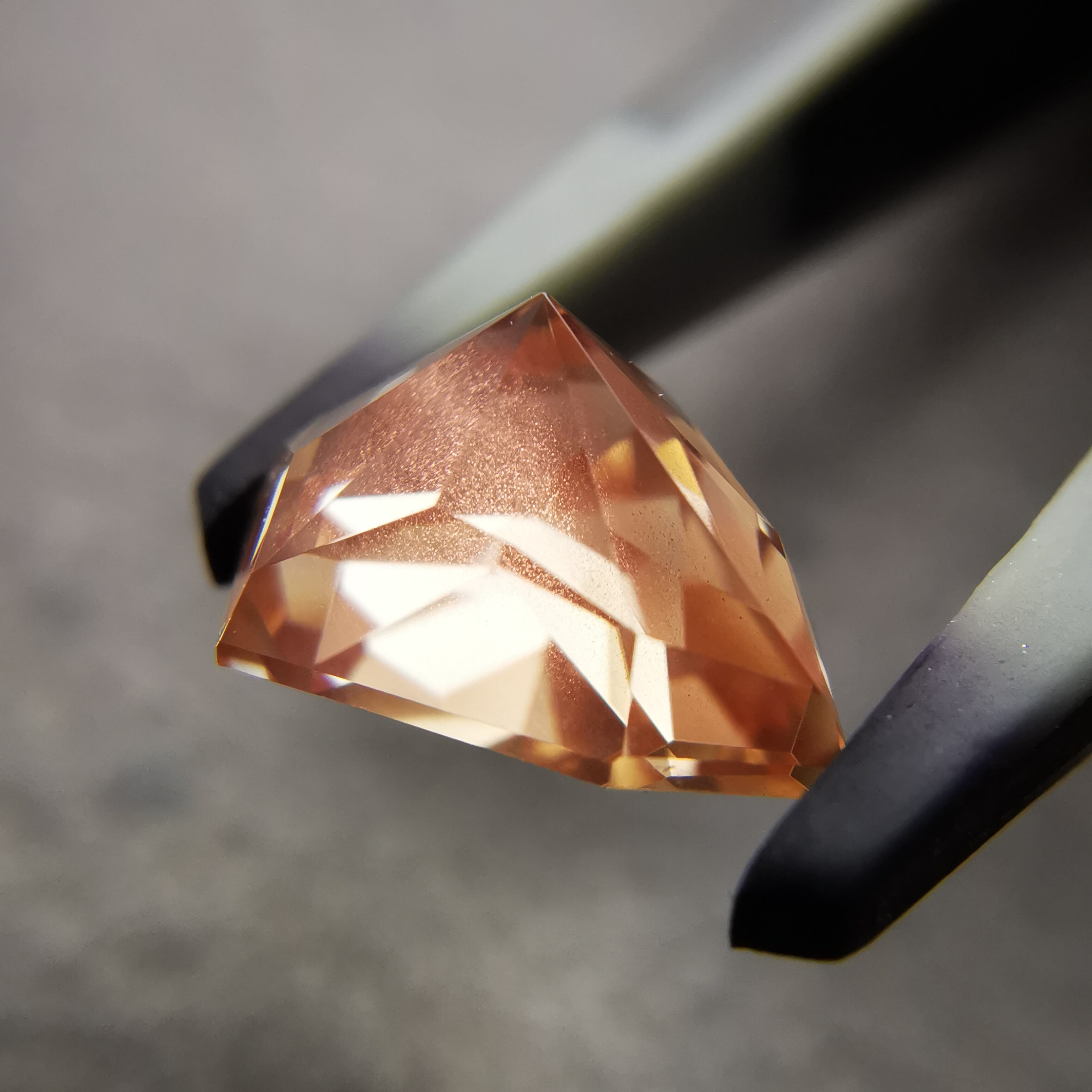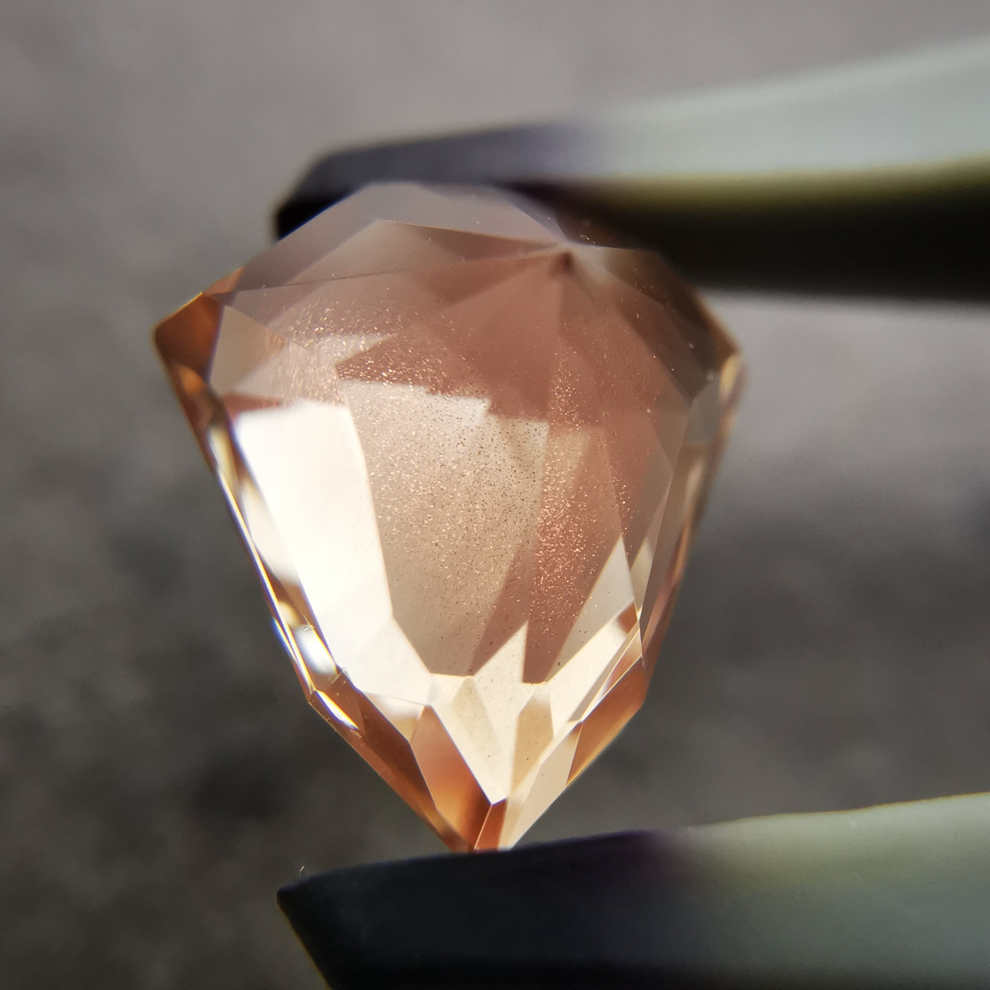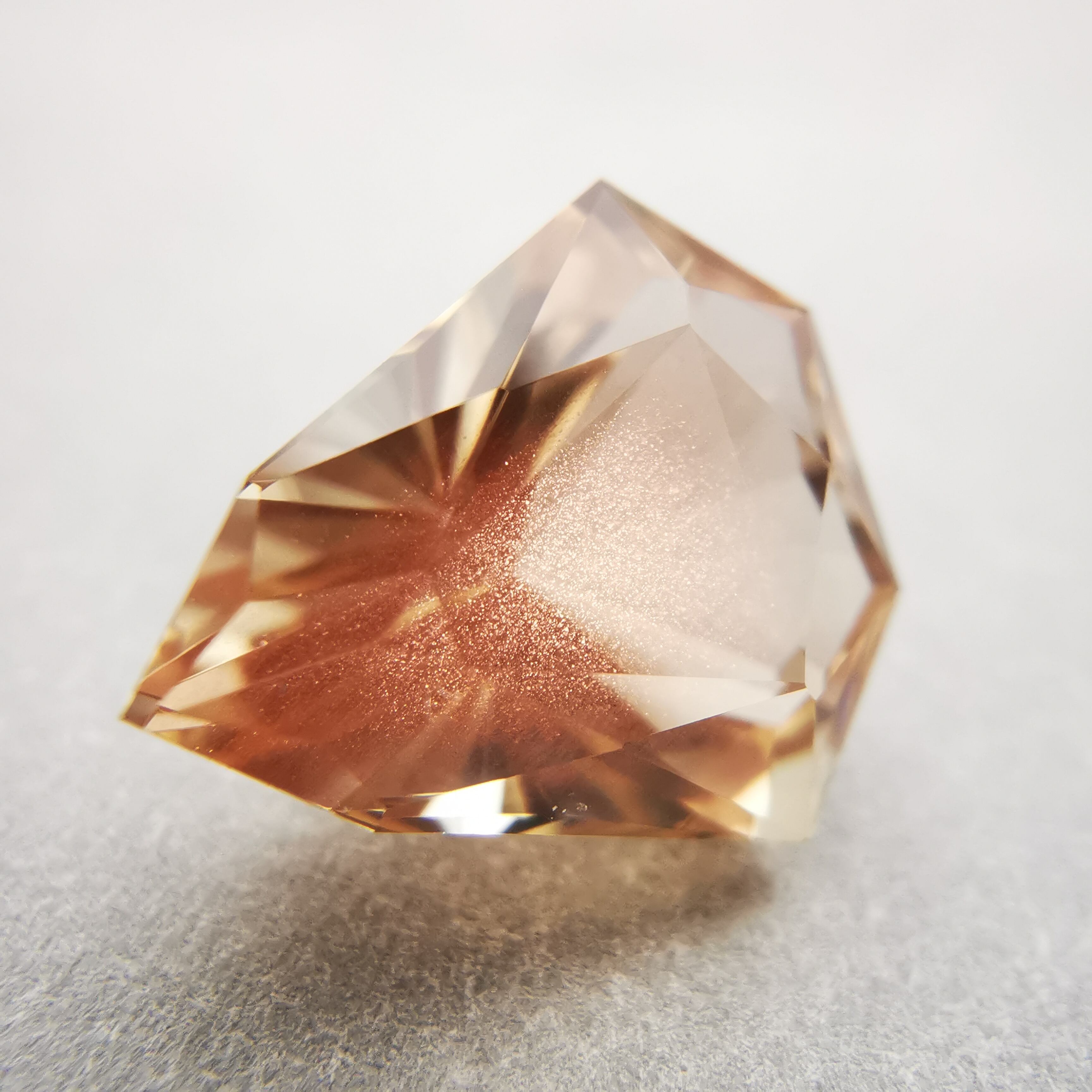 淡いカラー、ジュエルカットを縦長にしたようなフォルムのオレゴンサンストーンです。