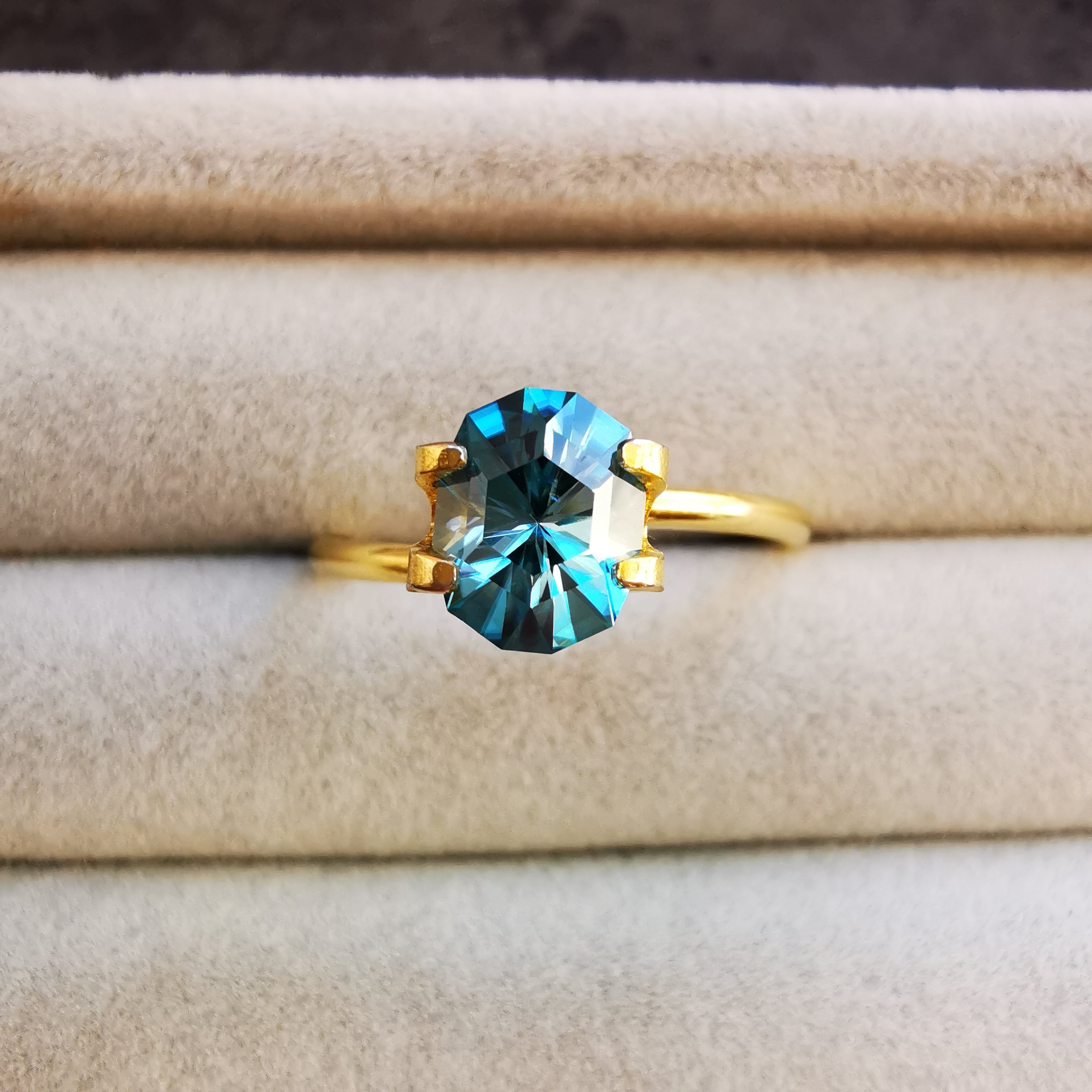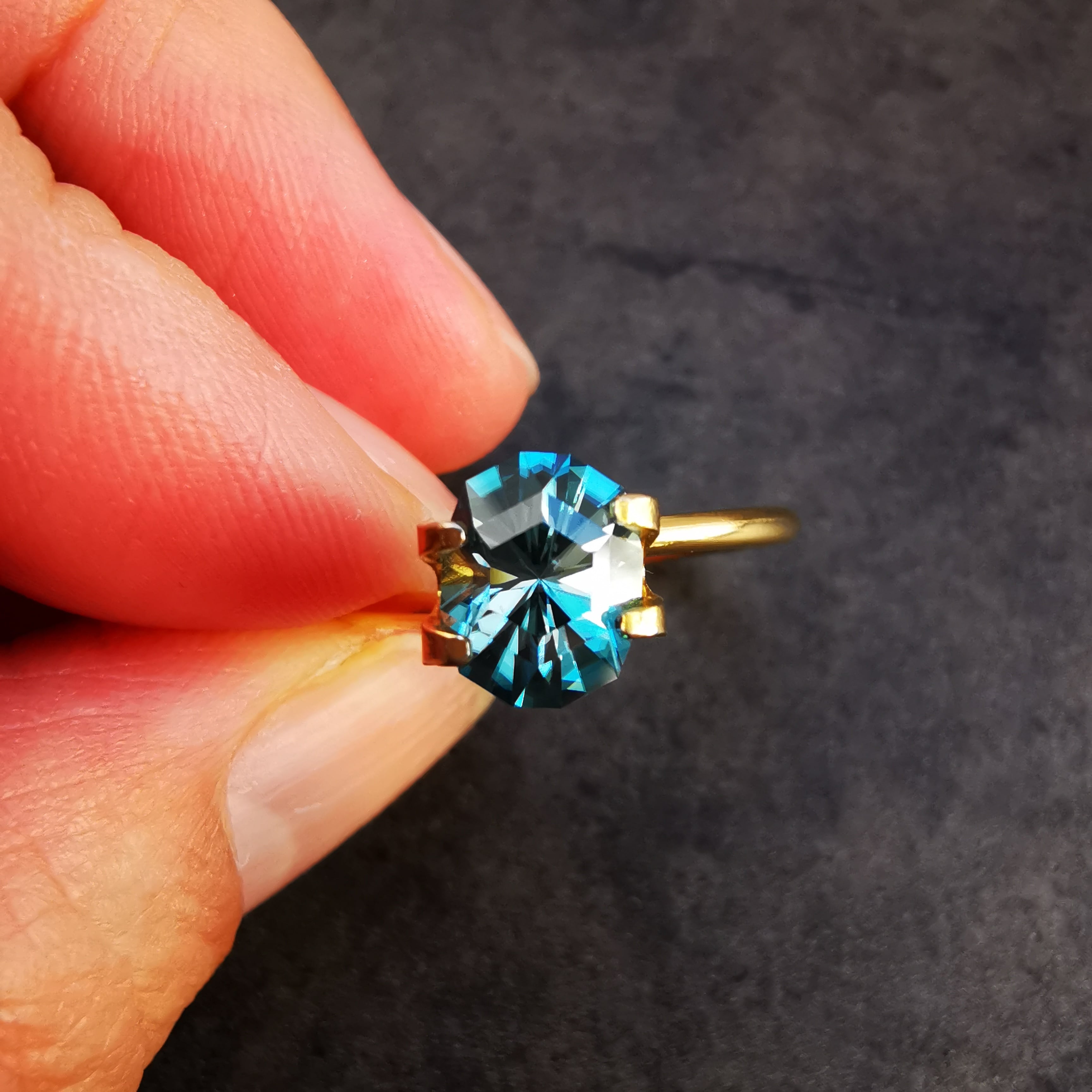 ジルコンの外し石はラウンドが多いのですが、珍しくオーバルからのカスタムリカットです。
