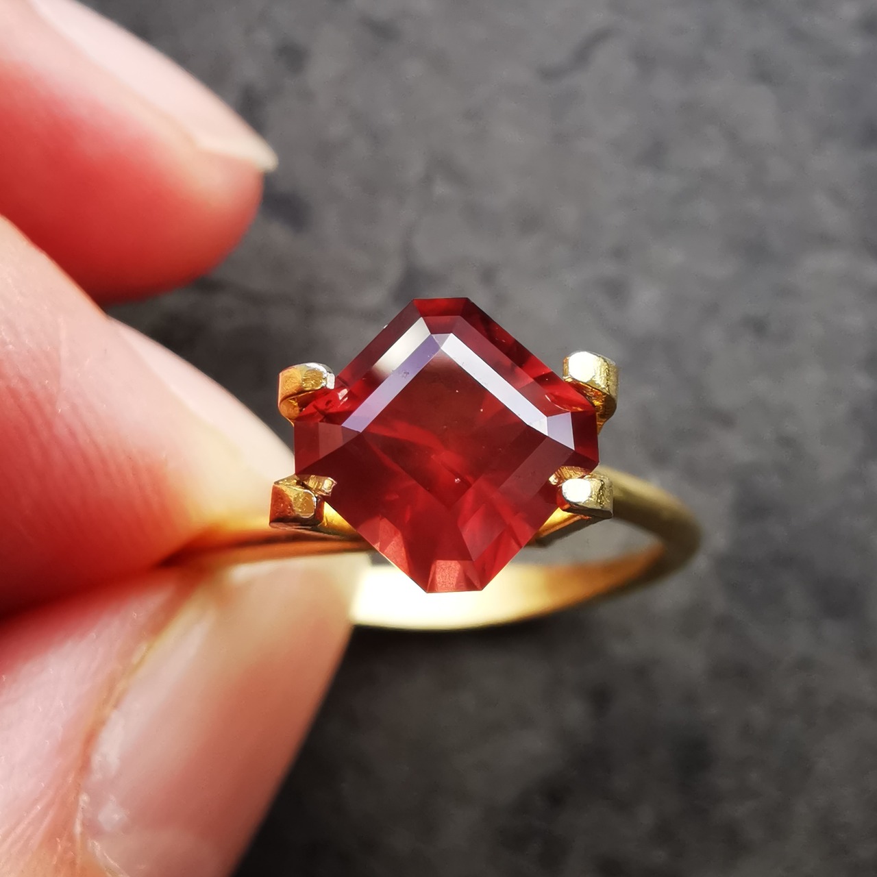 シルキーを通り越して、スモーキーと言いたくなるような、茜色のジルコンです。