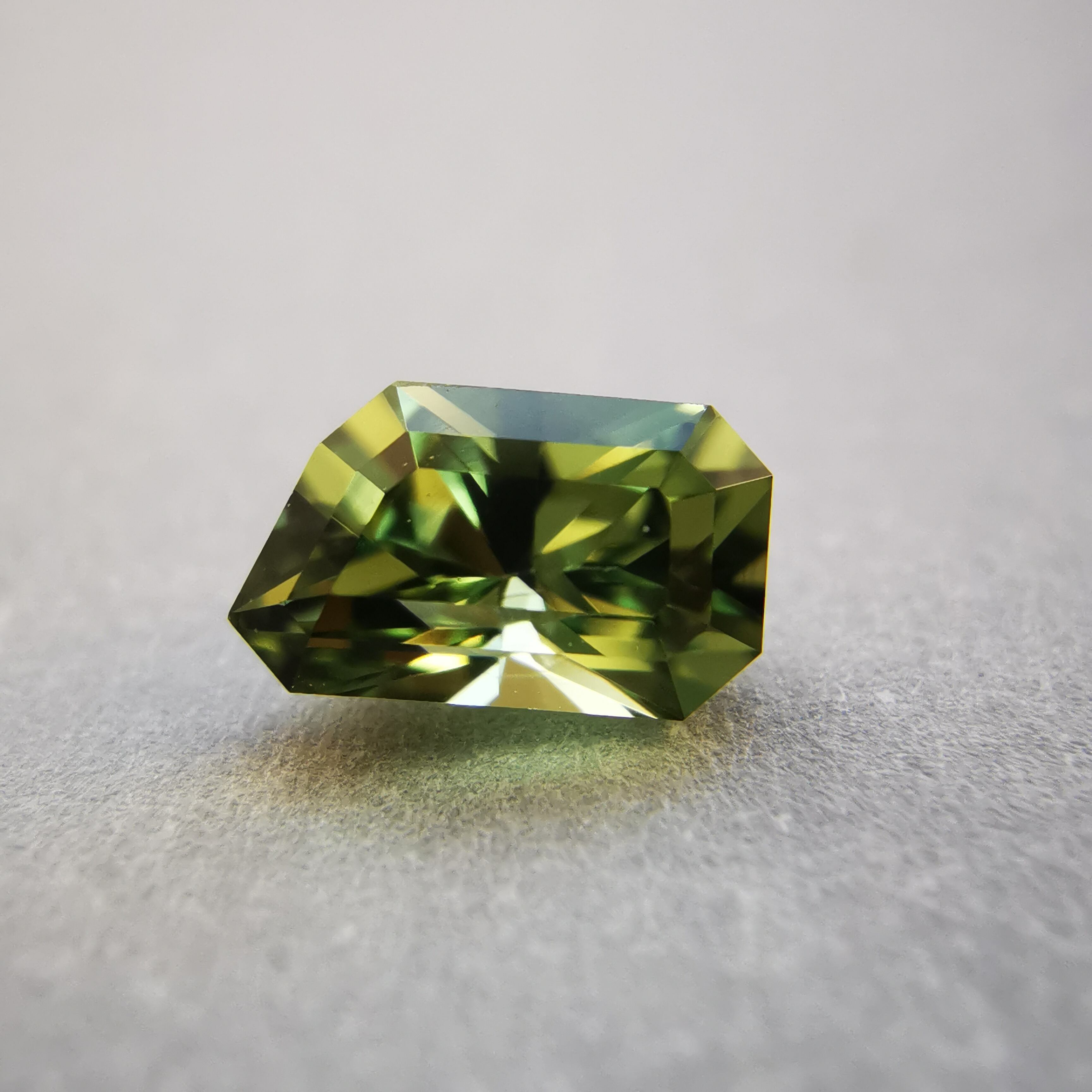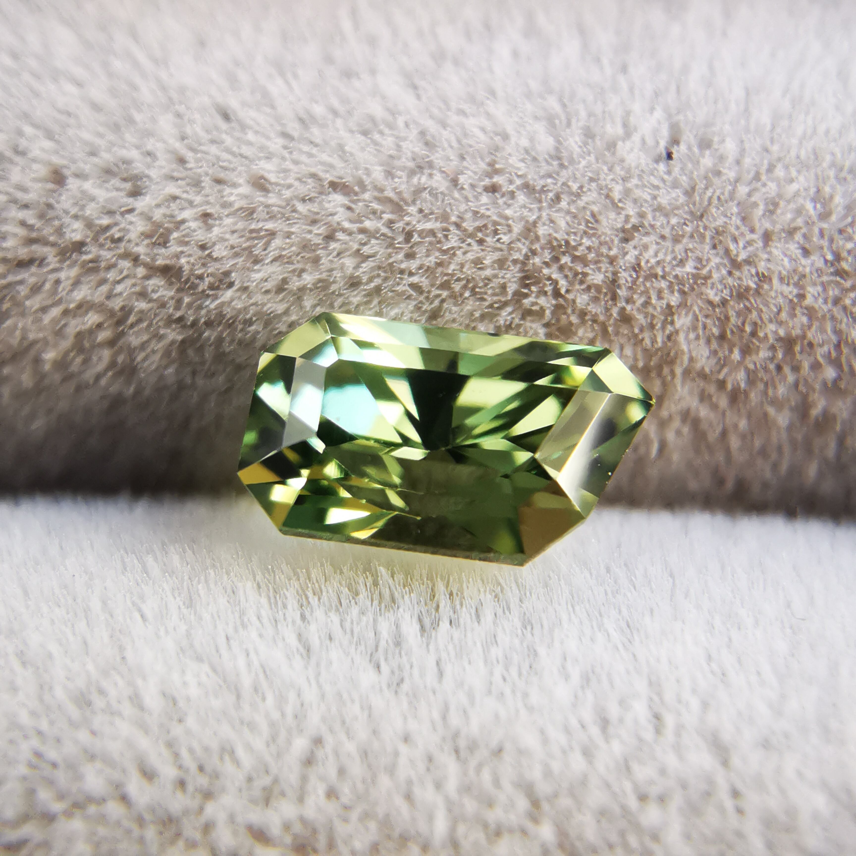 若草色からオリーブグリーンまで、様々なイエローグリーンのグラデーションが楽しめるサファイアです。