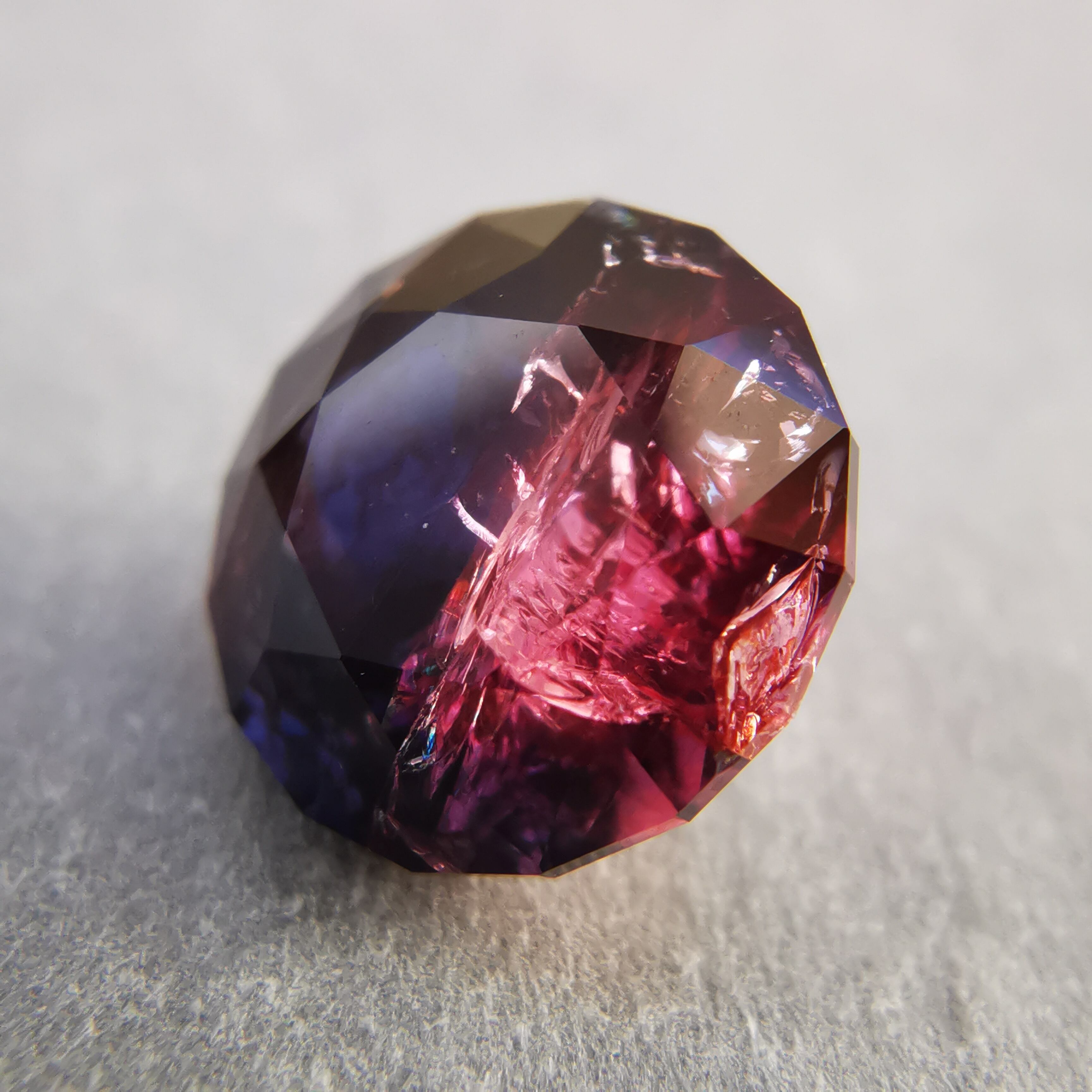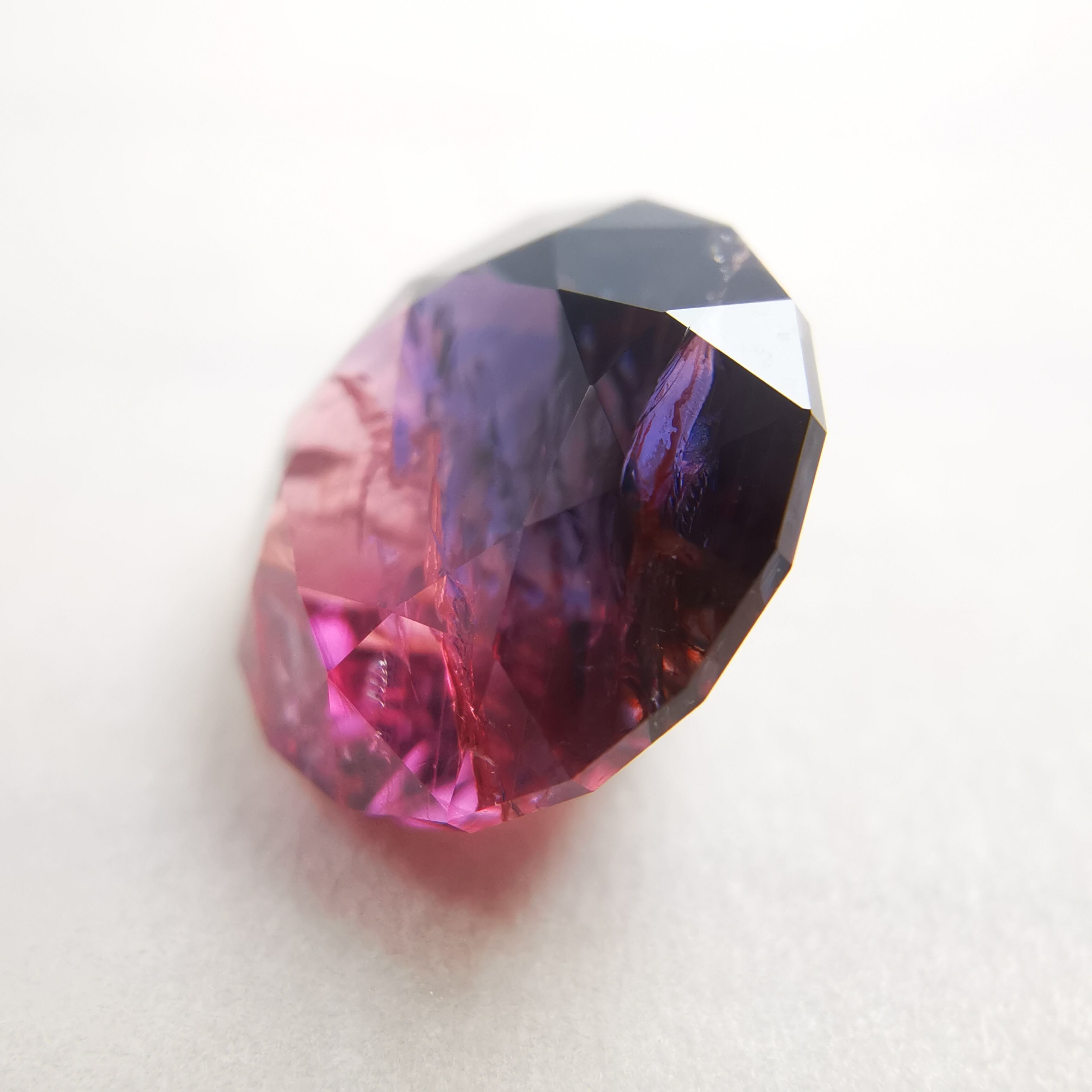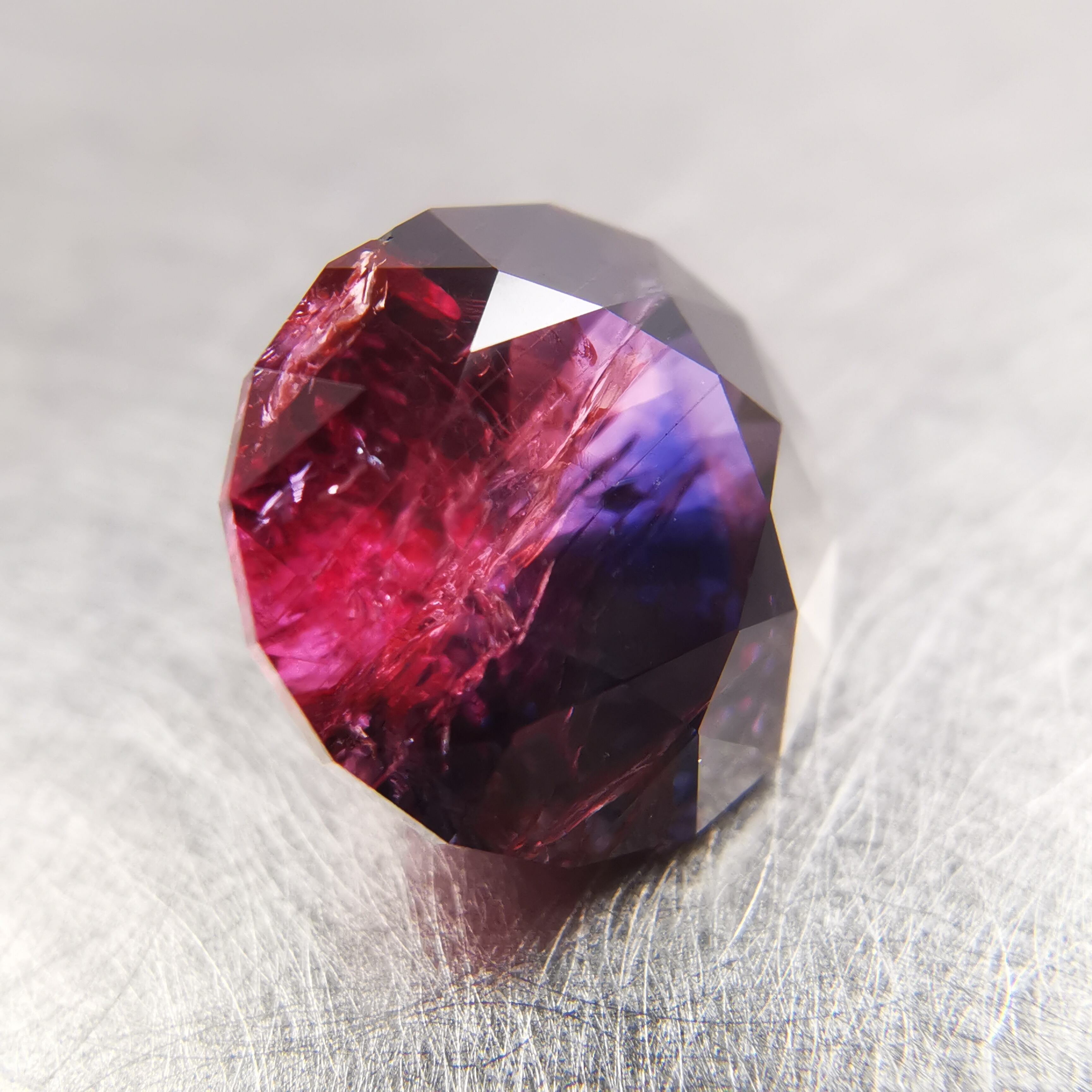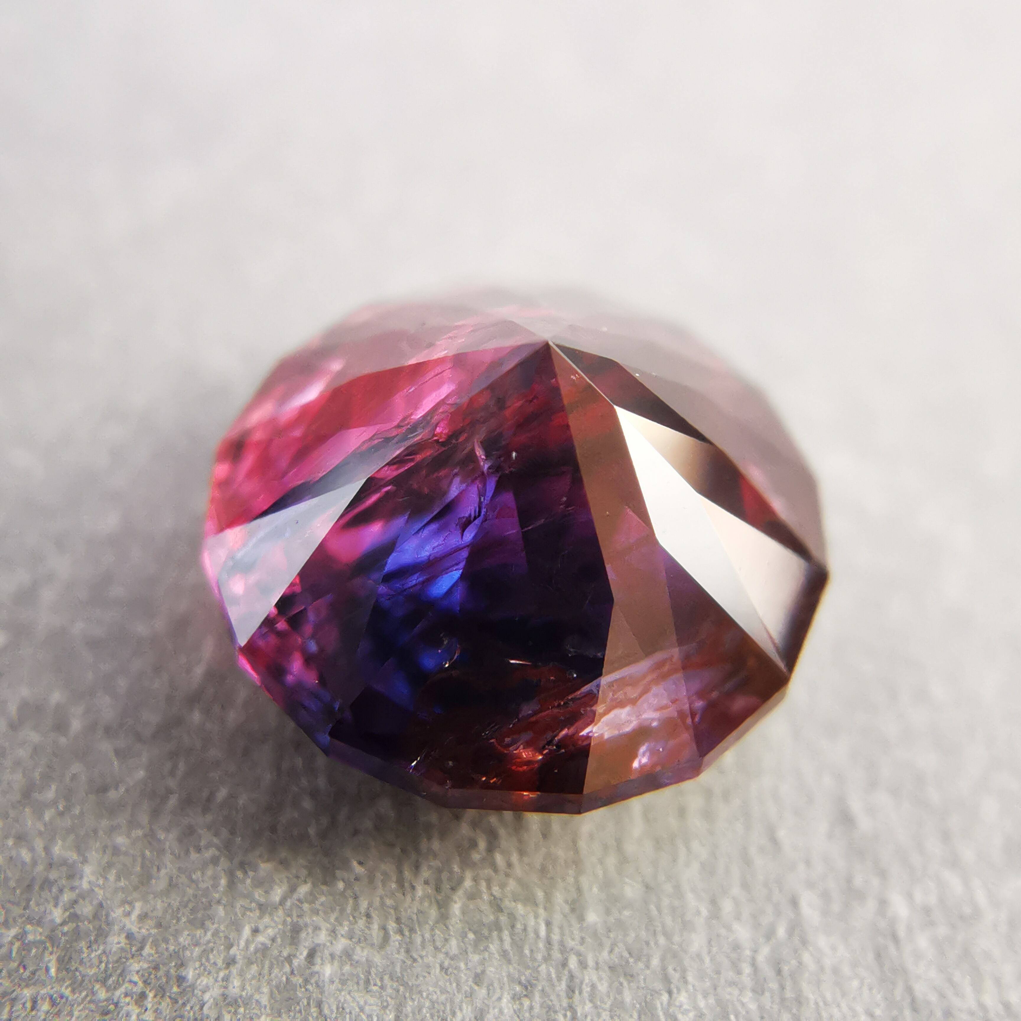 赤みのピンクと、かなりダークなパープルブルーのバイカラーサファイアです。