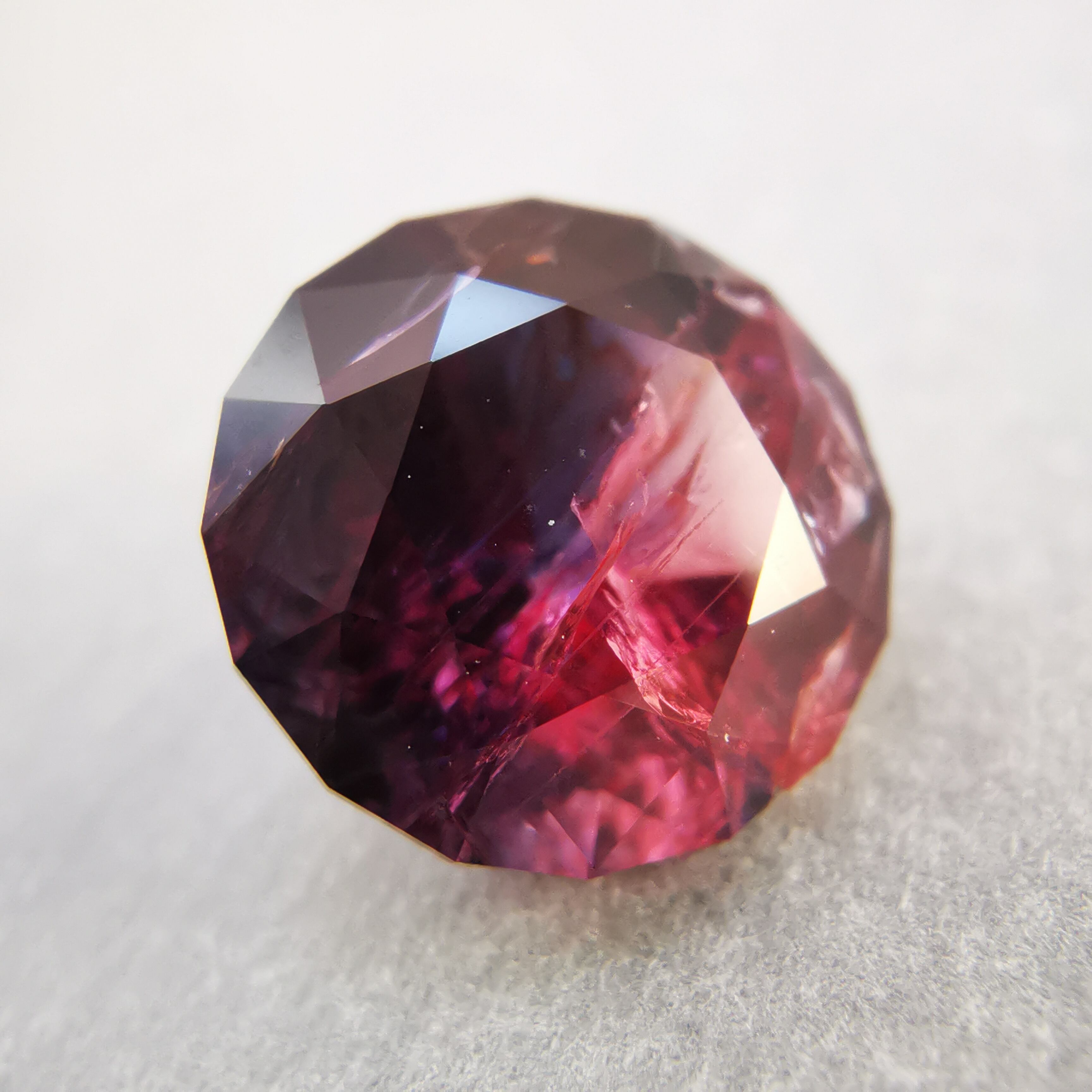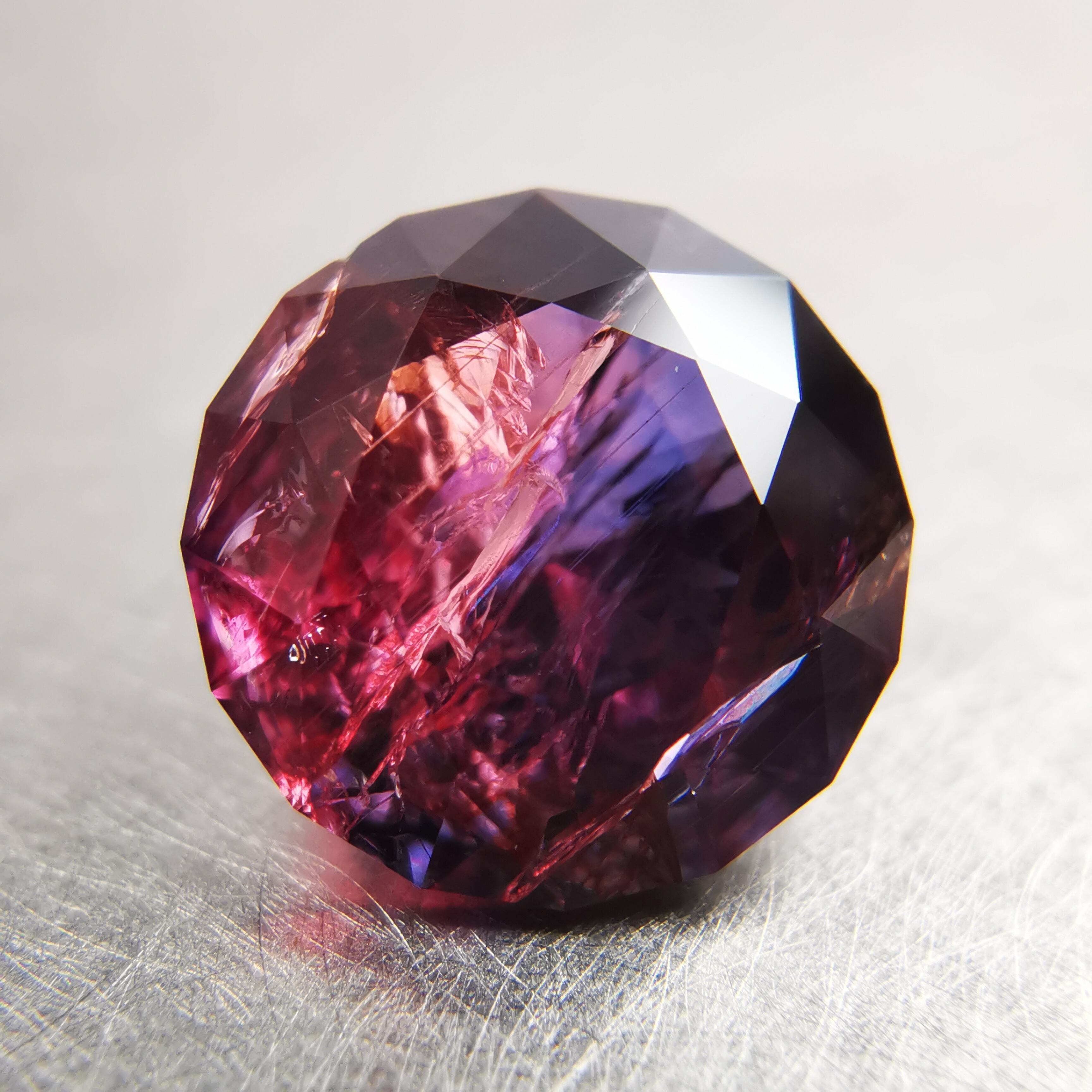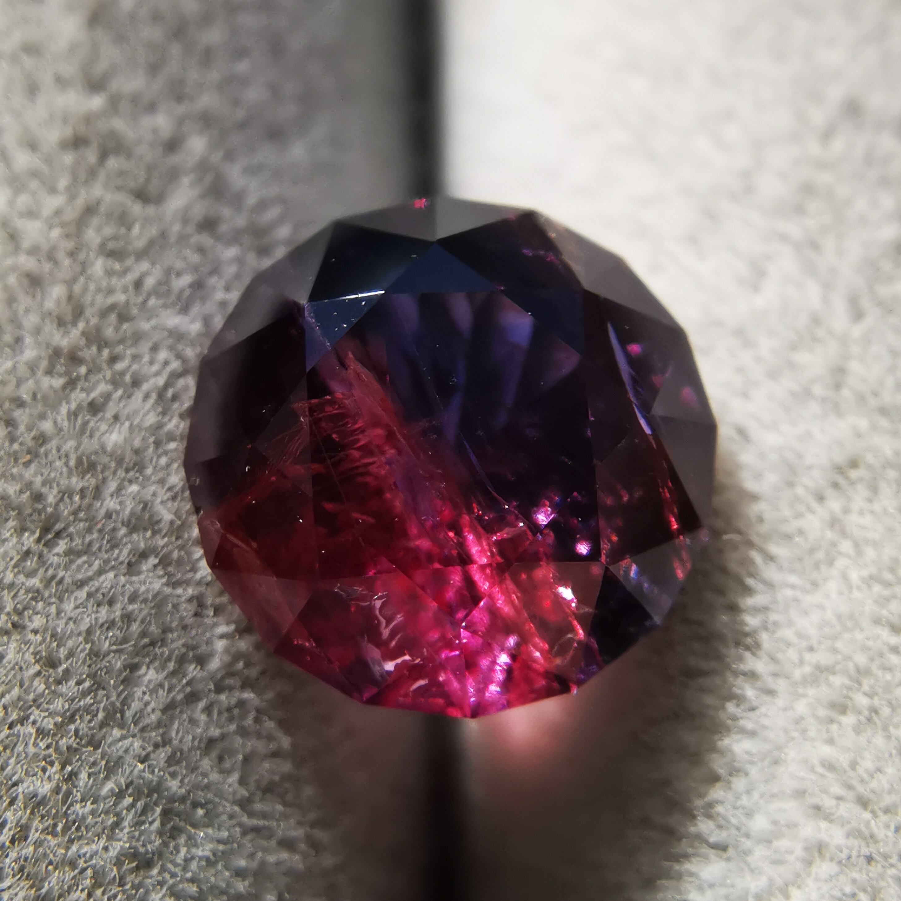 赤みのピンクと、かなりダークなパープルブルーのバイカラーサファイアです。