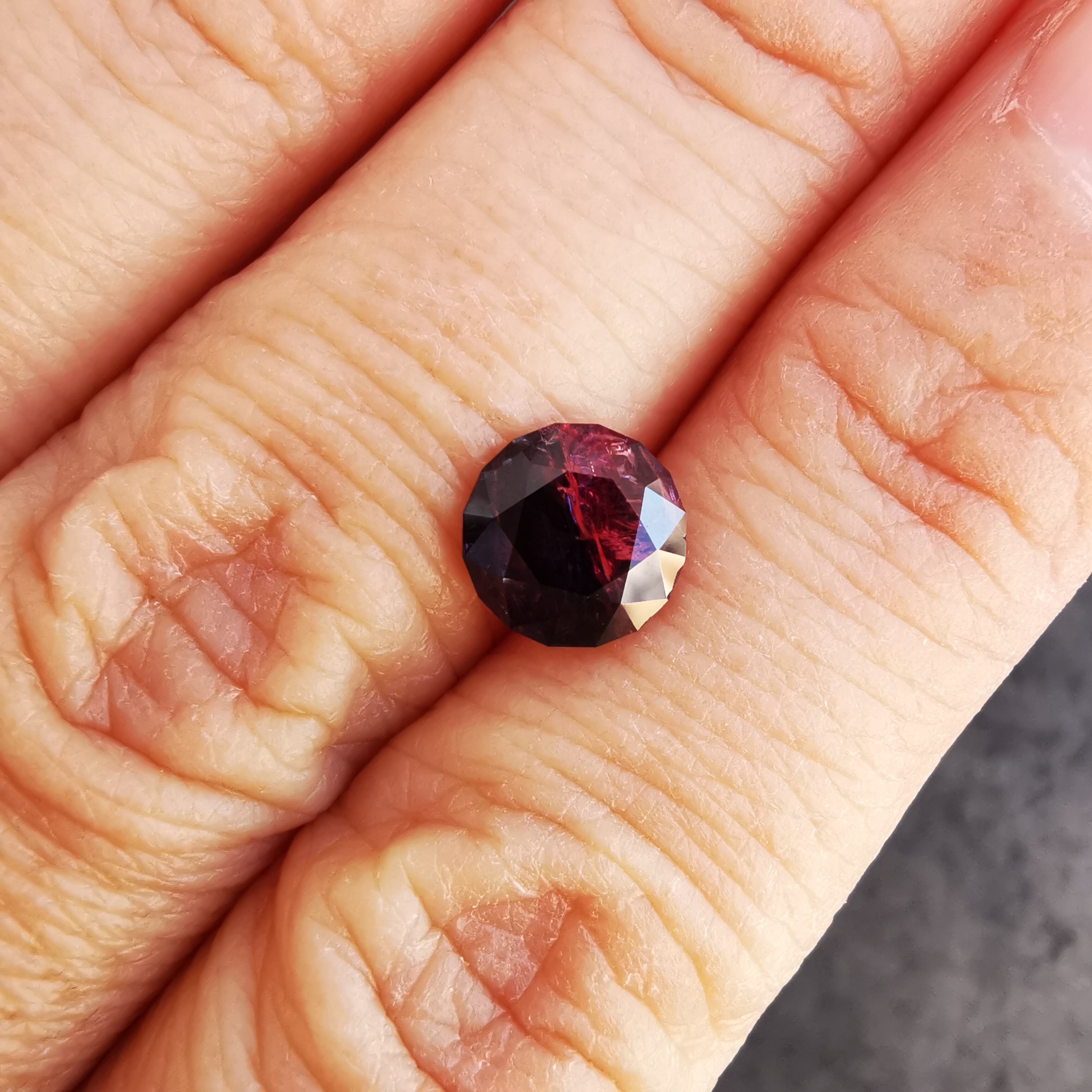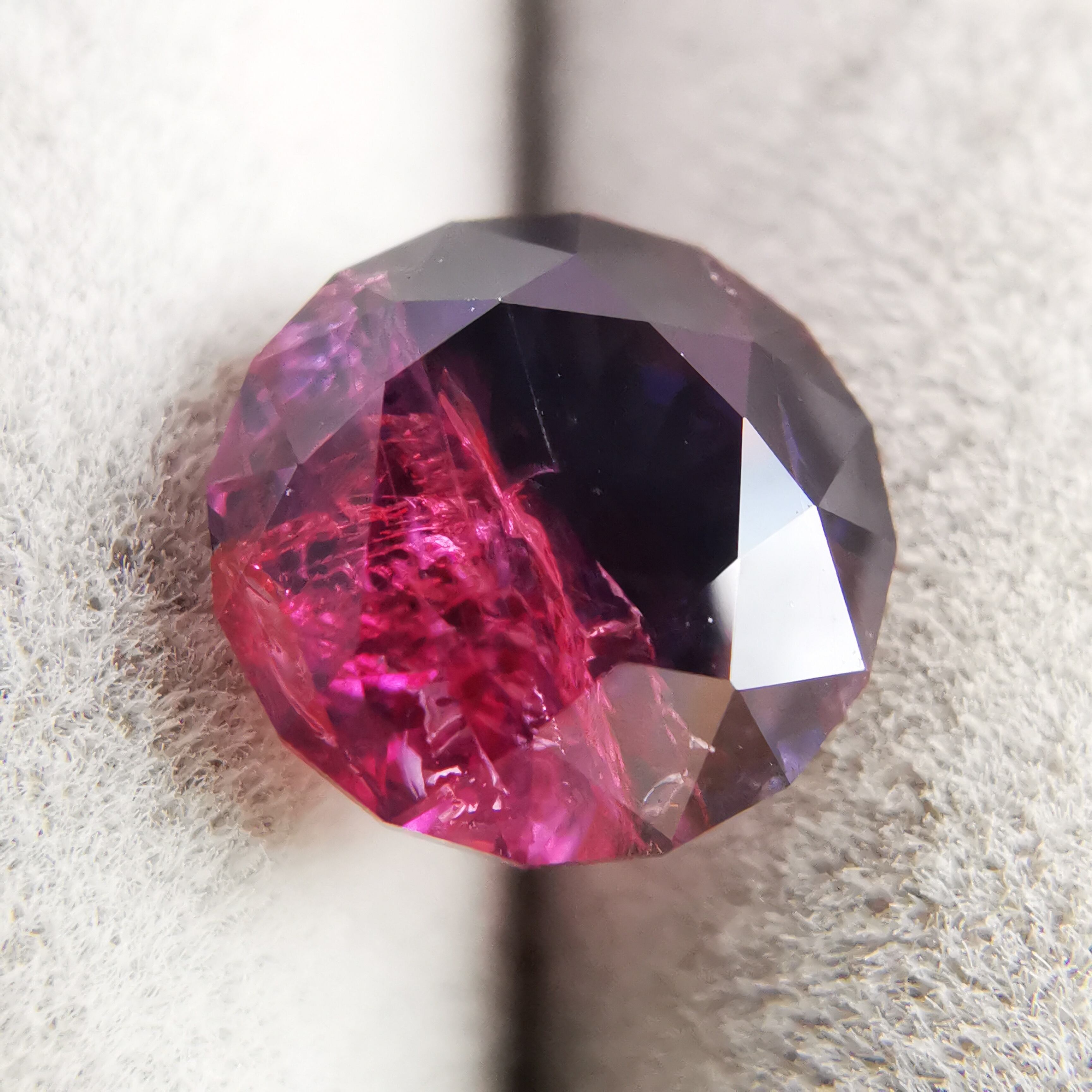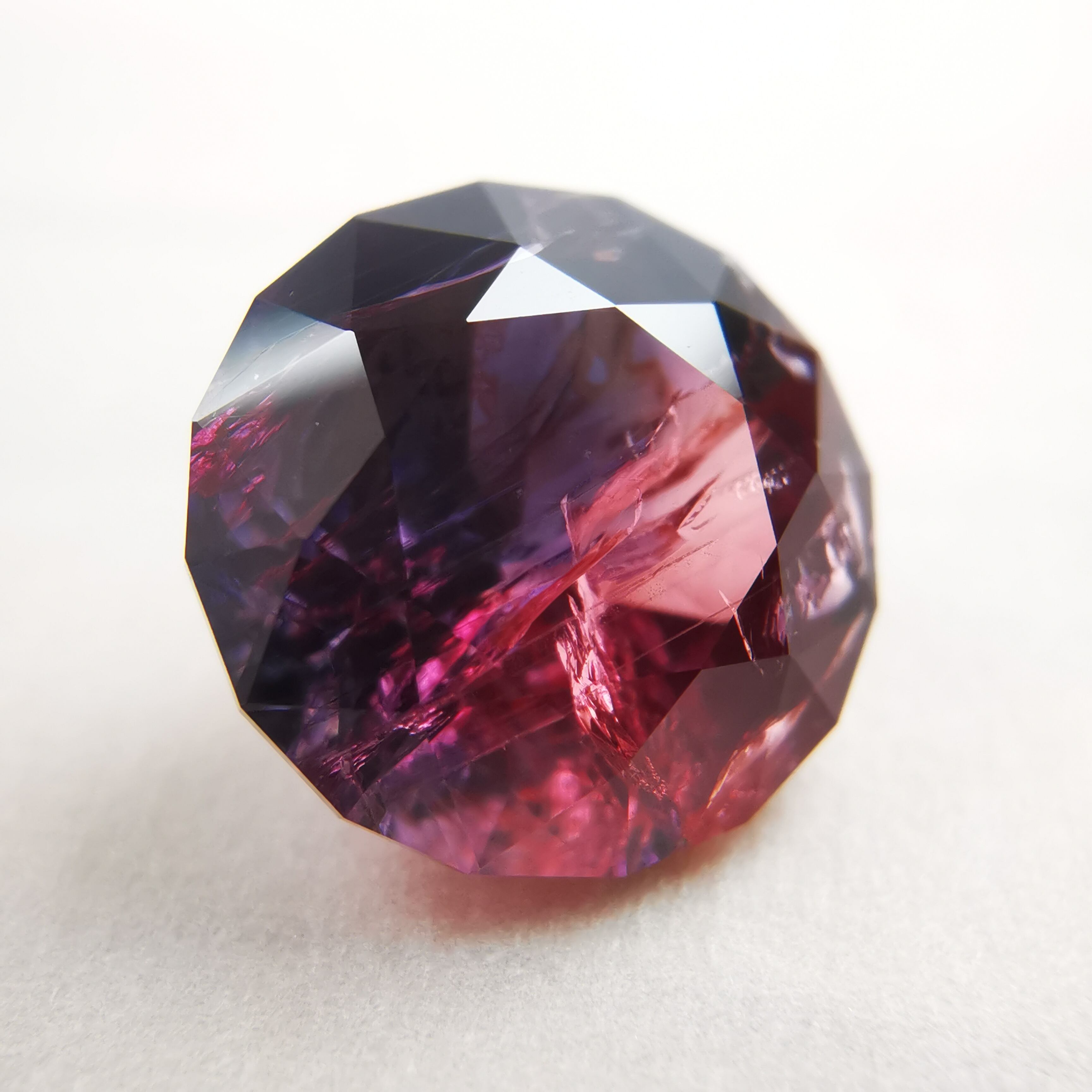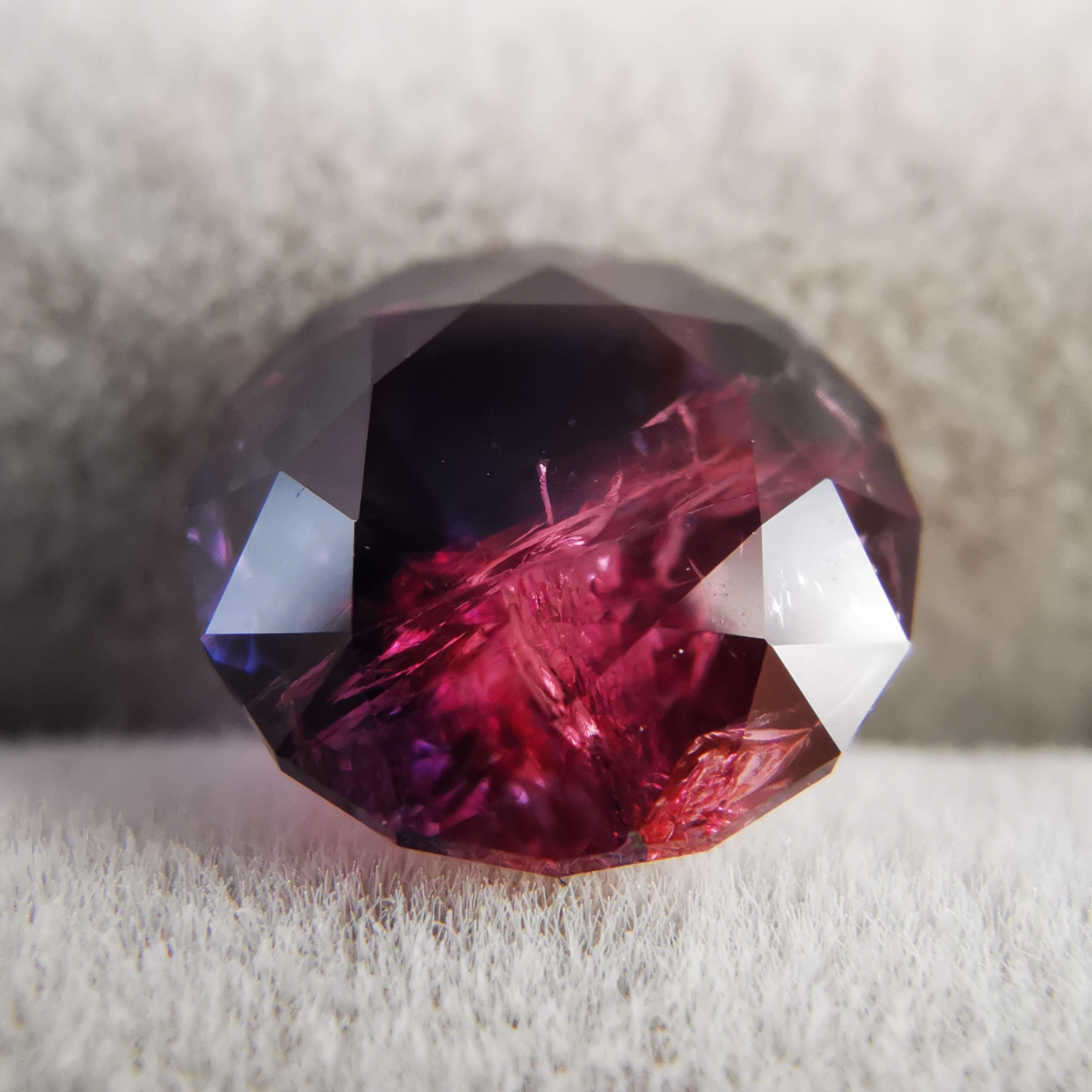 赤みのピンクと、かなりダークなパープルブルーのバイカラーサファイアです。