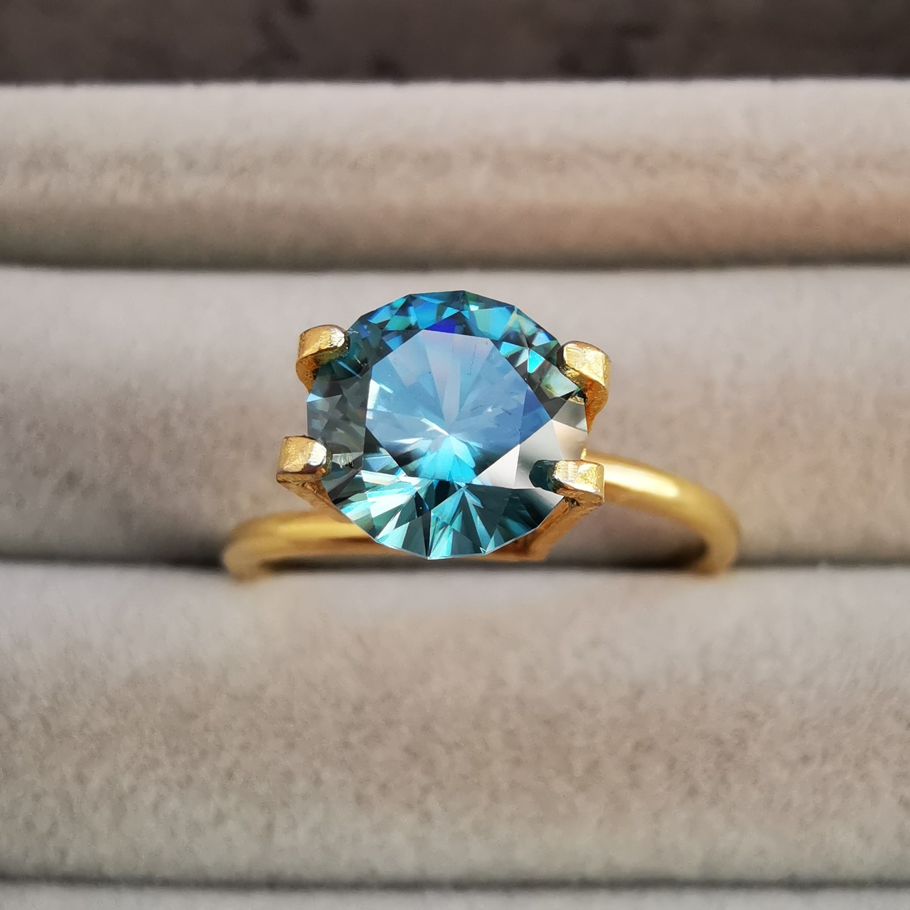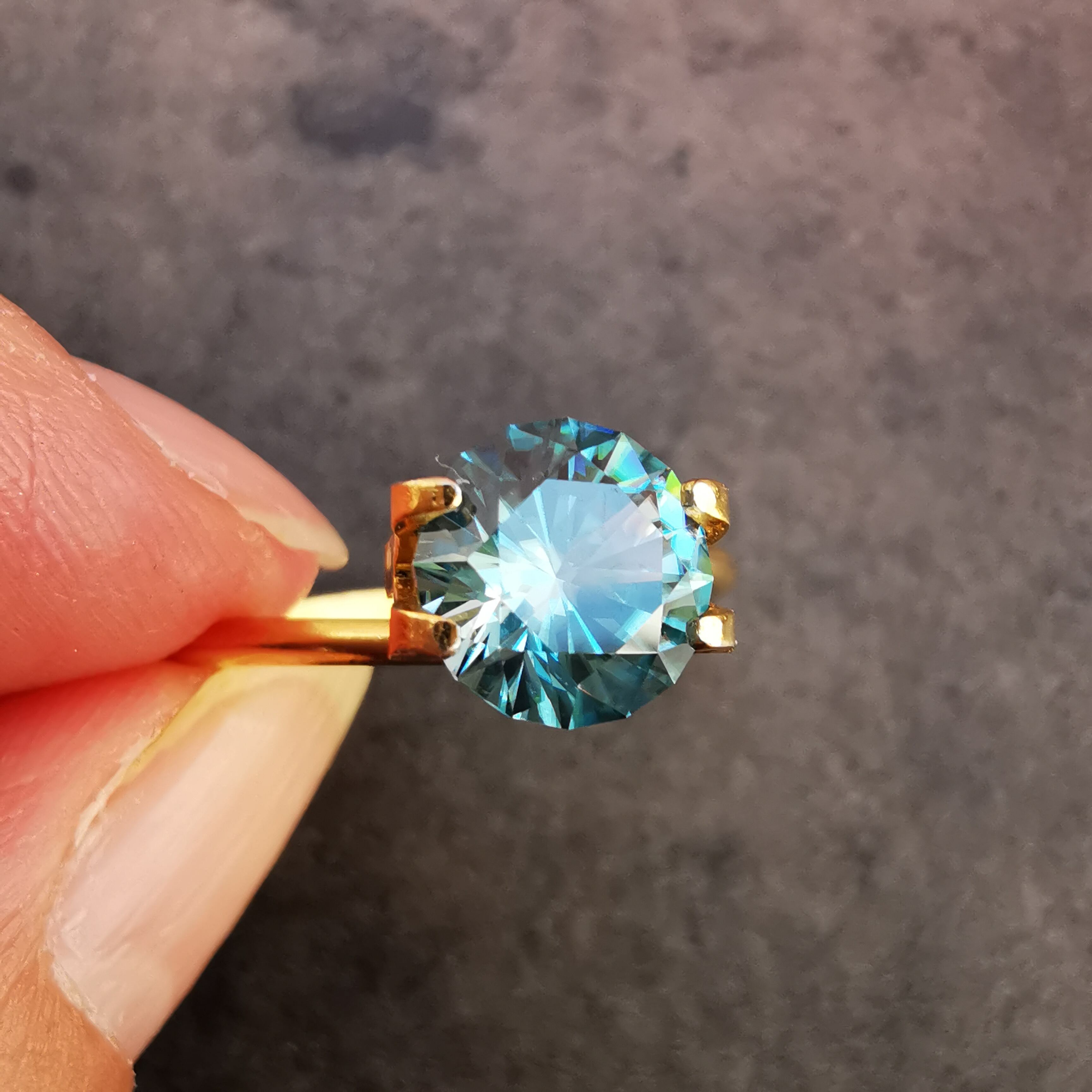 ブルージルコンの中でもどちらかと言うと淡いブルーです。
