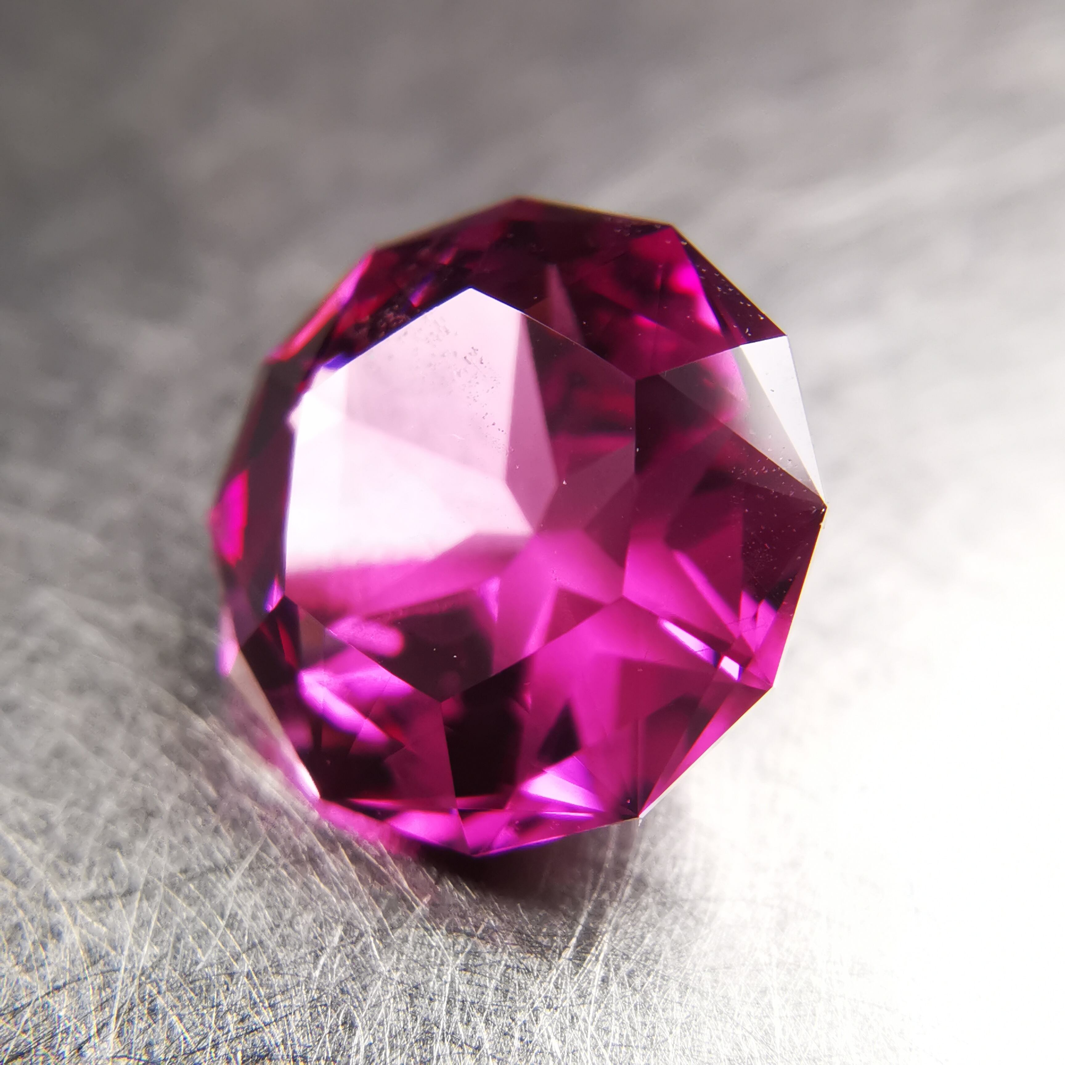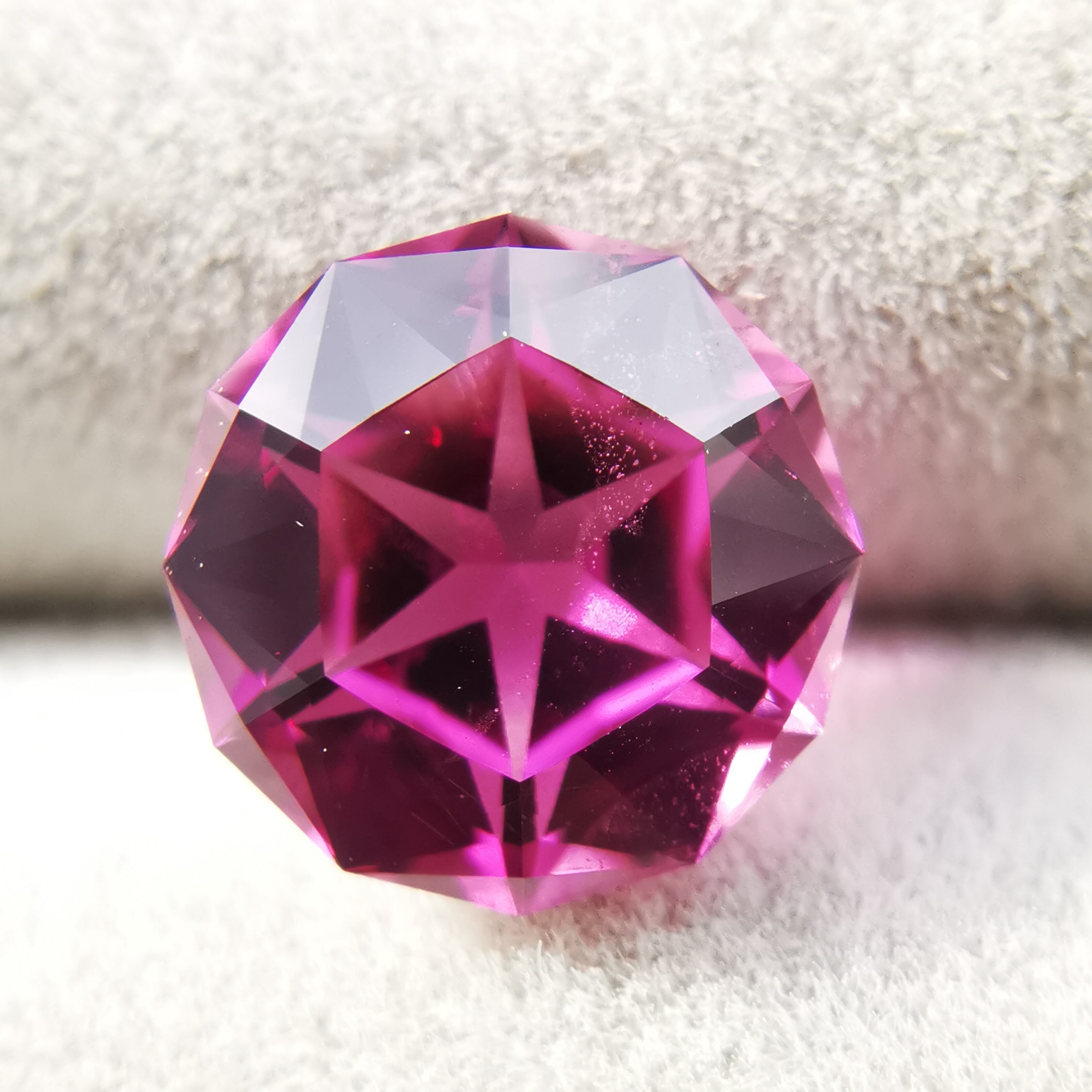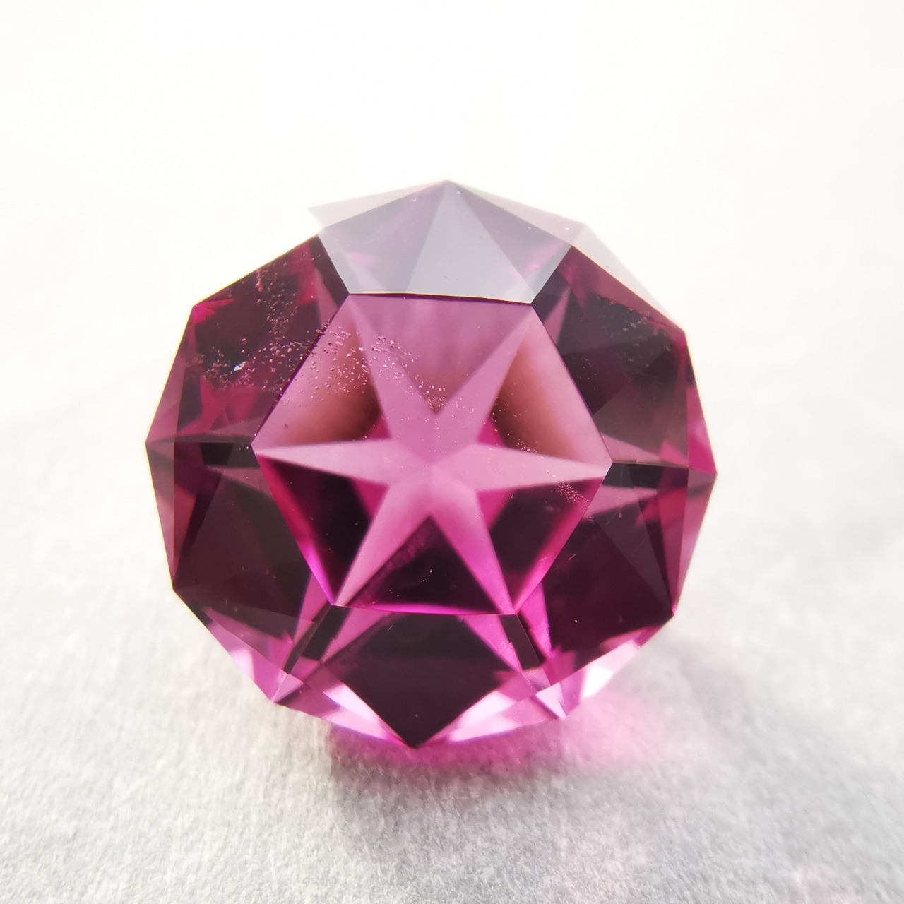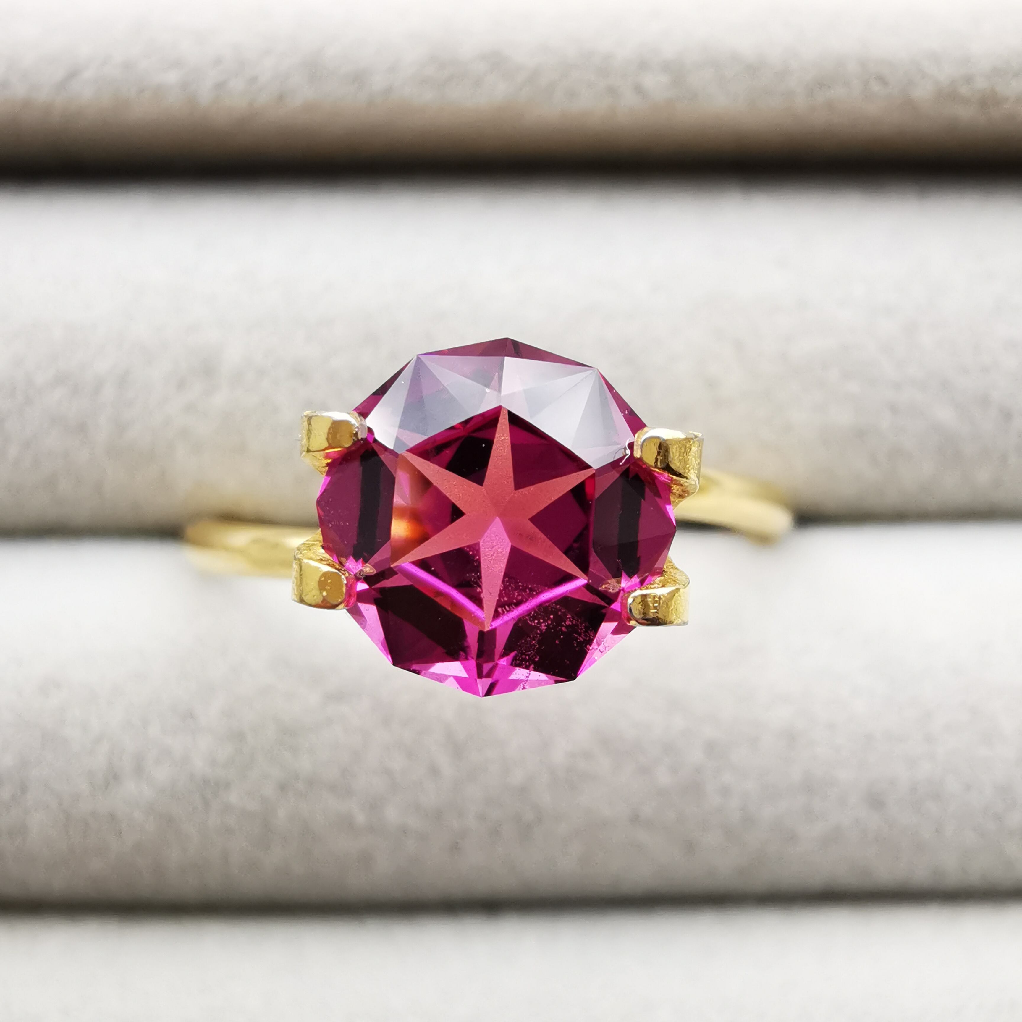 星だけでも可愛いのに、パビリオンはローズカットのように三角形を組合せたカットで、どこから見ても隙のない、カットで可愛らしさを追求した一石です。