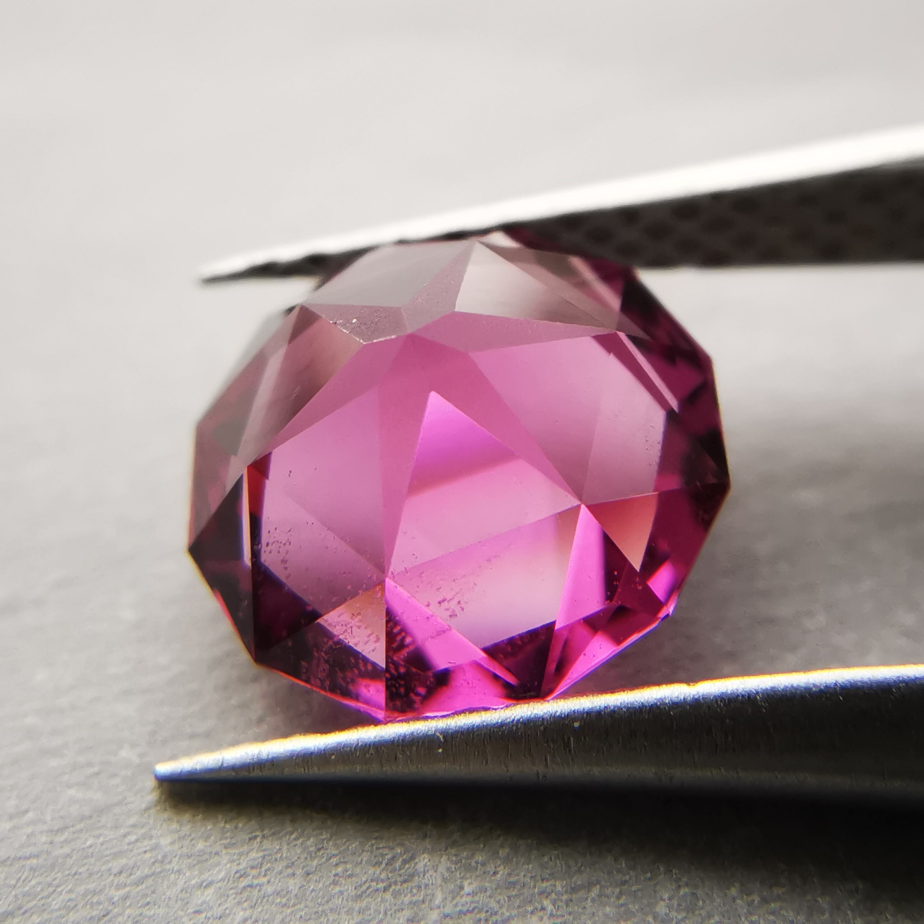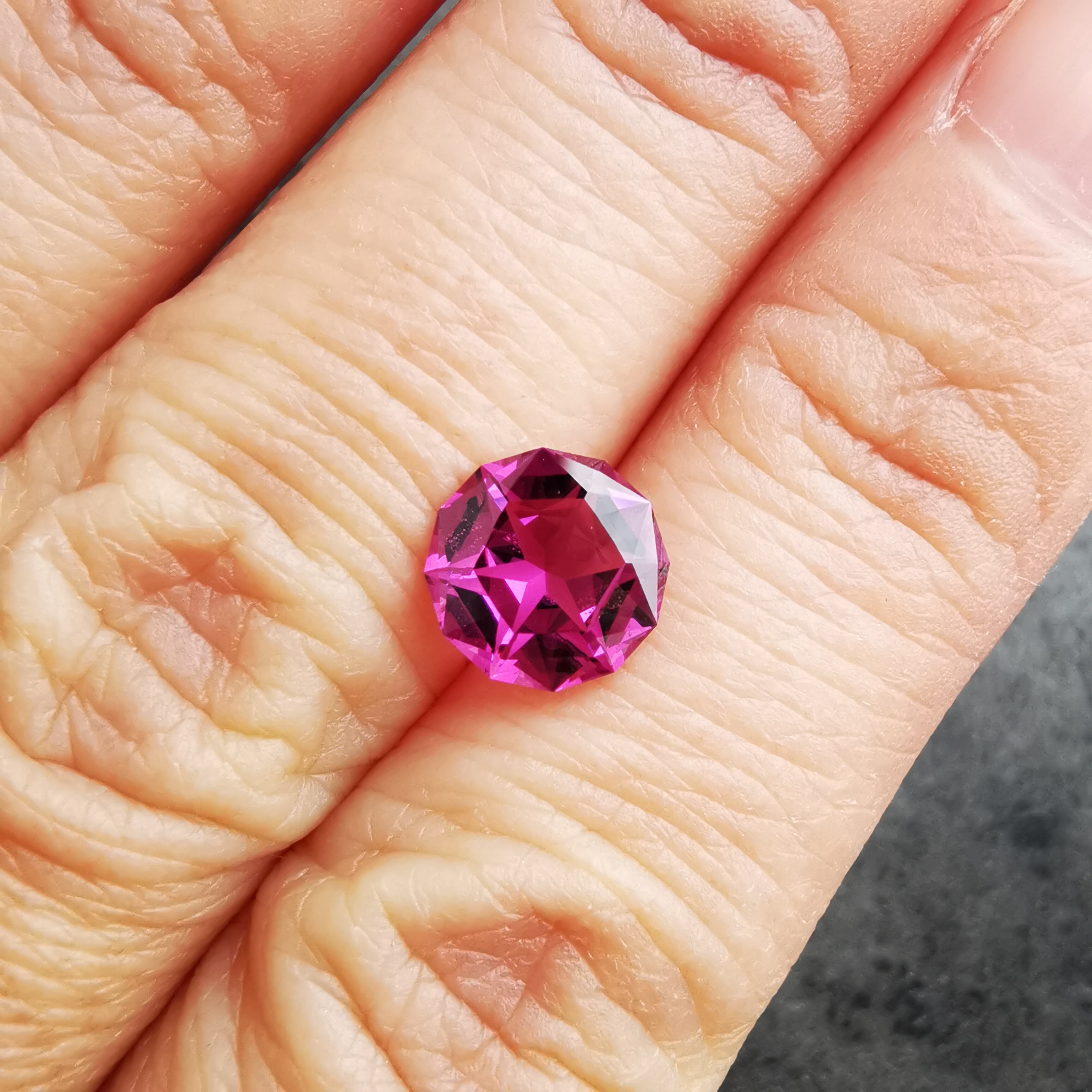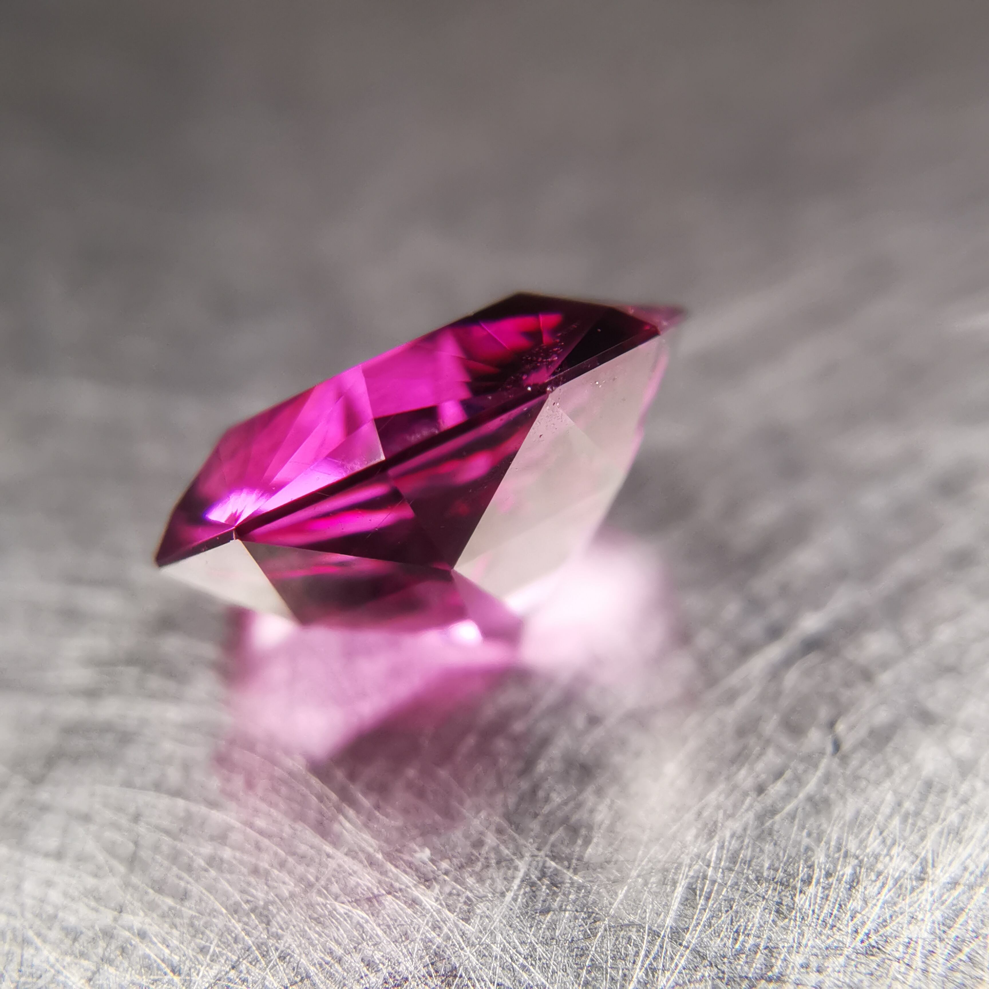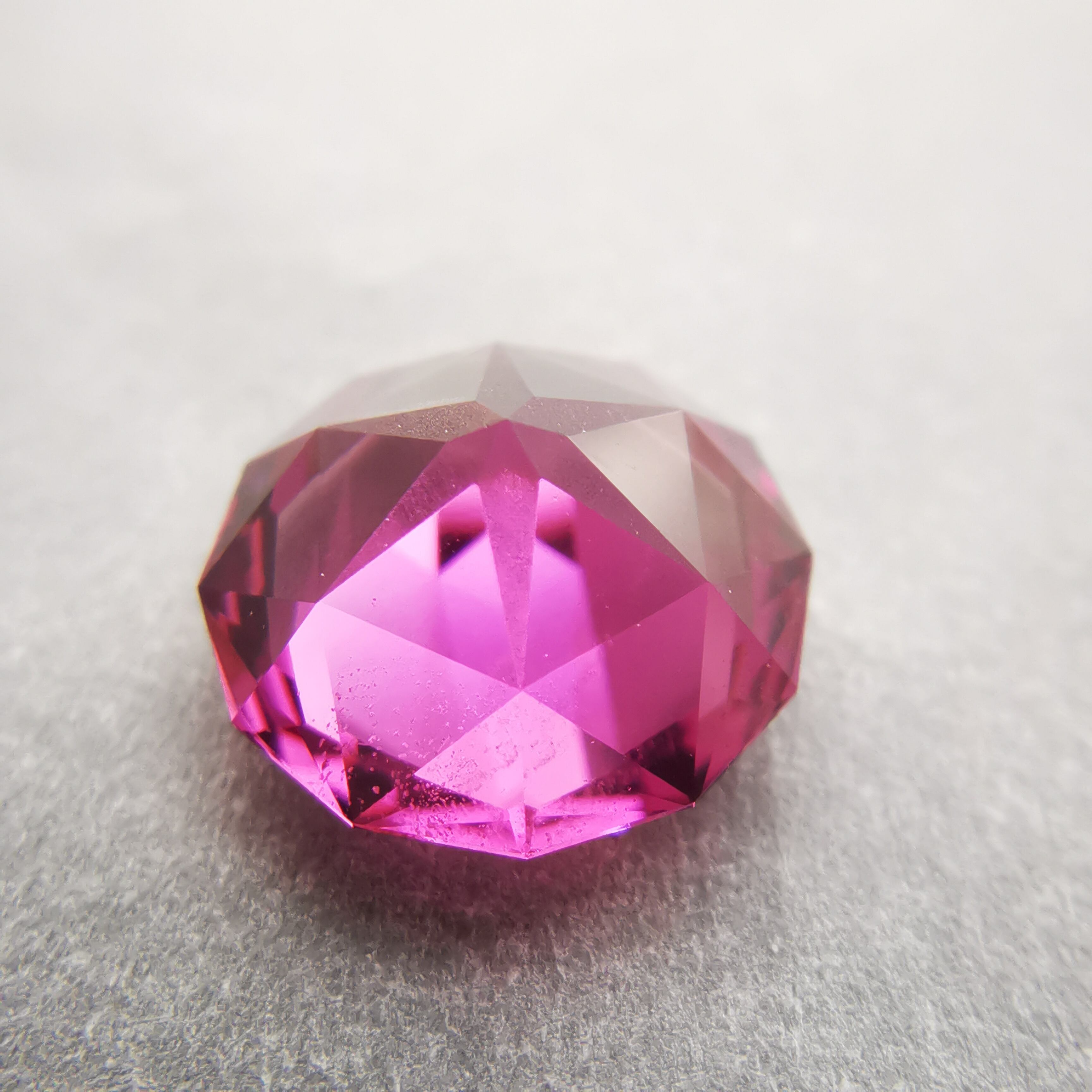 星だけでも可愛いのに、パビリオンはローズカットのように三角形を組合せたカットで、どこから見ても隙のない、カットで可愛らしさを追求した一石です。