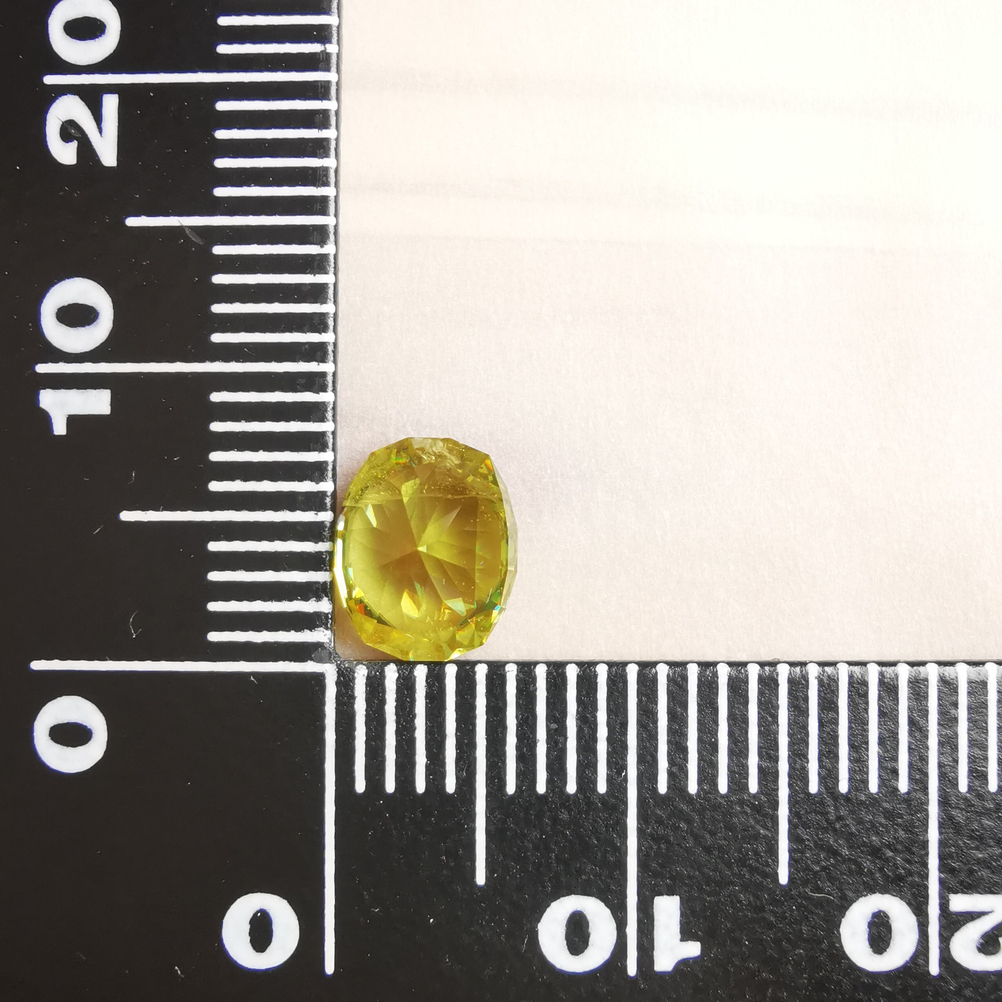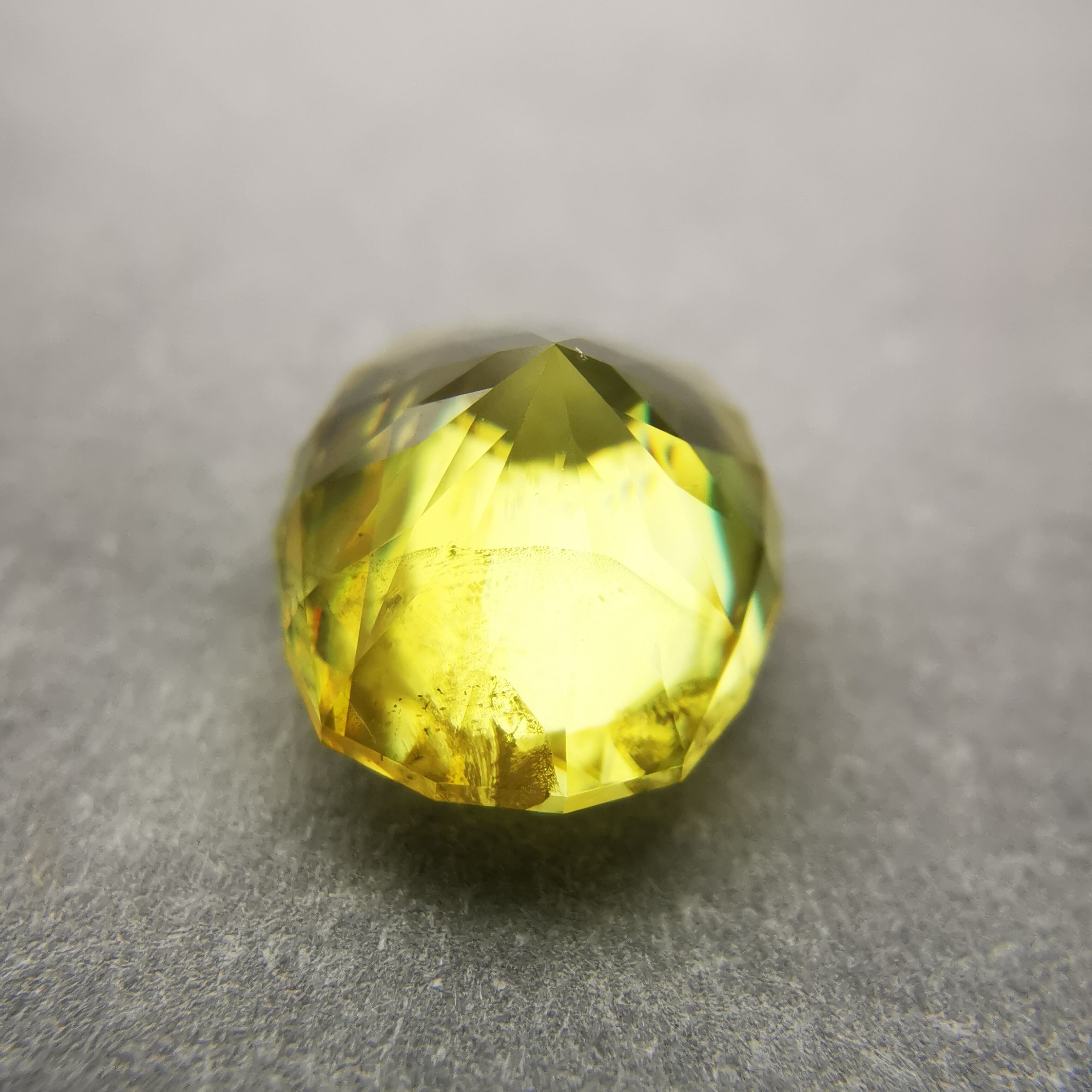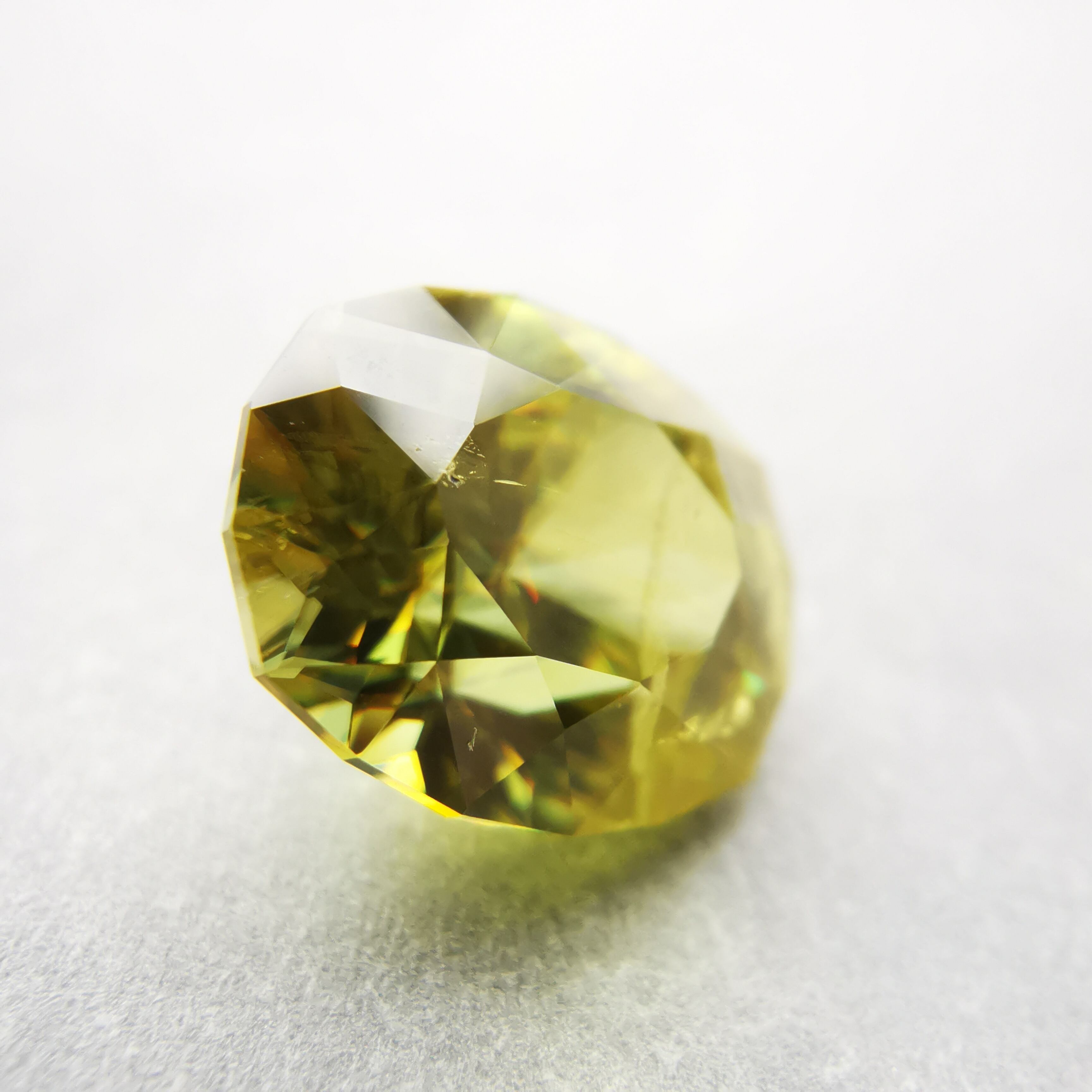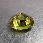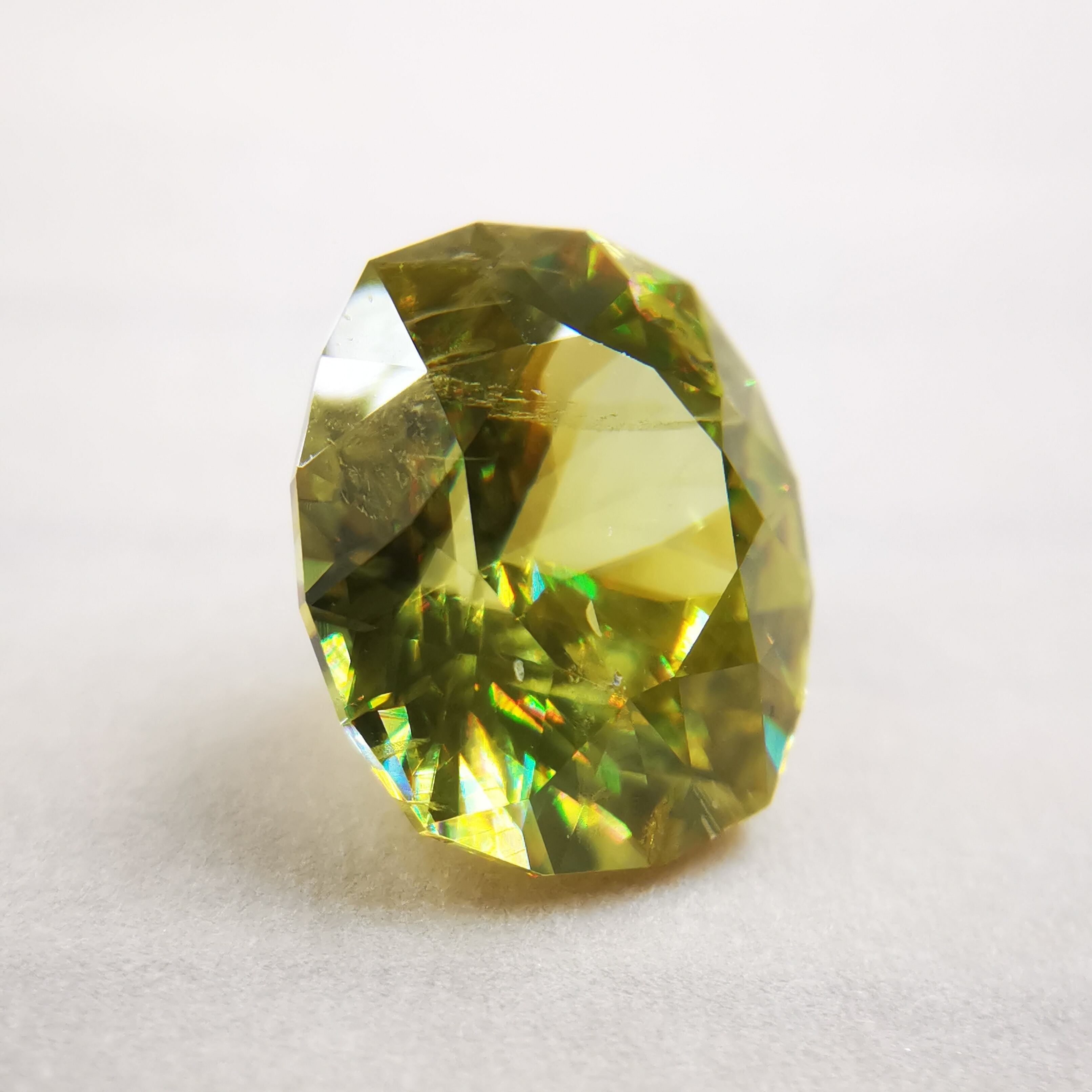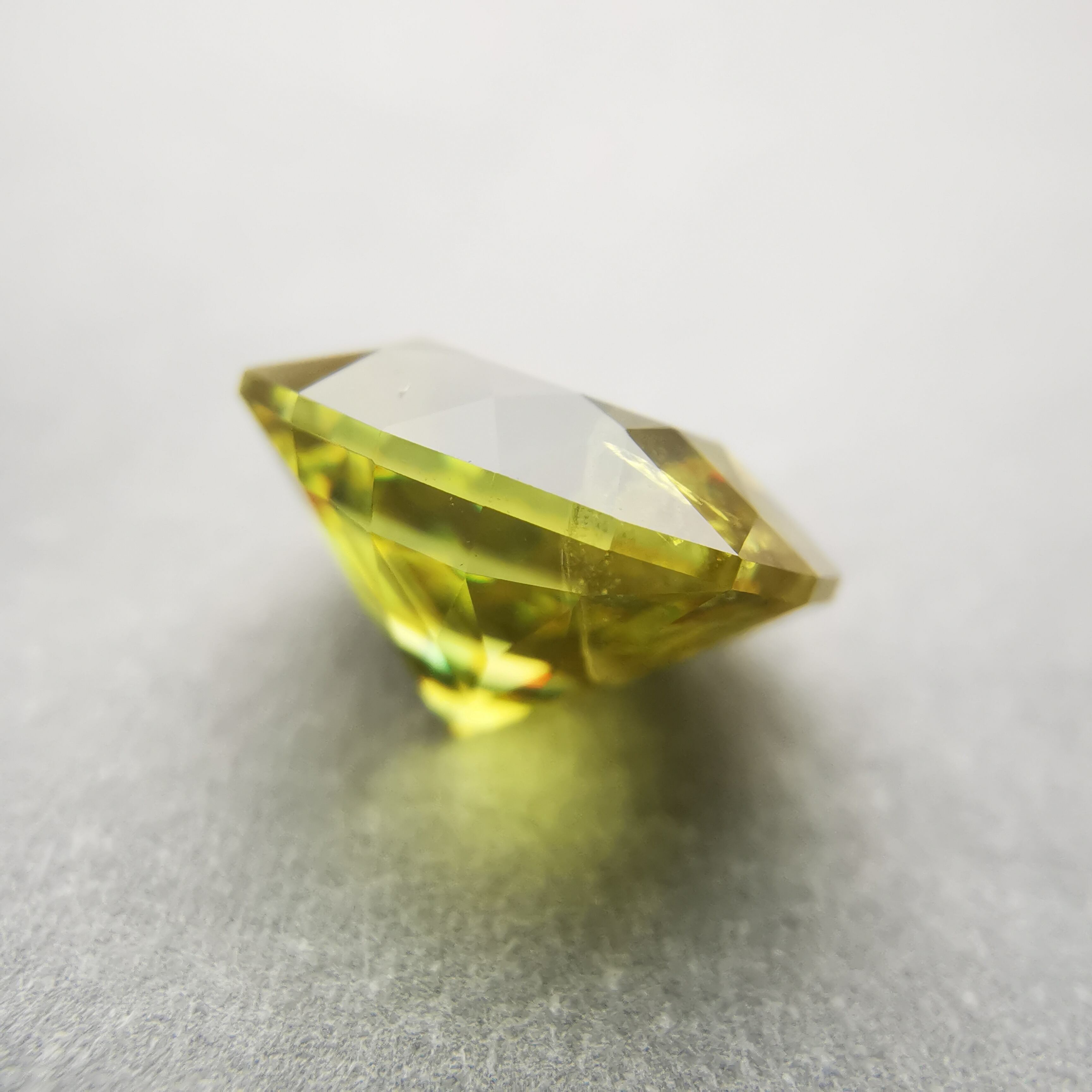 明るく鮮やかな黄緑色から、カラフルなファイアがイルミネーションのように瞬くスフェーンです。