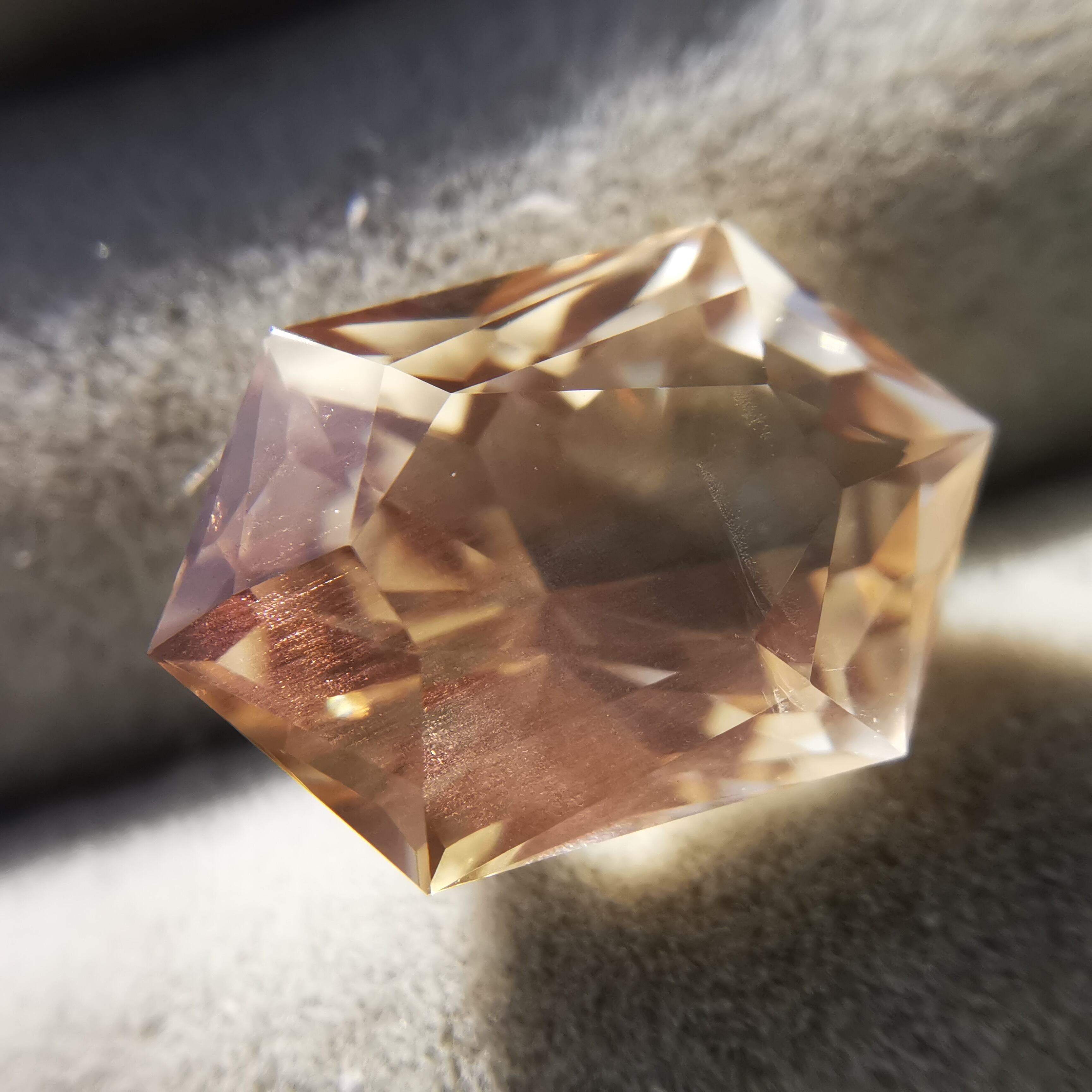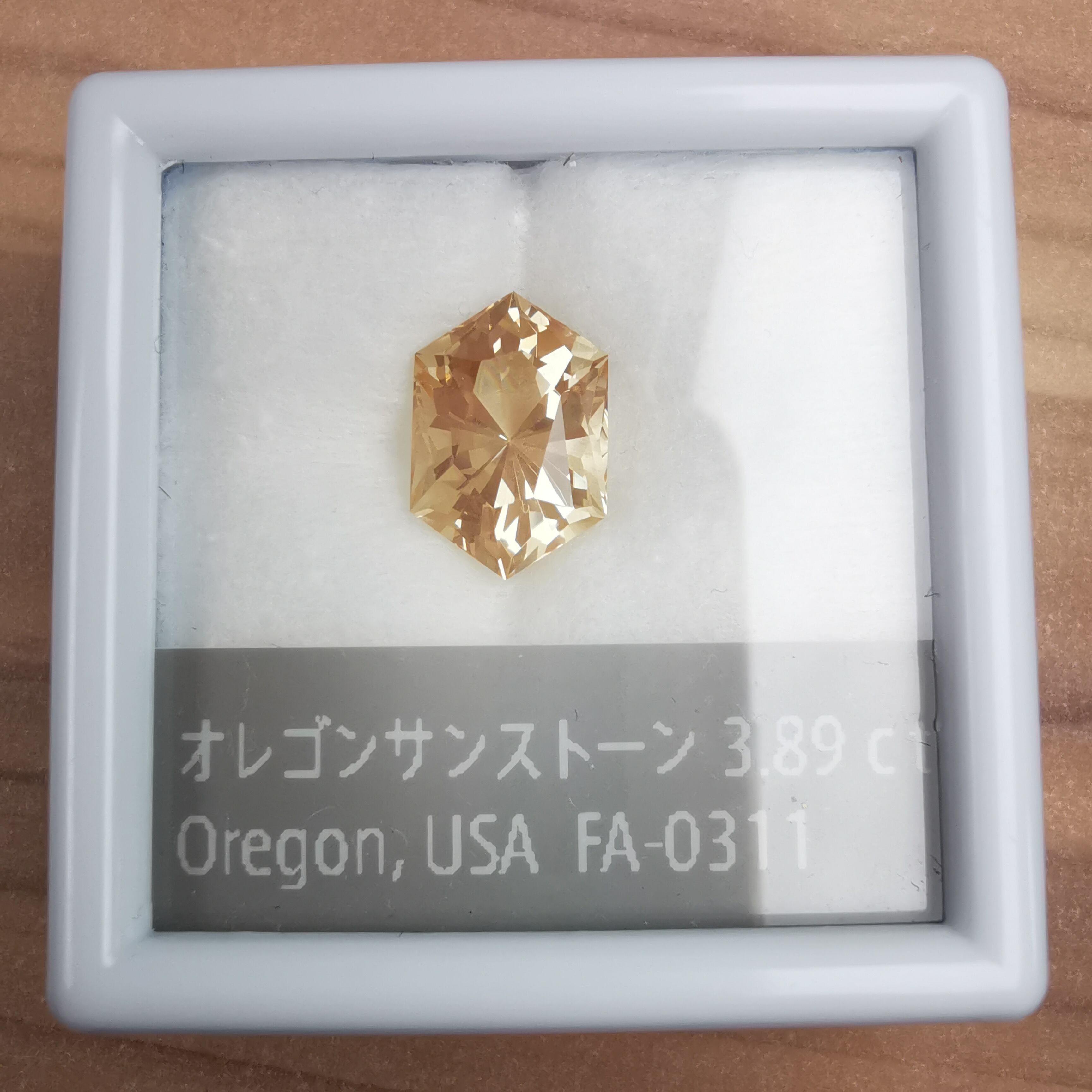 淡いシャンパンカラーが明るくきらめくオレゴンサンストーンです。
