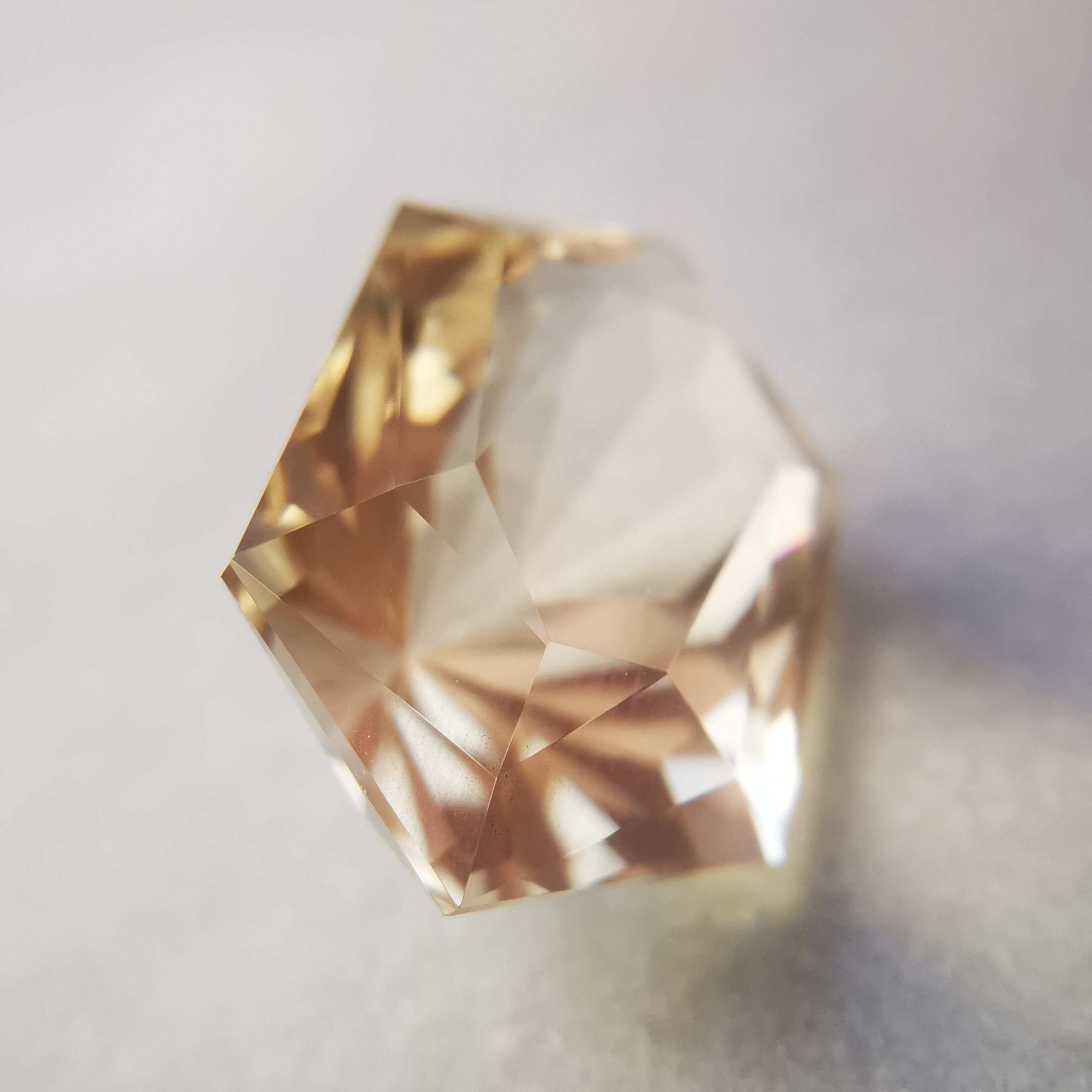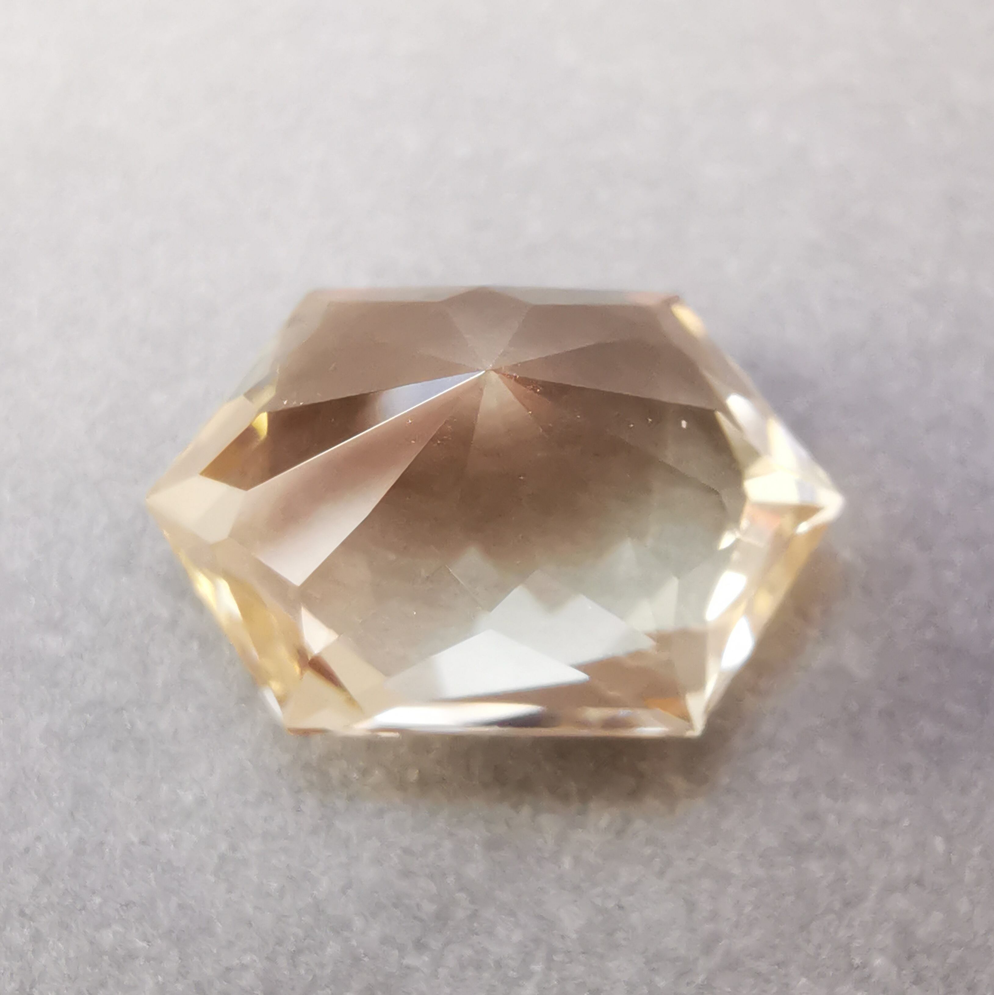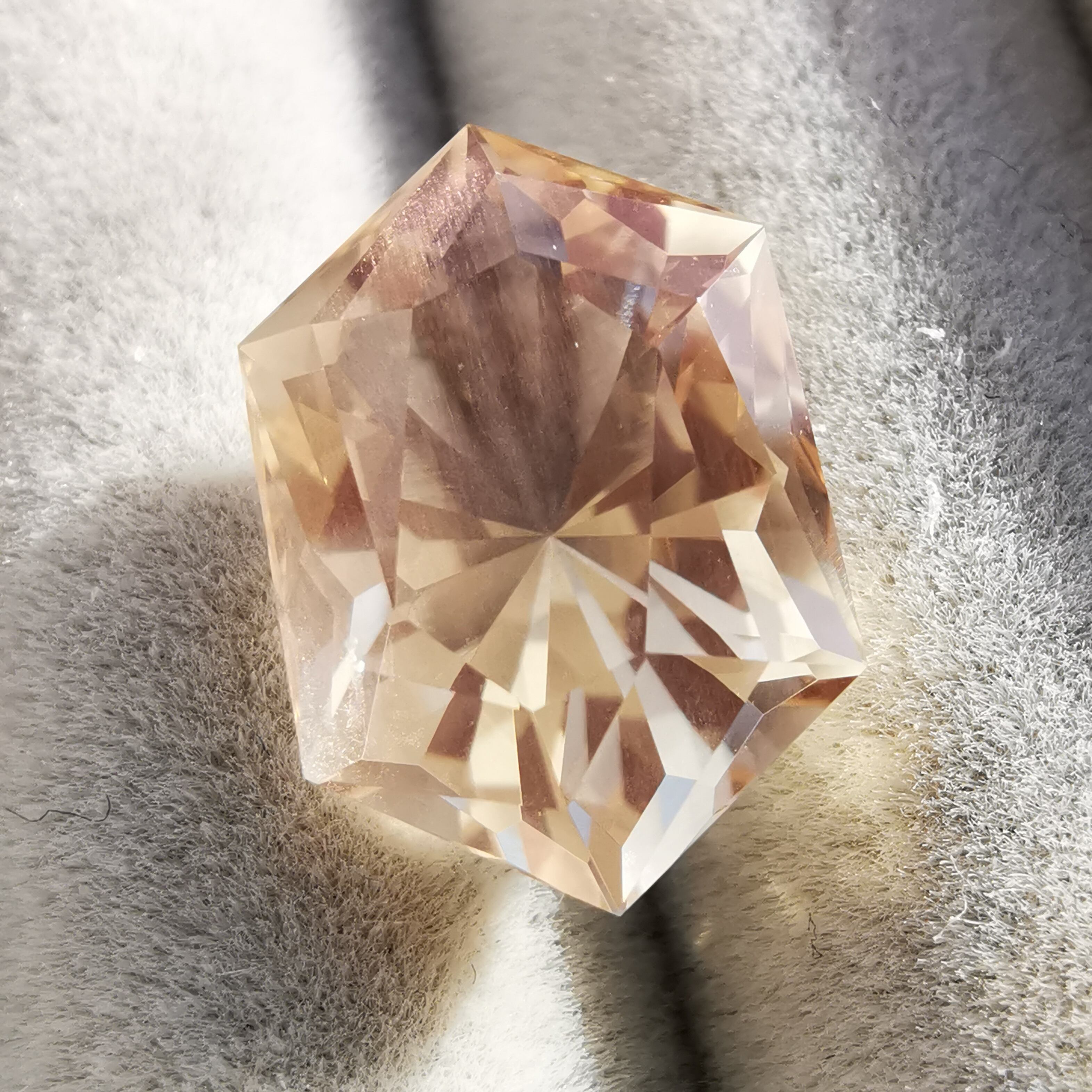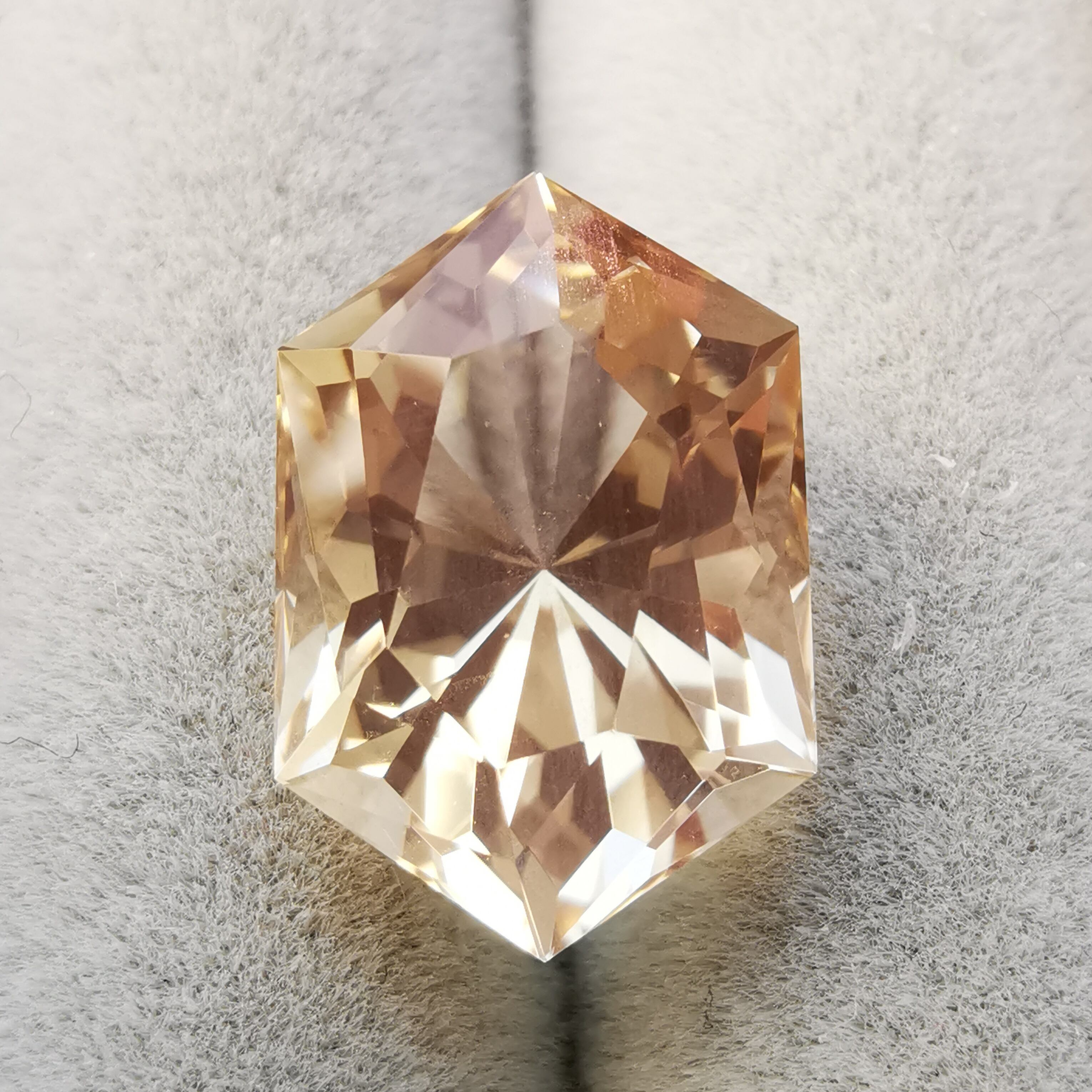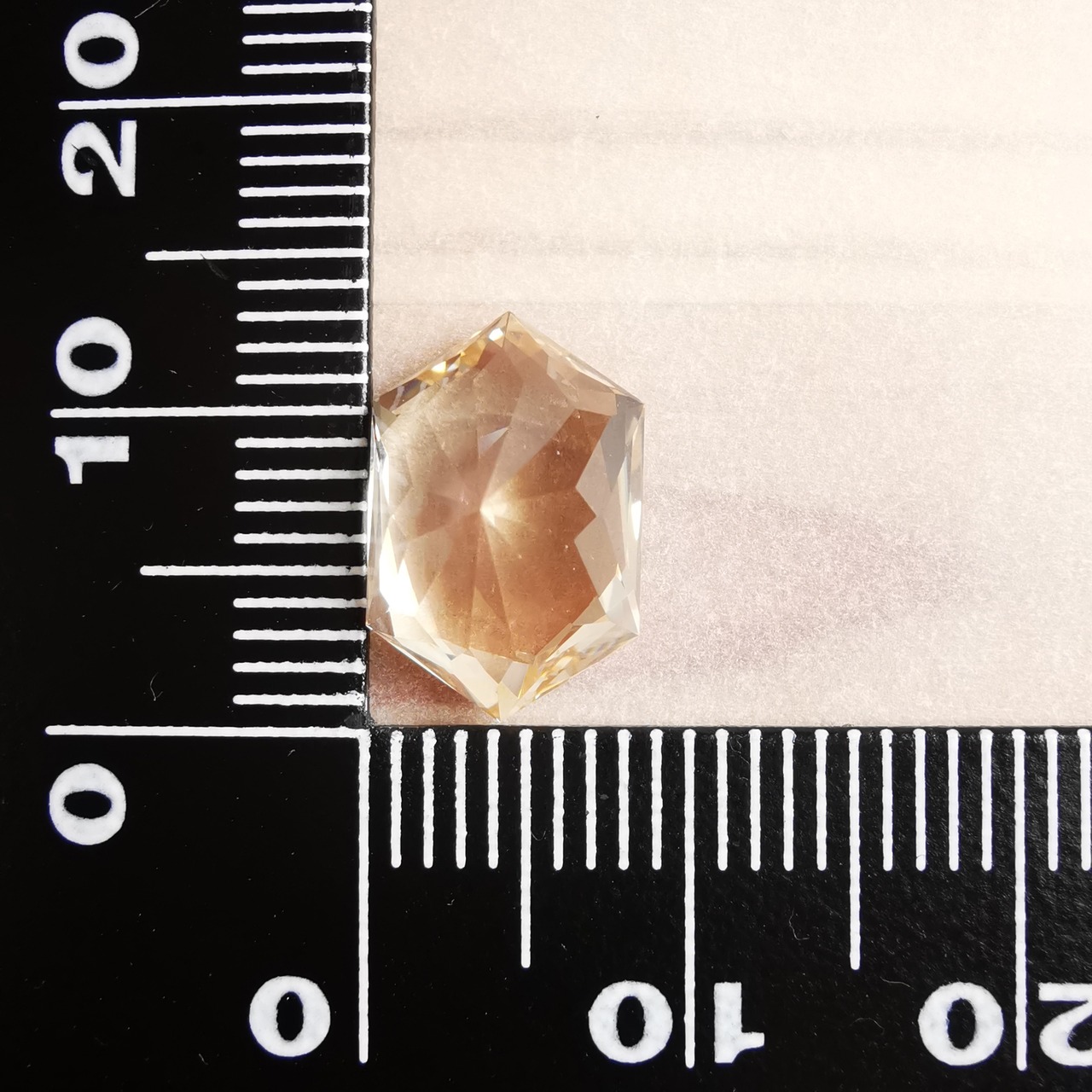 六角形のフォルムに、テーブル面はアシンメトリーに配置された複雑なデザインを、肉眼でしっかり楽しめる大粒な一石です。