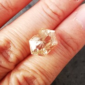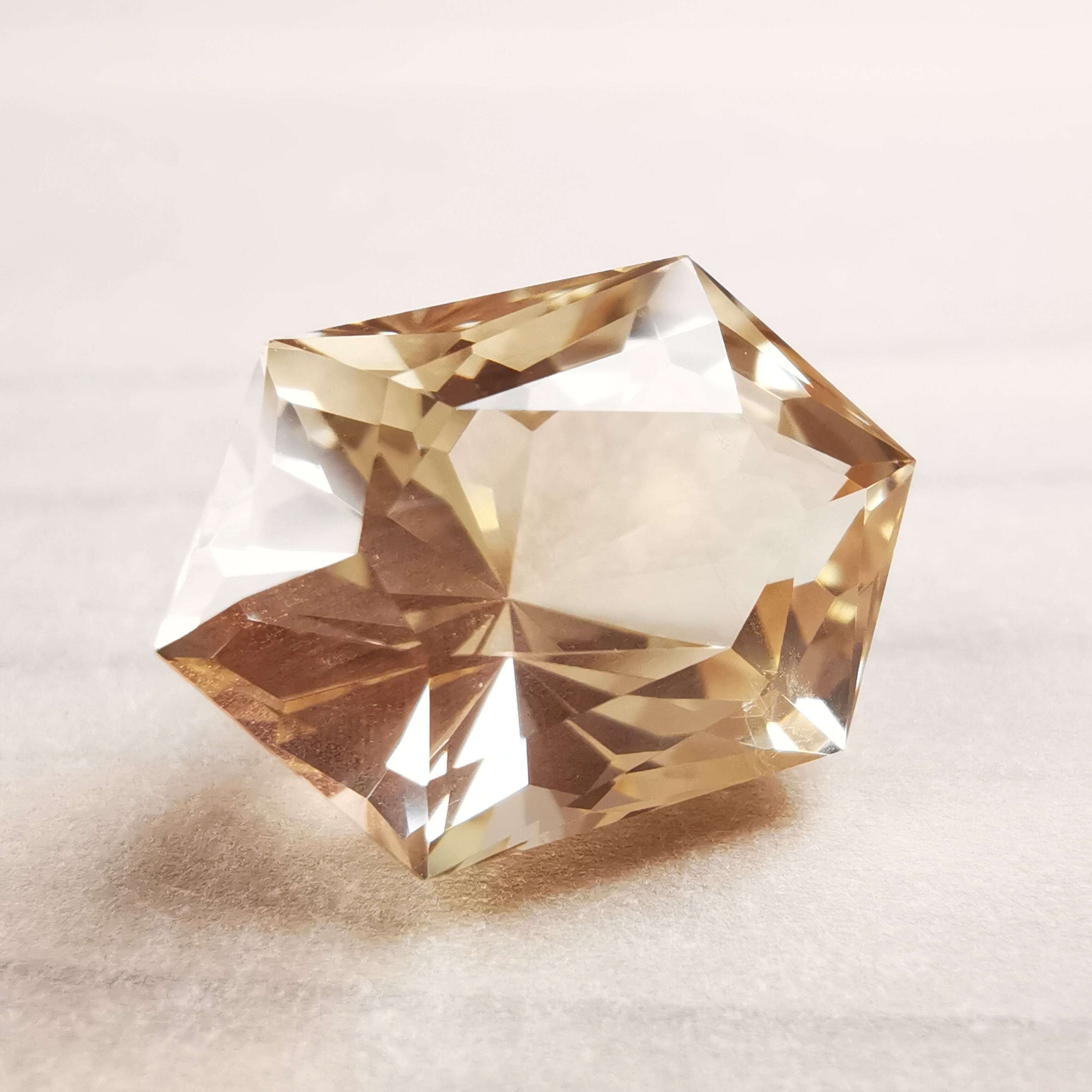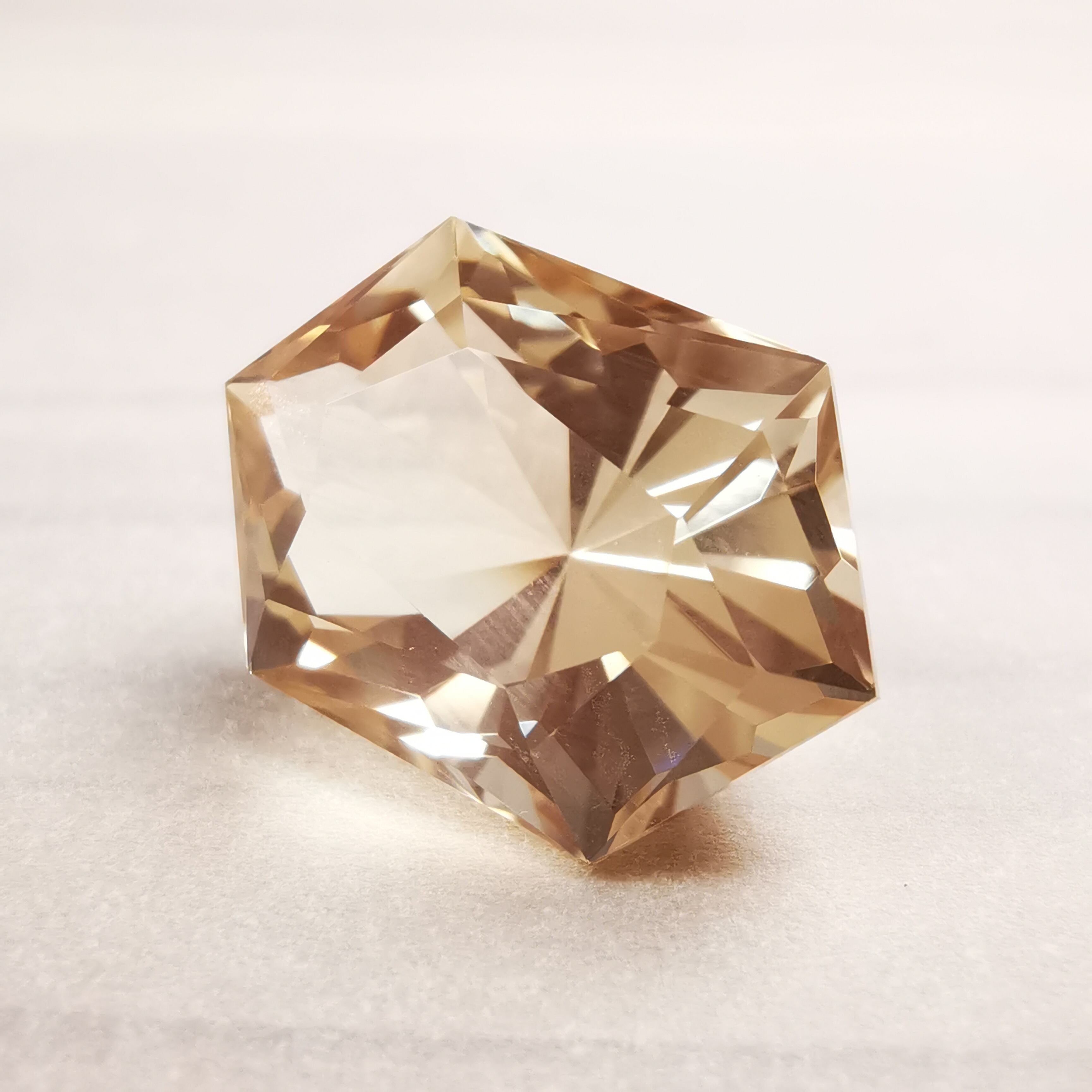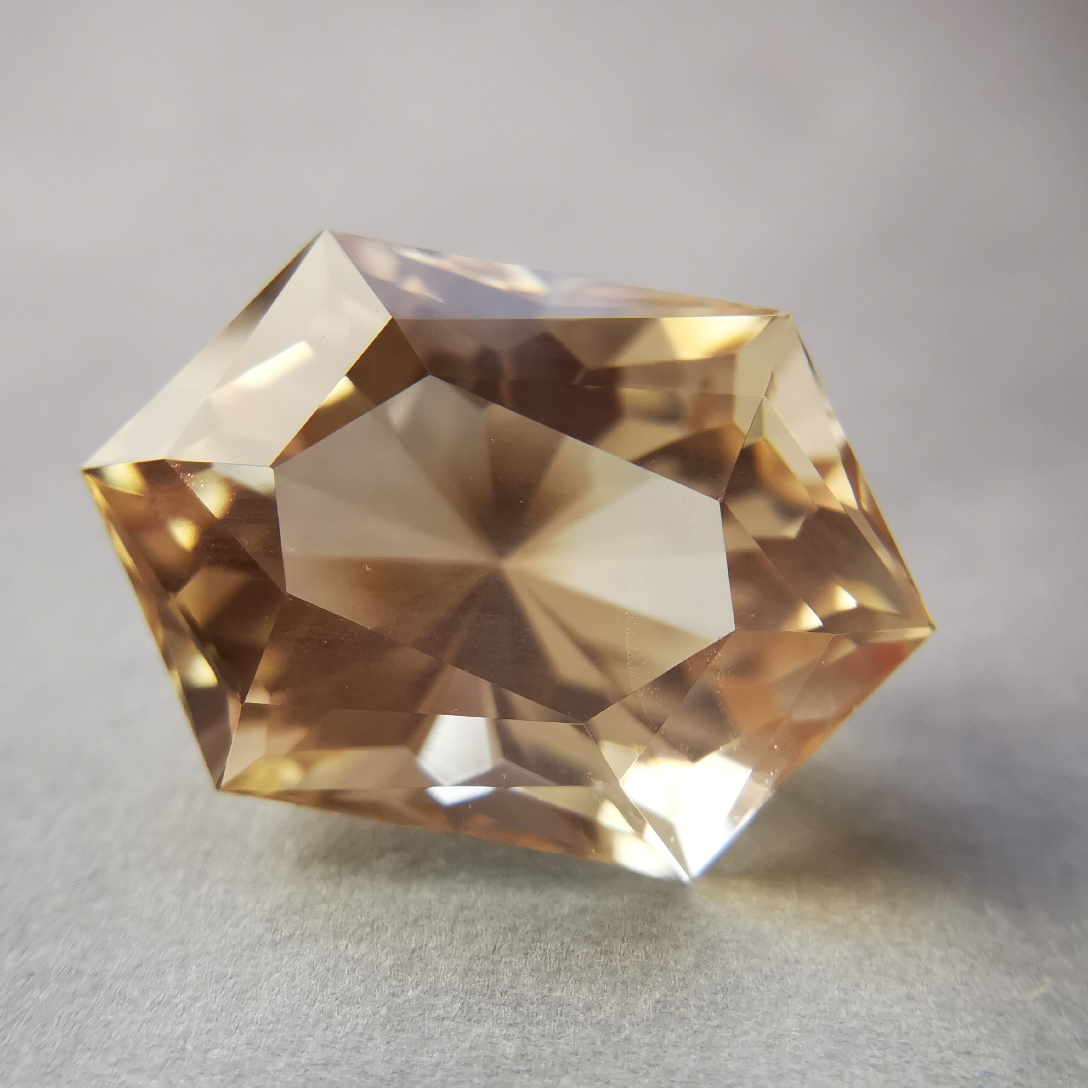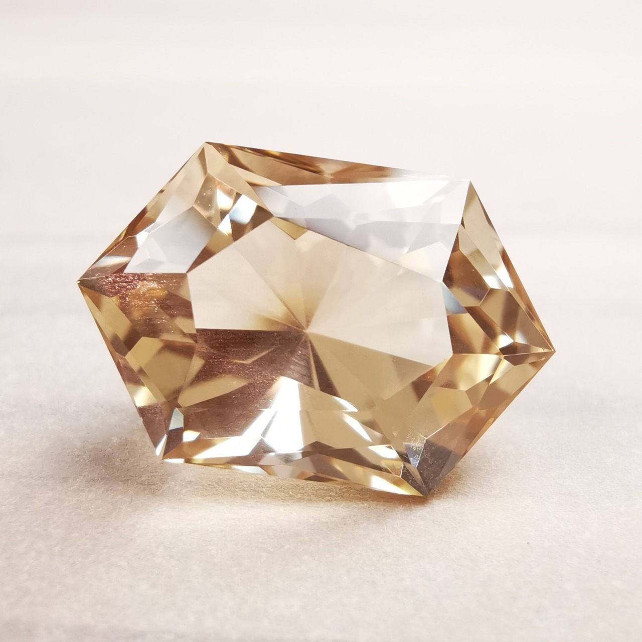 六角形のフォルムに、テーブル面はアシンメトリーに配置された複雑なデザインを、肉眼でしっかり楽しめる大粒な一石です。