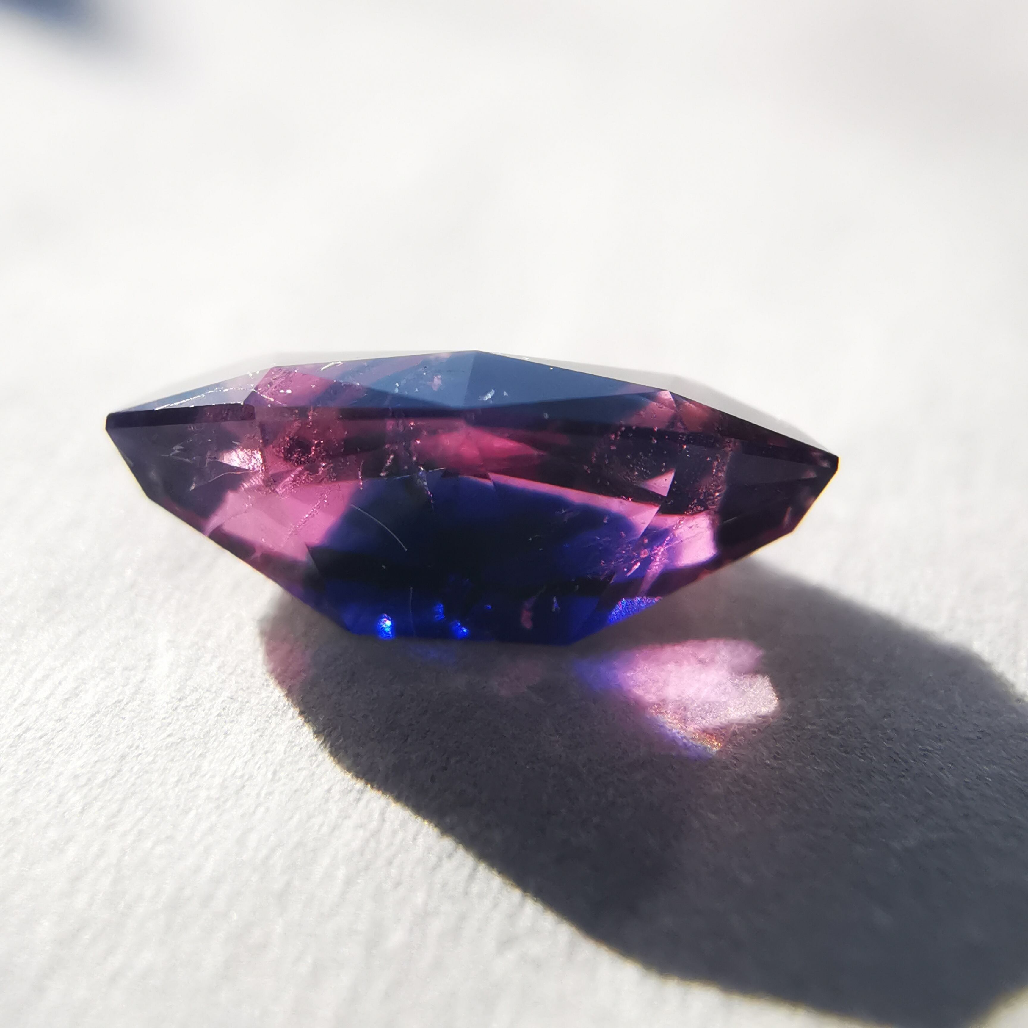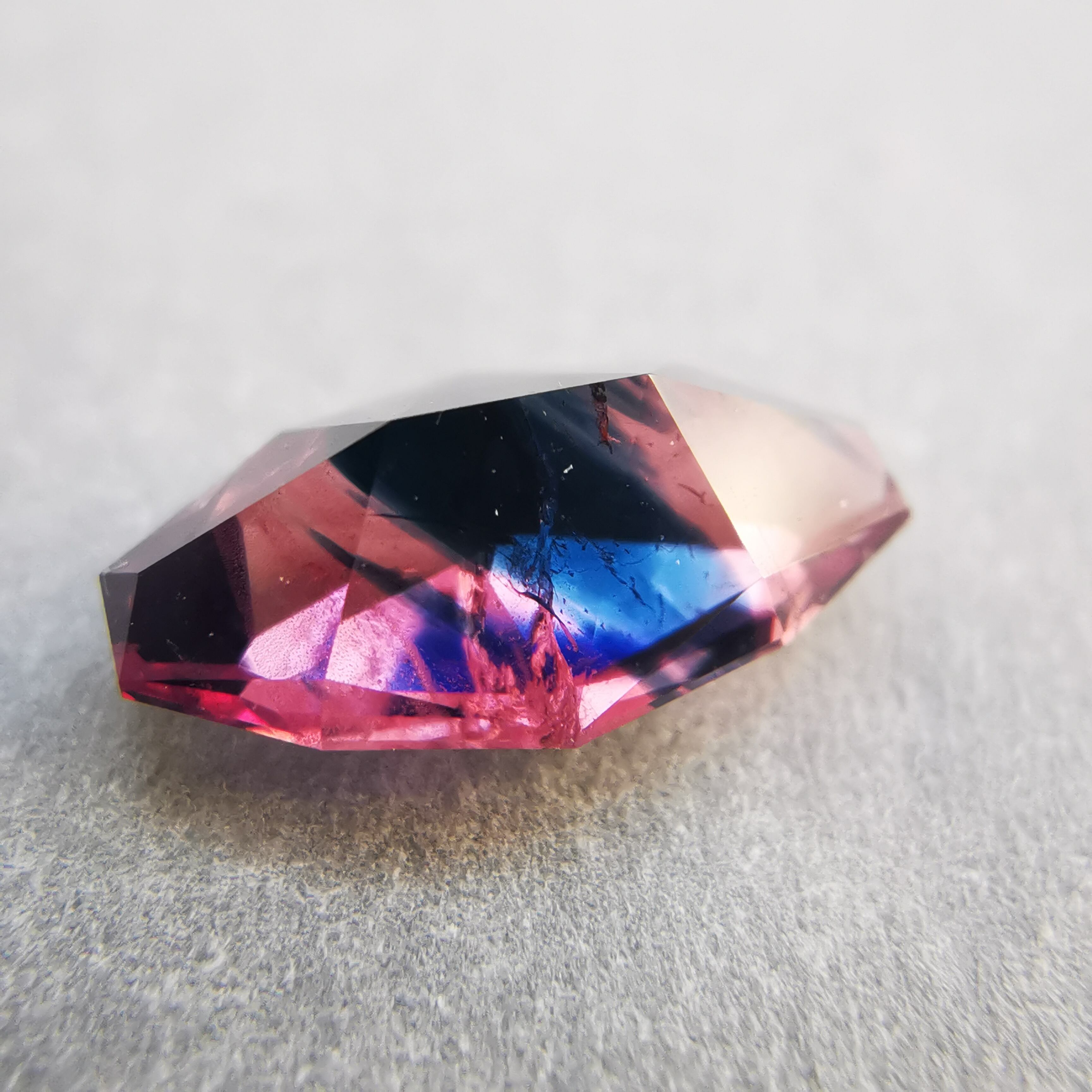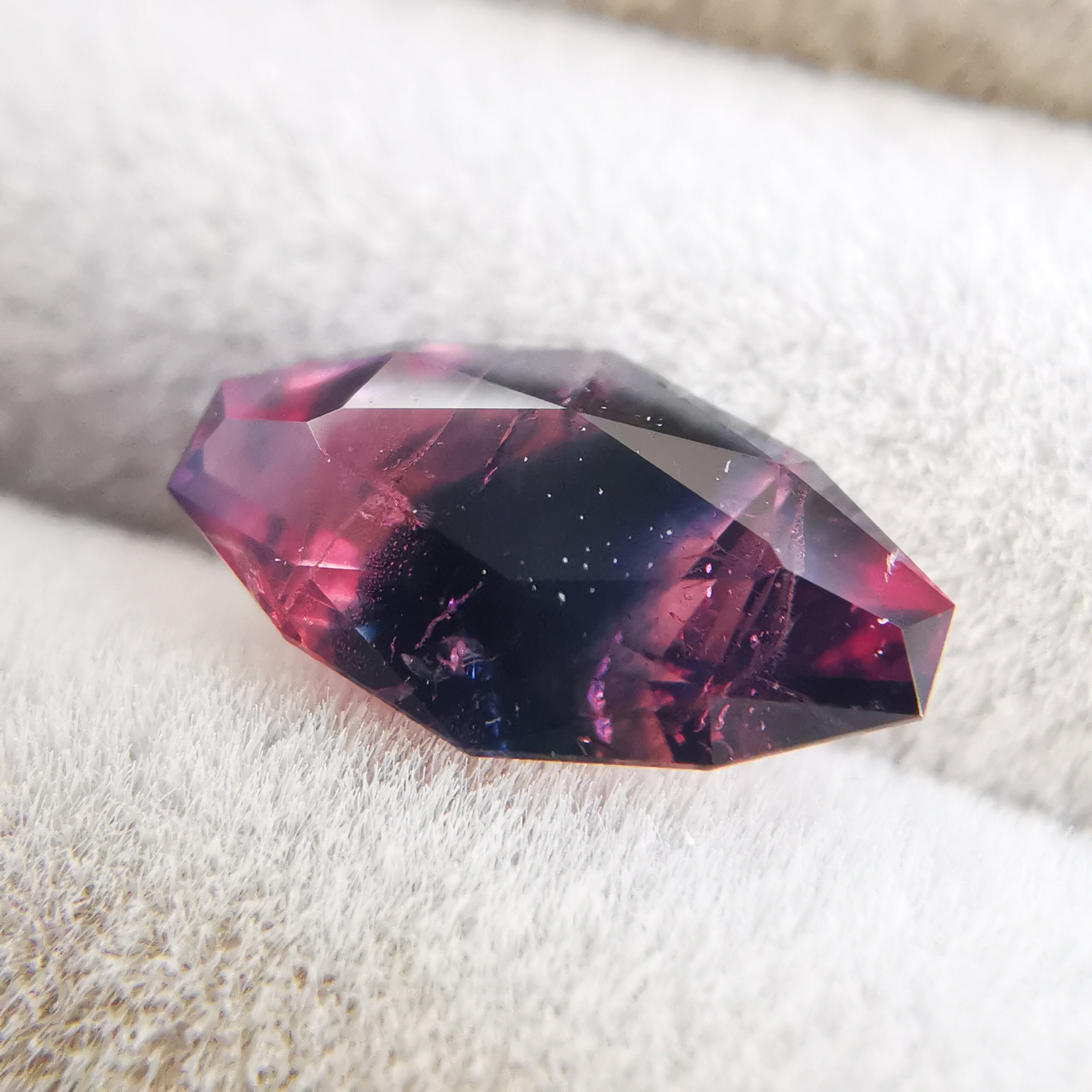 ピンクと濃紺が大胆に混じりあったバイカラーのサファイアです。