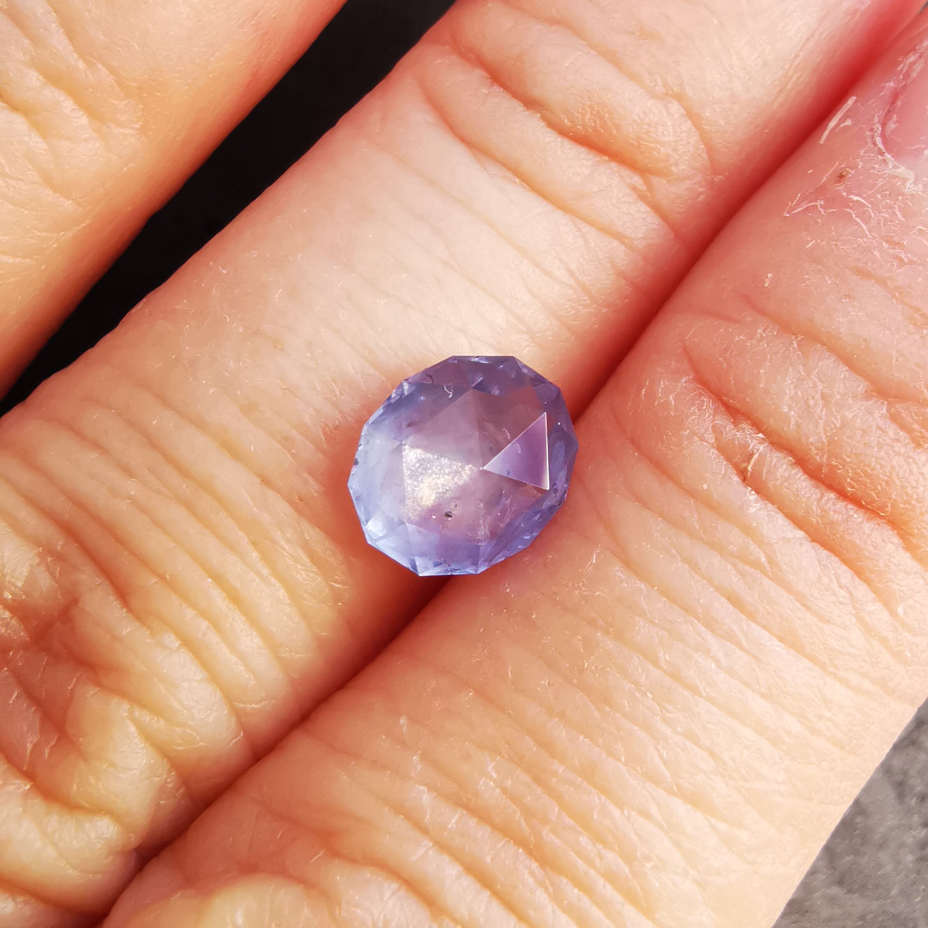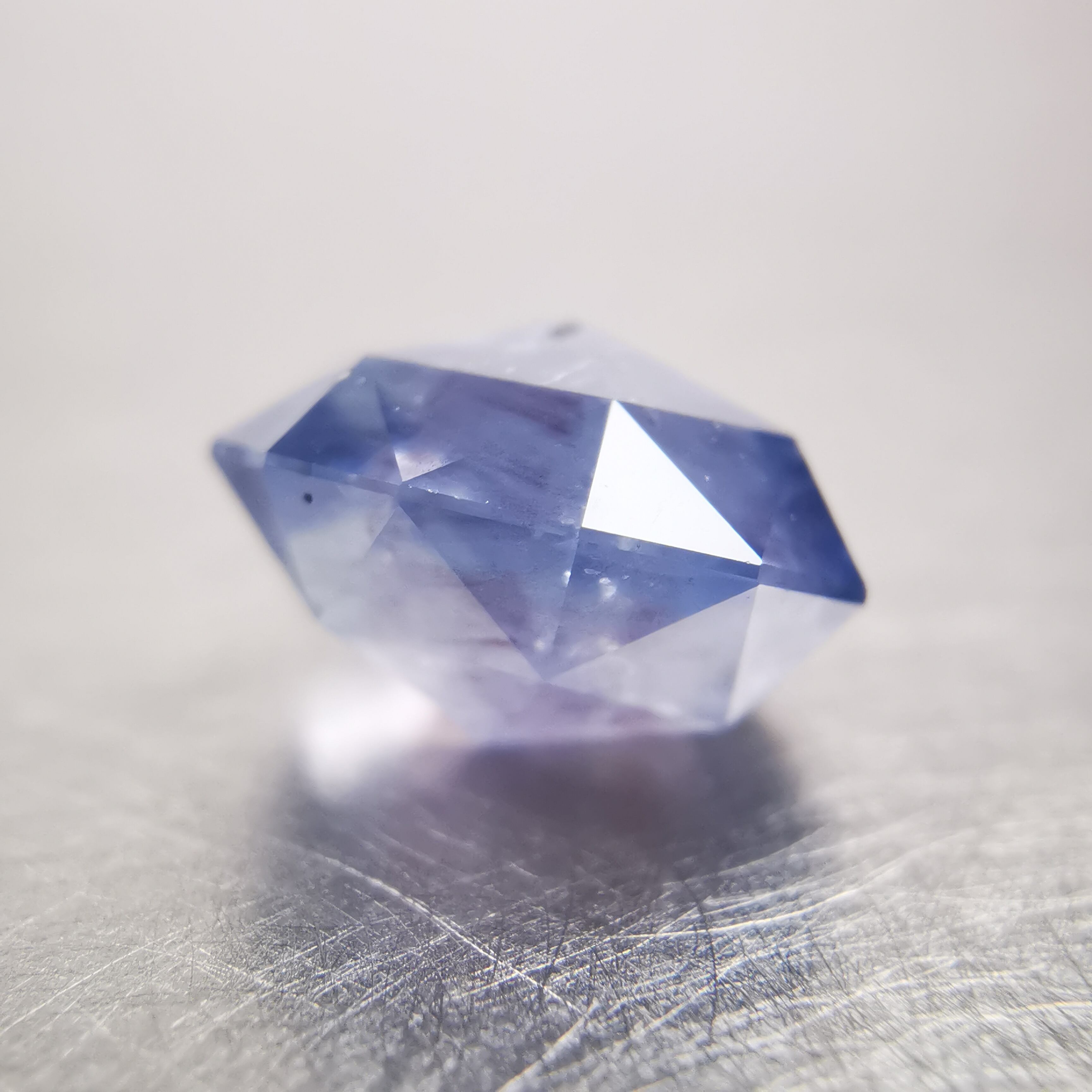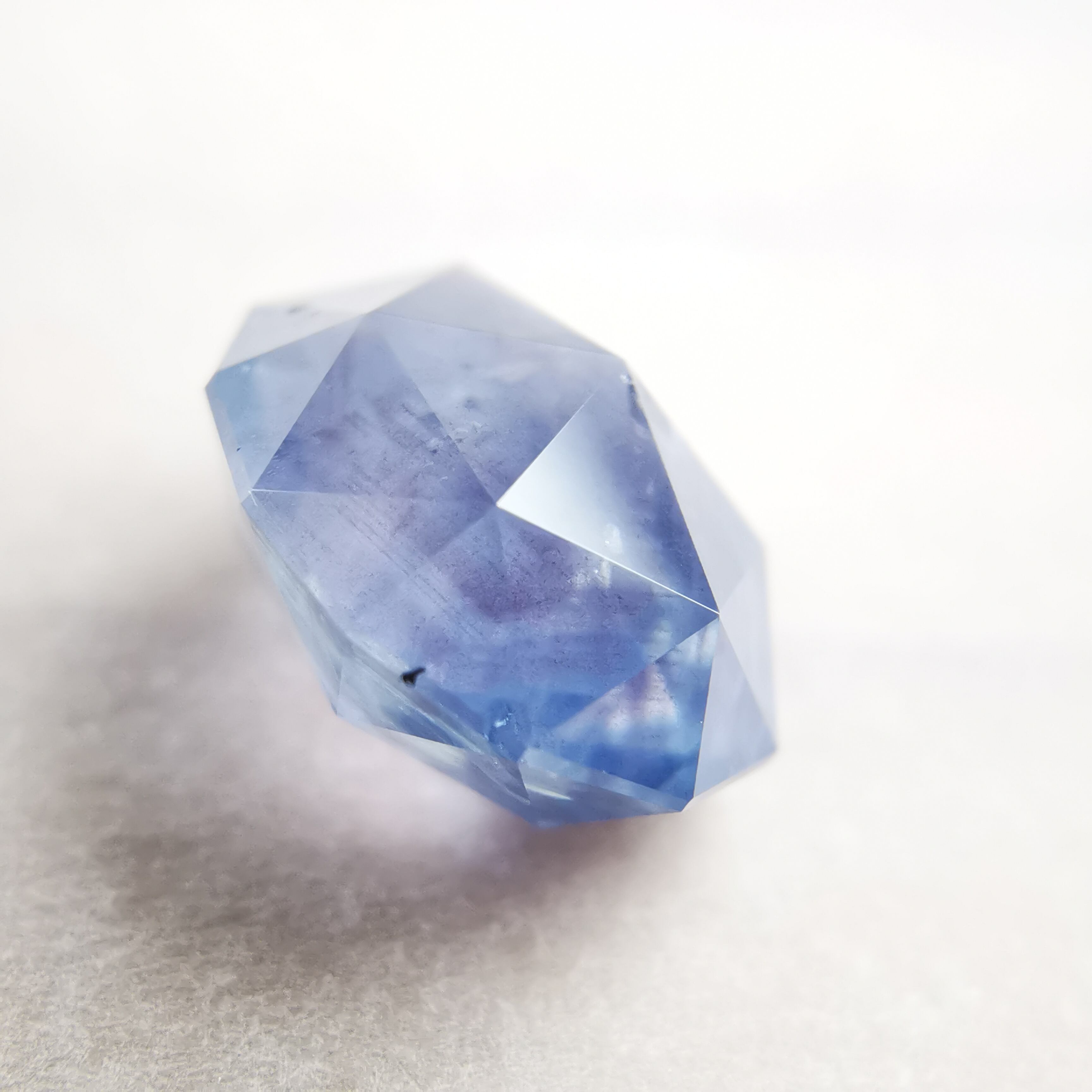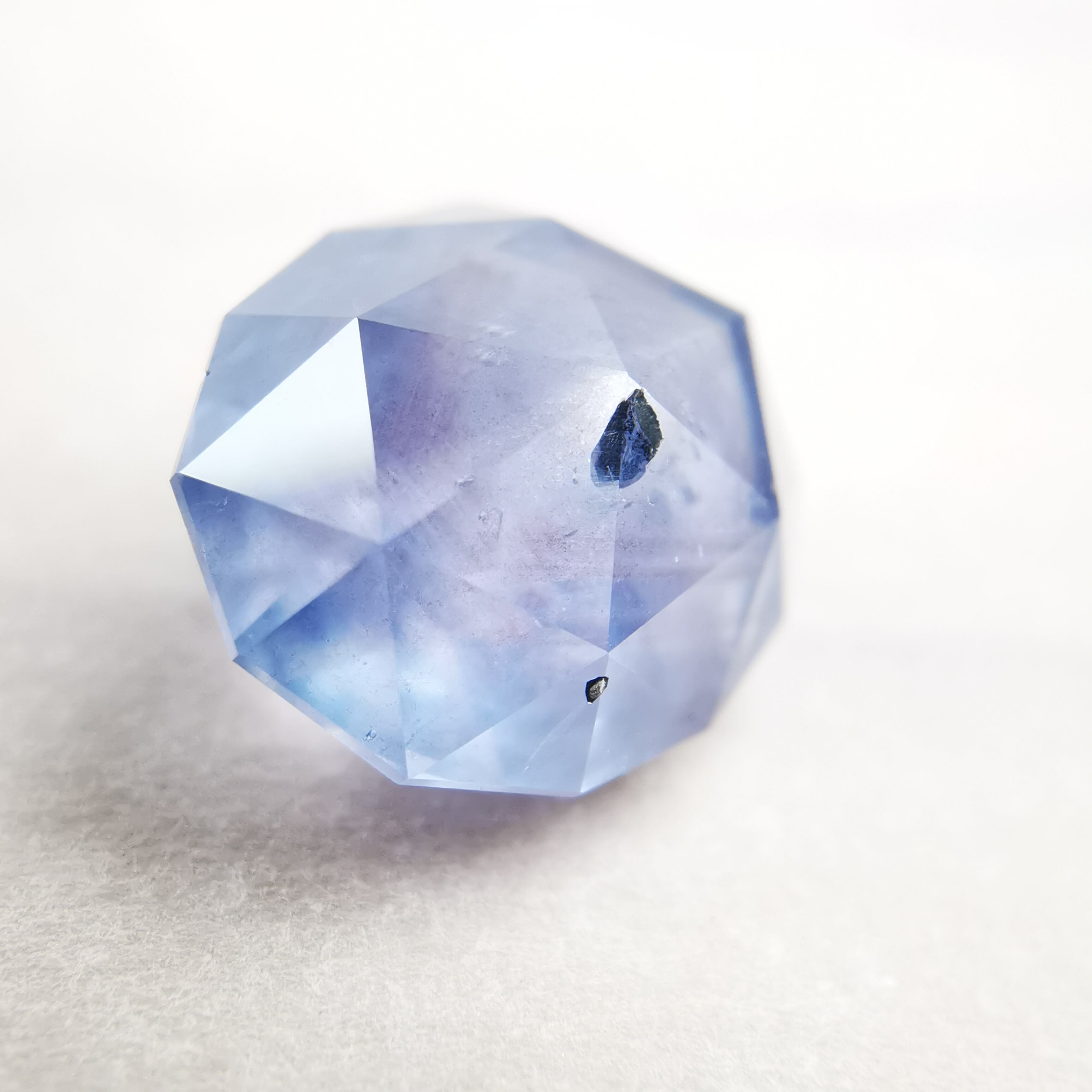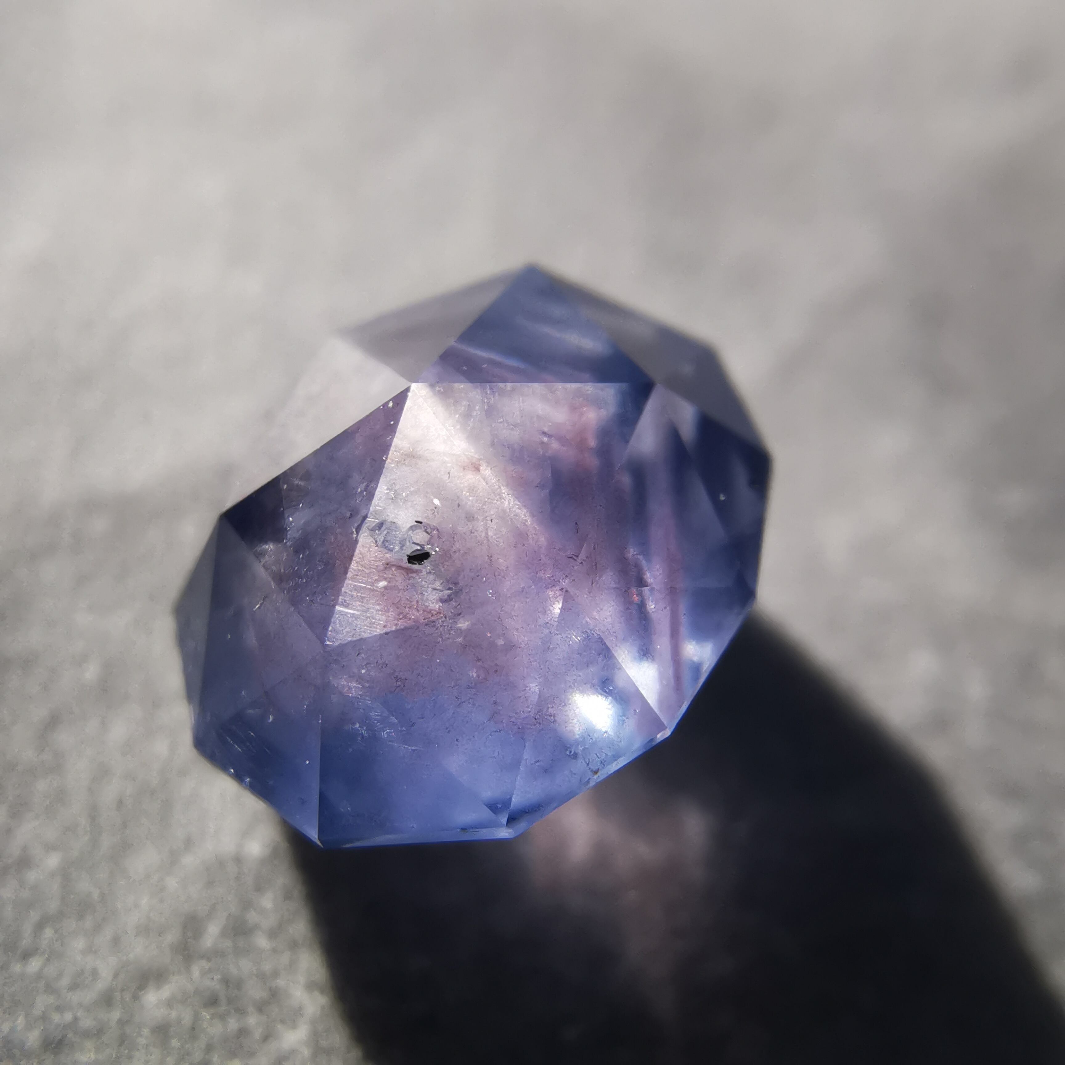 スターサファイアをリカットしたので、シルキーなインクルージョンがたっぷりと入り、光が当たるとキラキラと面で輝きます。