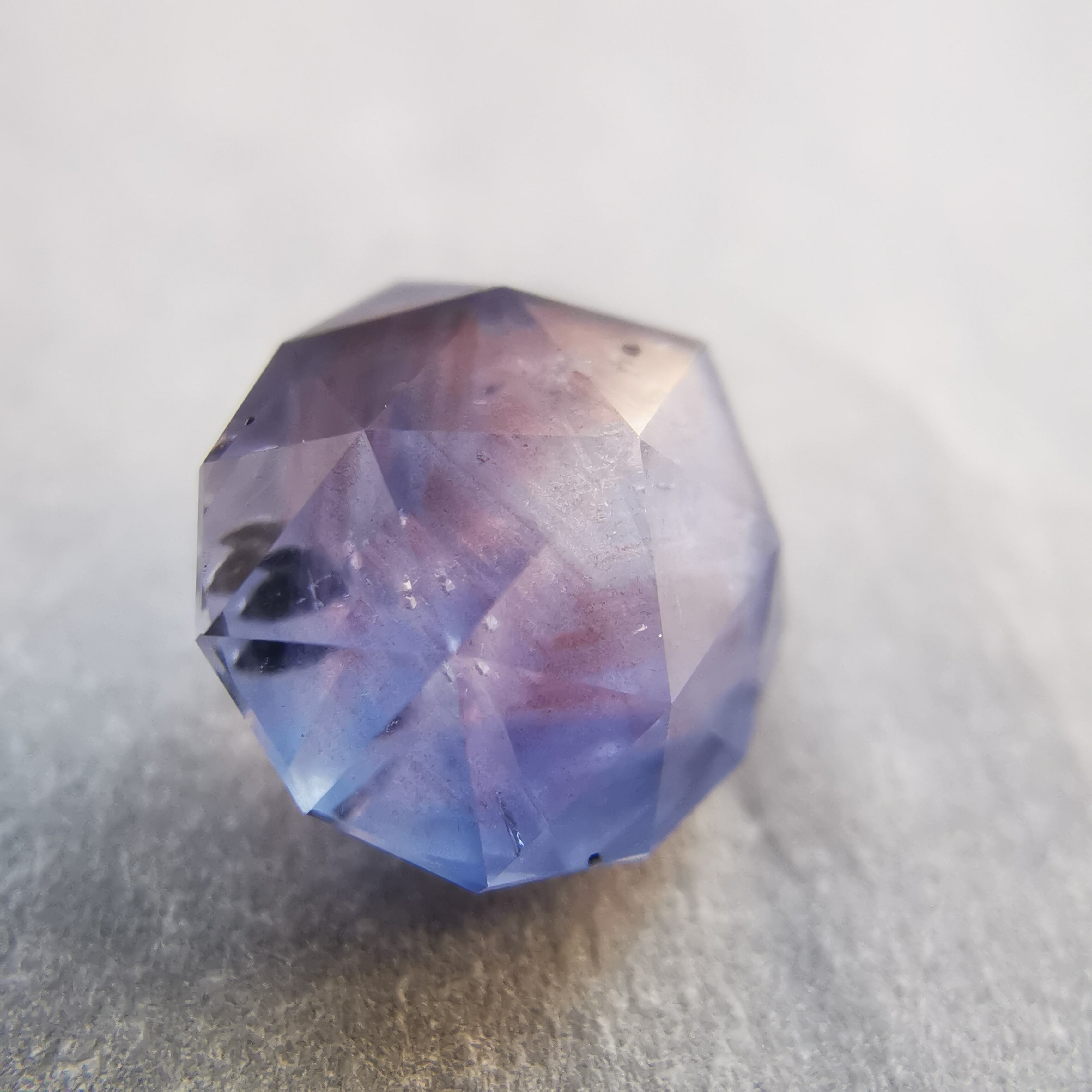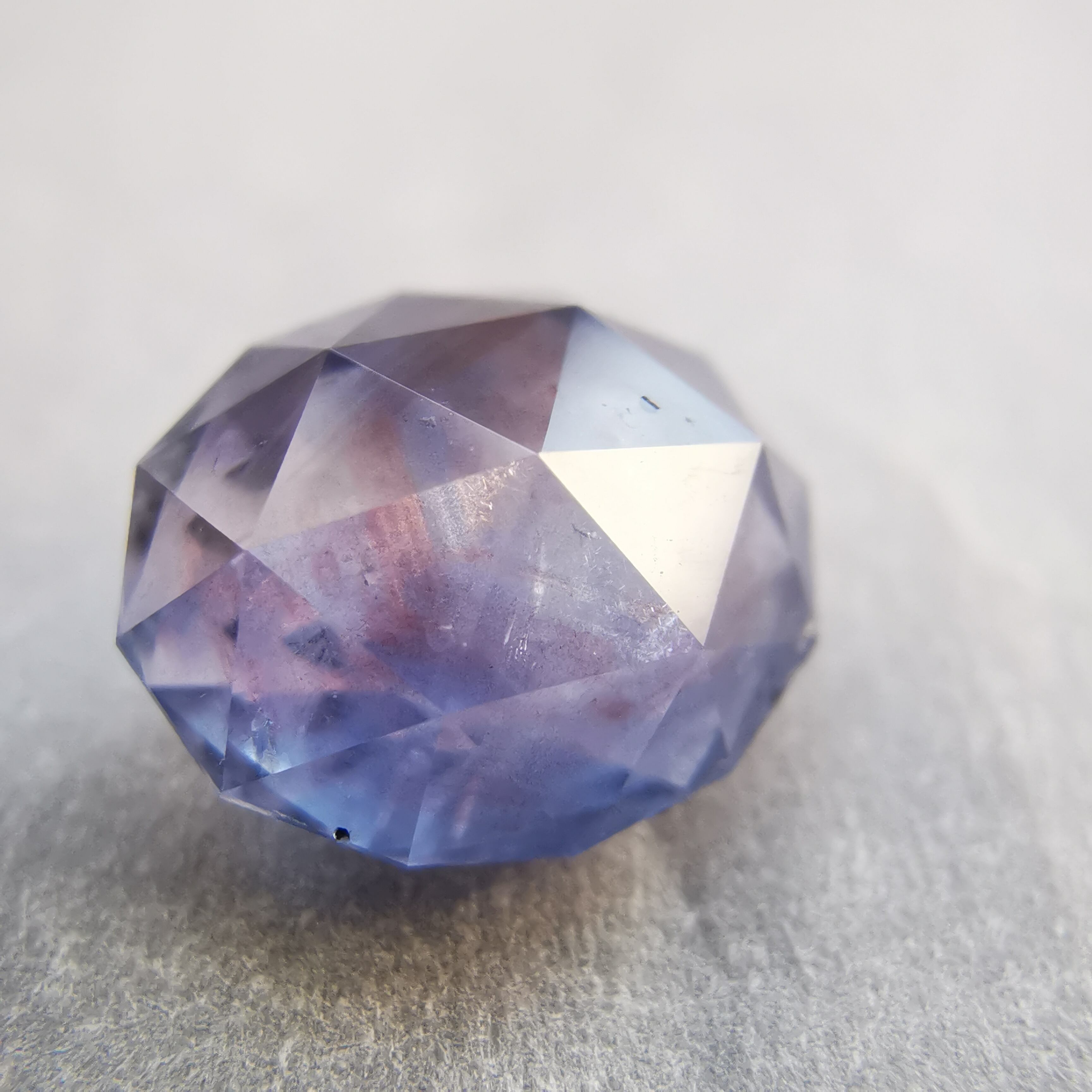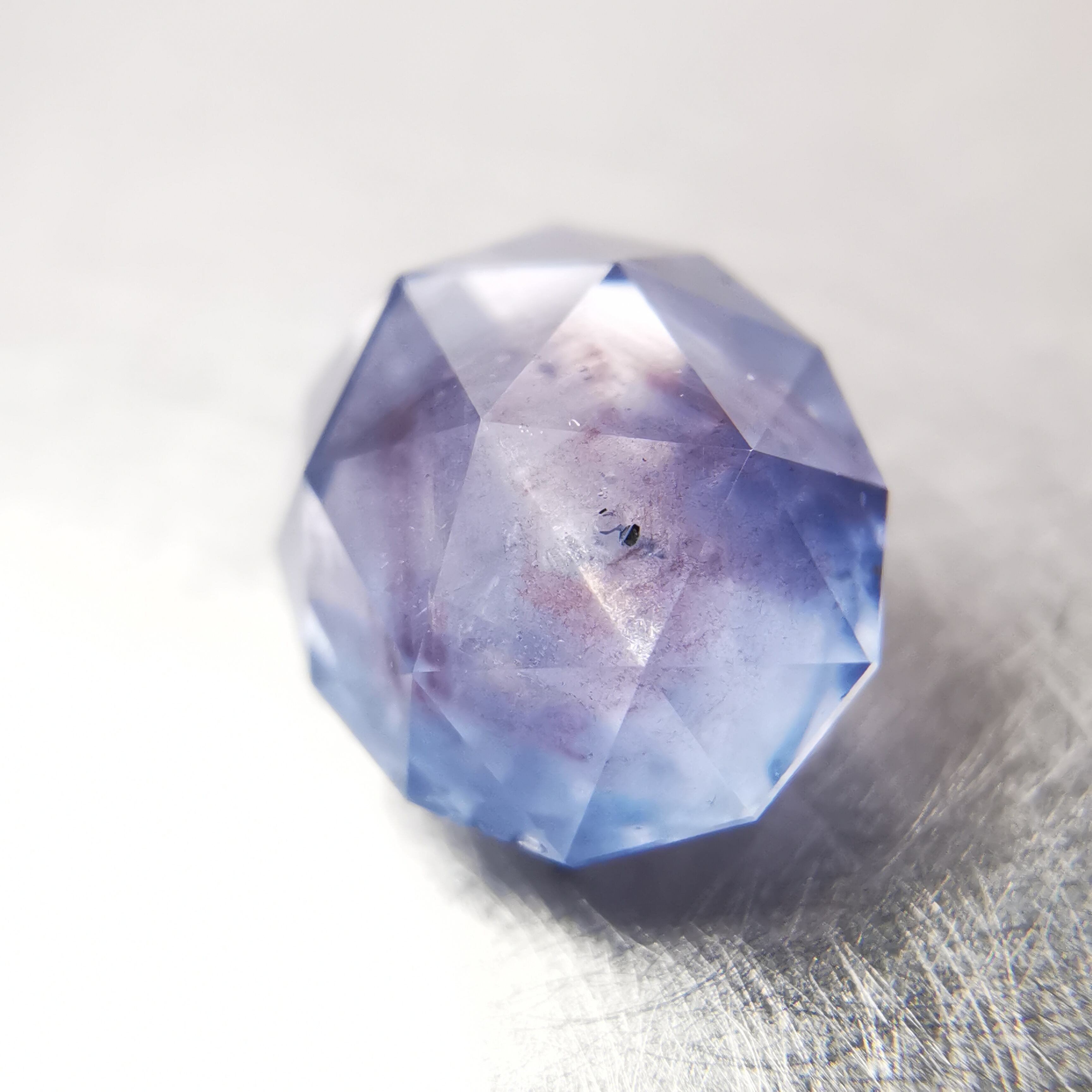 やや紫の入った柔らかいブルーの中に、落ち着いた赤紫系の成長線がうっすらと入ります。