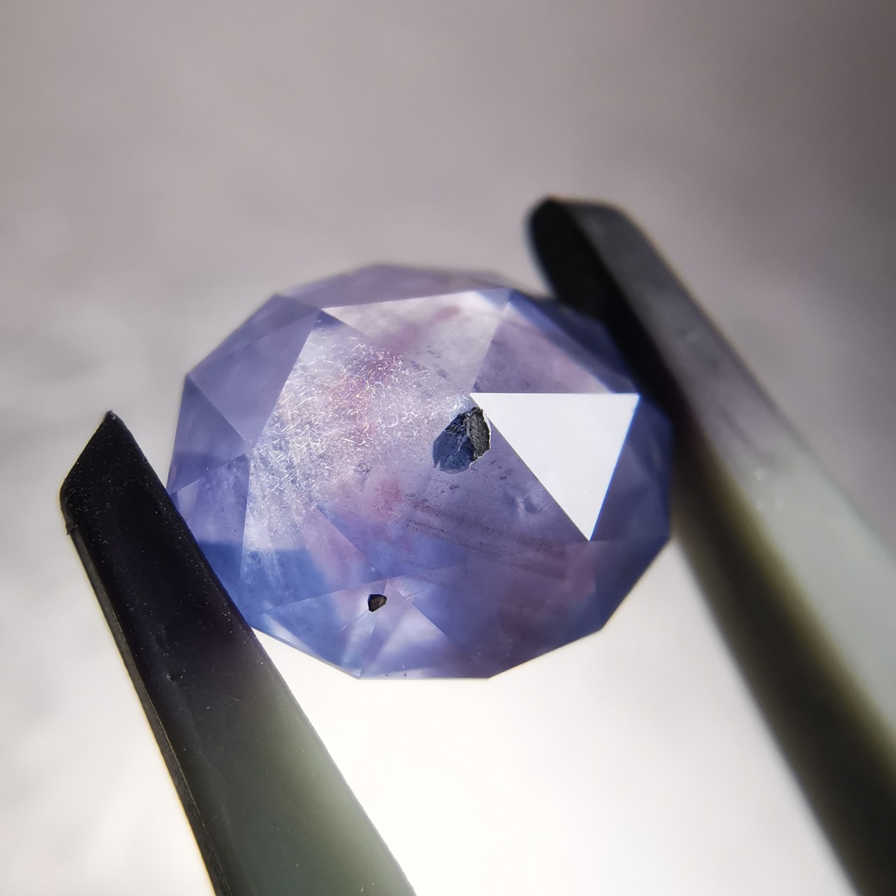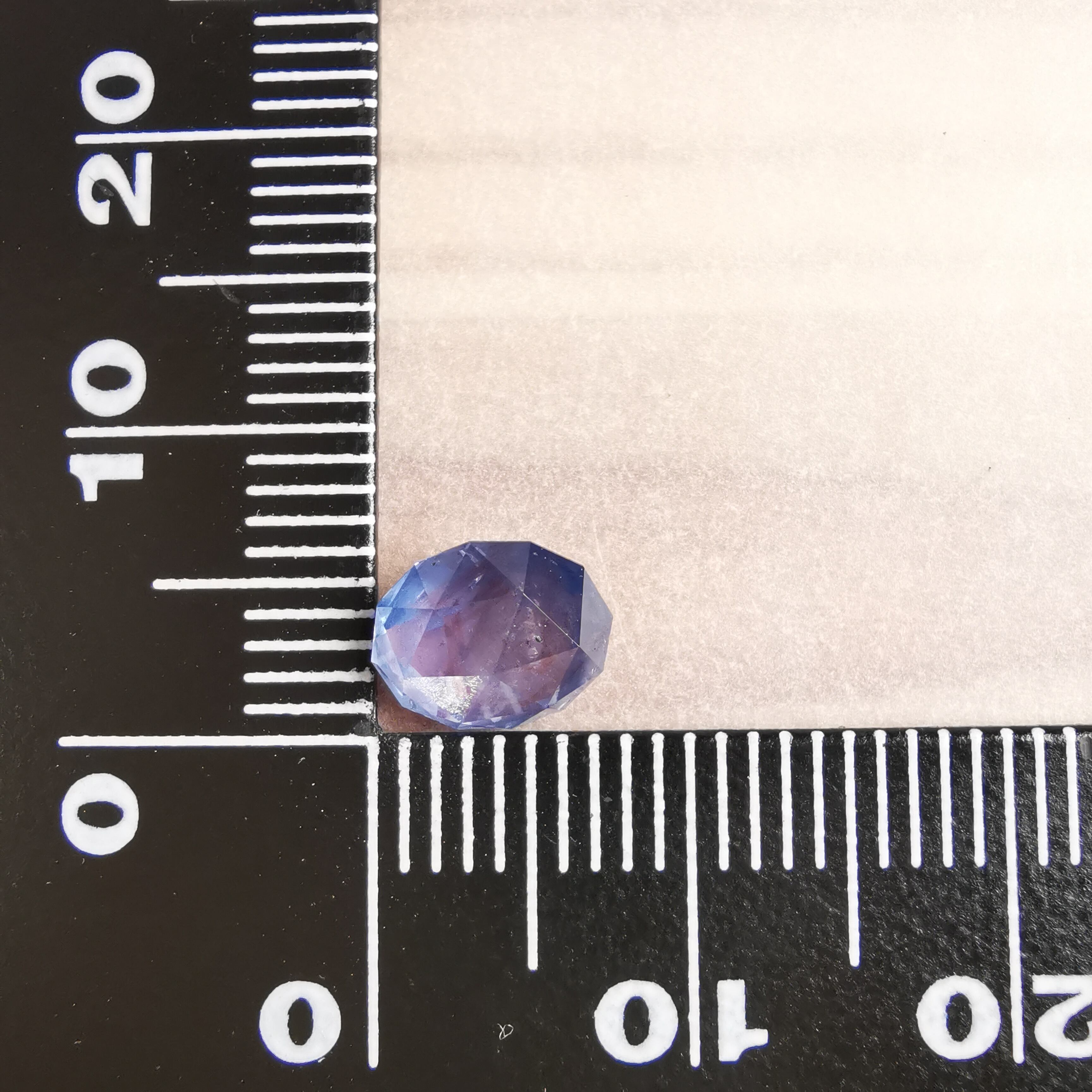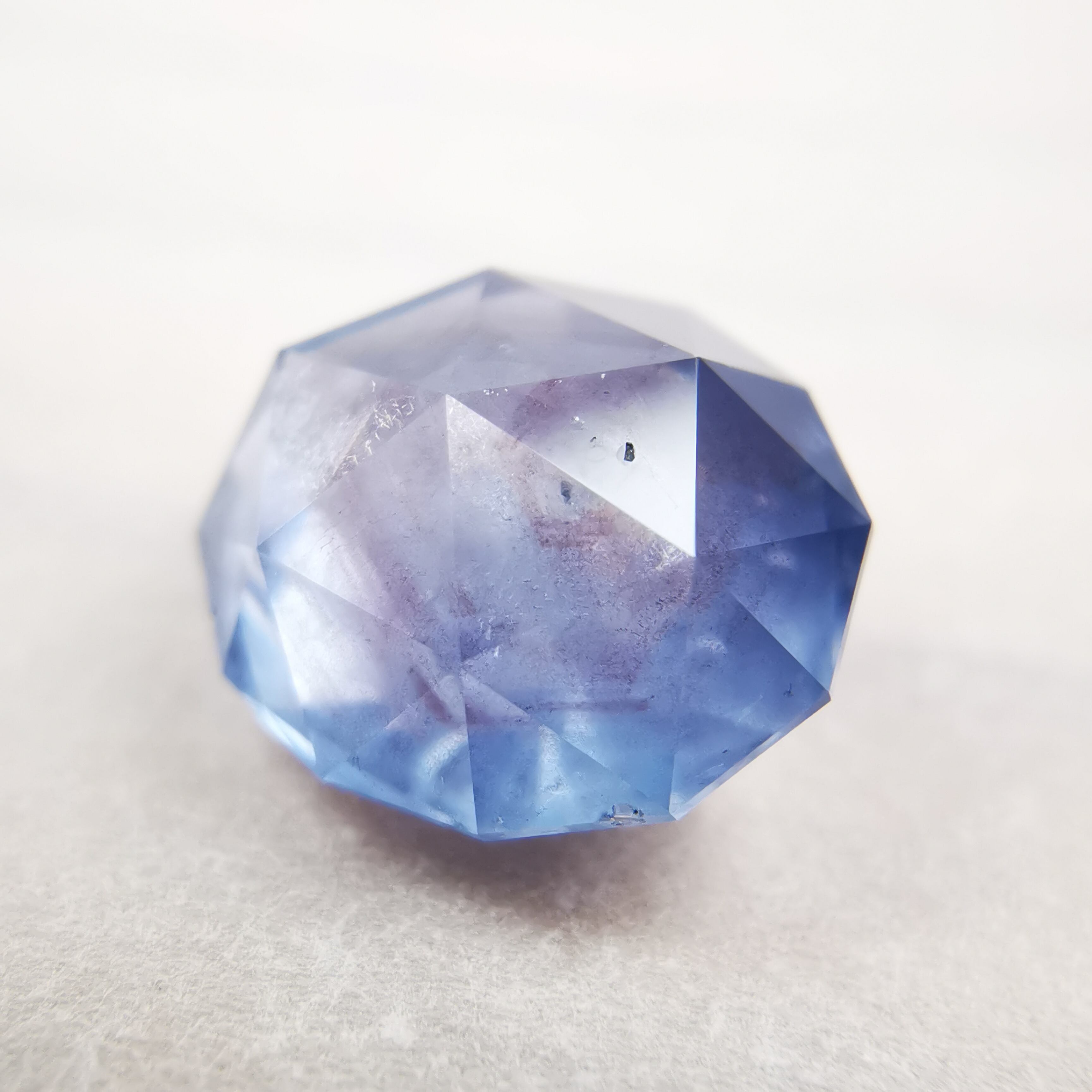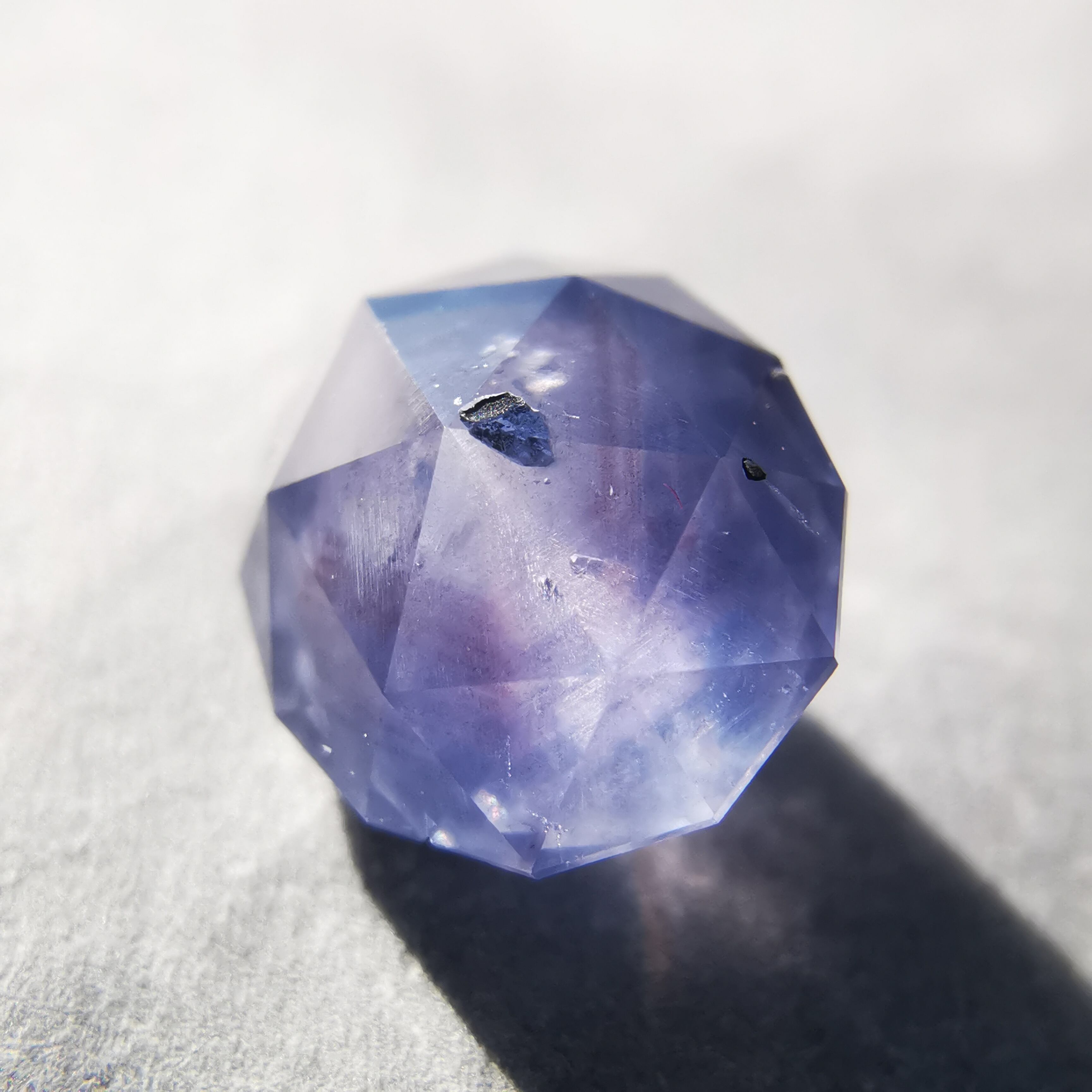 やや紫の入った柔らかいブルーの中に、落ち着いた赤紫系の成長線がうっすらと入ります。