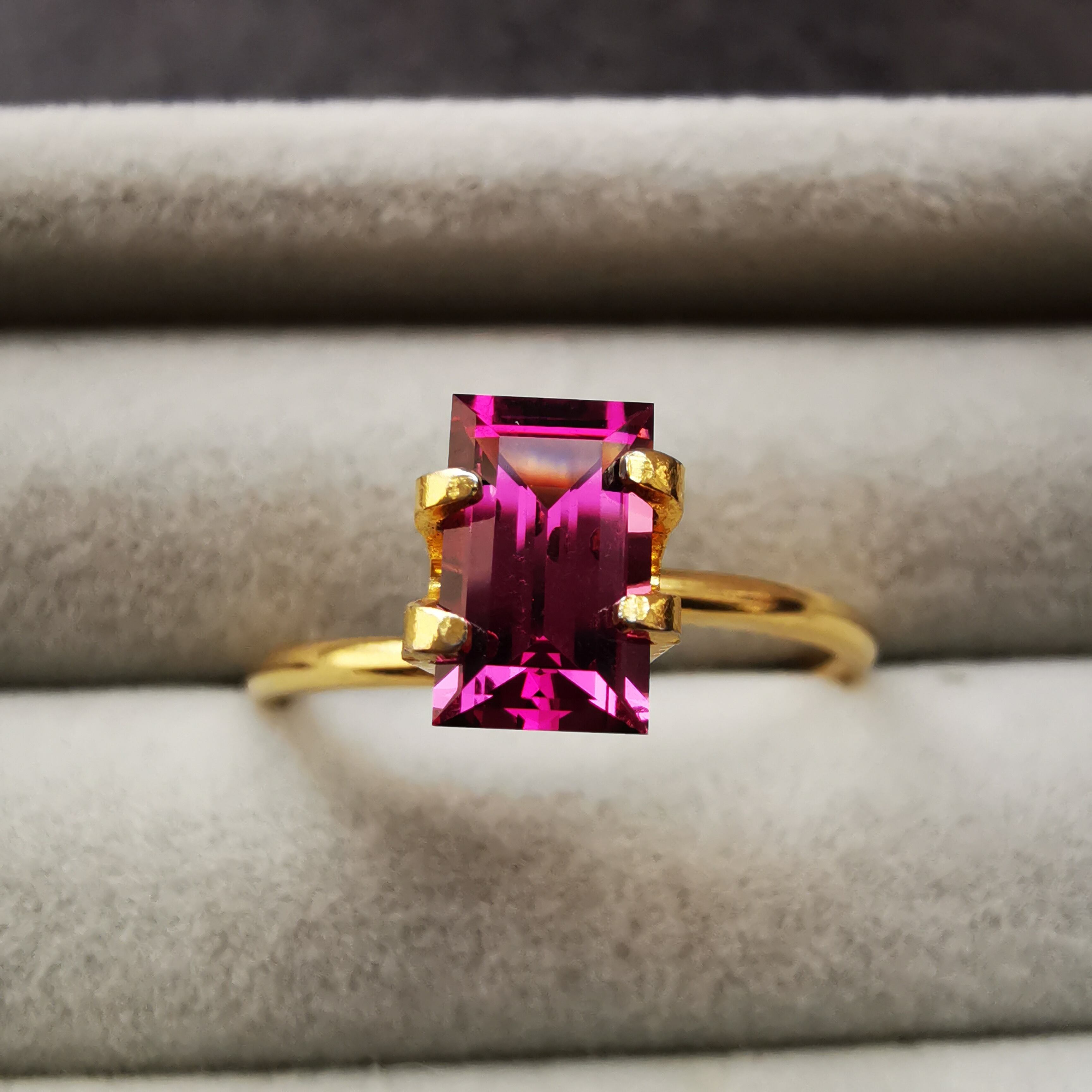 ガーネットの中でも代表的な種類である、ロードライトガーネットらしい華やかな美しさです。