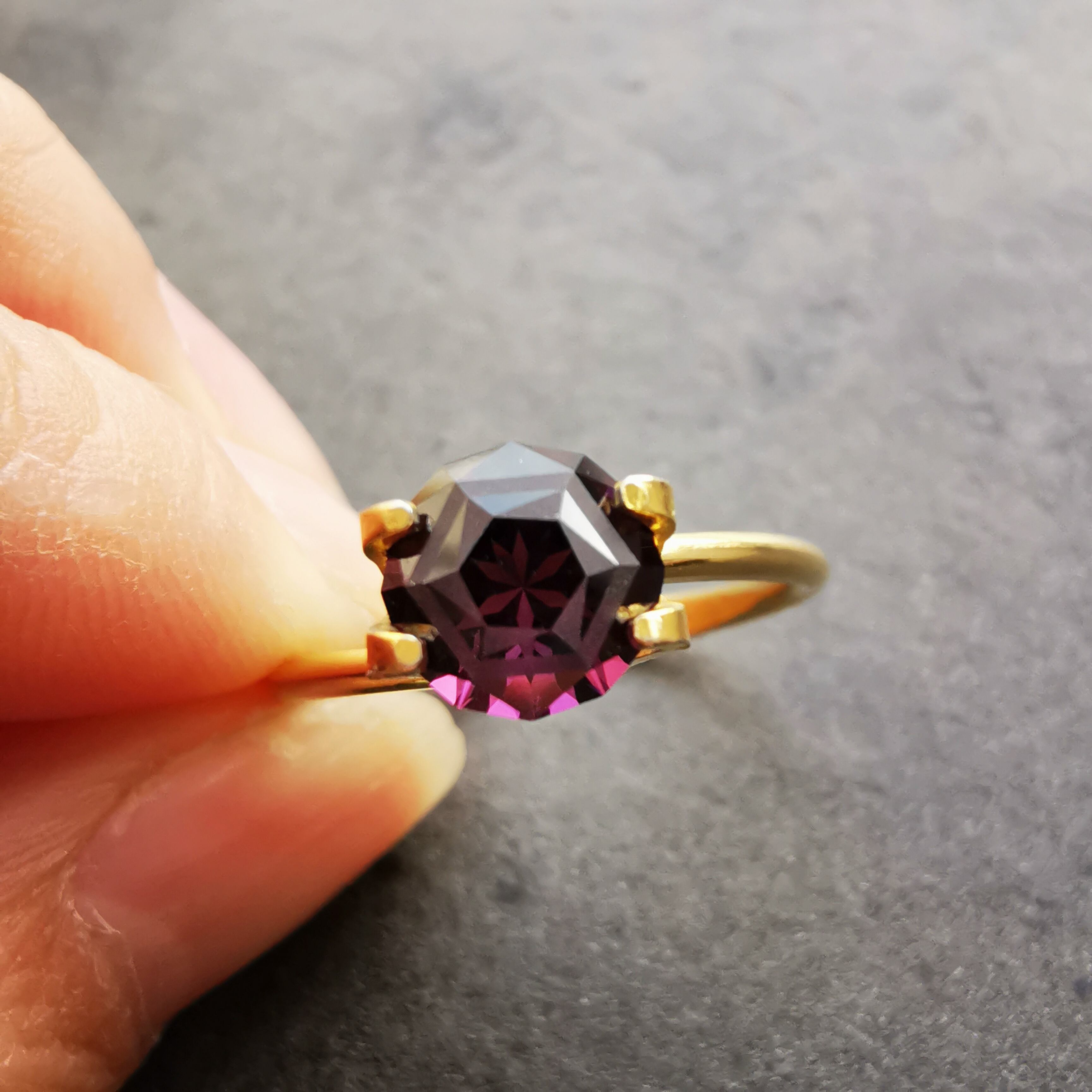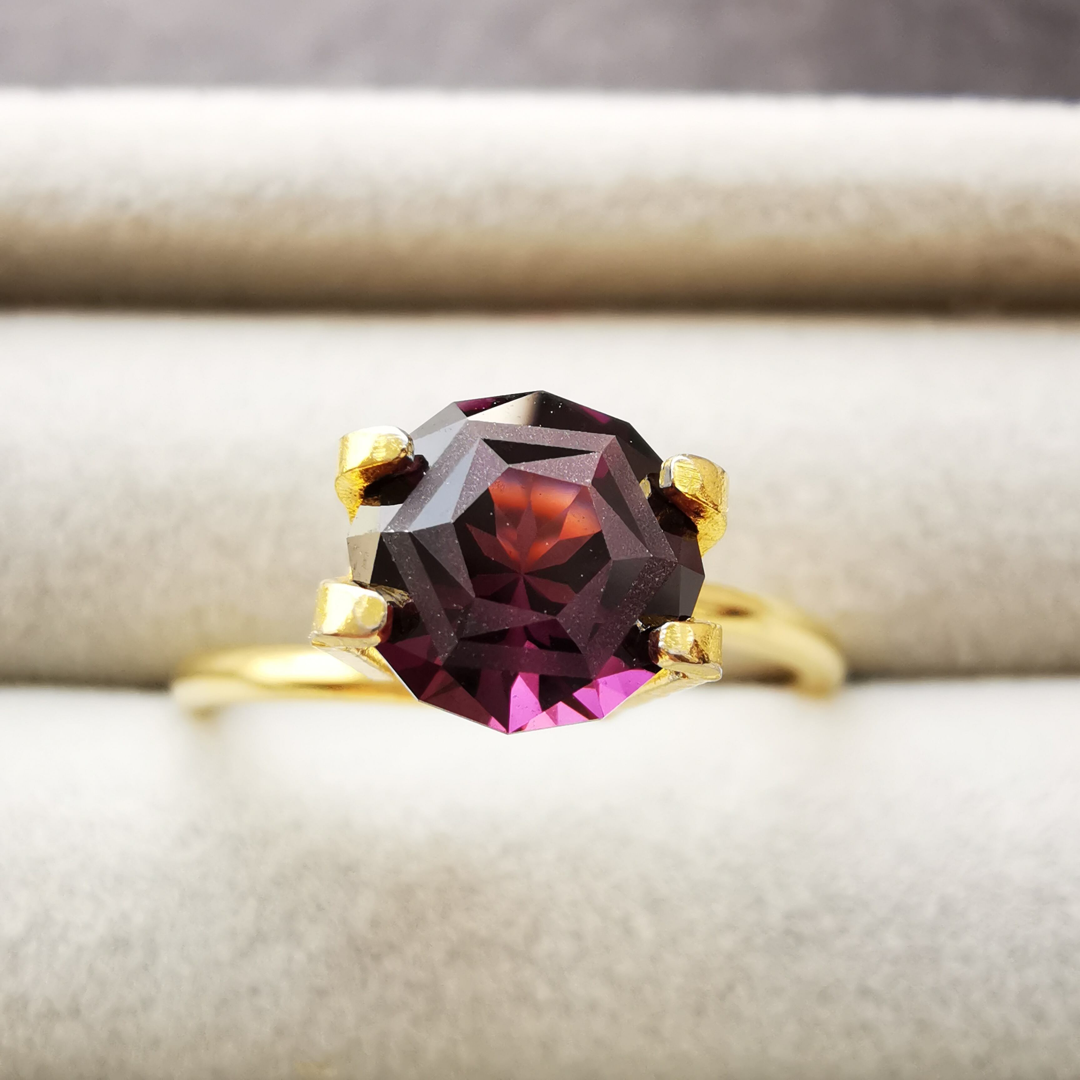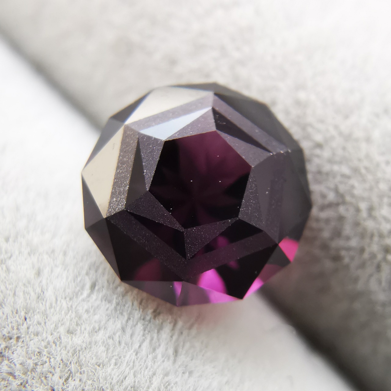 落ち着いたボルドー色の中から、ローズカラーが柔らかくきらめくスピネルです。