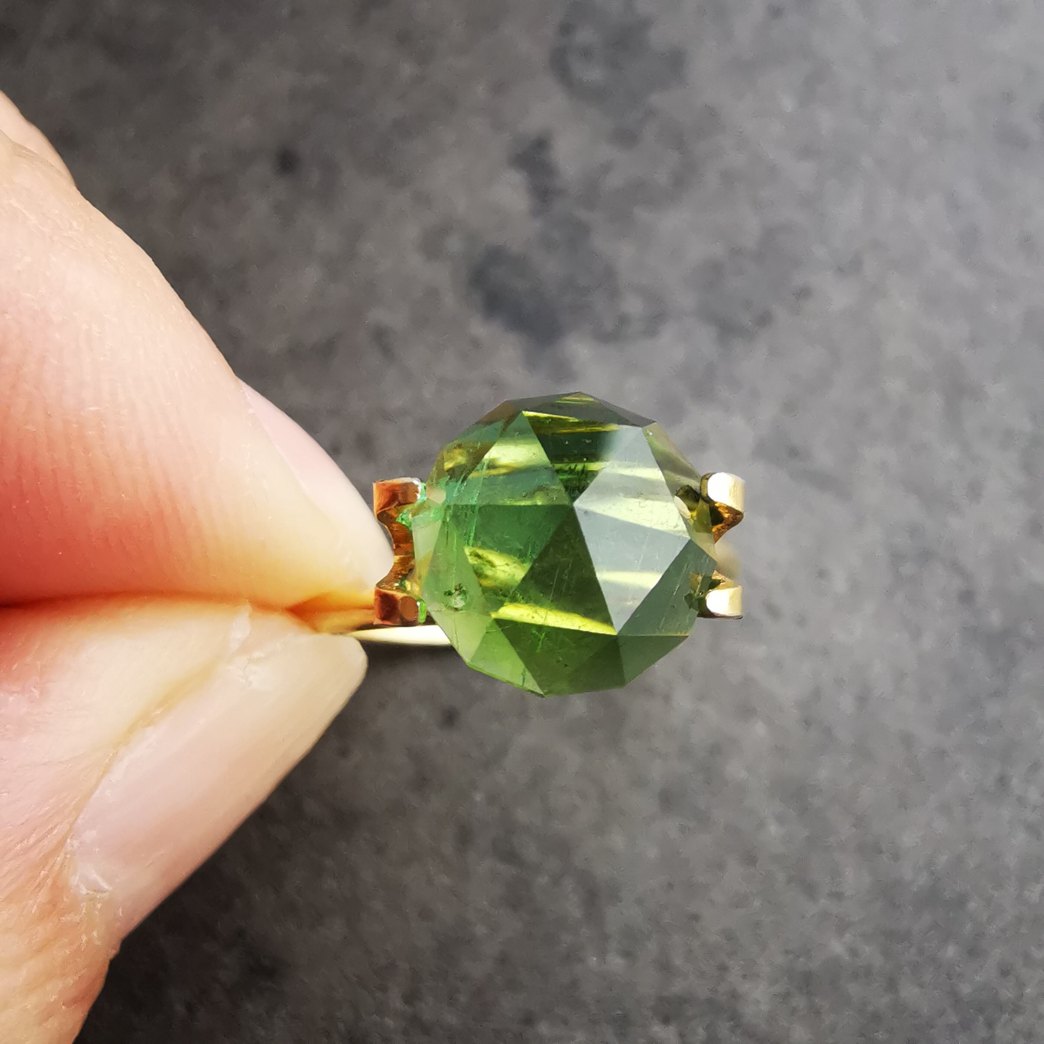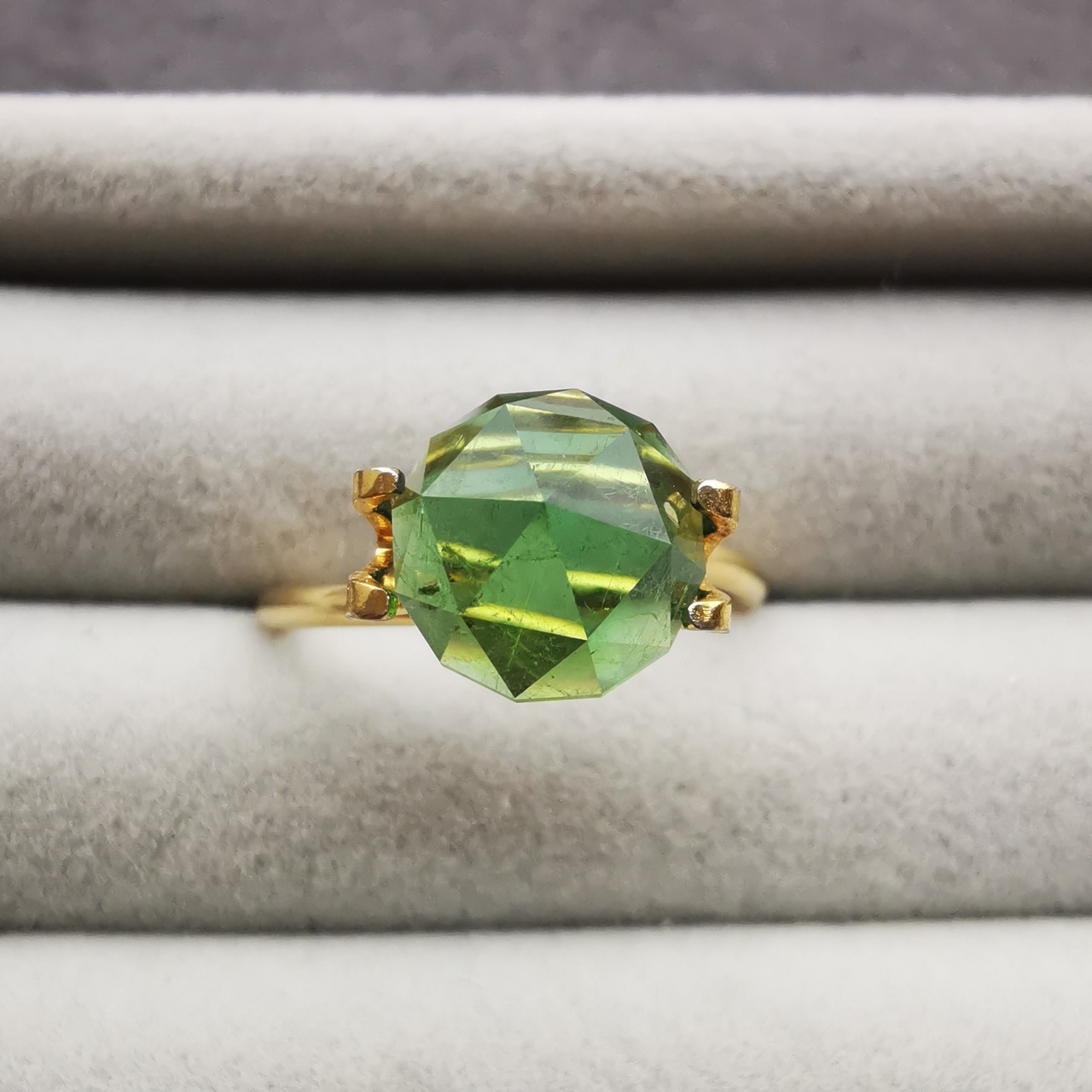 若草色、若竹色、深緑、様々なグリーンが見えるトルマリンです。