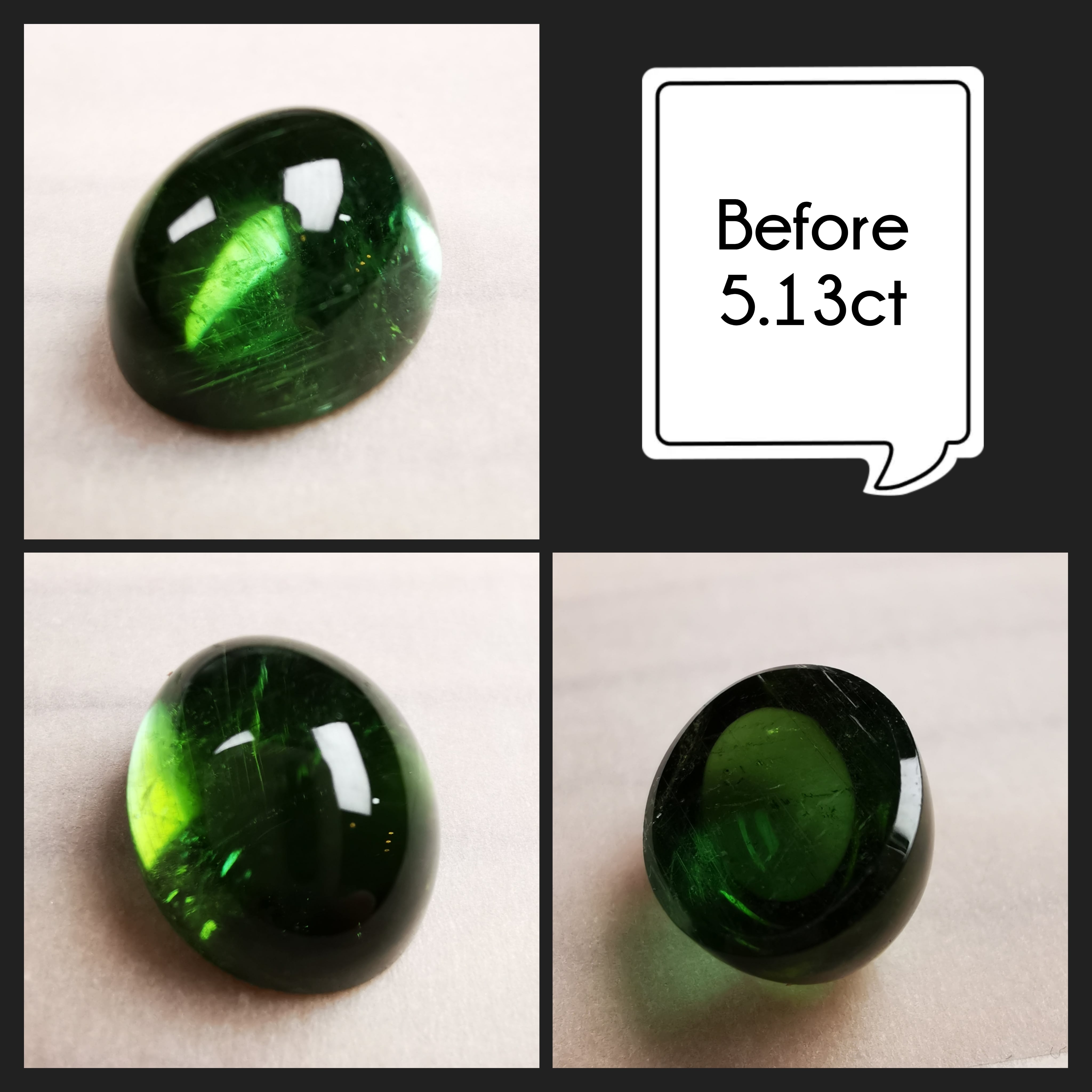 オーバルカボションカットだったものを、ローズカットにカスタムリカットしました。
