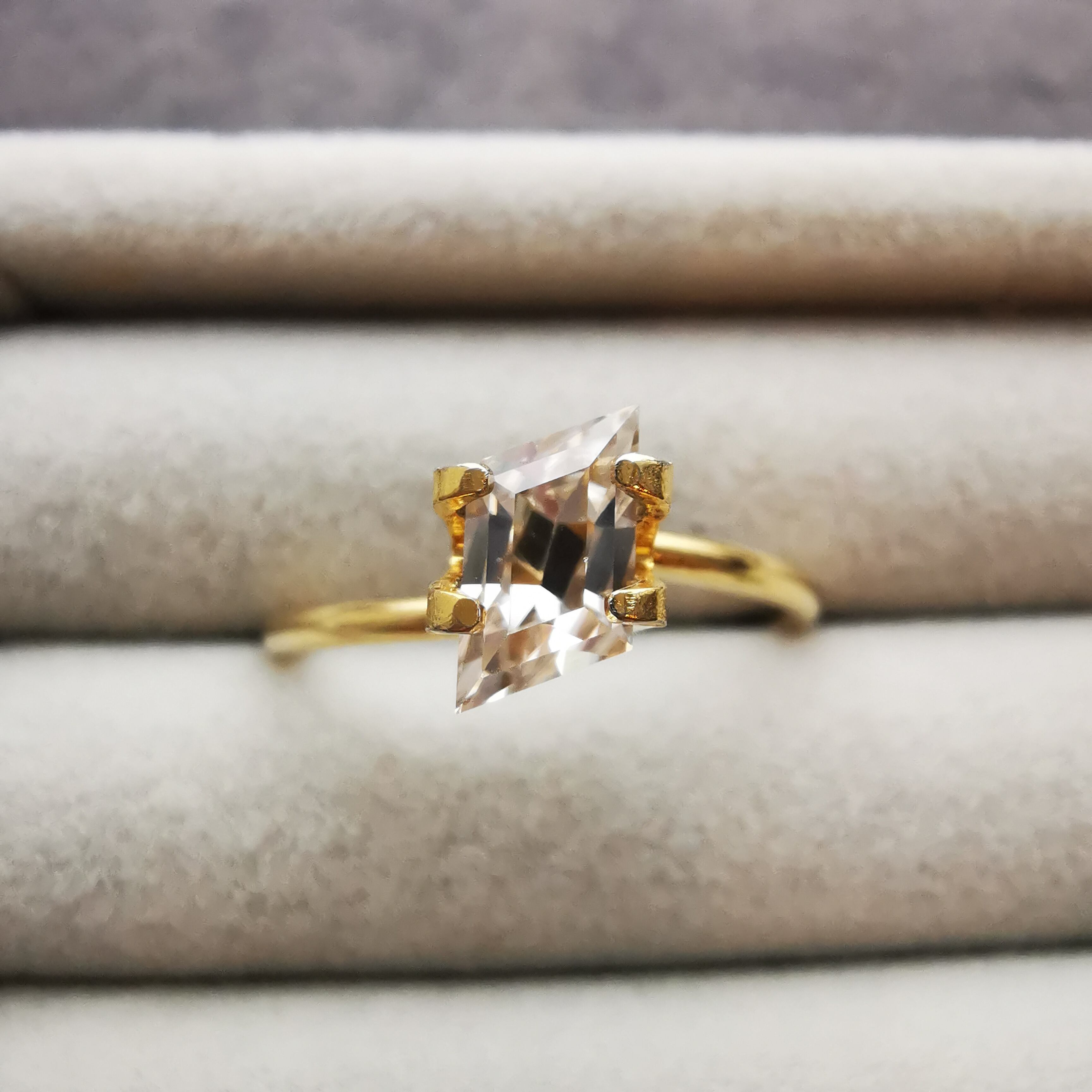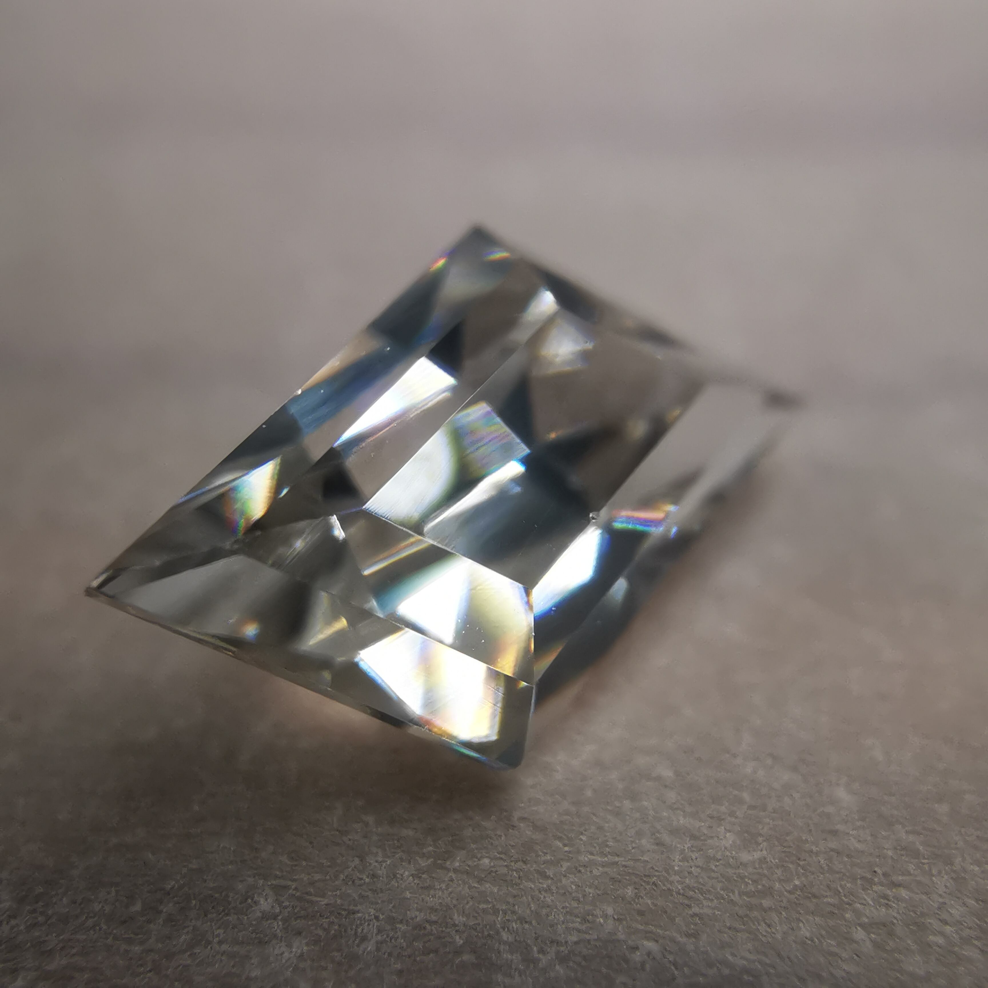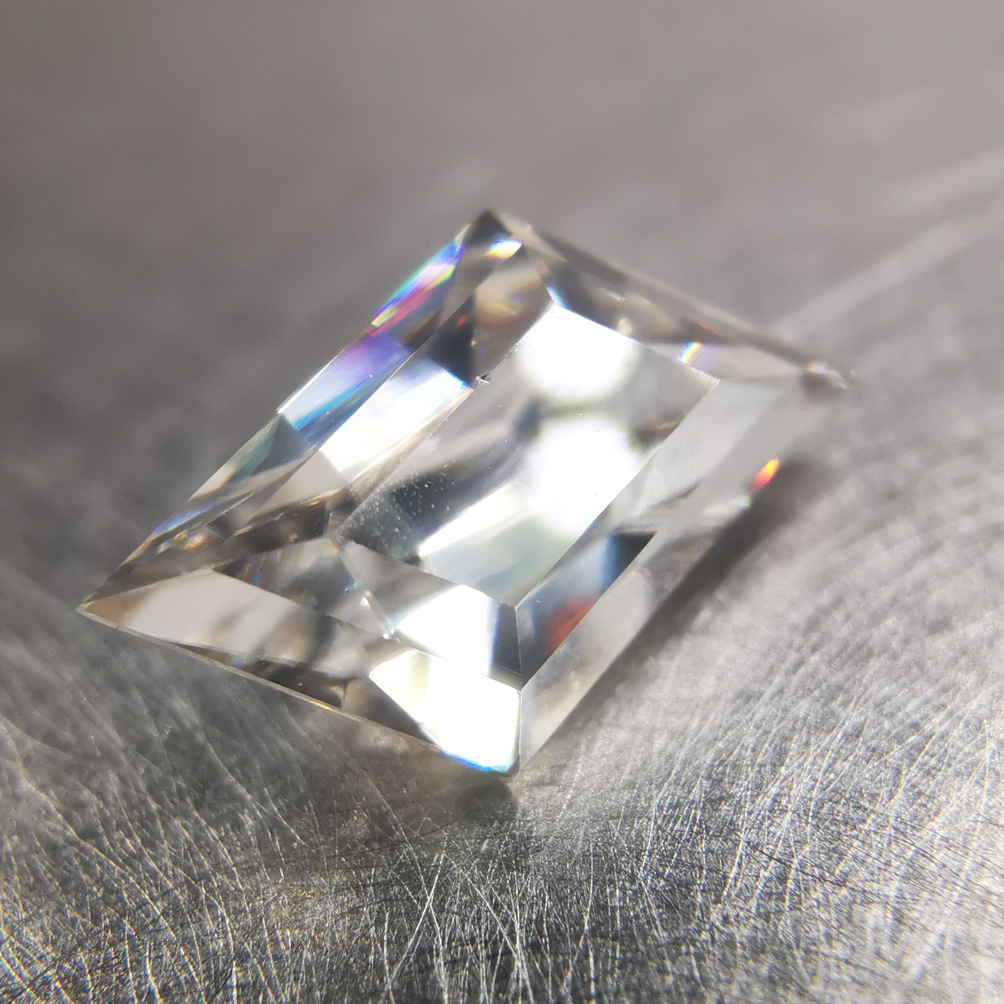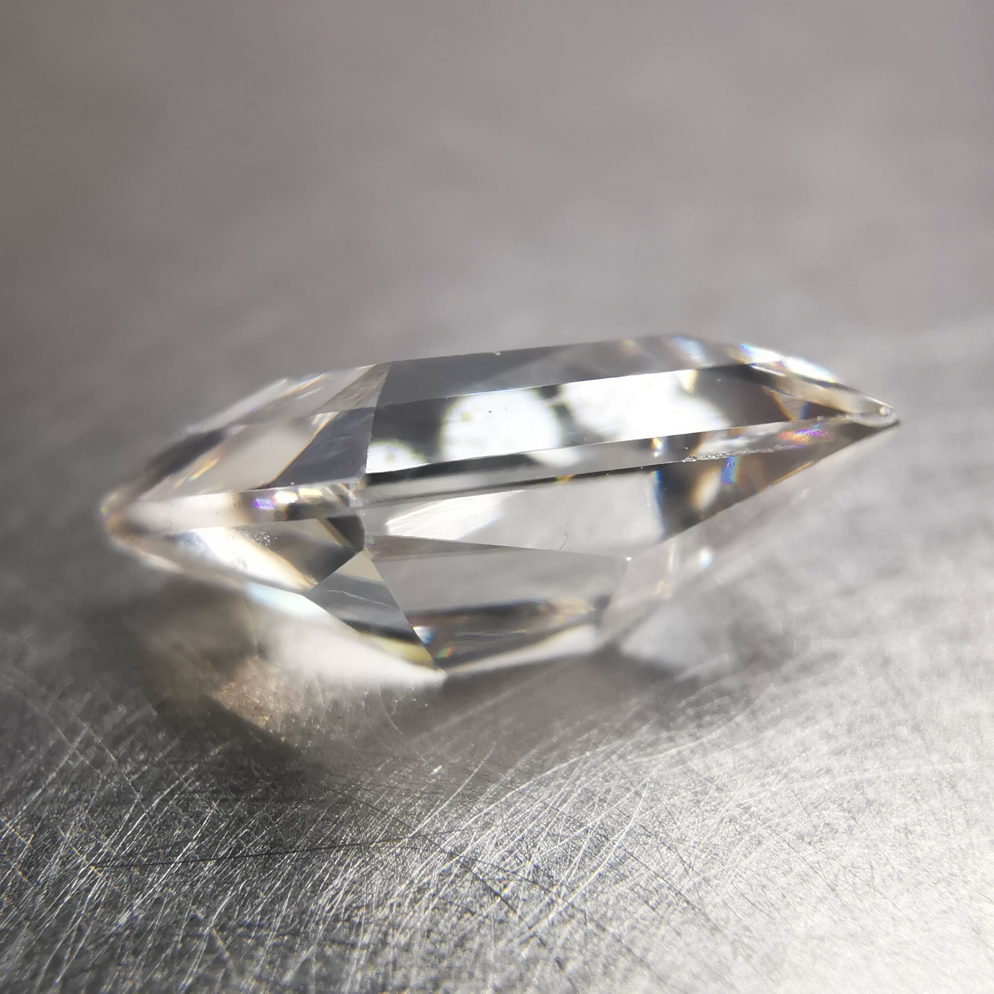 ごくごく淡くベージュ系に色付いたホワイトジルコンです。