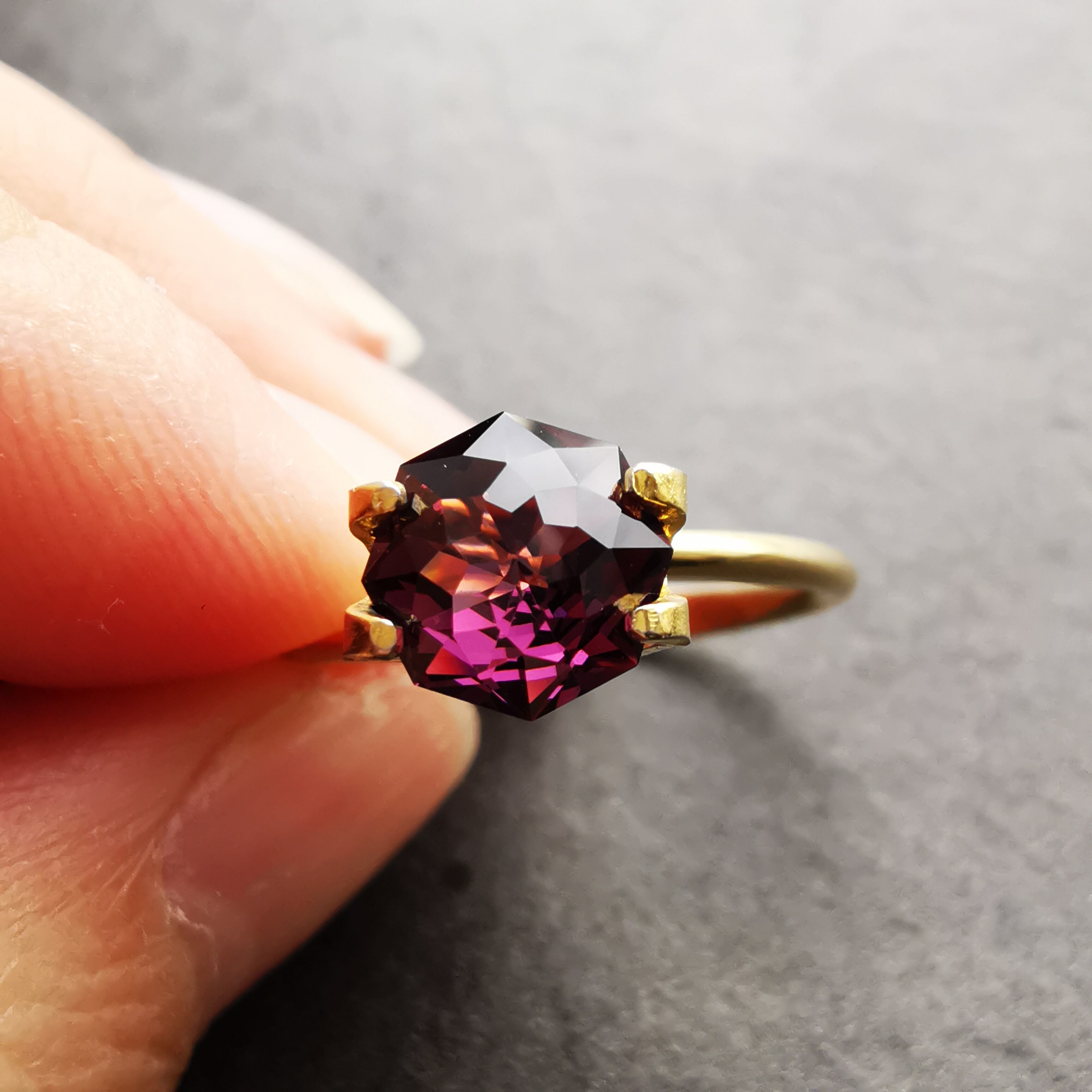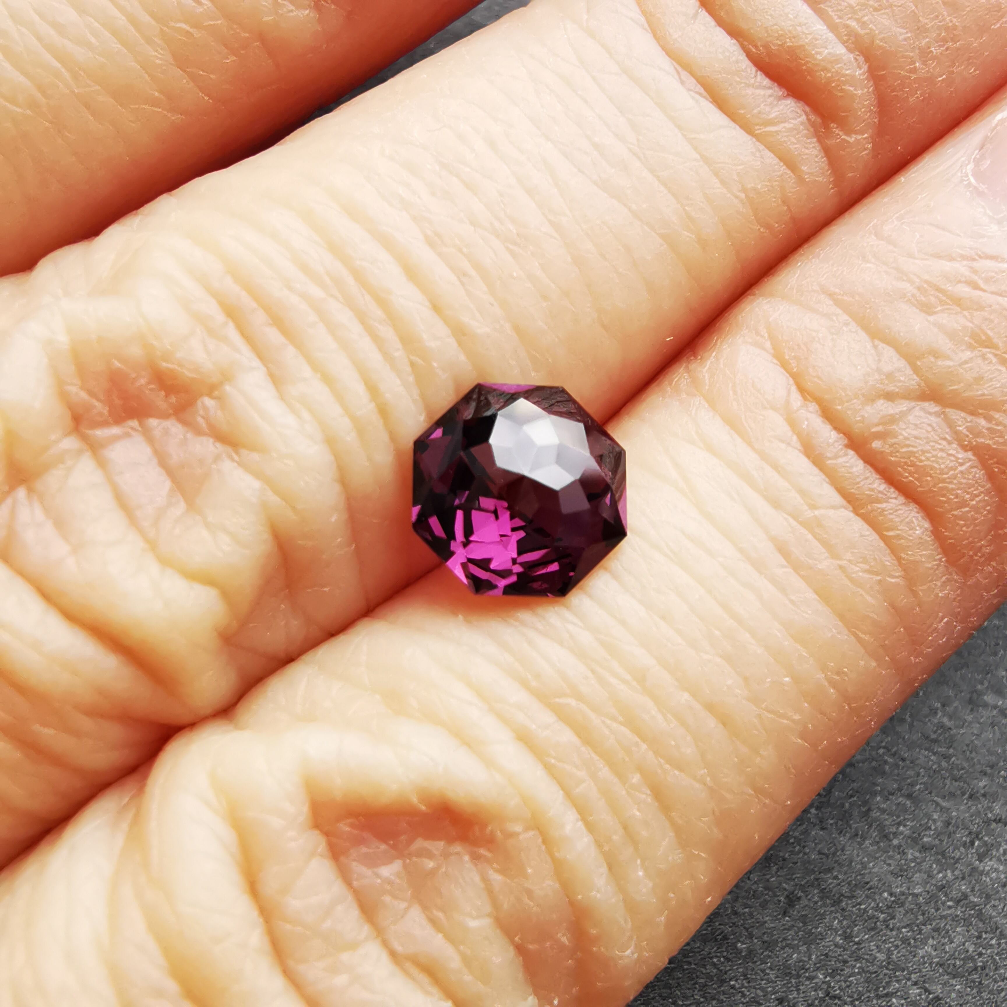 落ち着いた暗めのパープルレッド、ピアニー色のスピネルです。
