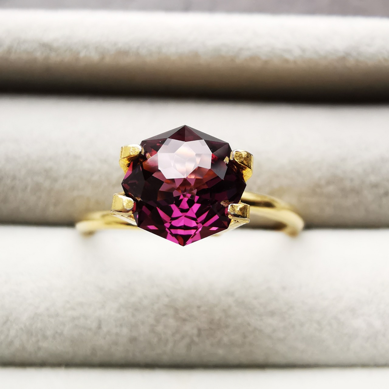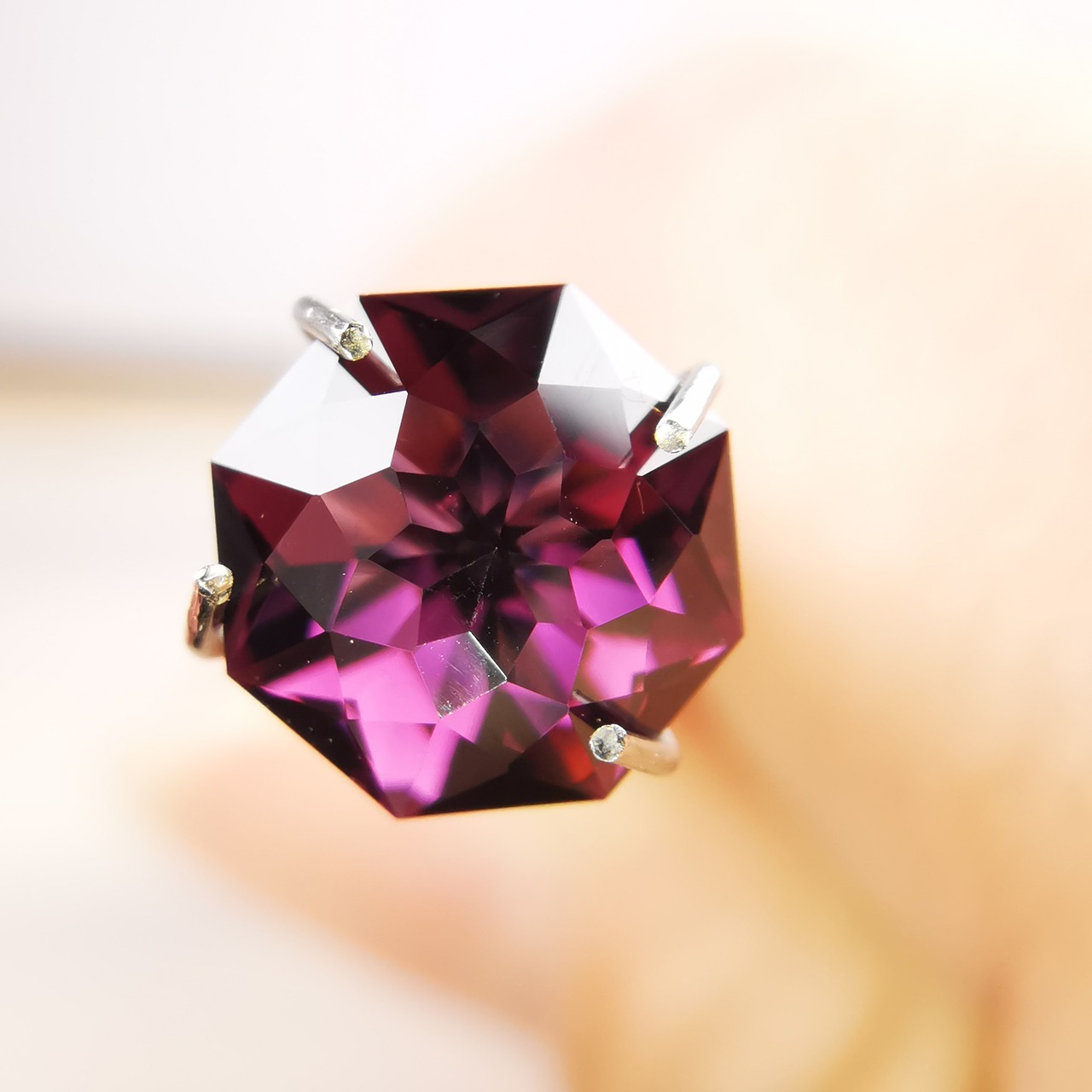 デーブル面まで緻密なファセットカットが敷き詰められた、とても手の込んだカットが施されています。