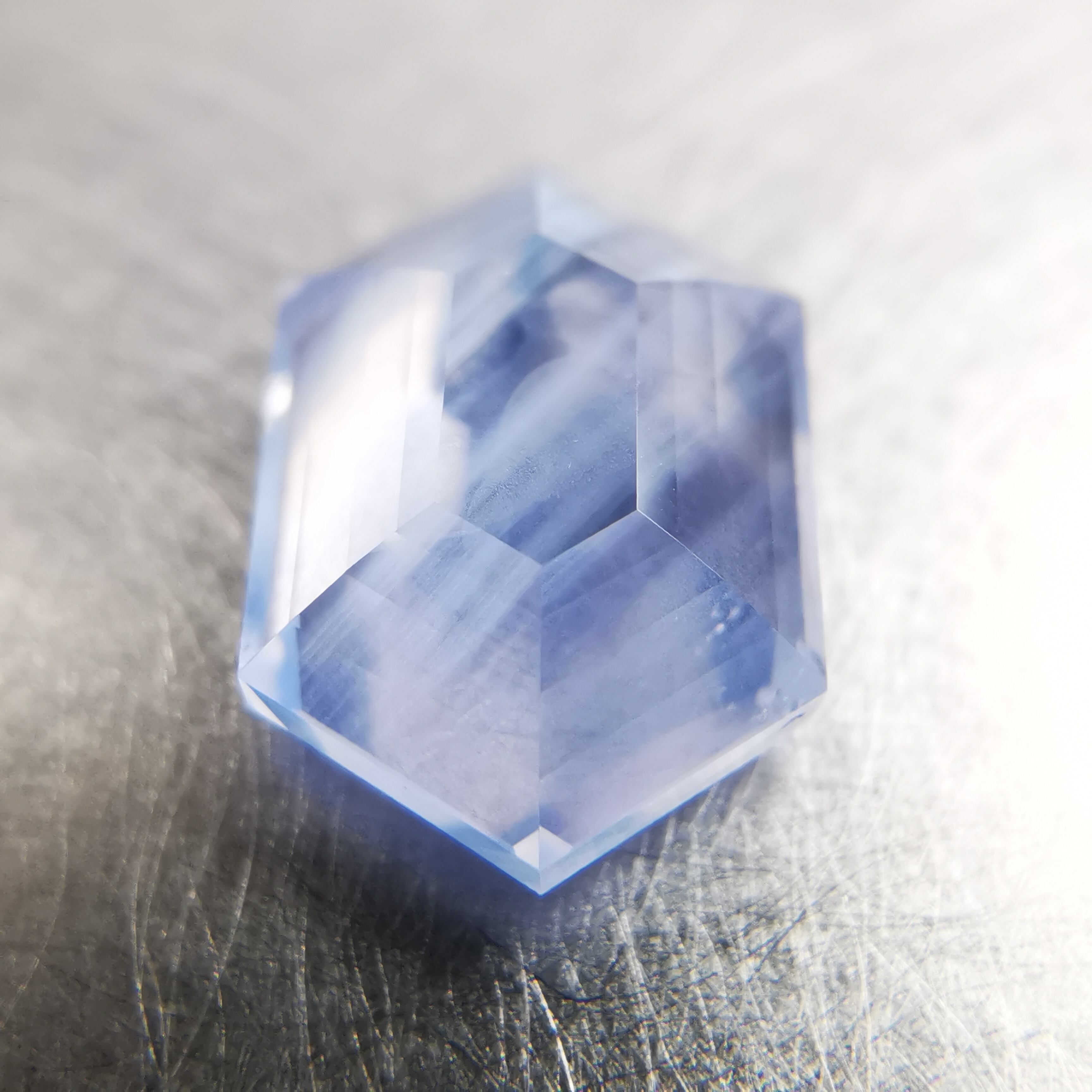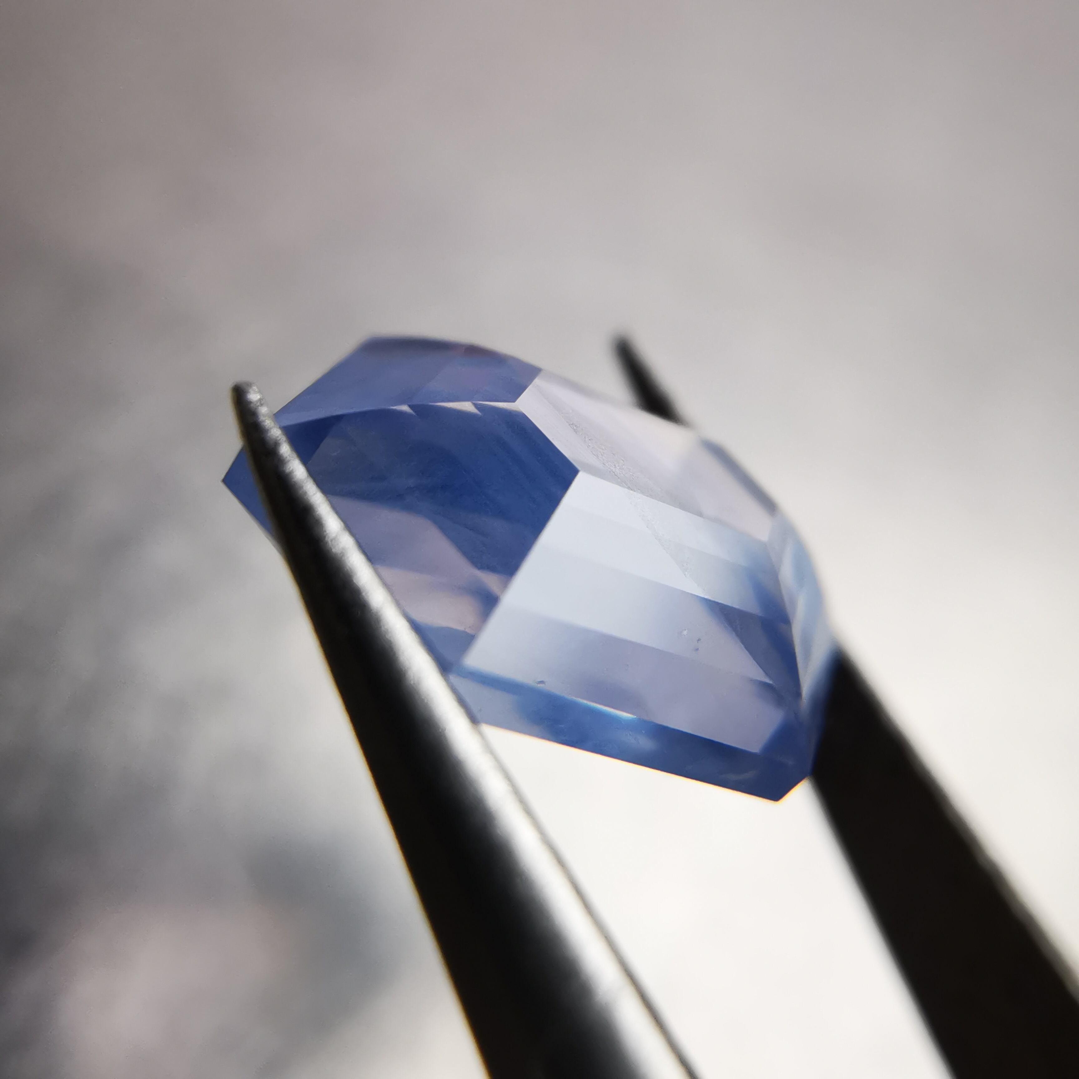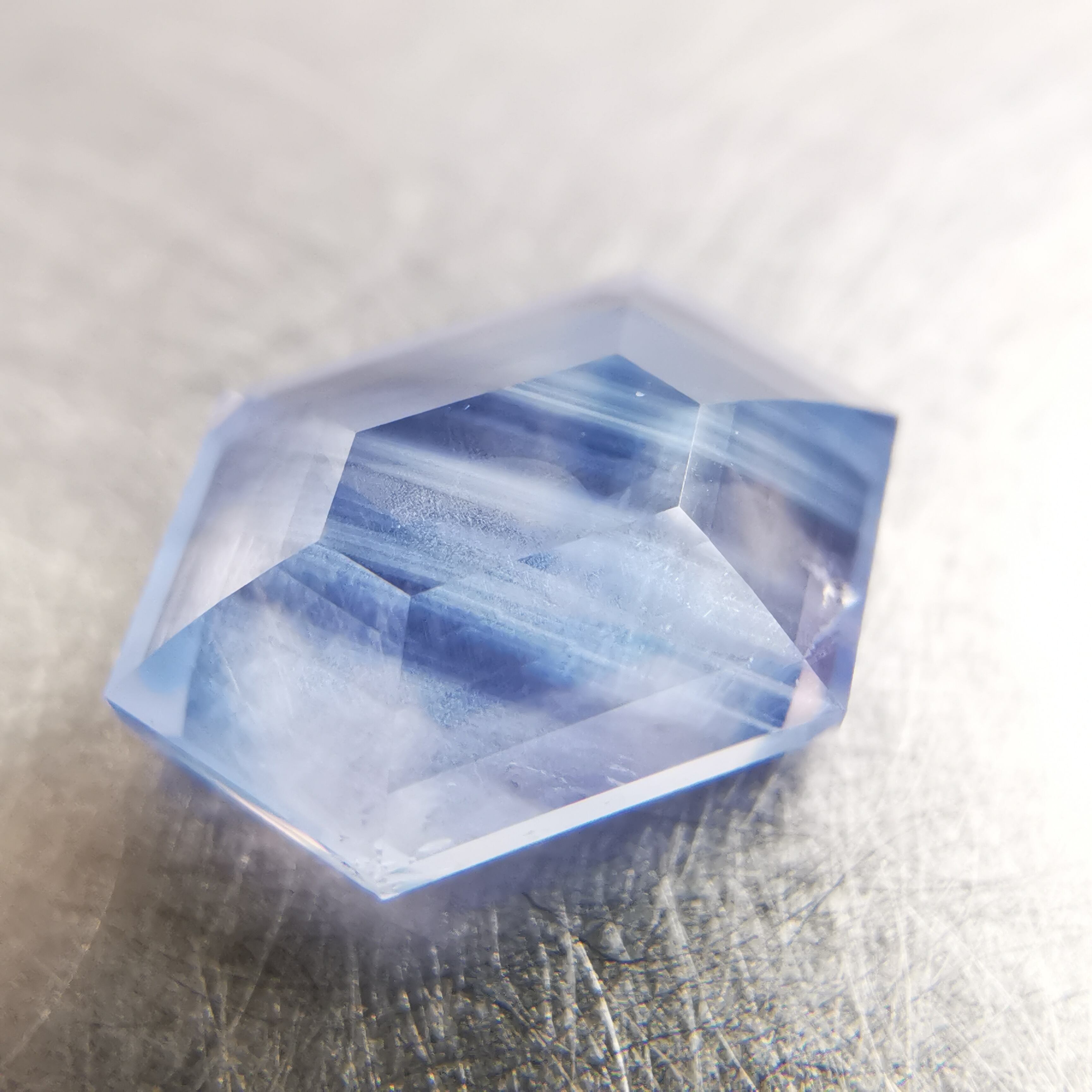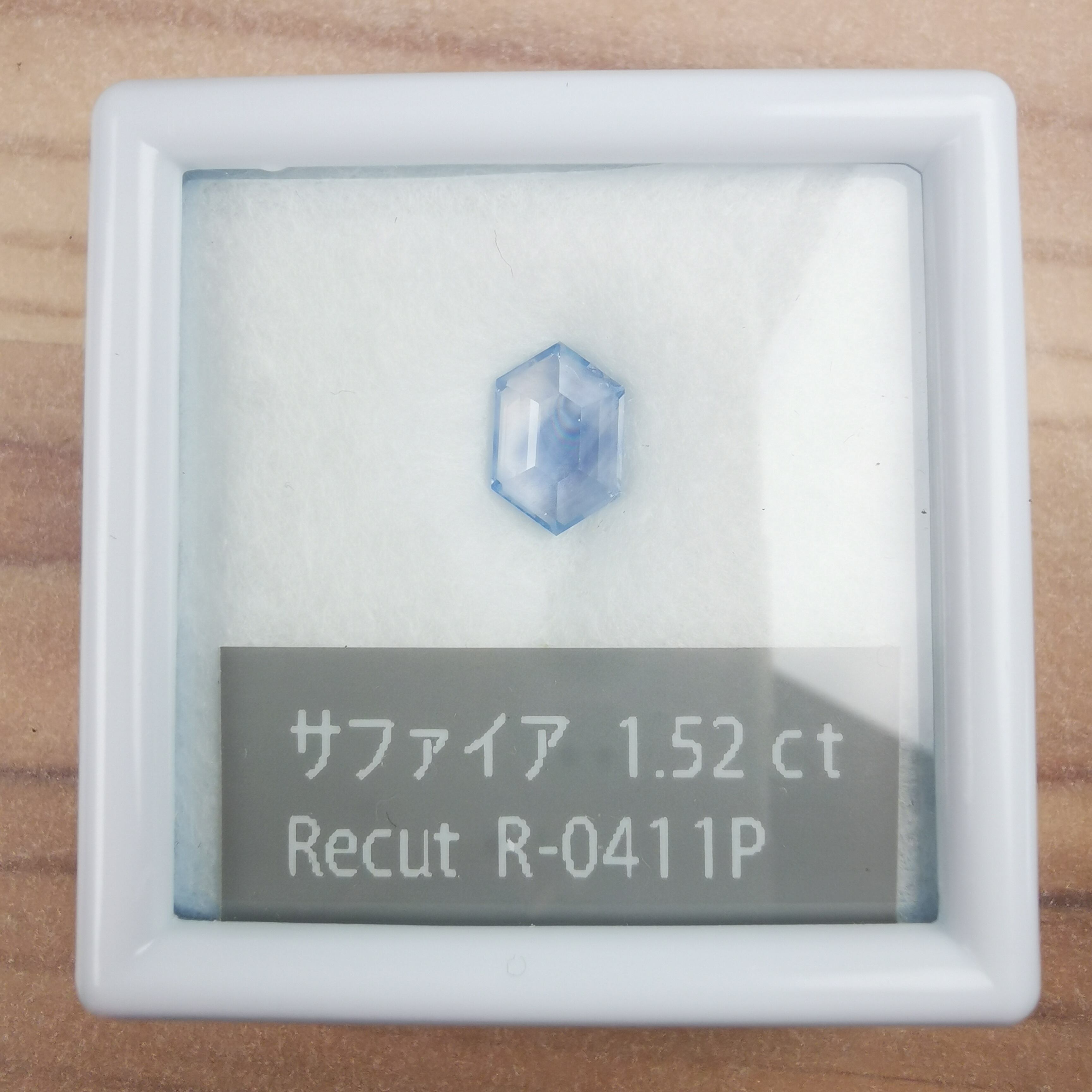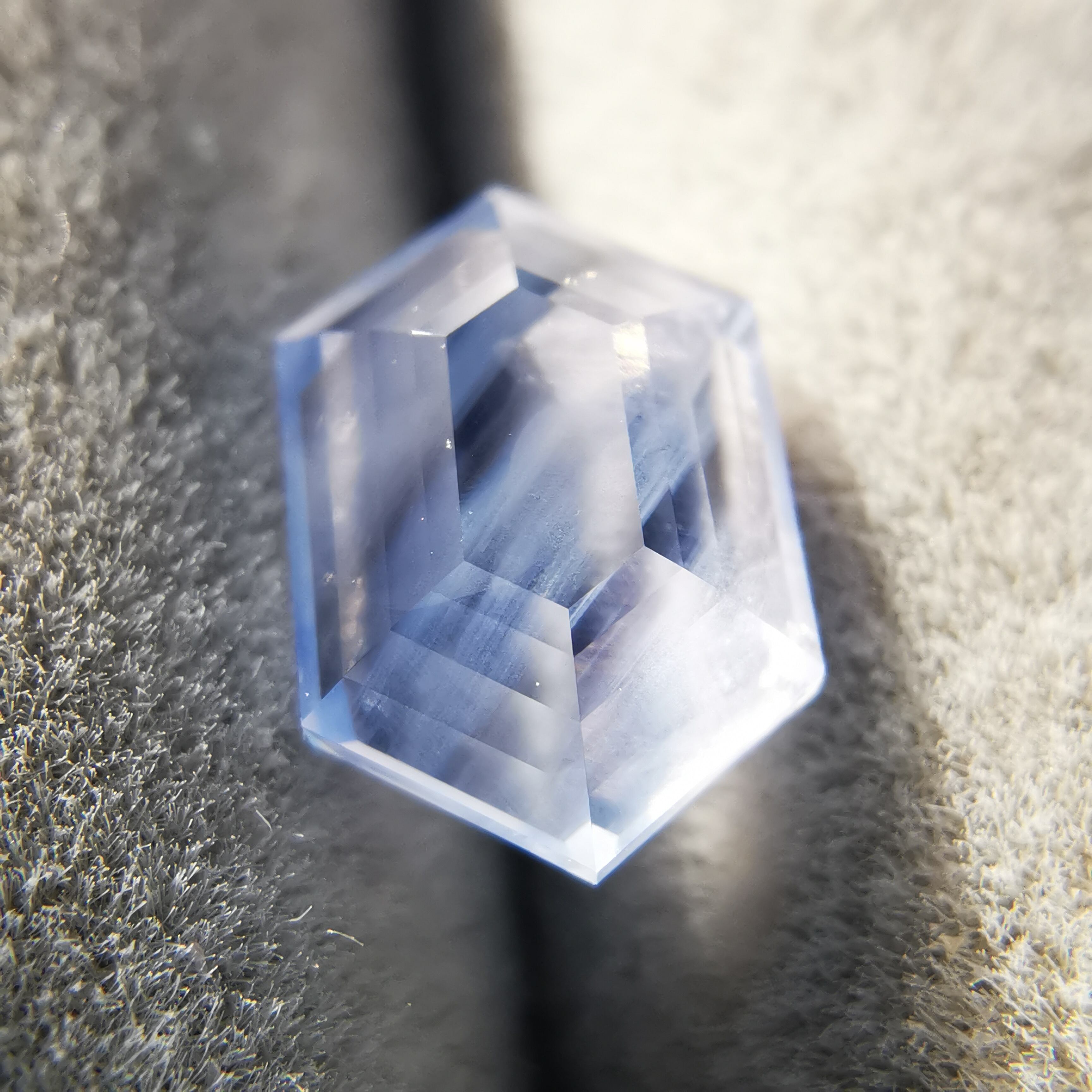 スターサファイアをリカットしたので、日の光を受けると、シルキーなインクルージョンがキラキラと輝きます。