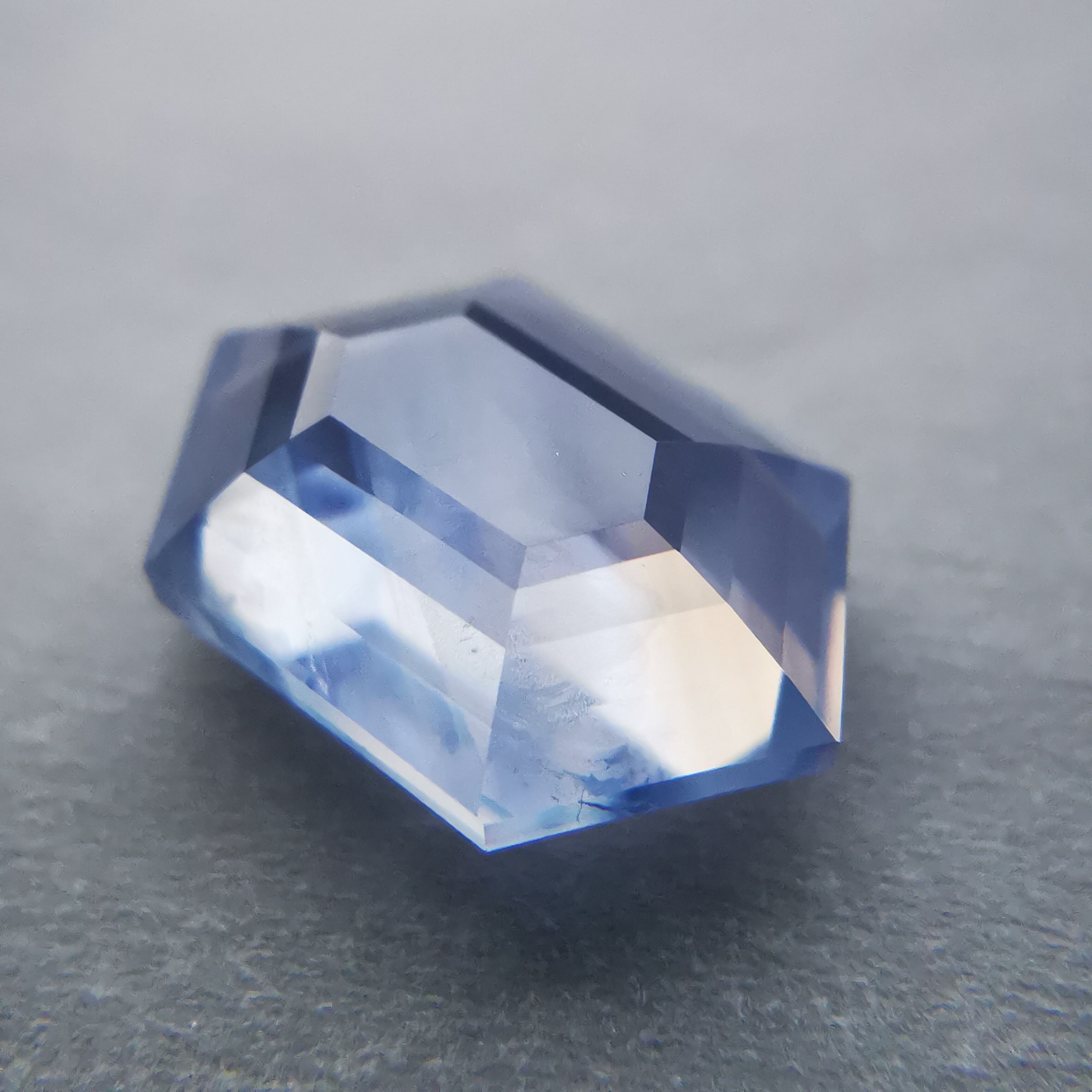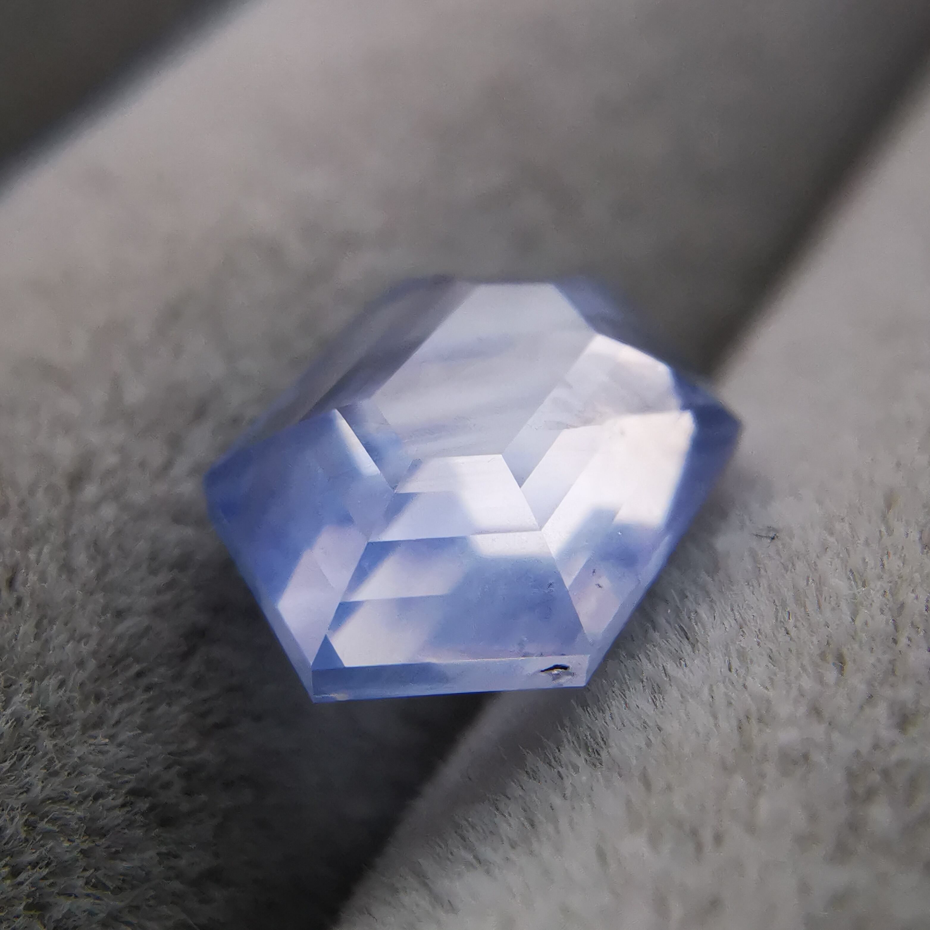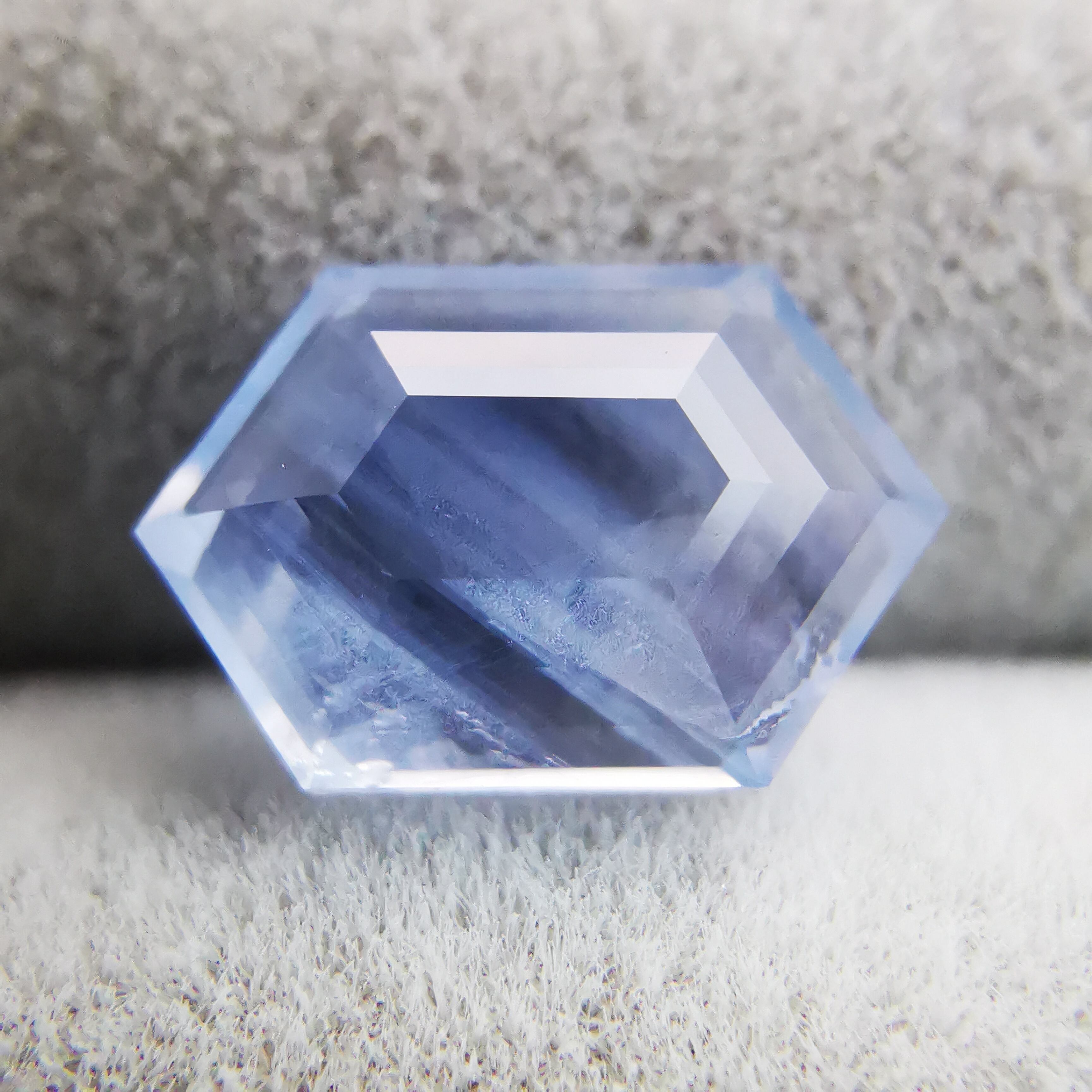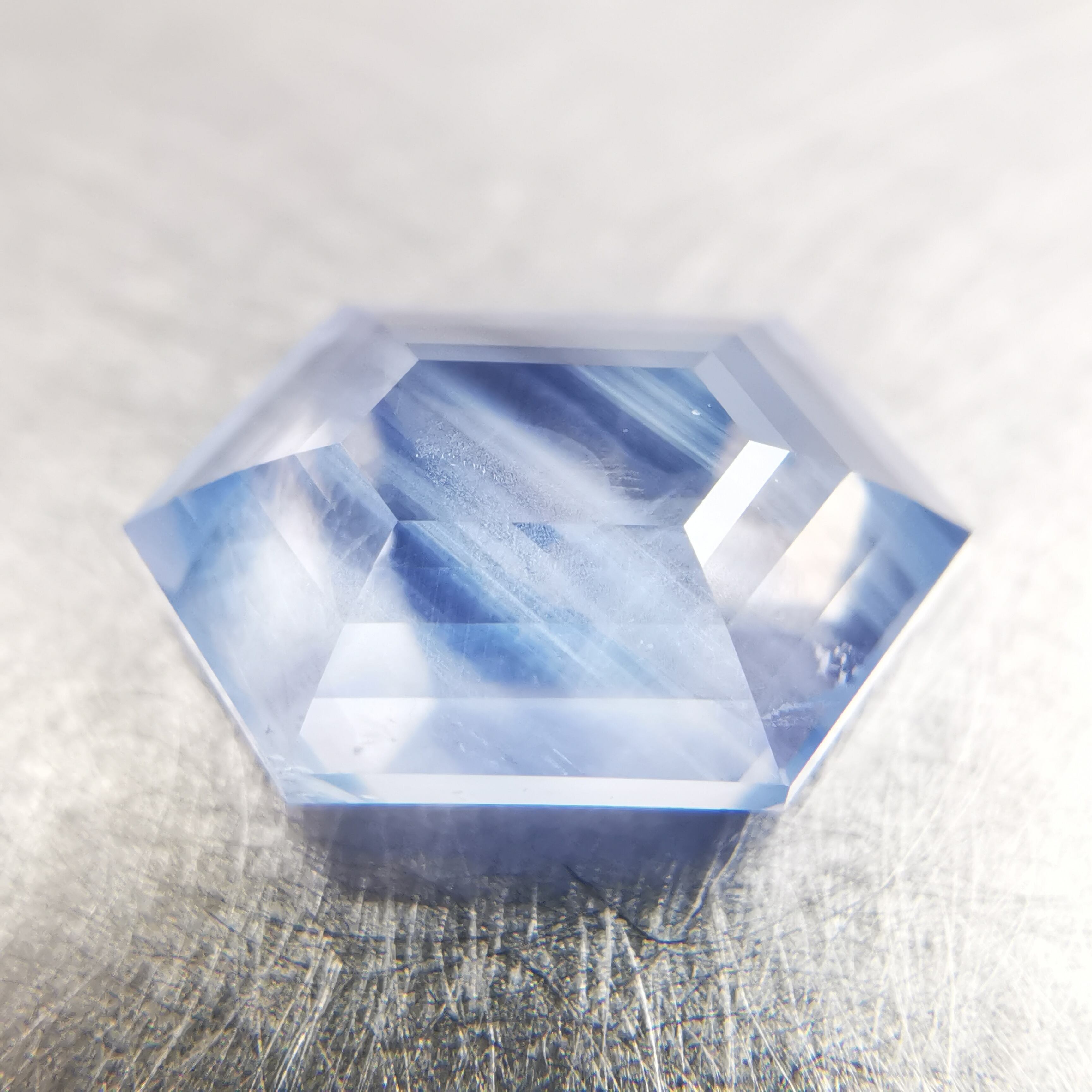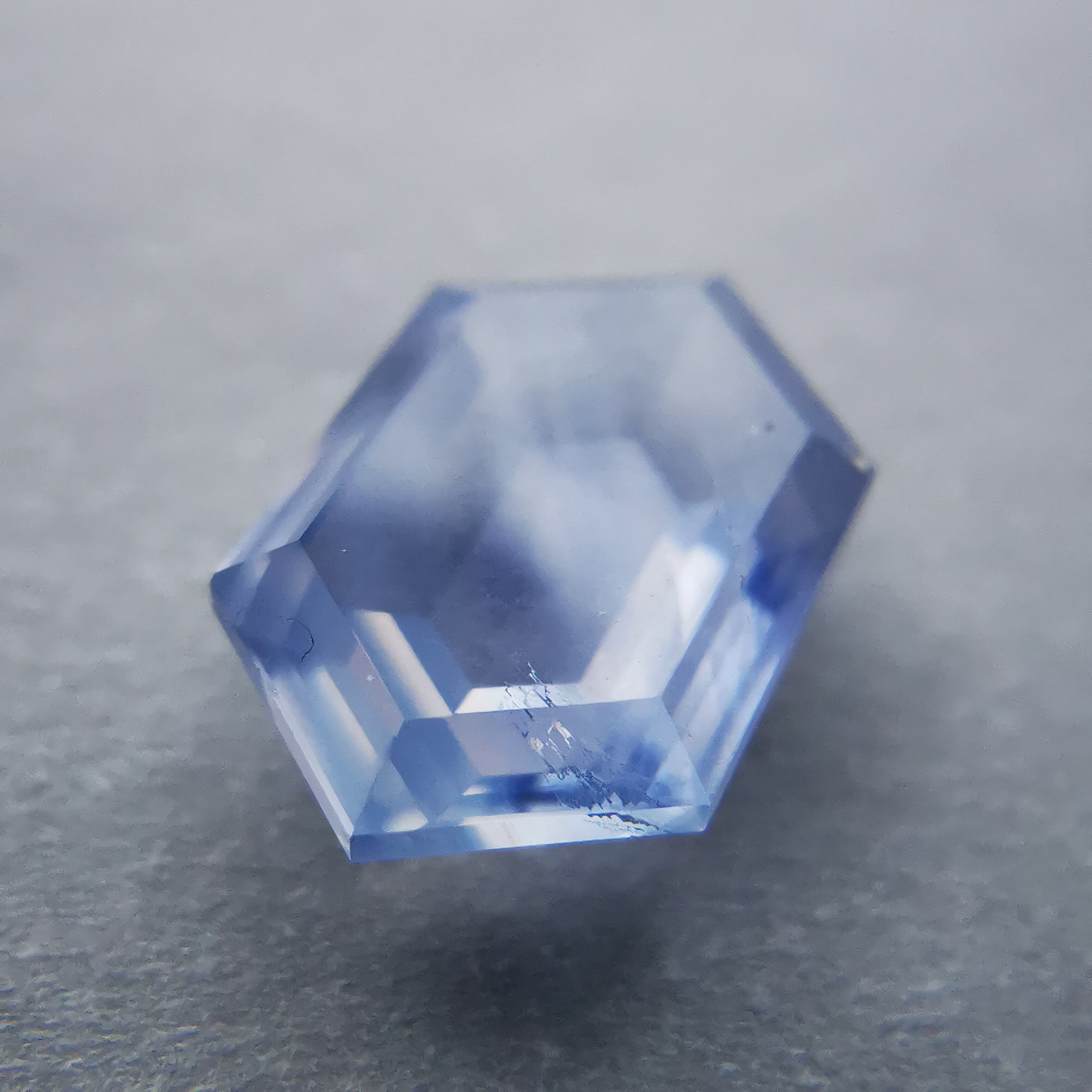 スターサファイアをリカットしたので、日の光を受けると、シルキーなインクルージョンがキラキラと輝きます。