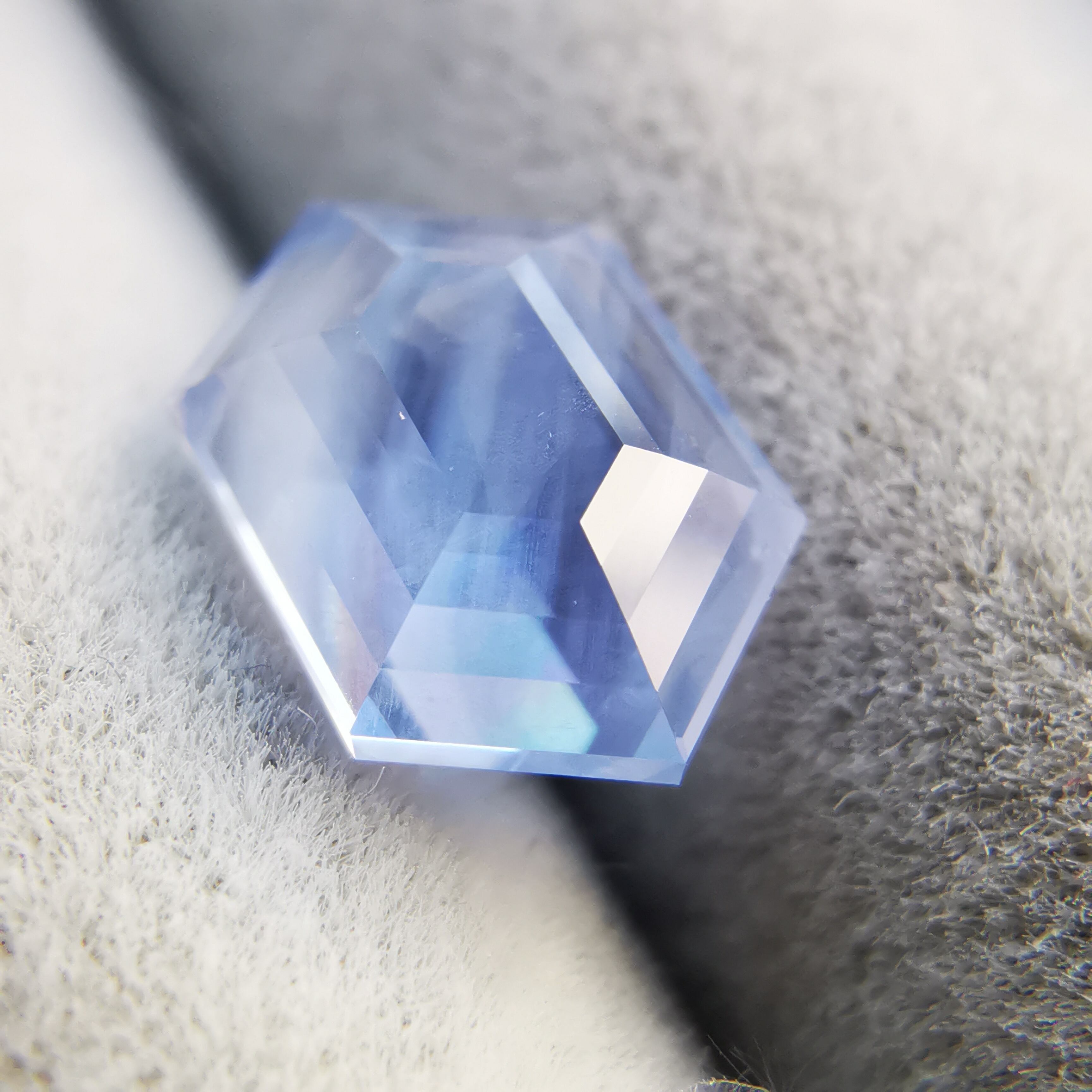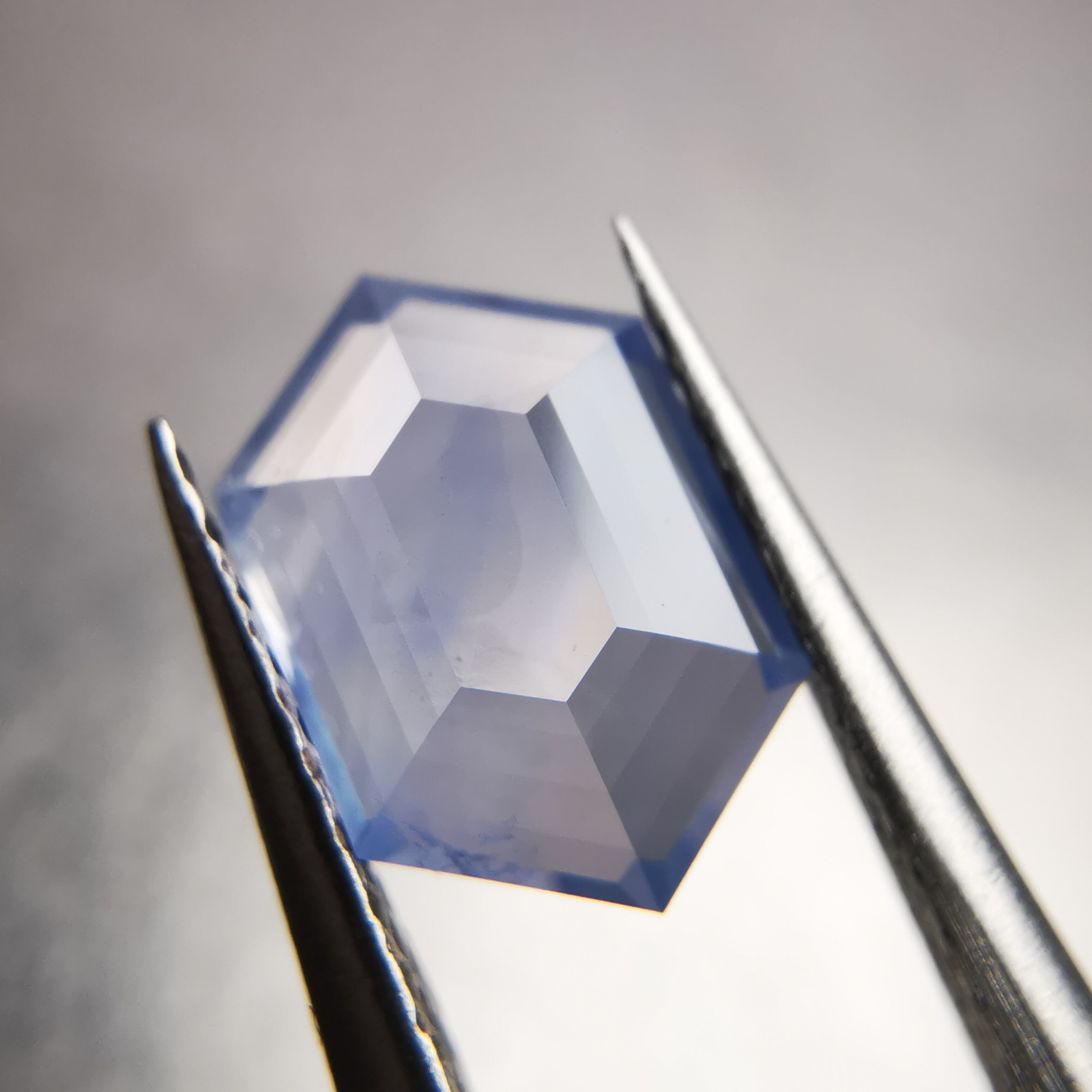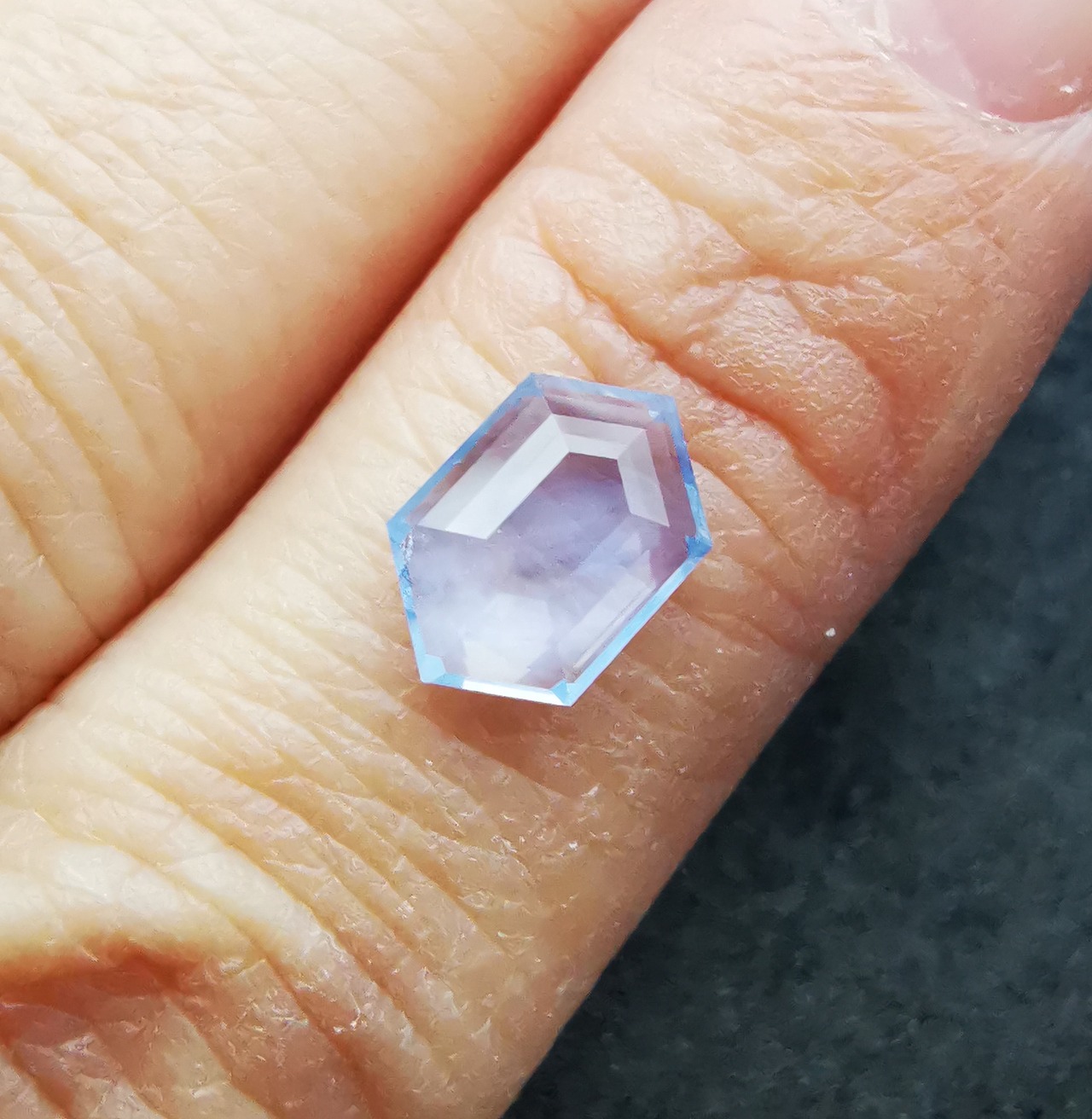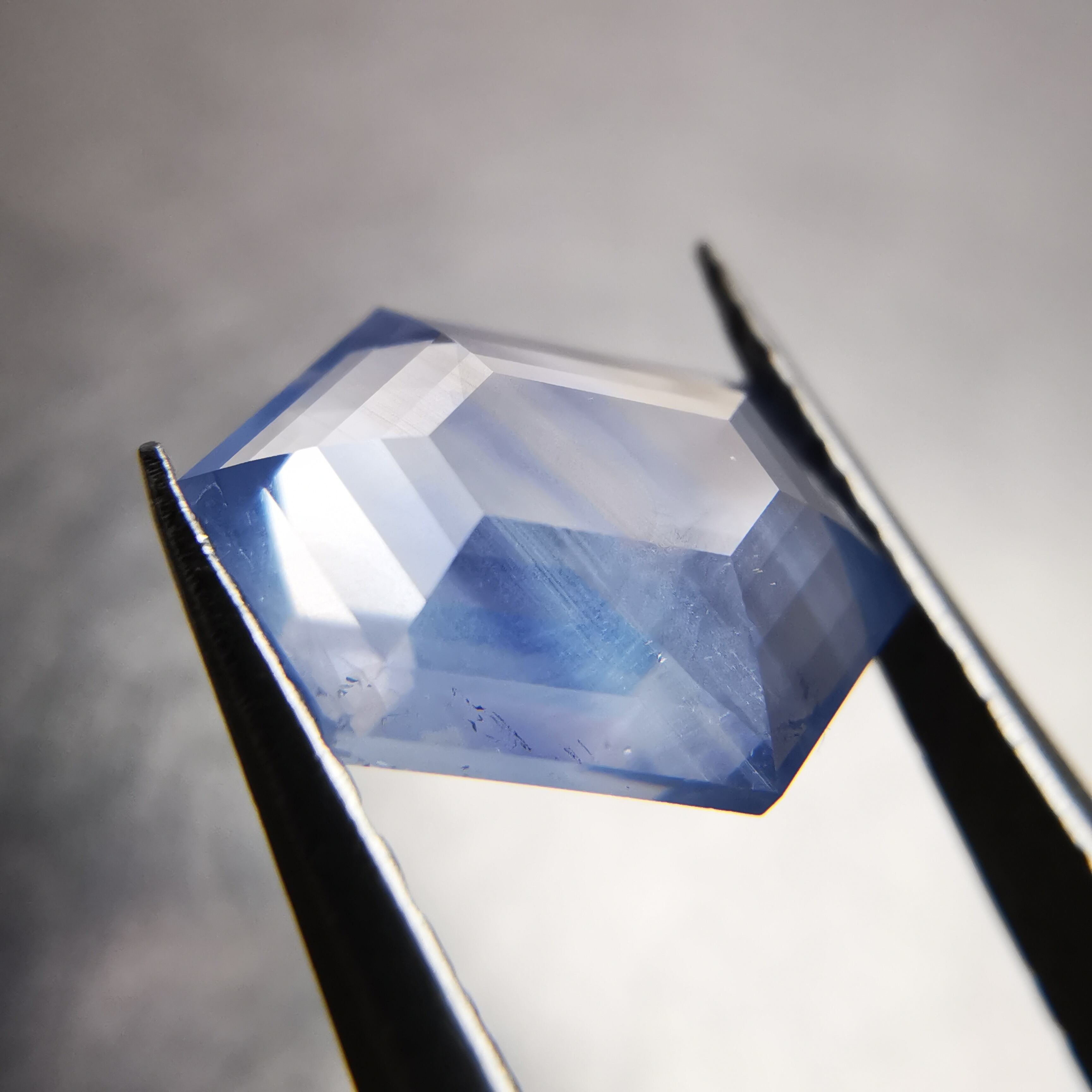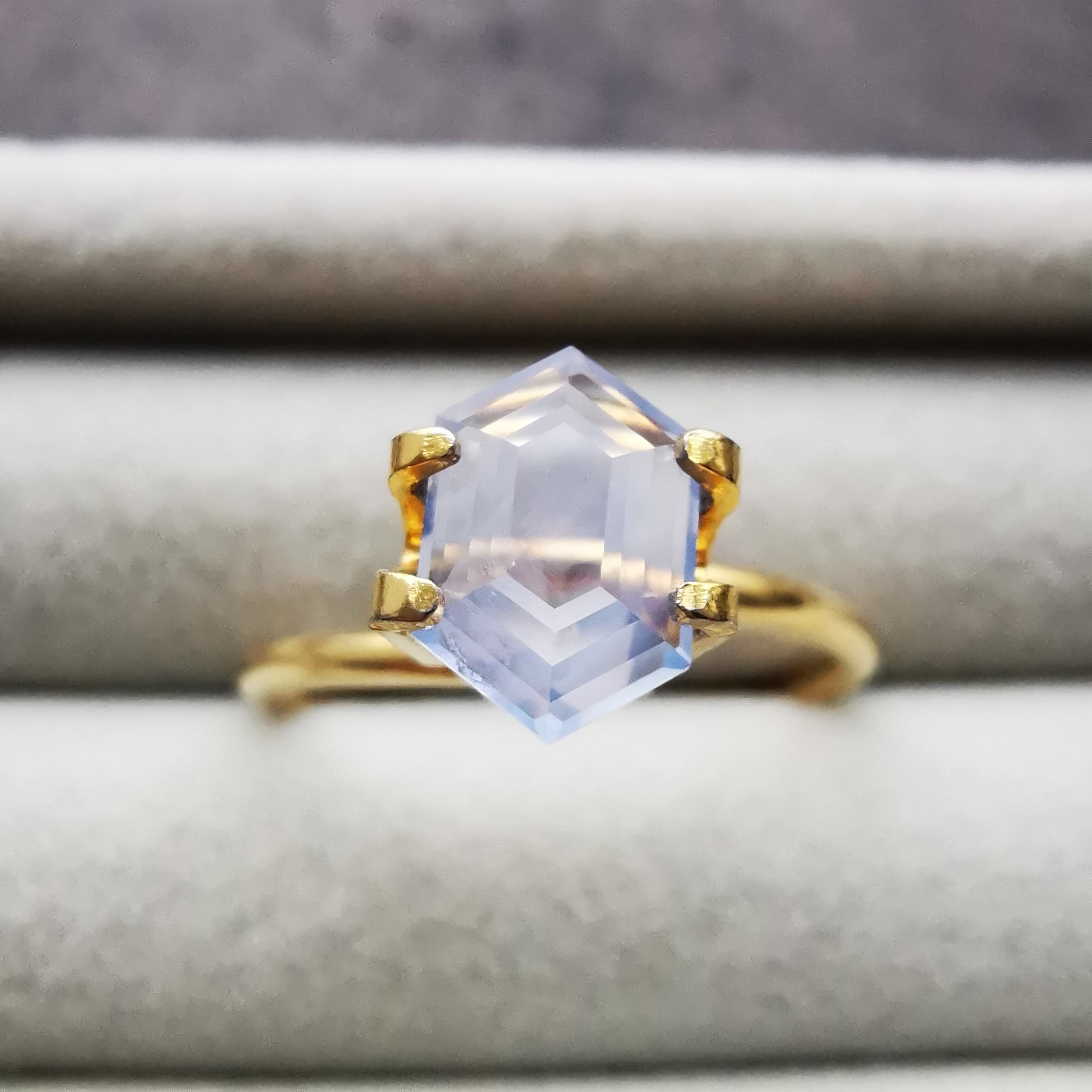 スターサファイアをリカットしたので、日の光を受けると、シルキーなインクルージョンがキラキラと輝きます。