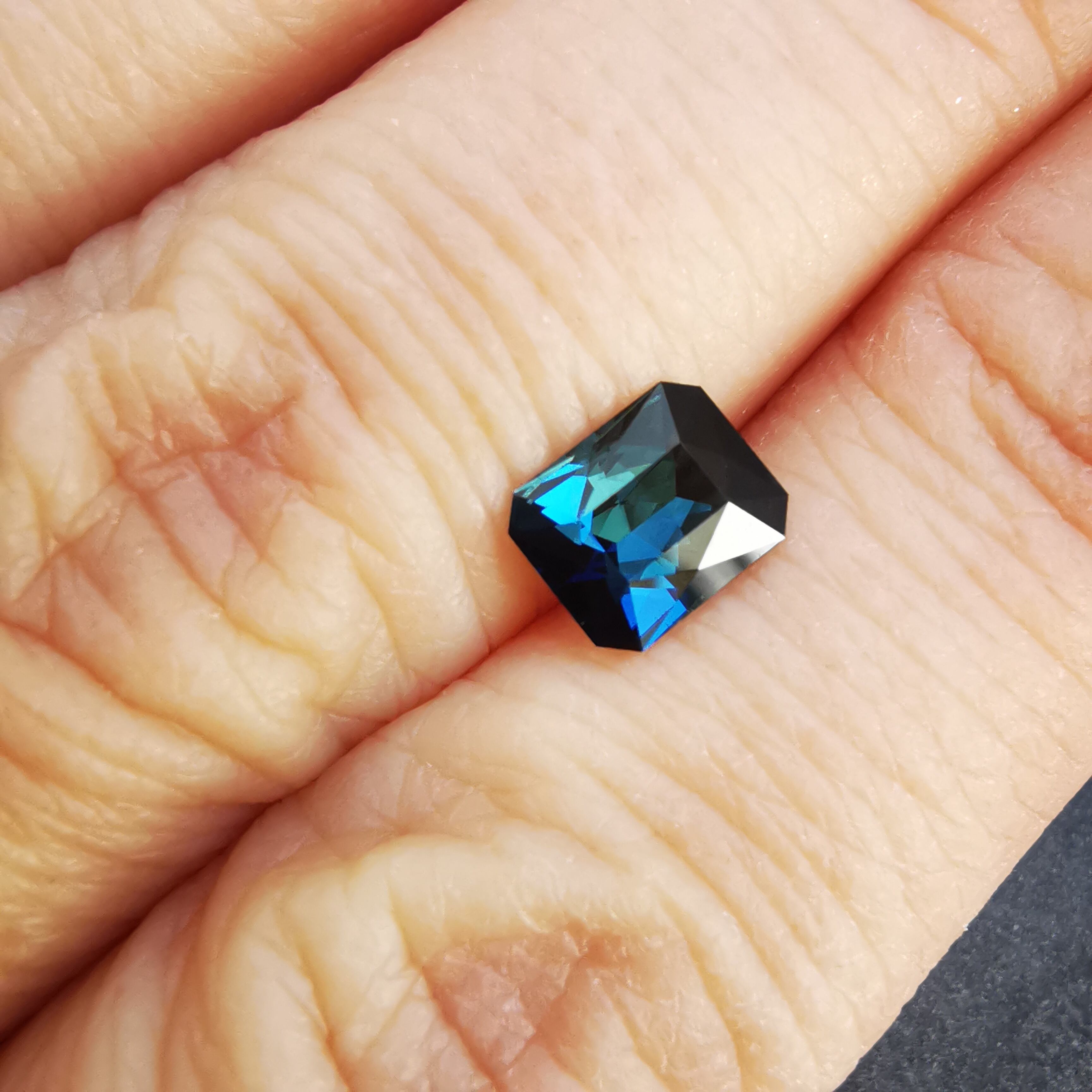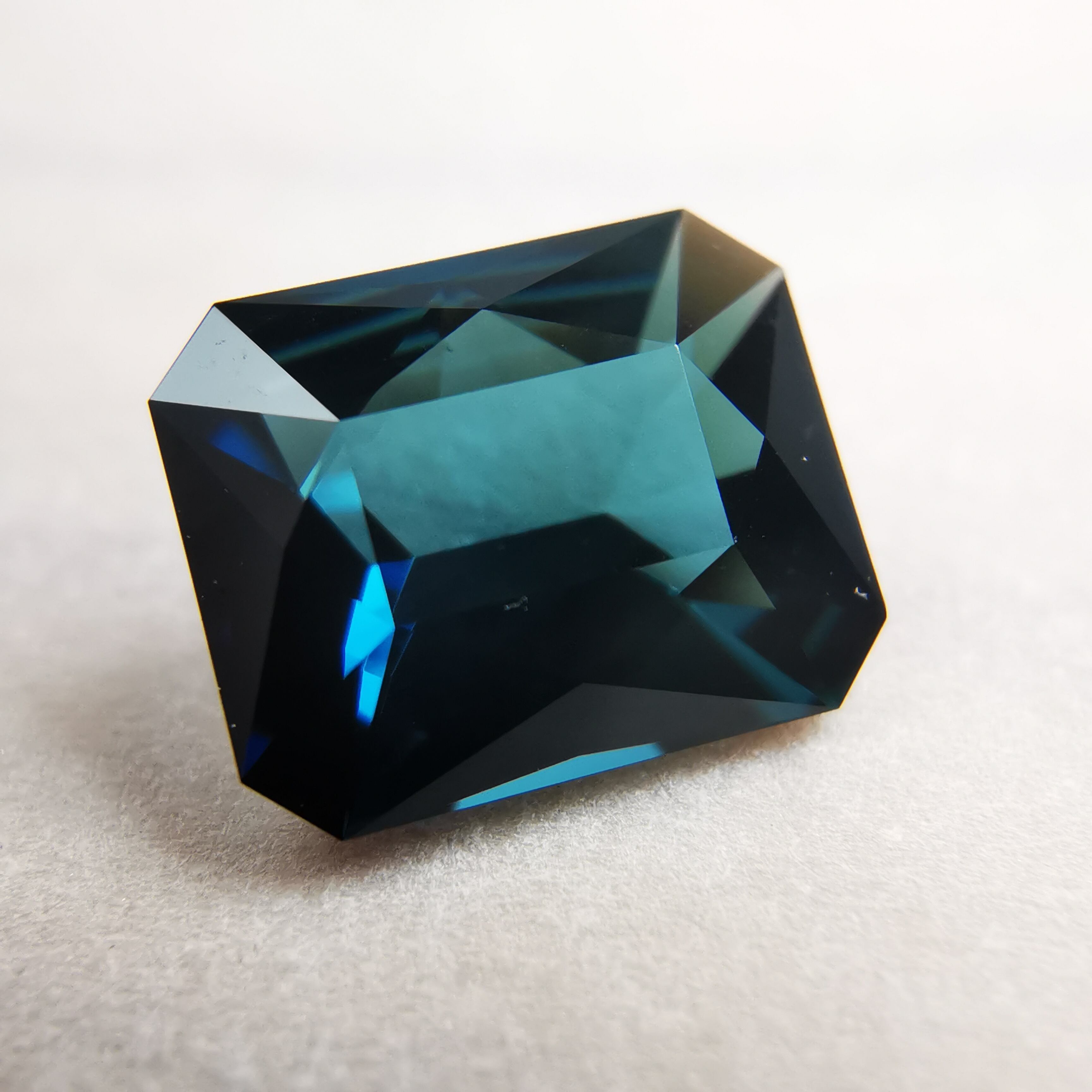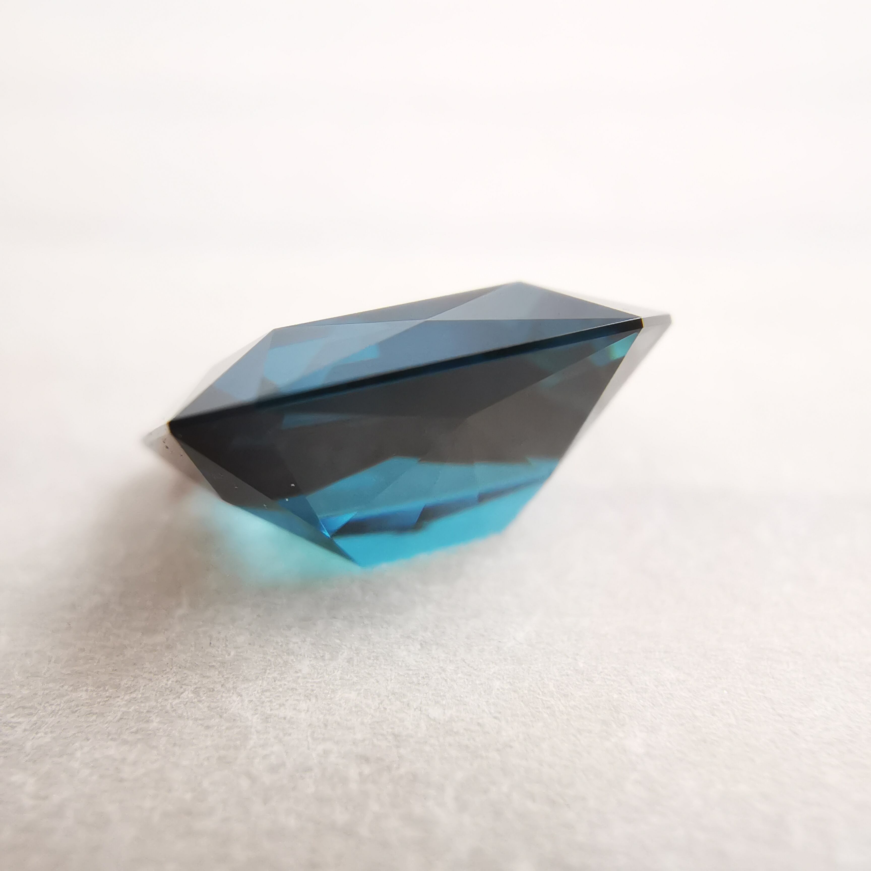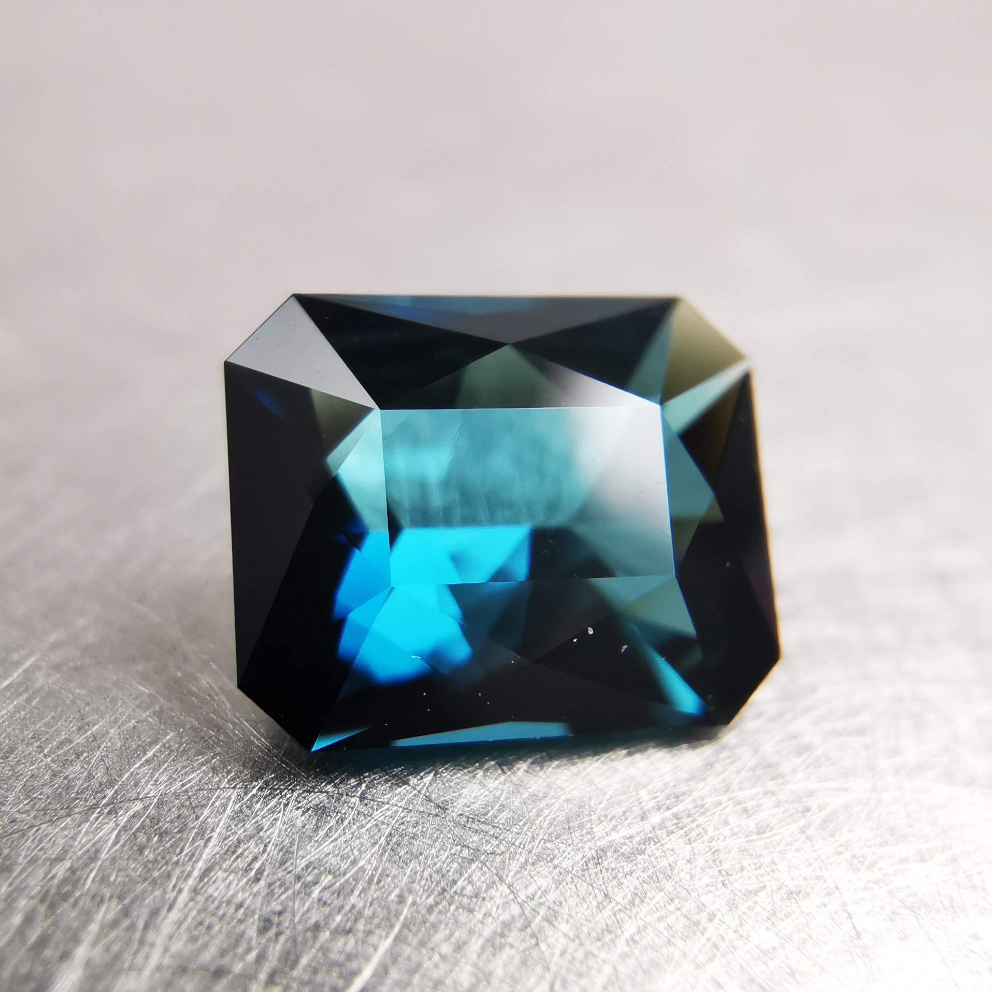 深い森の奥、氷の張った湖面から、清らかな湖底を覗き込んだような、暗く、深く、澄んだブルーグリーンのトルマリンです。