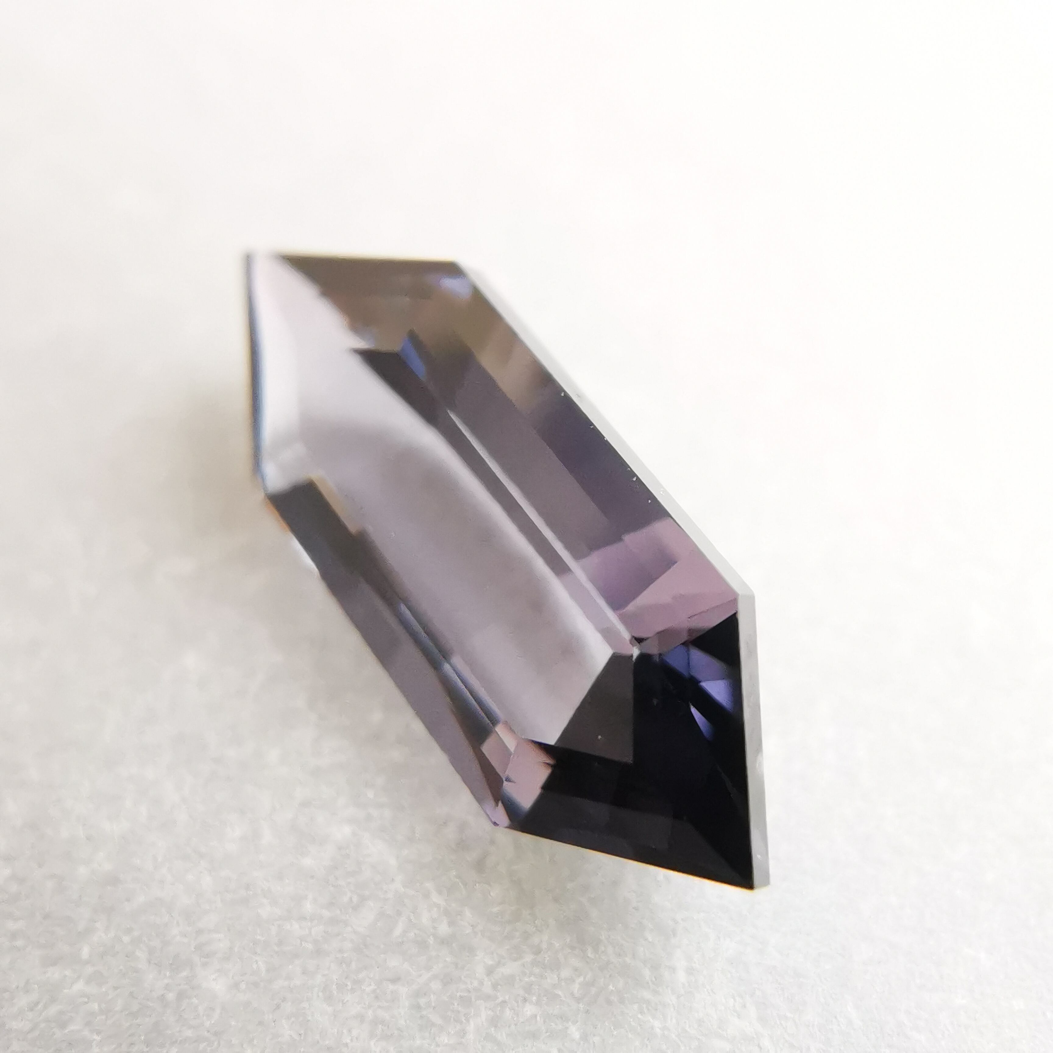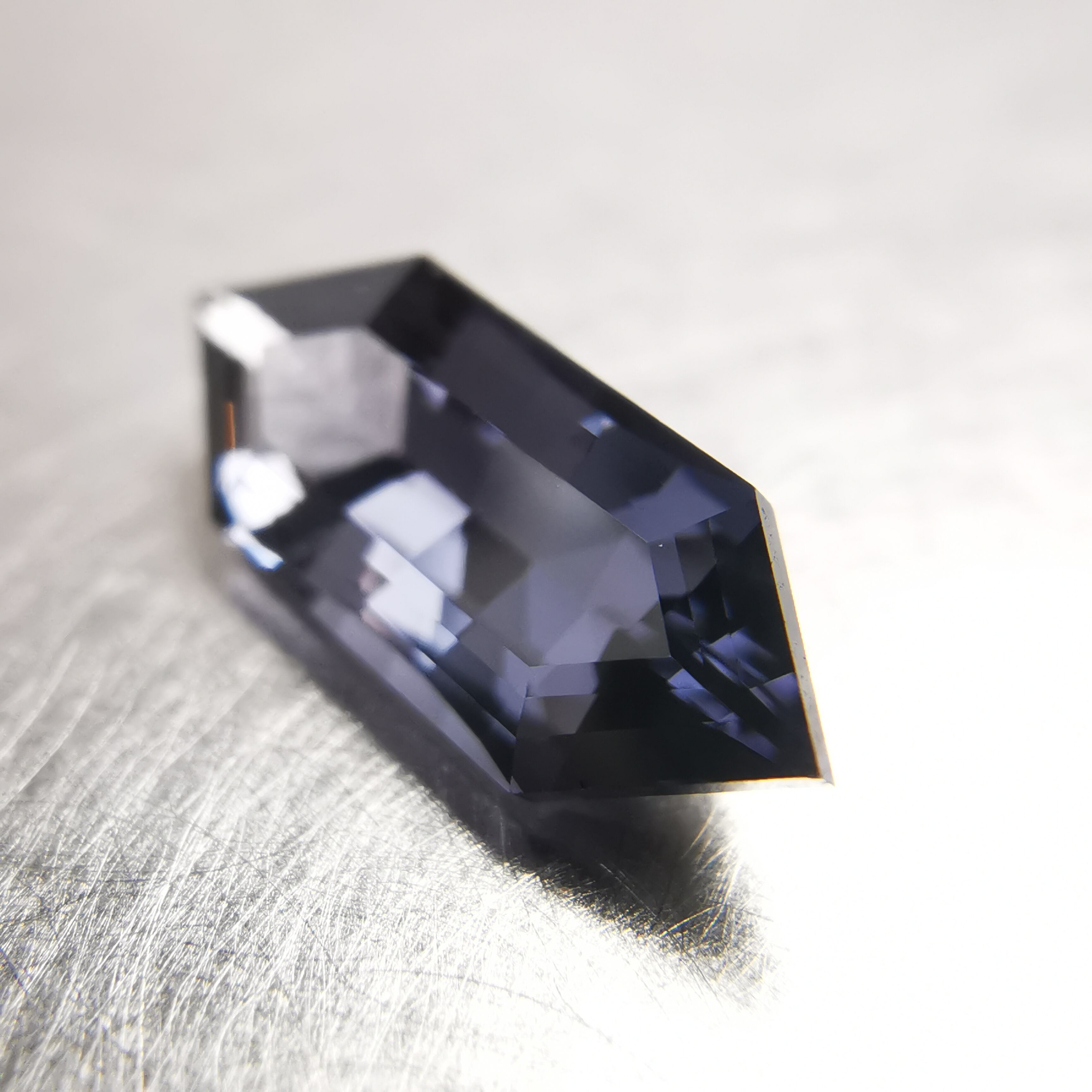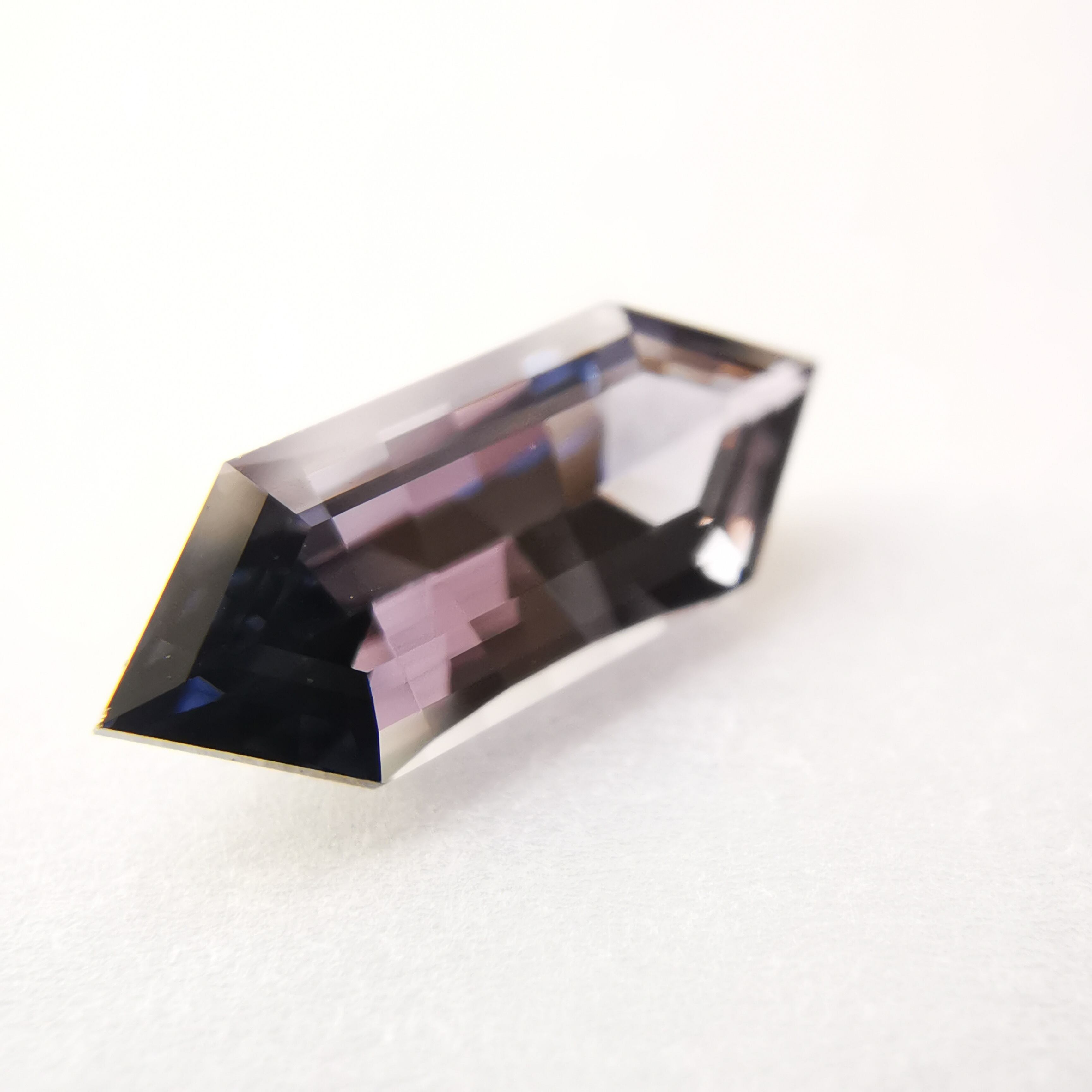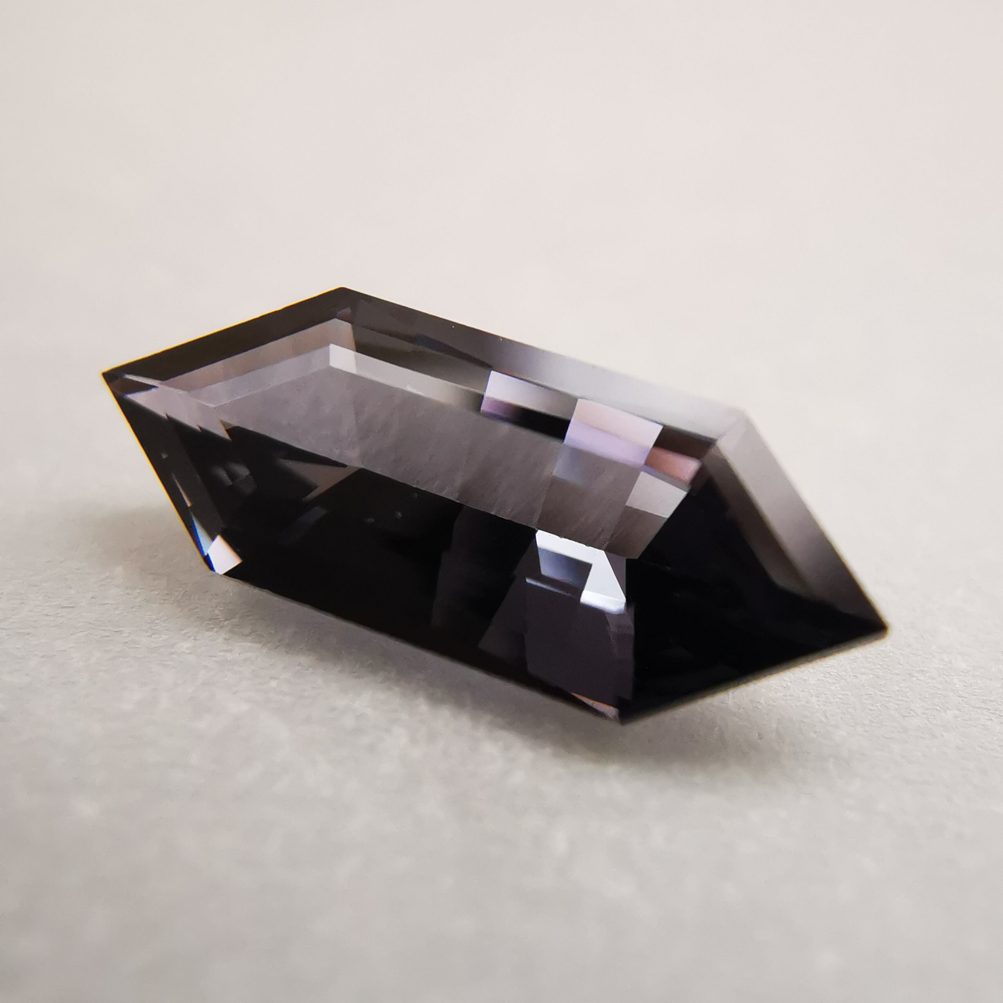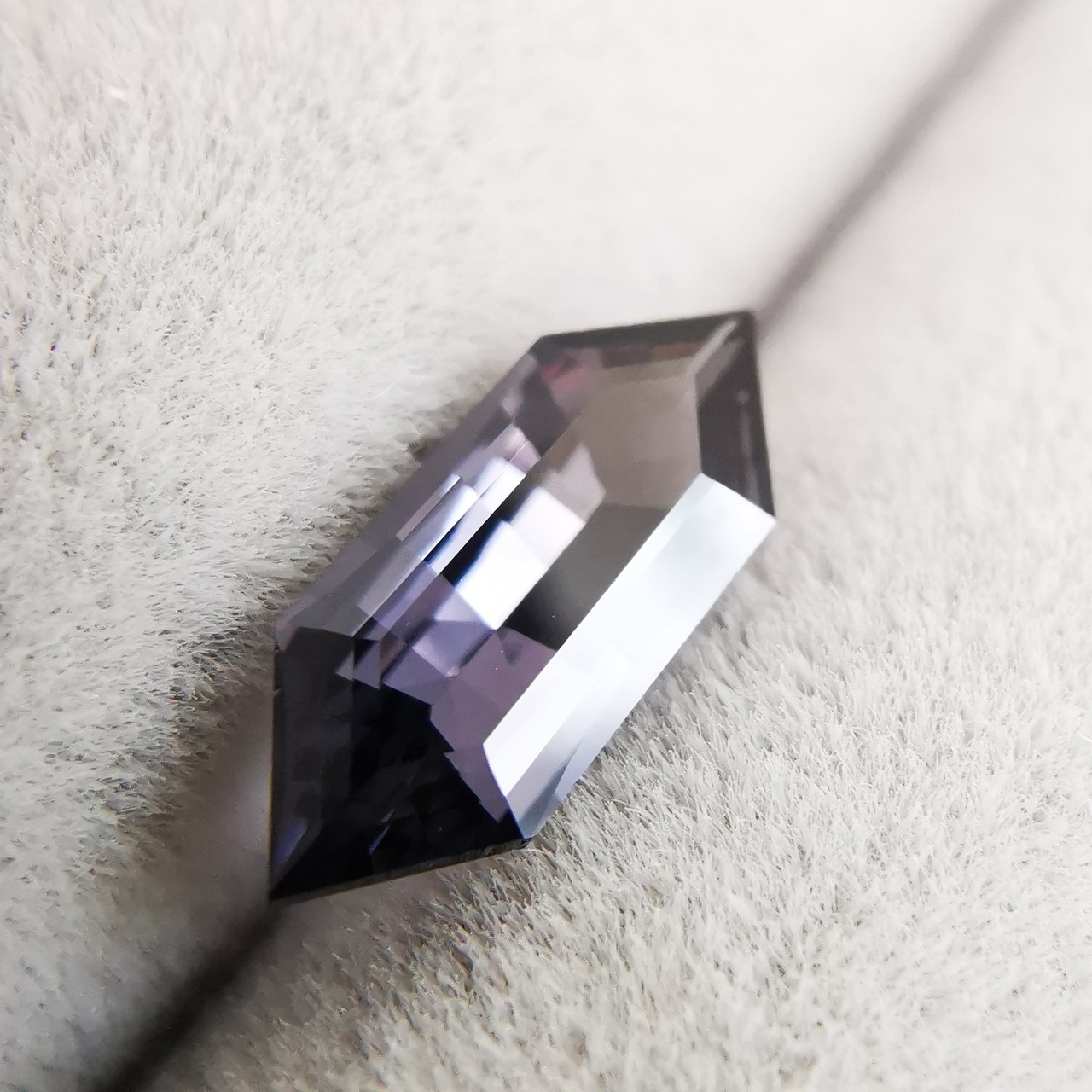 黒に近いダークなグレーの中から、淡いパープルグレーのきらめきが冴える、スピネルらしいカラーの一石です。
