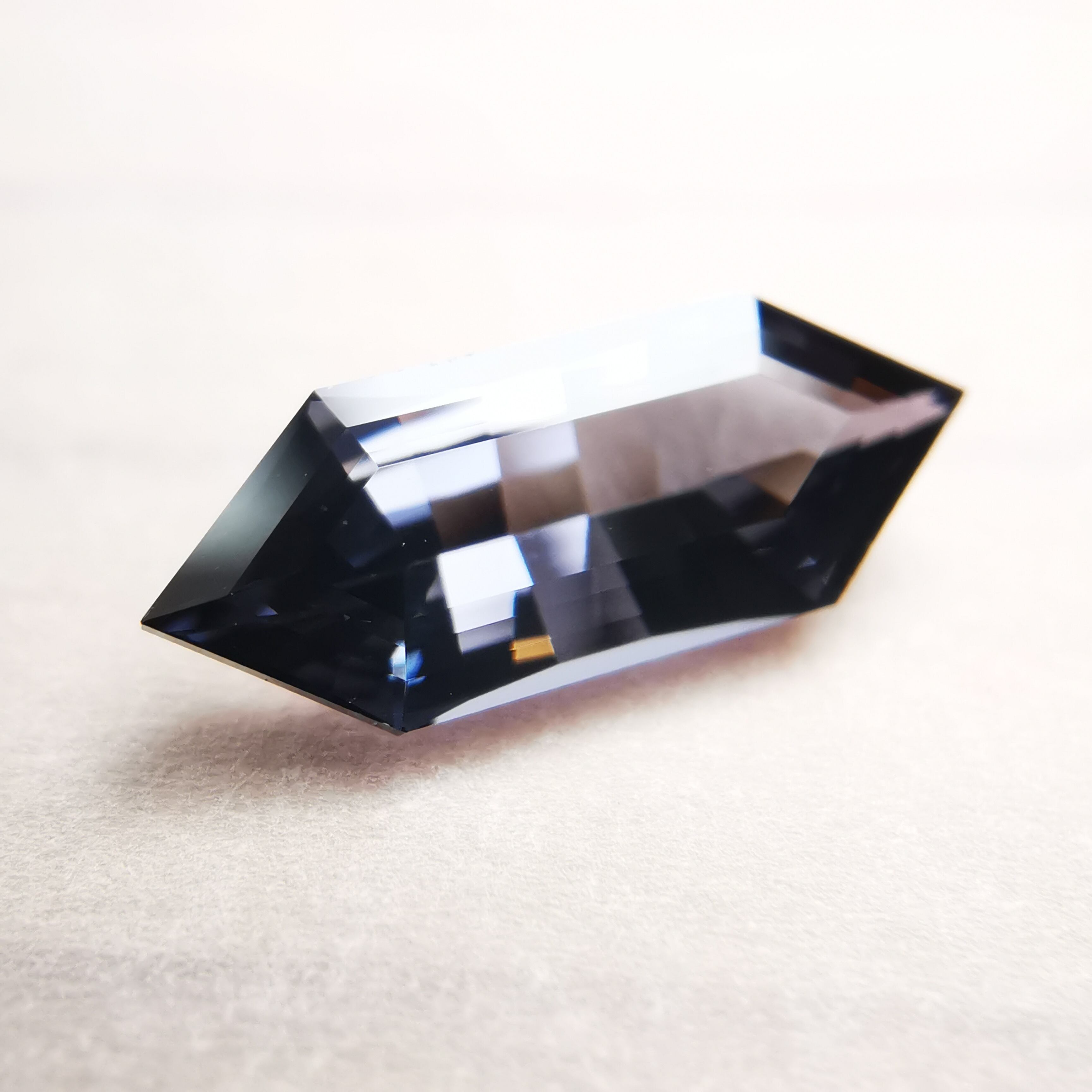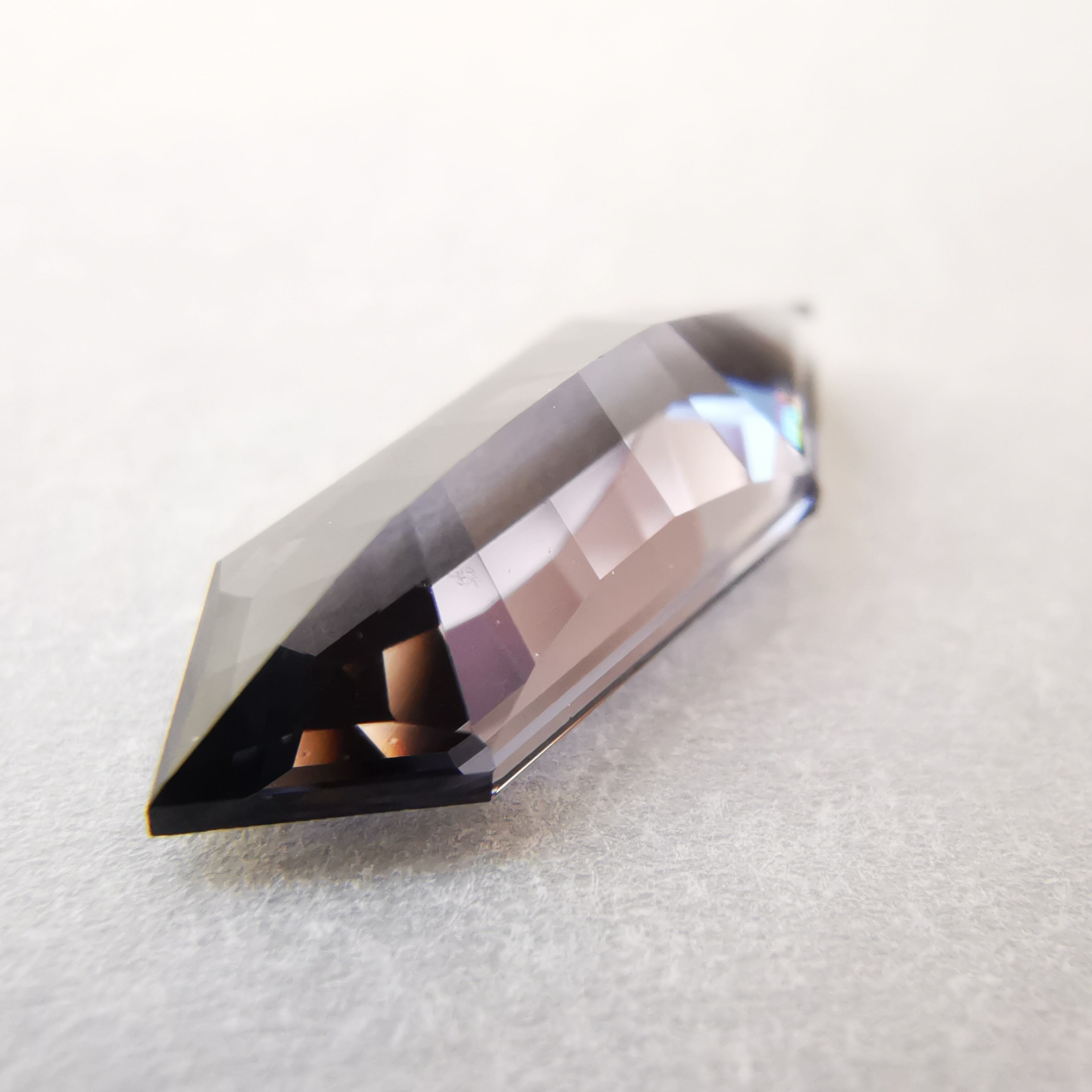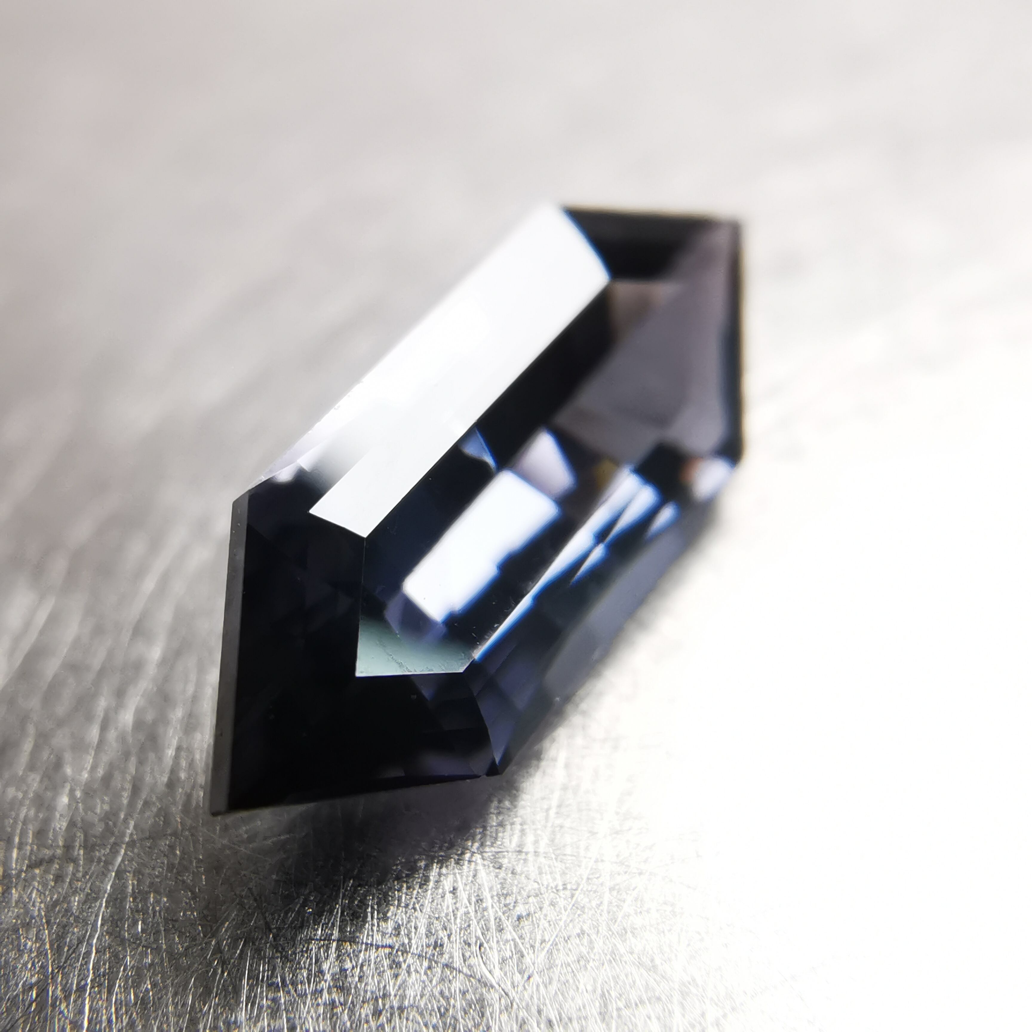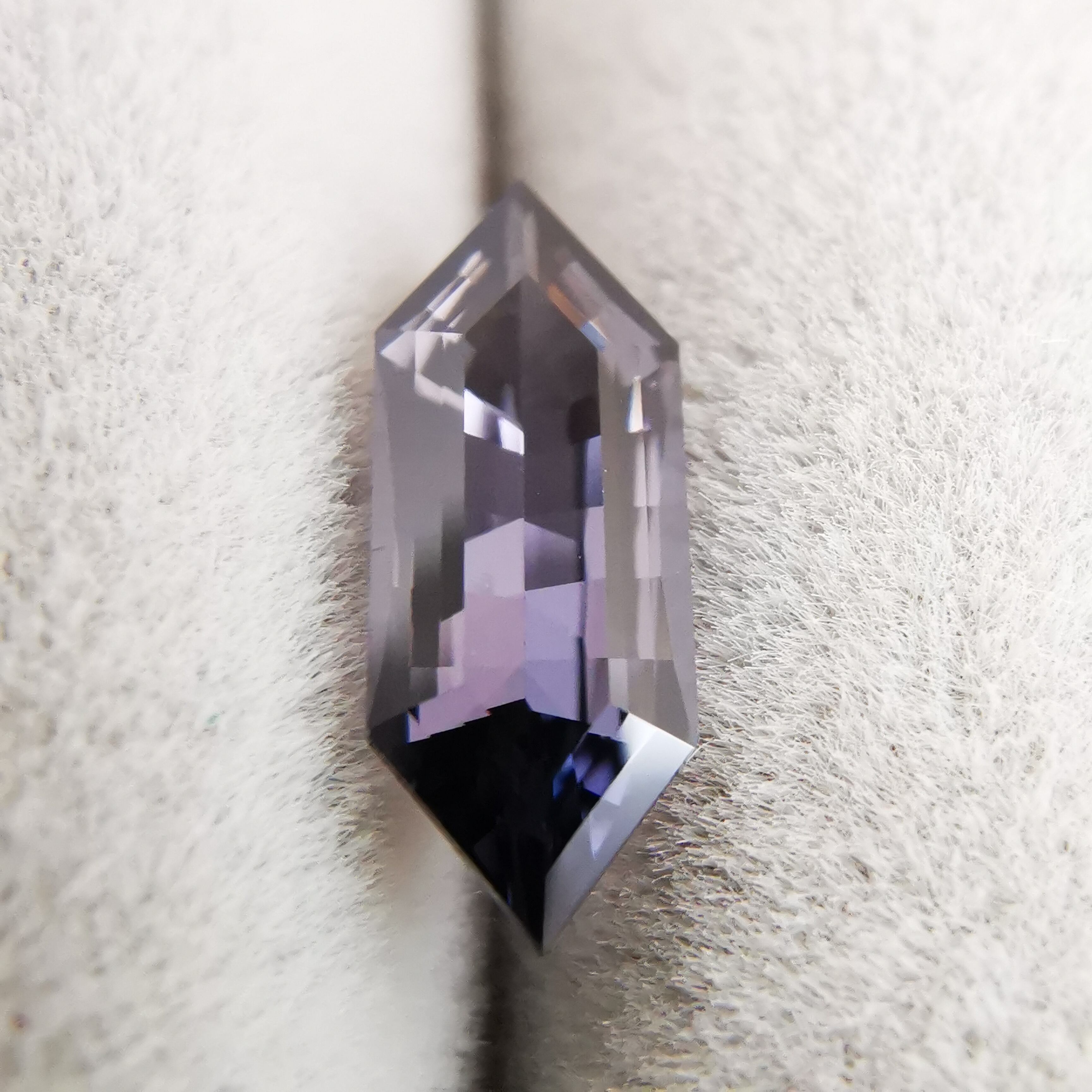 黒に近いダークなグレーの中から、淡いパープルグレーのきらめきが冴える、スピネルらしいカラーの一石です。