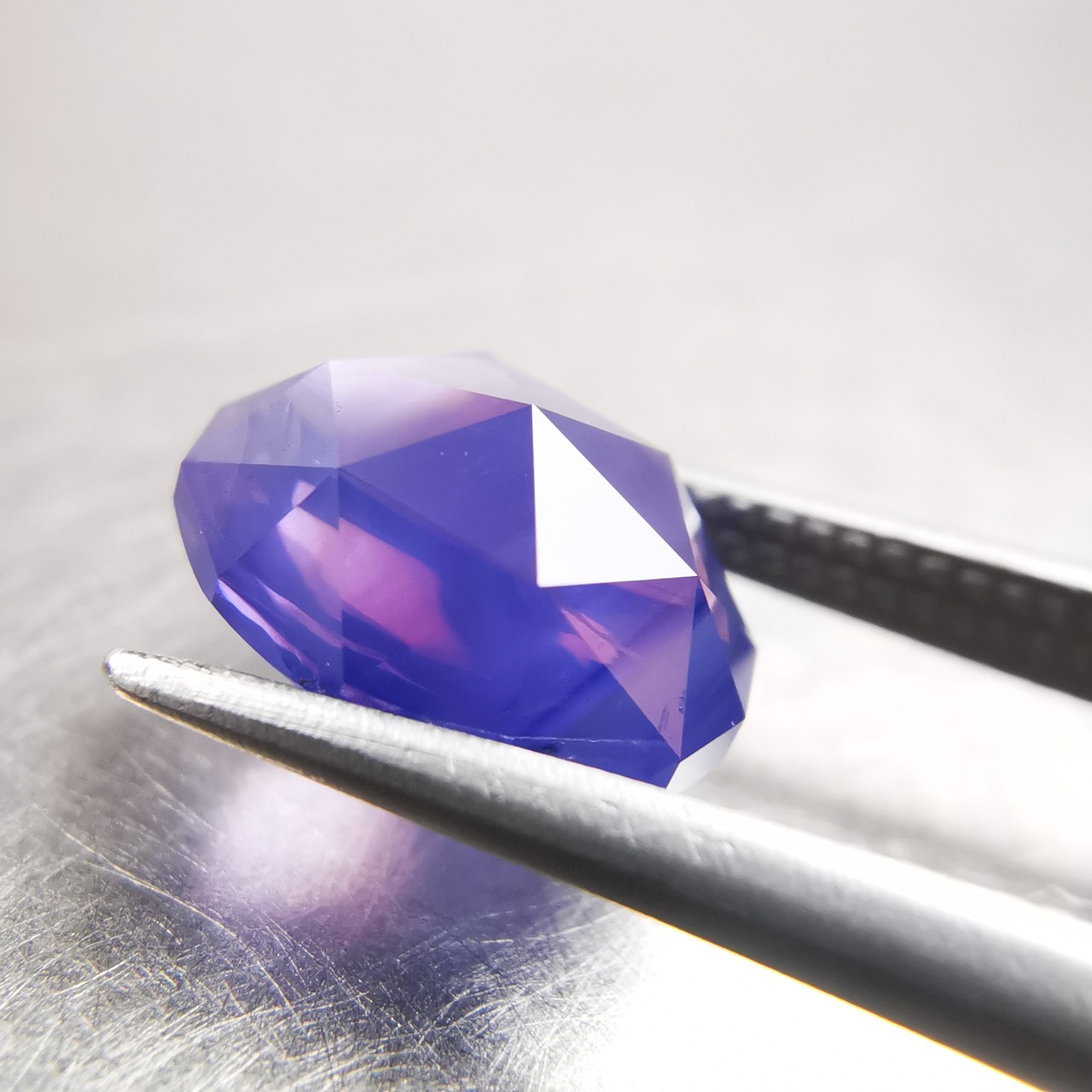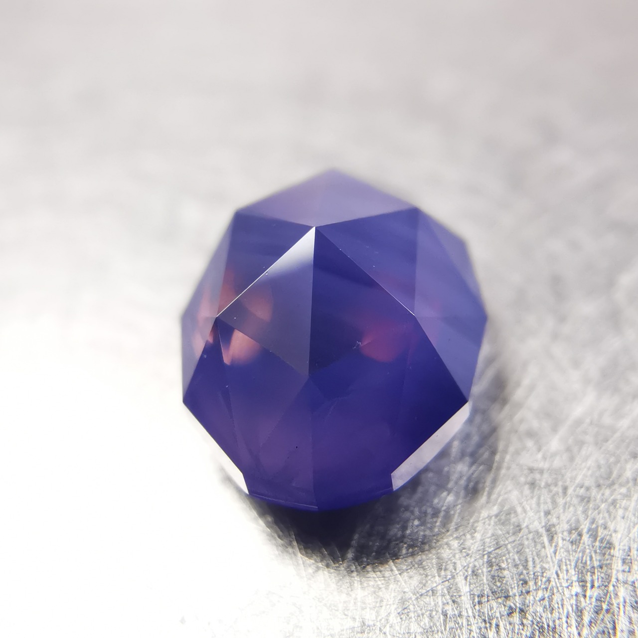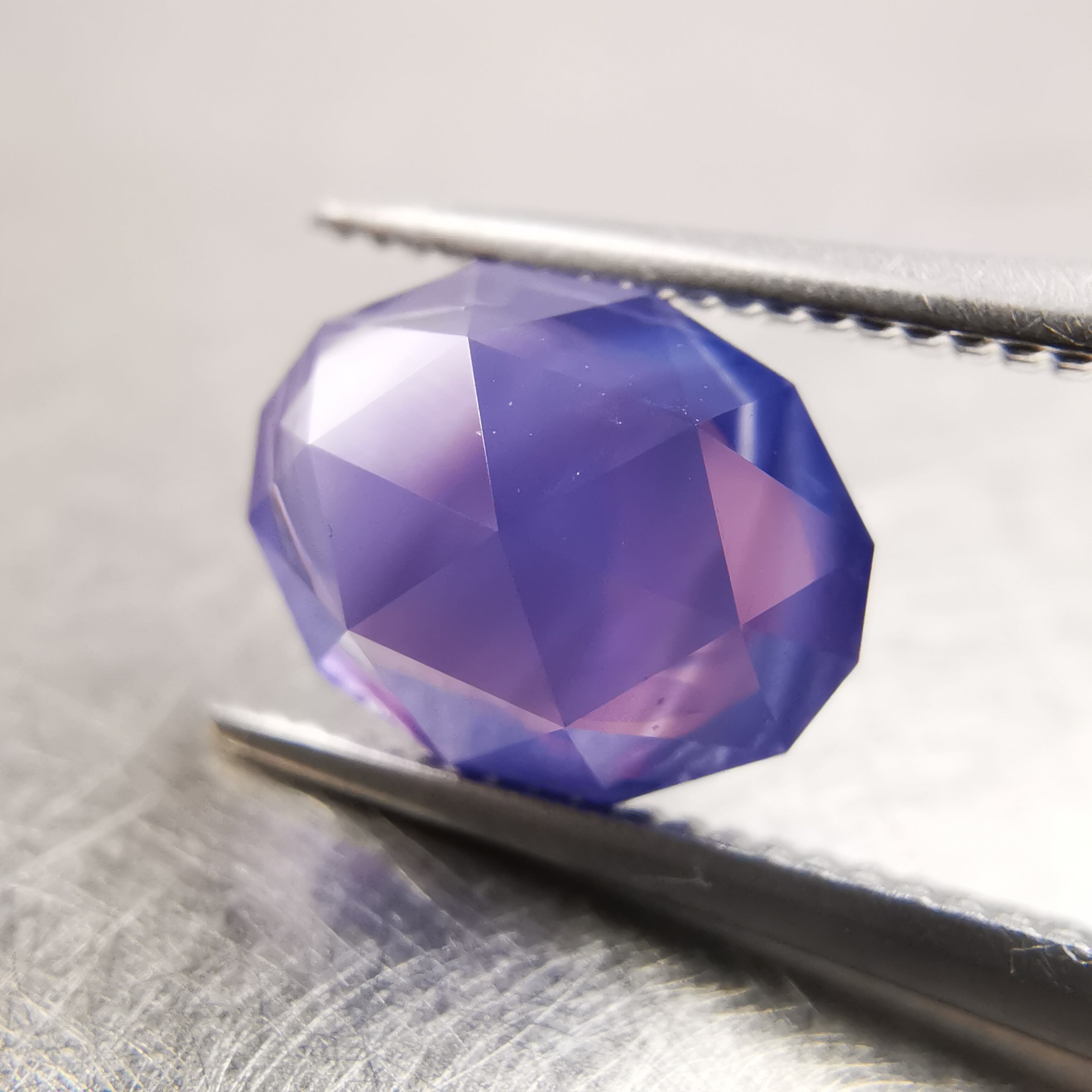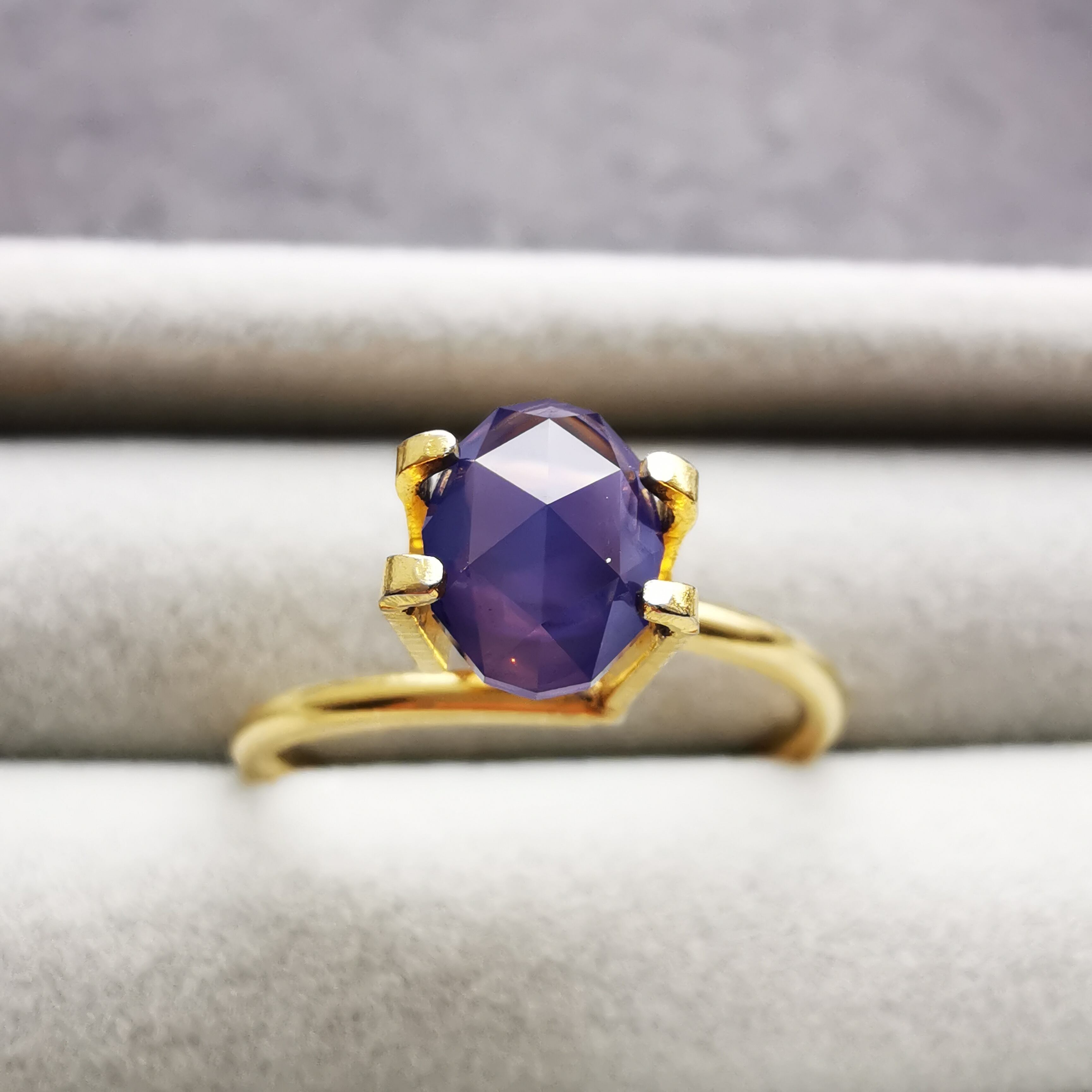 スモーキーで不透明なパープルに隠れたモーブピンクが、時おり垣間見えるサファイアです。