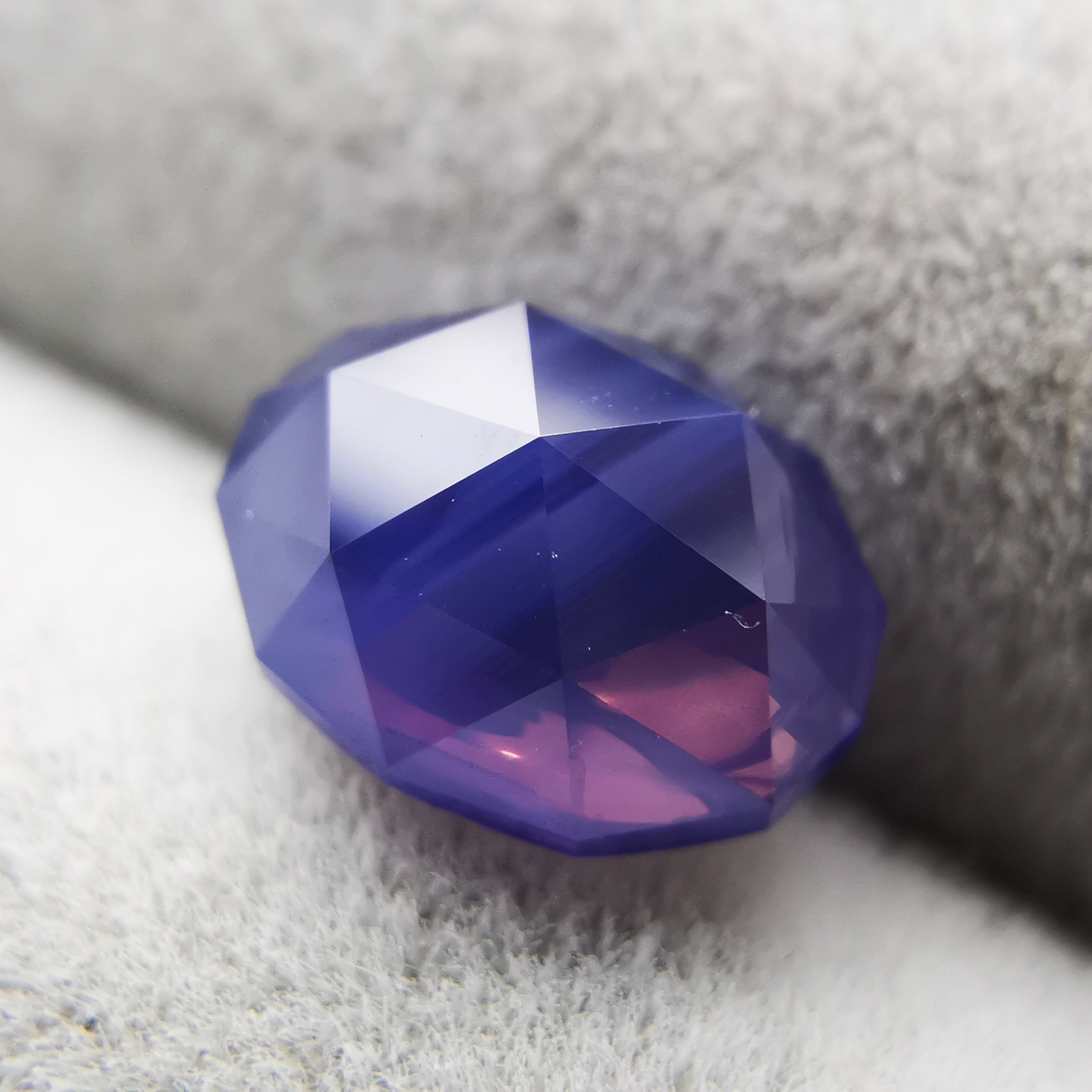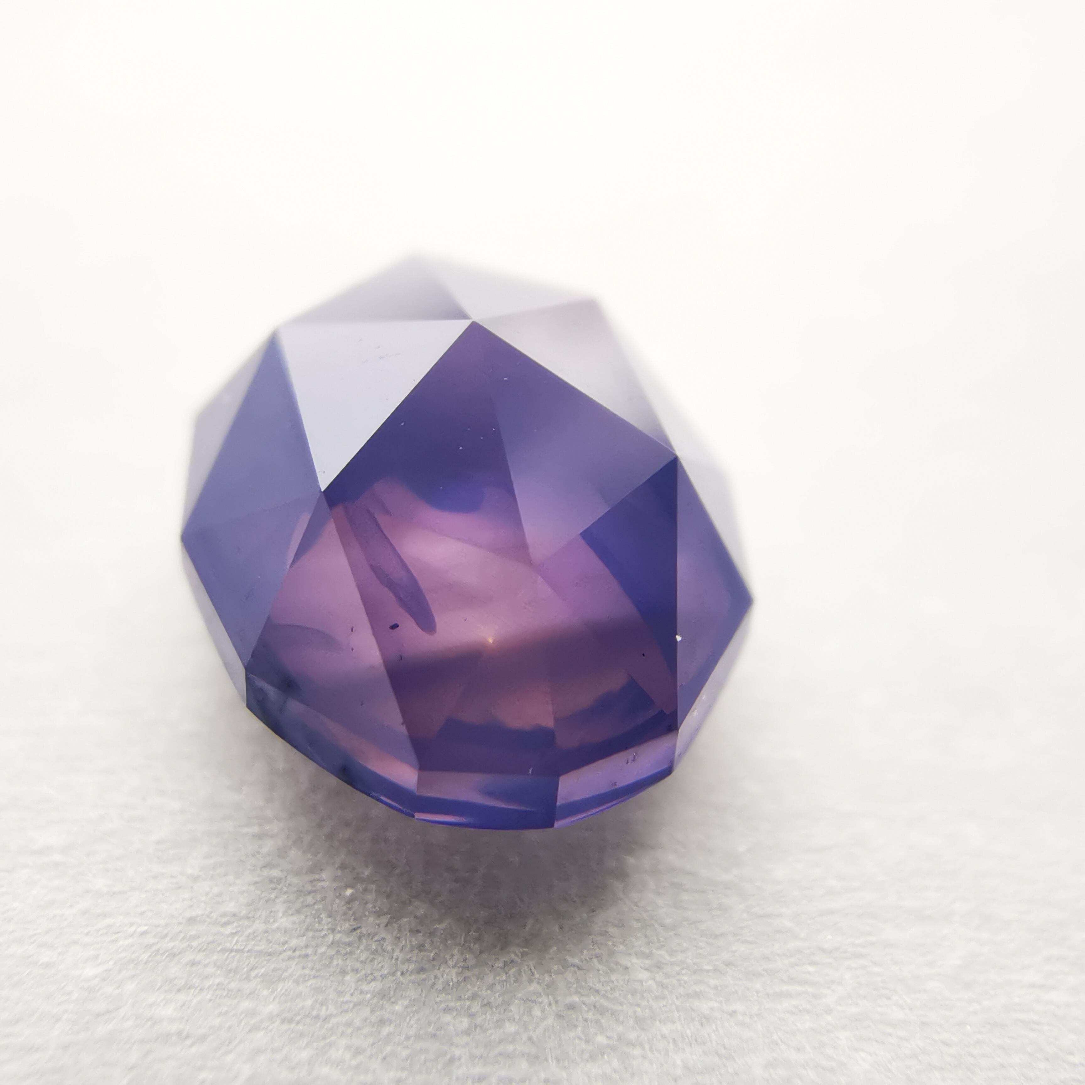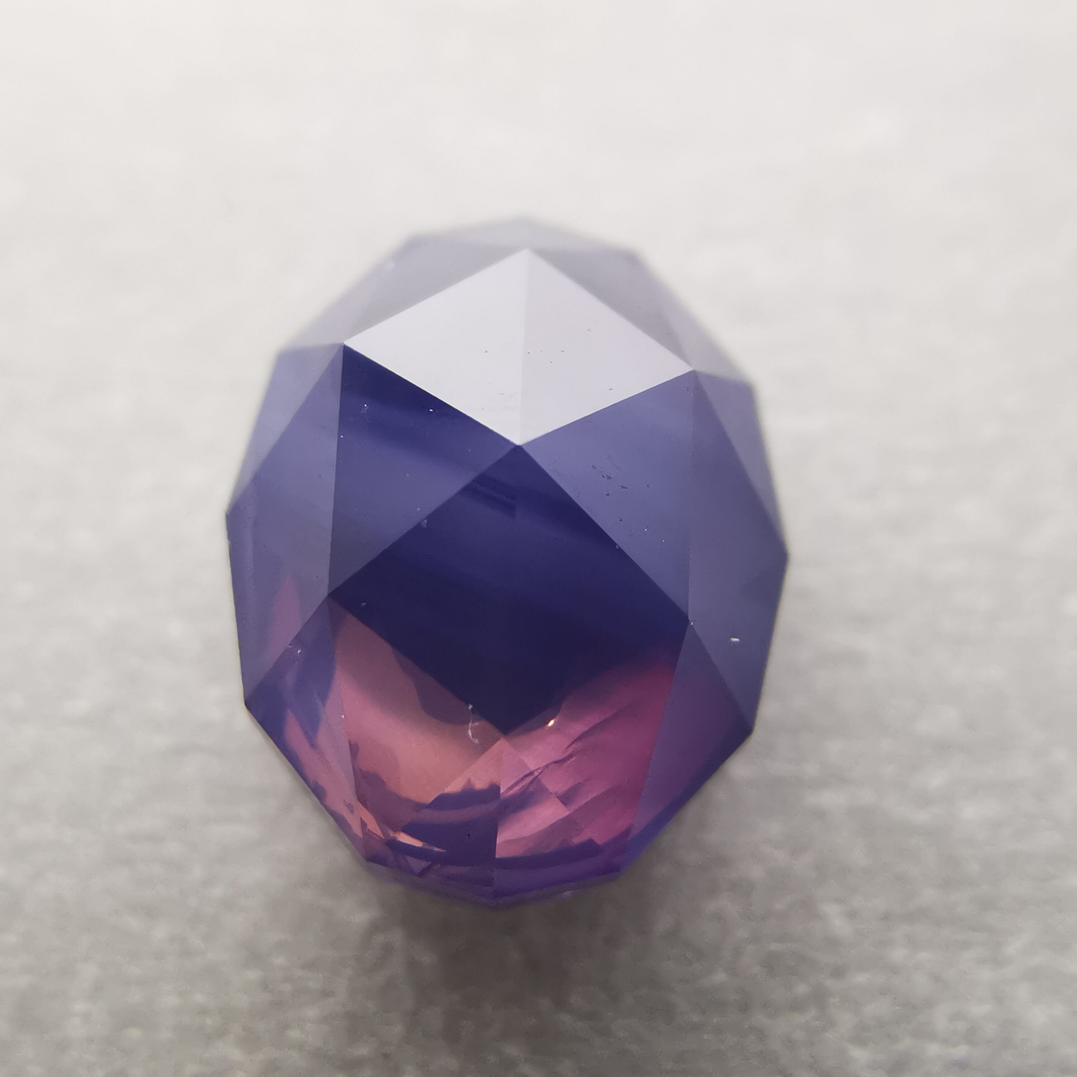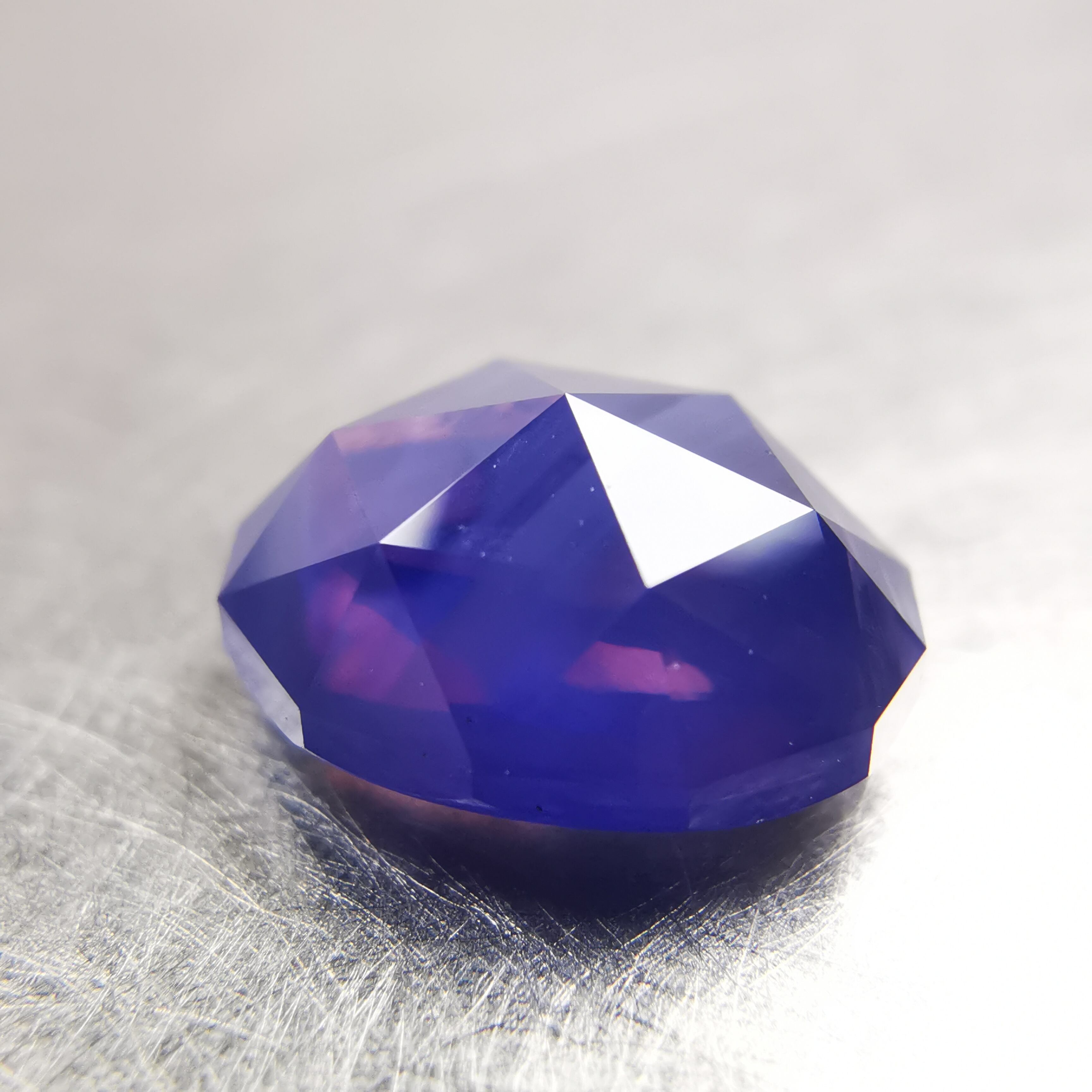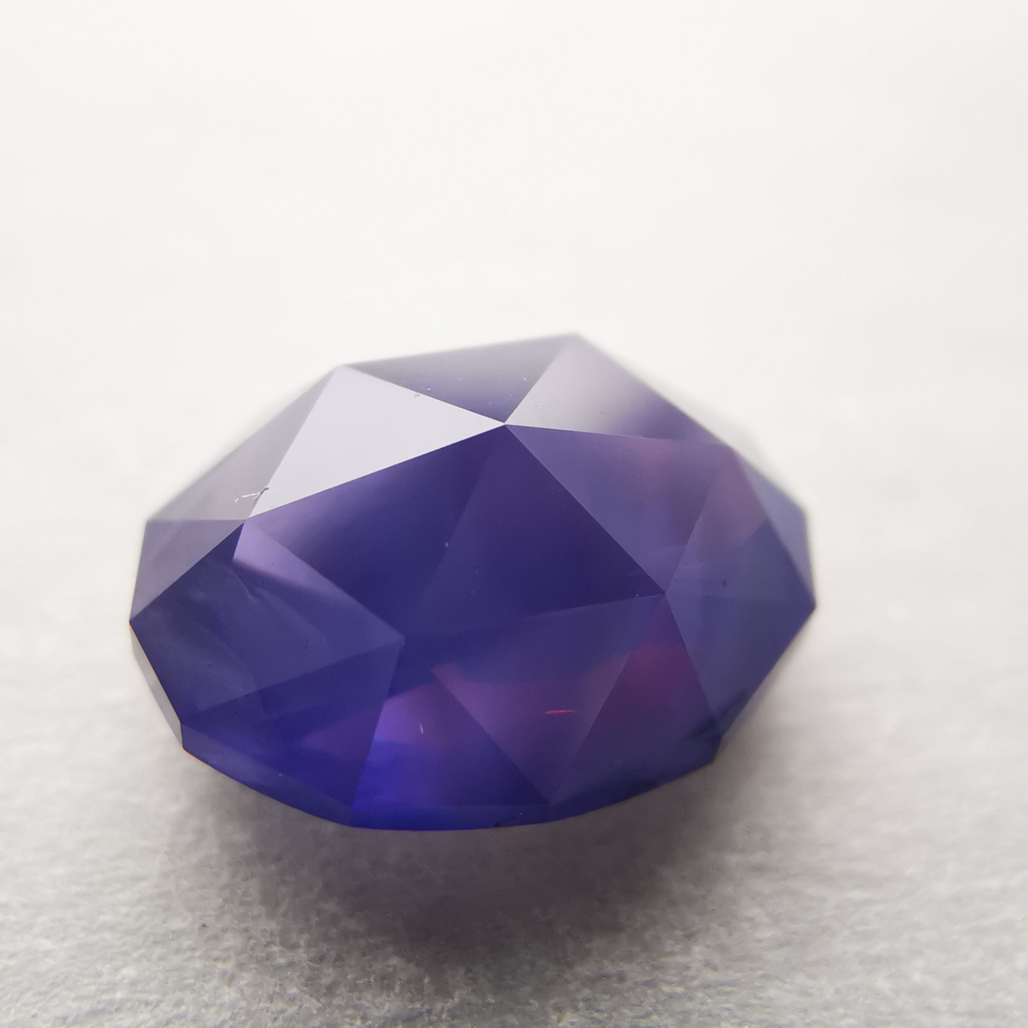 スモーキーで不透明なパープルに隠れたモーブピンクが、時おり垣間見えるサファイアです。