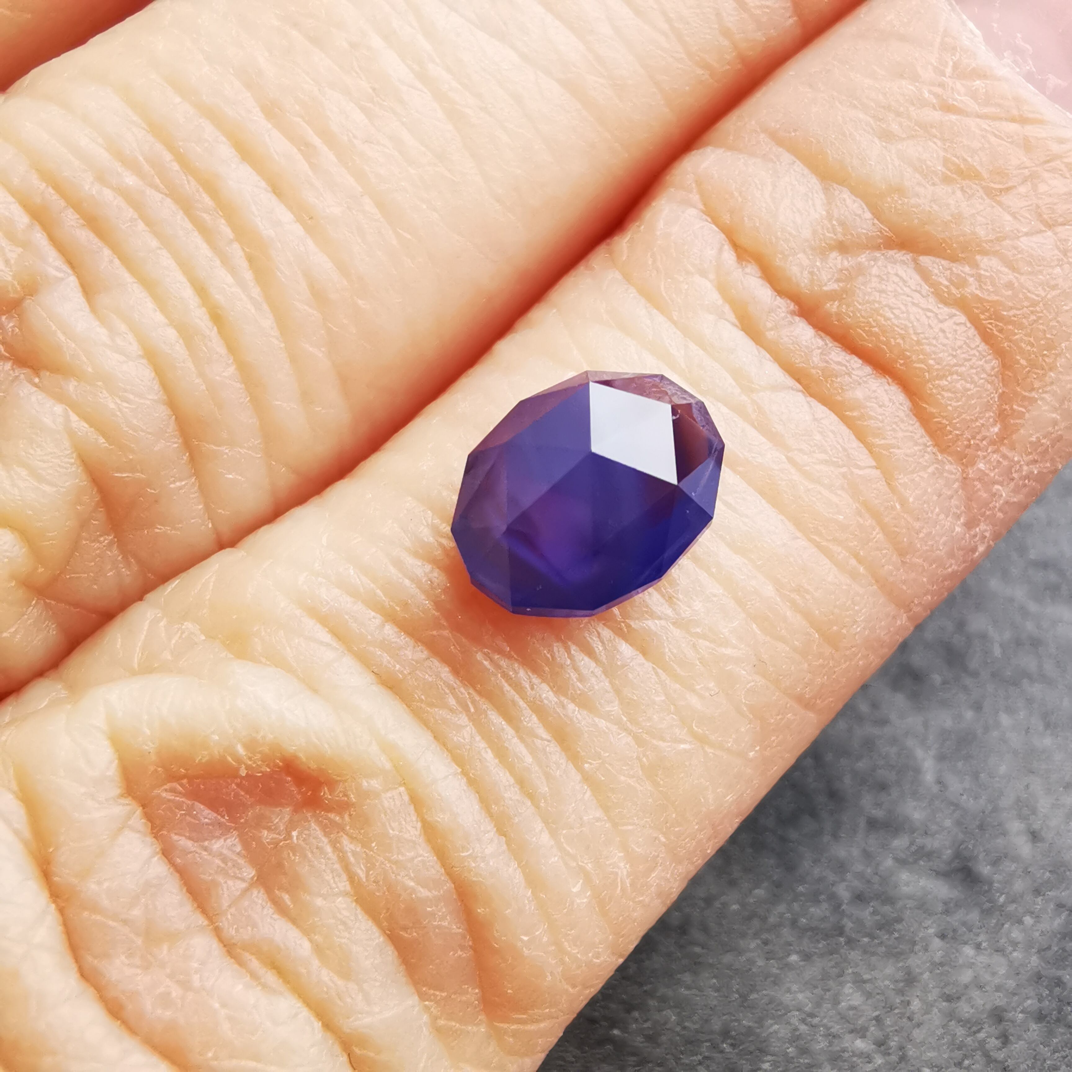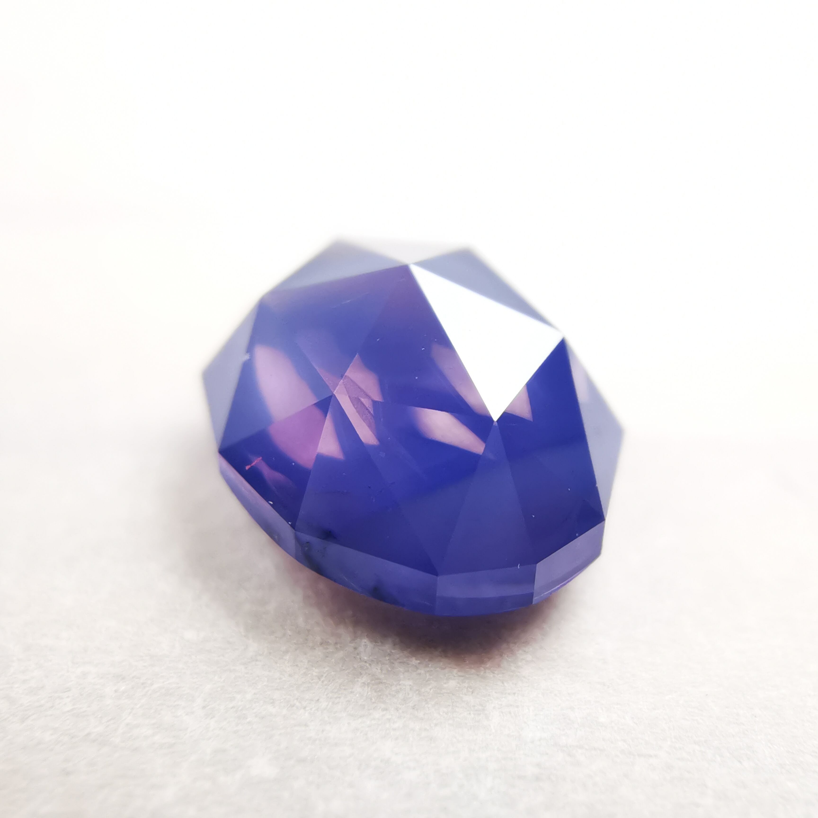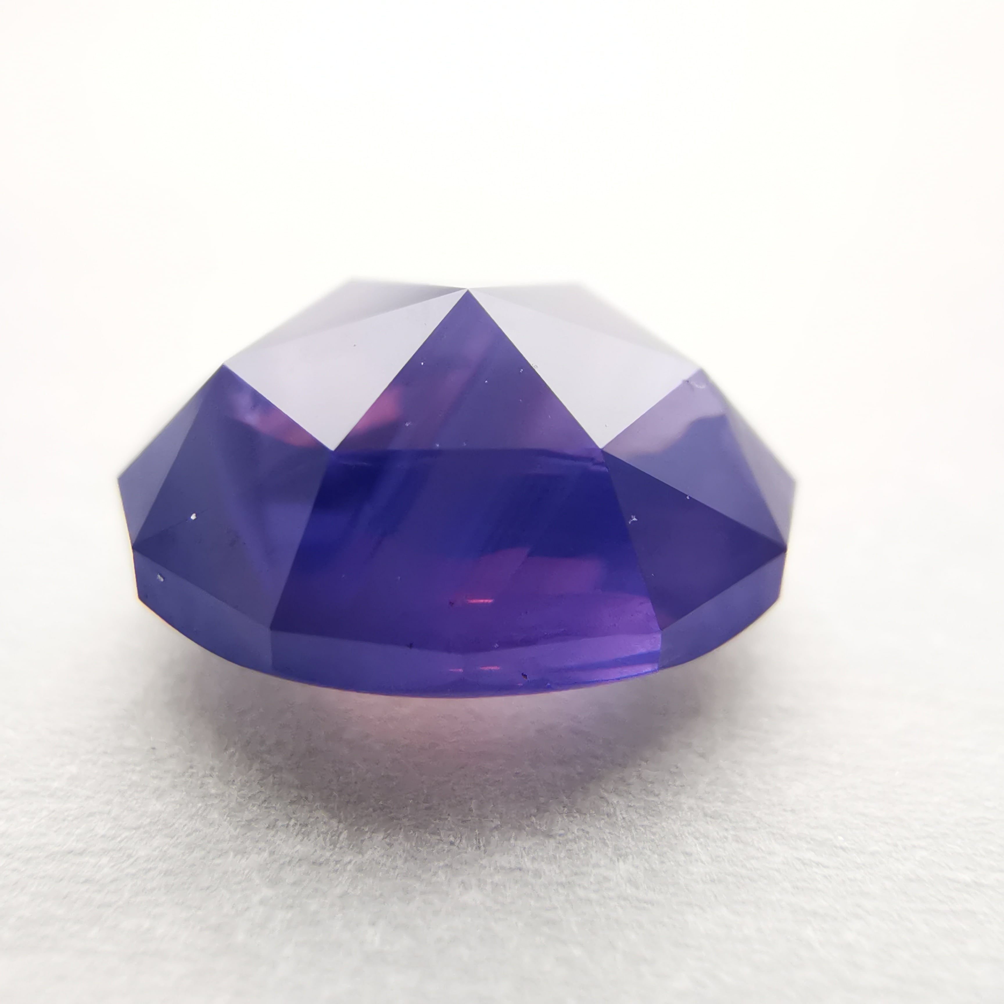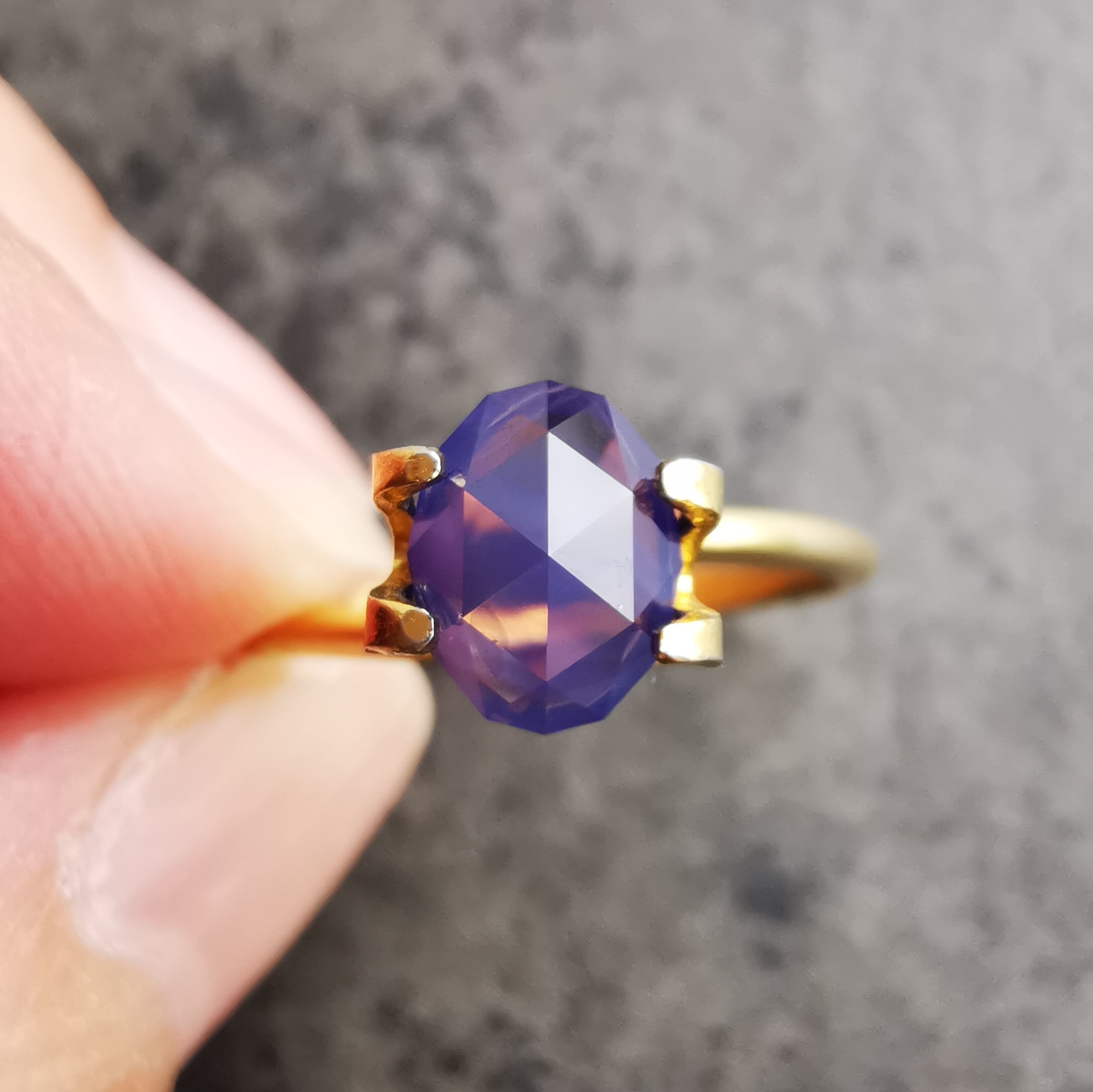 スモーキーで不透明なパープルに隠れたモーブピンクが、時おり垣間見えるサファイアです。