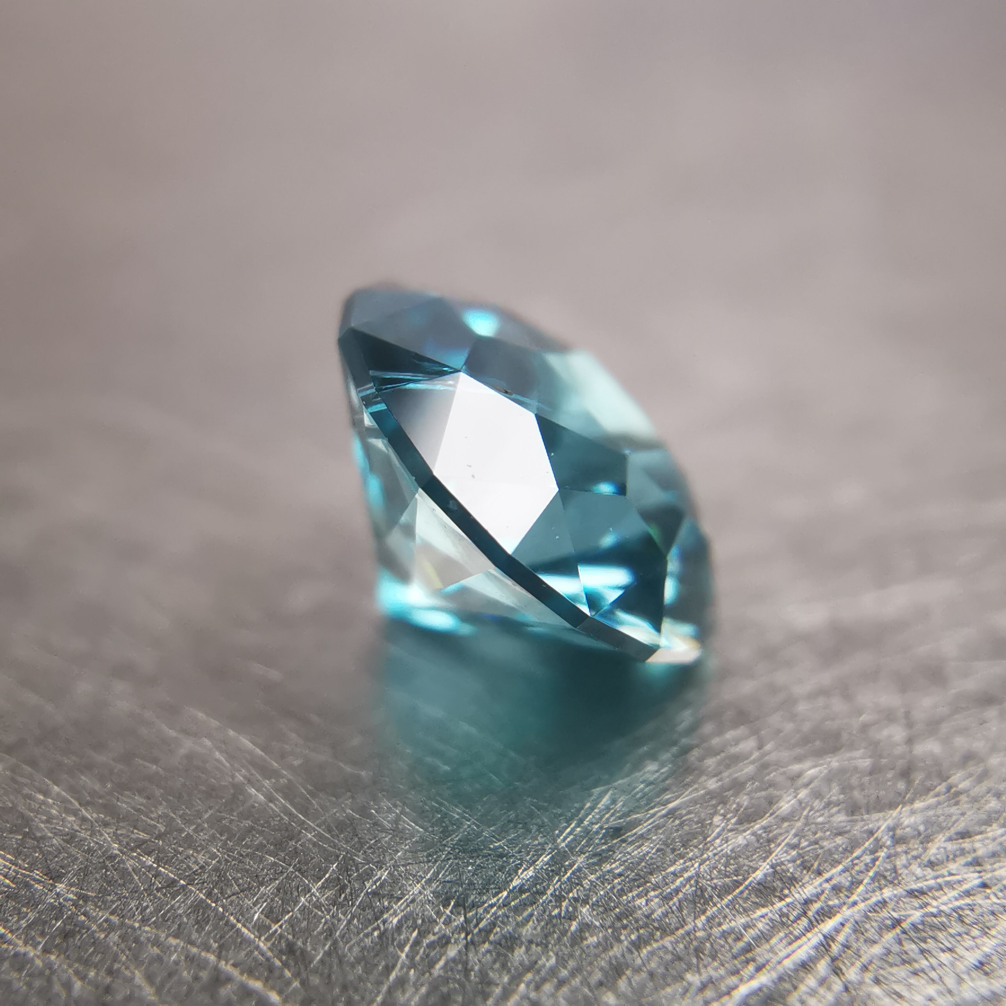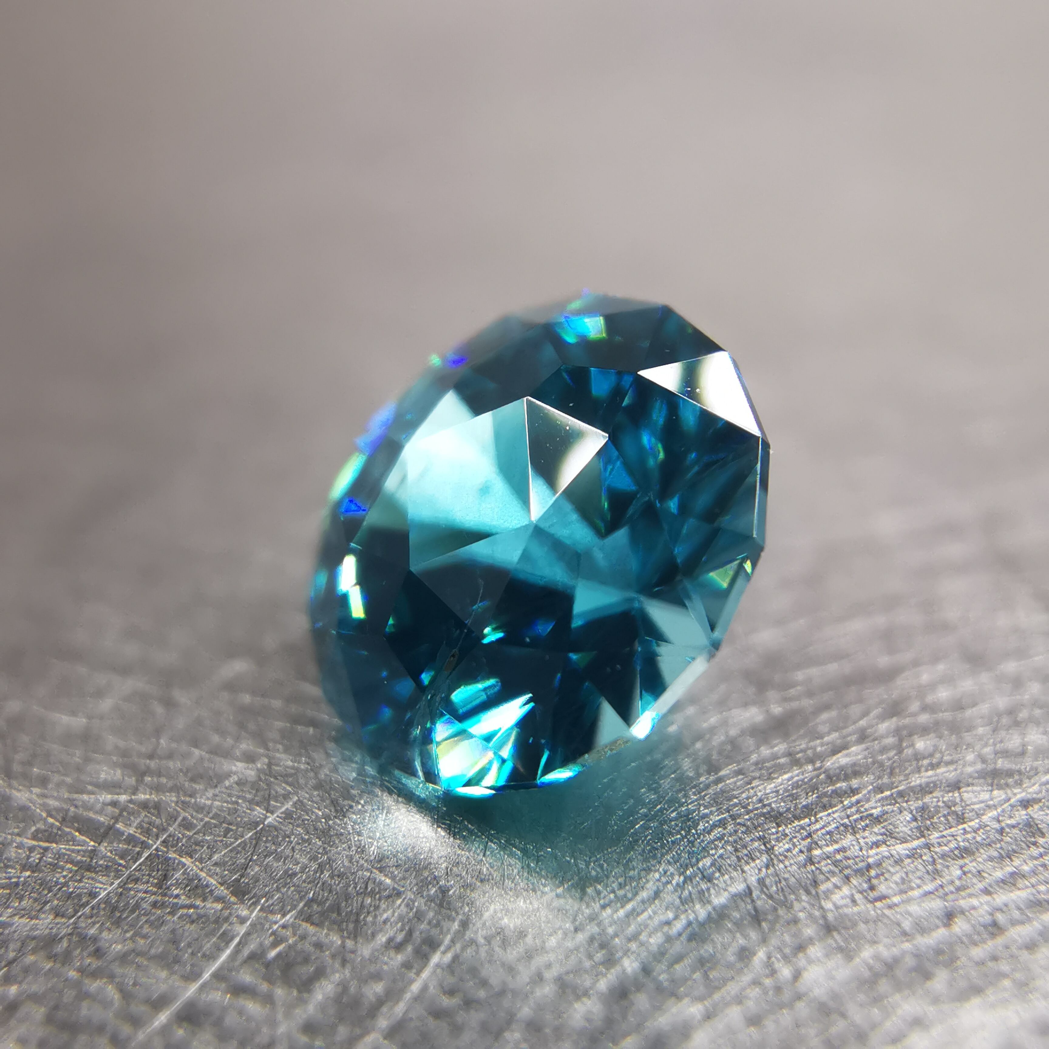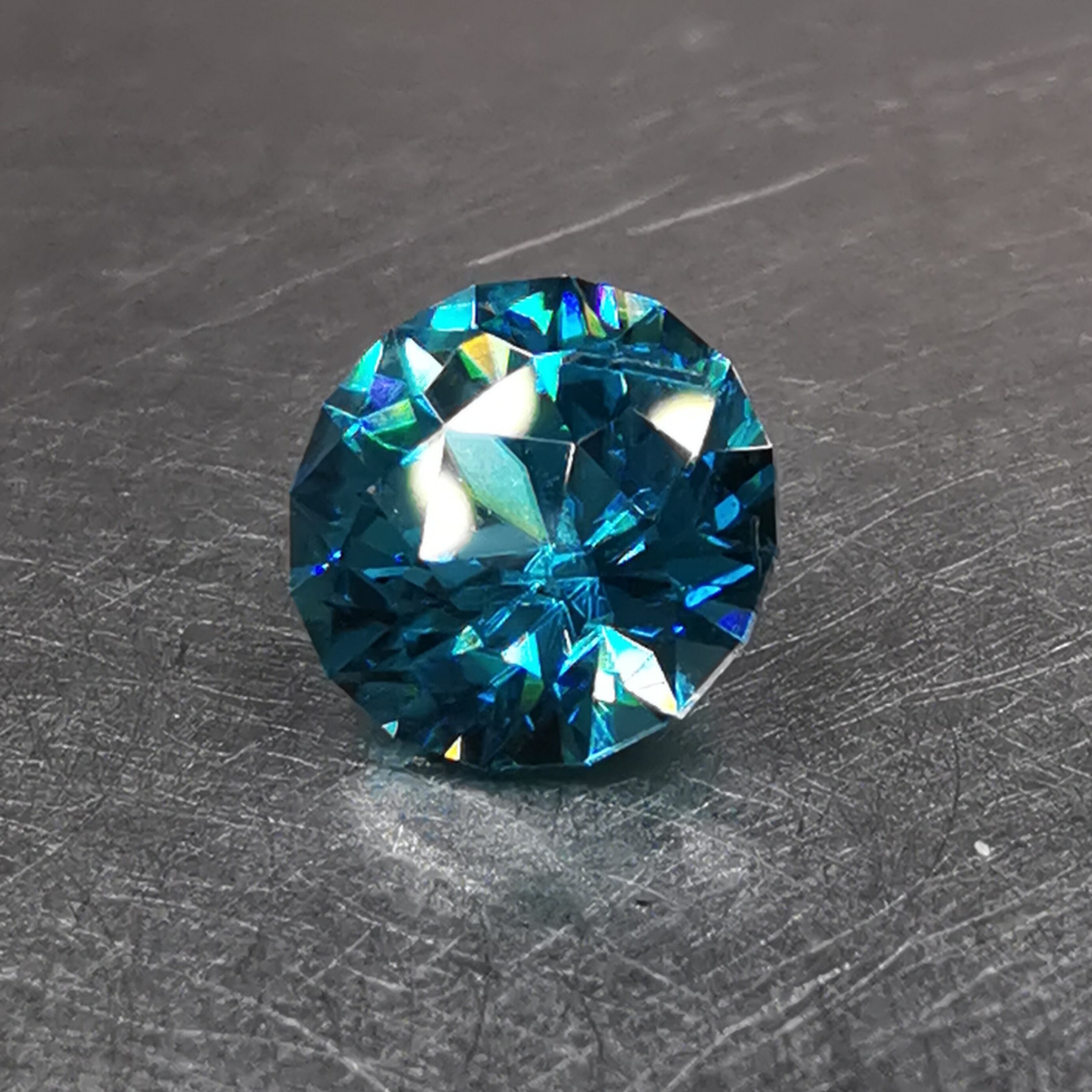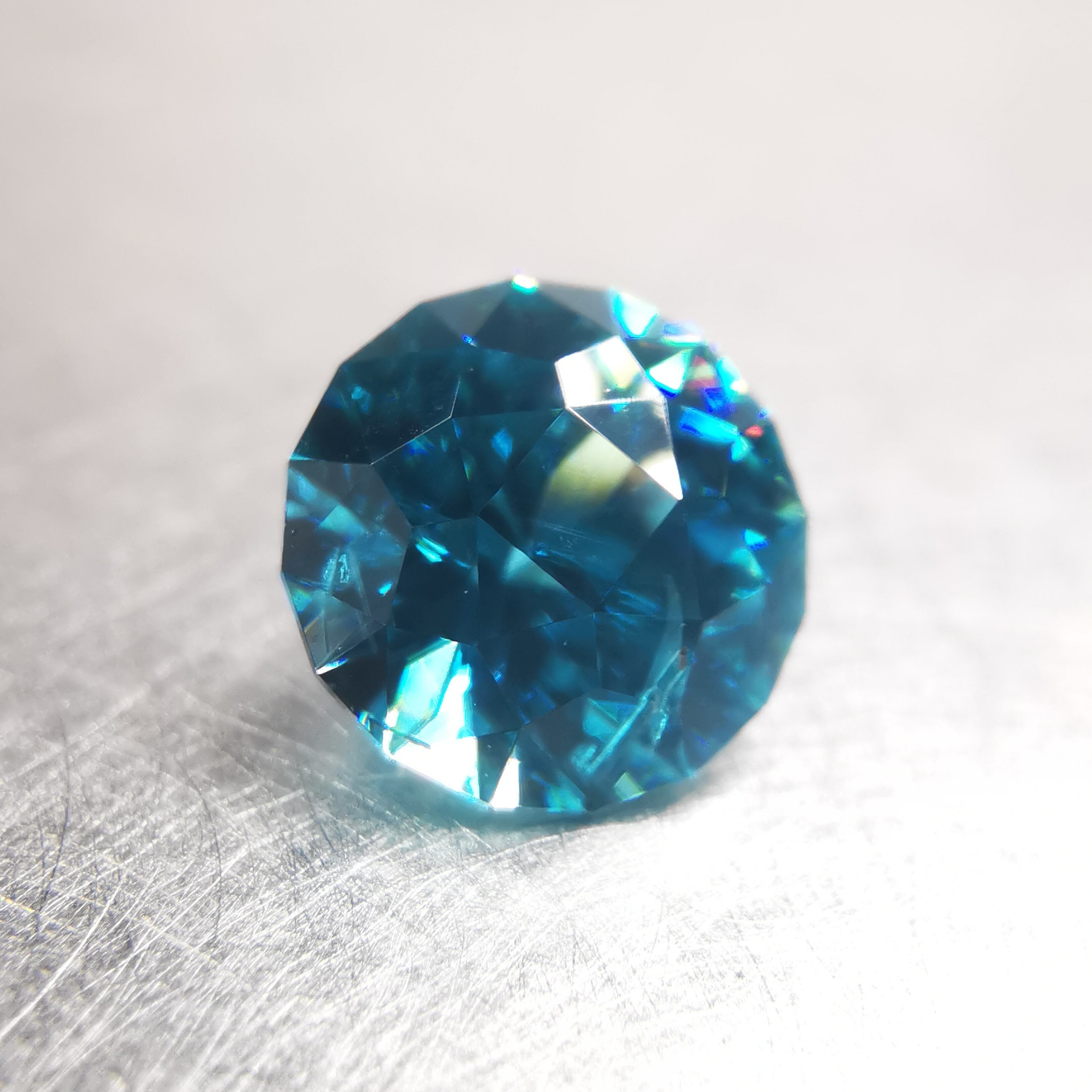 深い海の色、マリンブルーから、鮮やかなセルリアンブルーと、虹色のファイアがきらめくジルコンです。