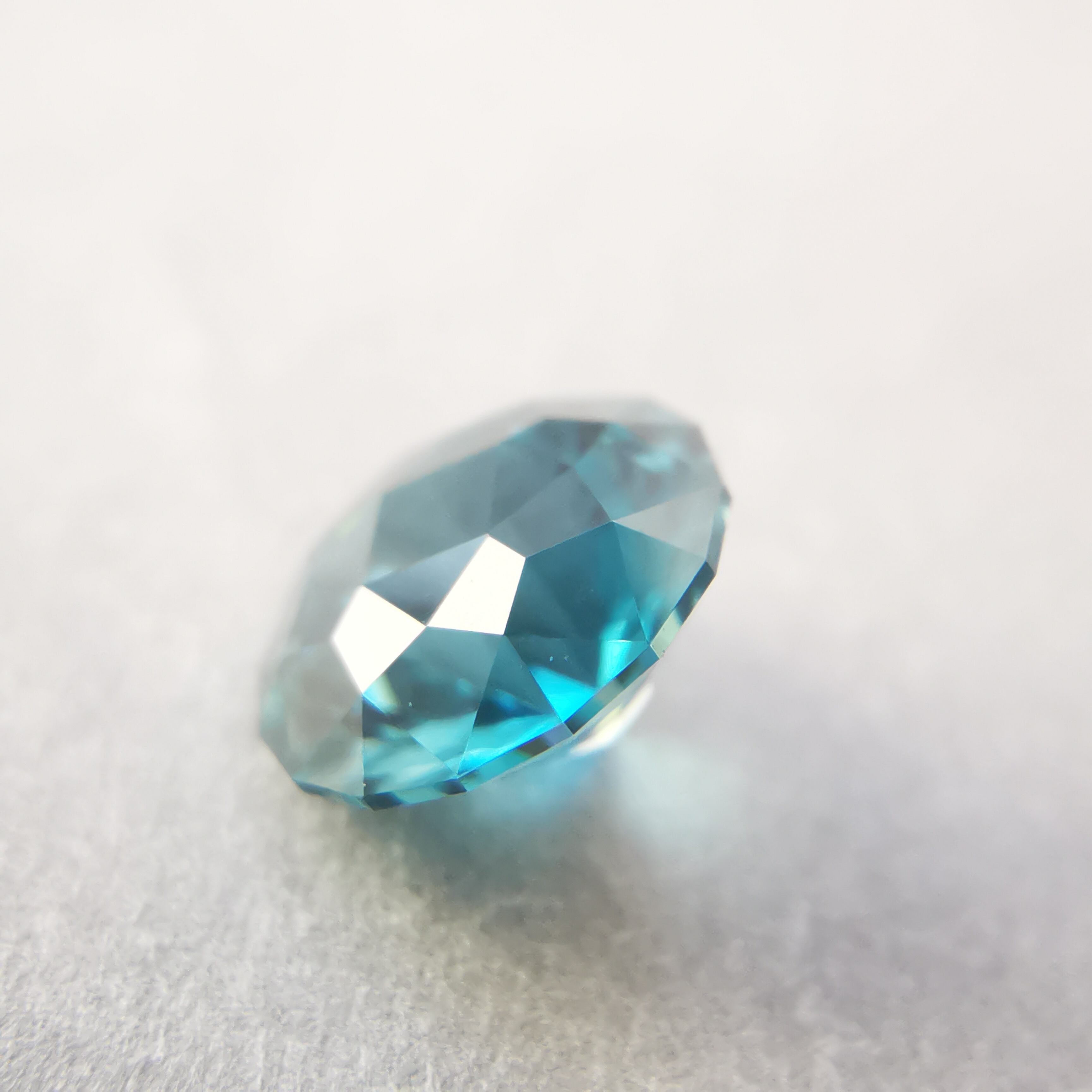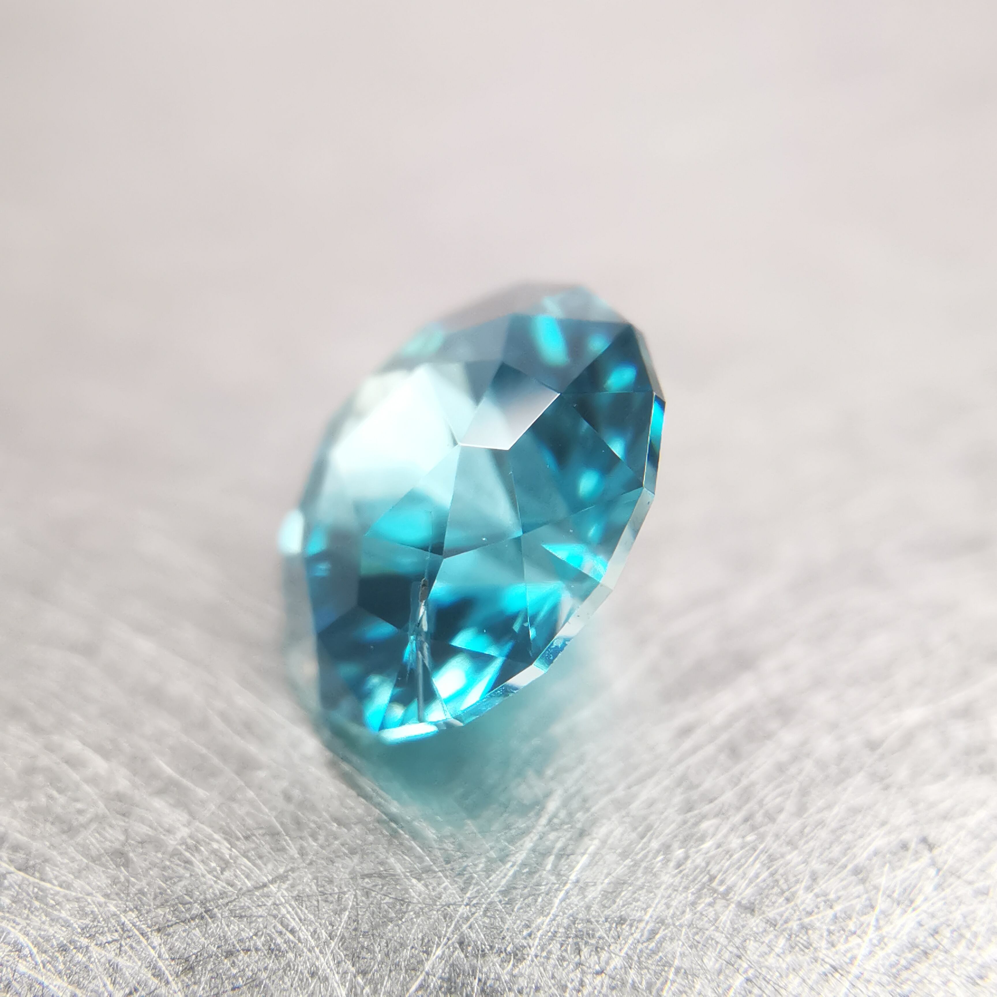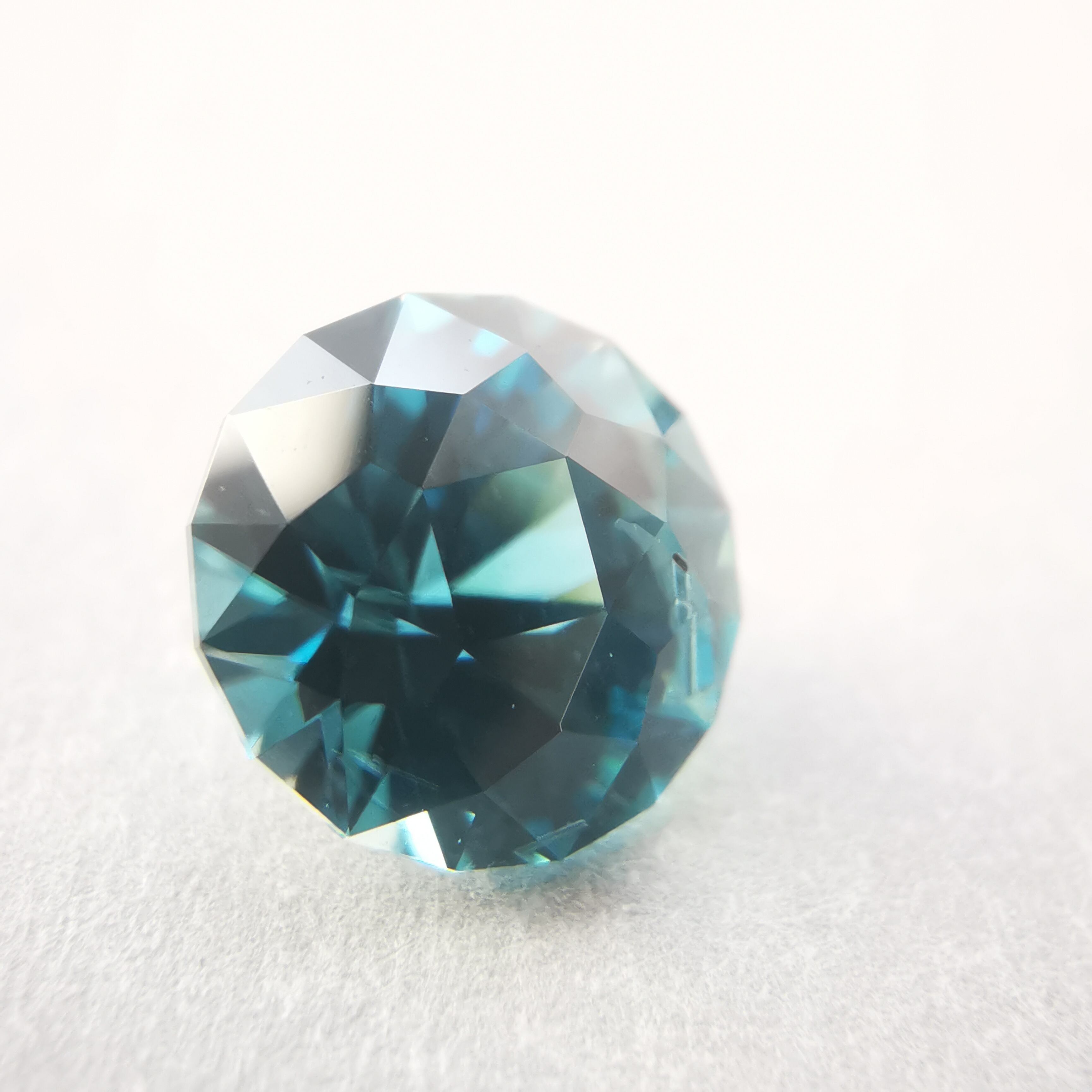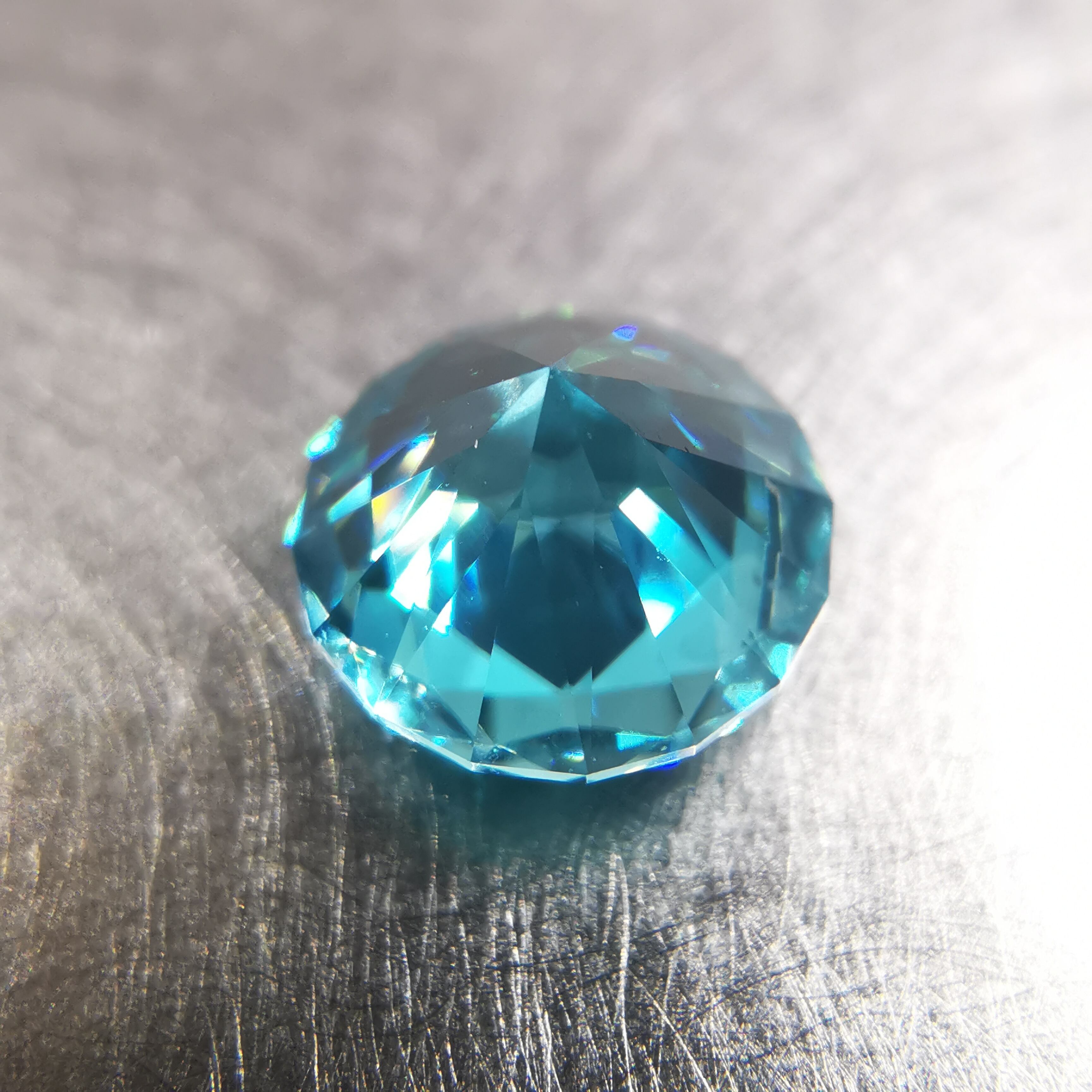 深い海の色、マリンブルーから、鮮やかなセルリアンブルーと、虹色のファイアがきらめくジルコンです。