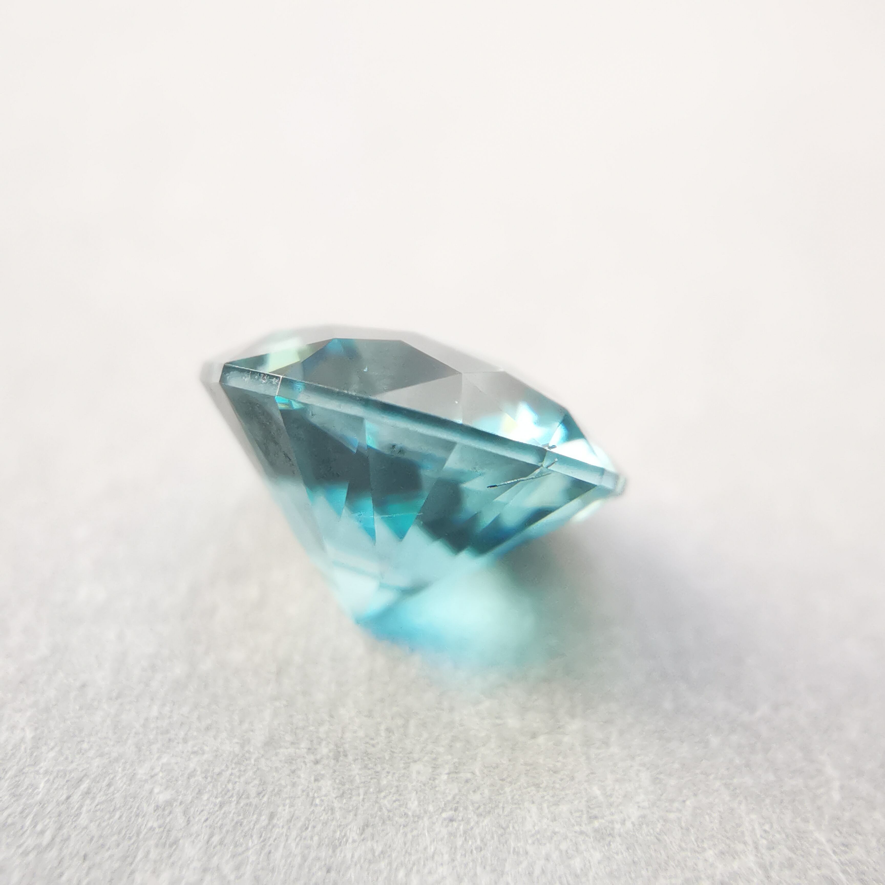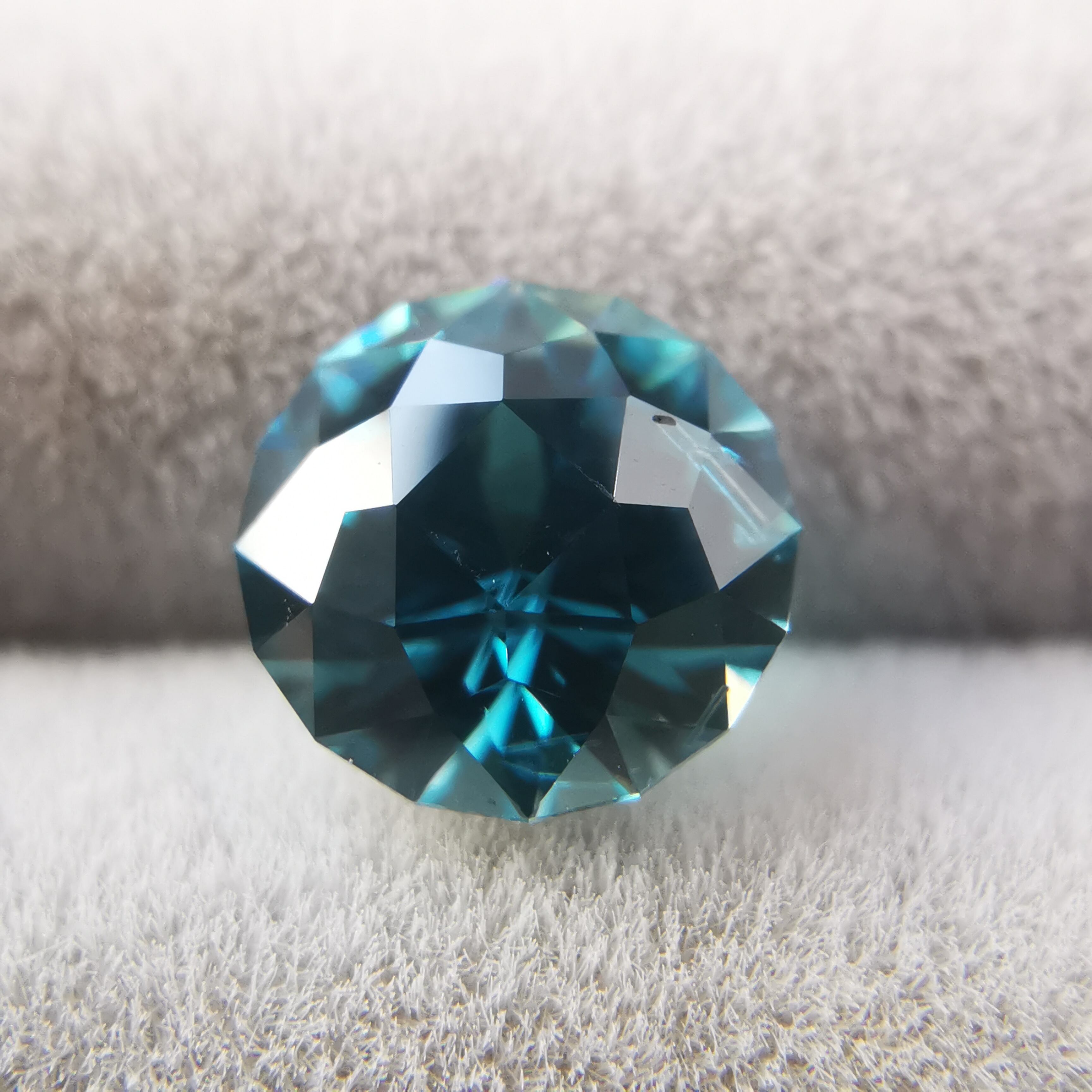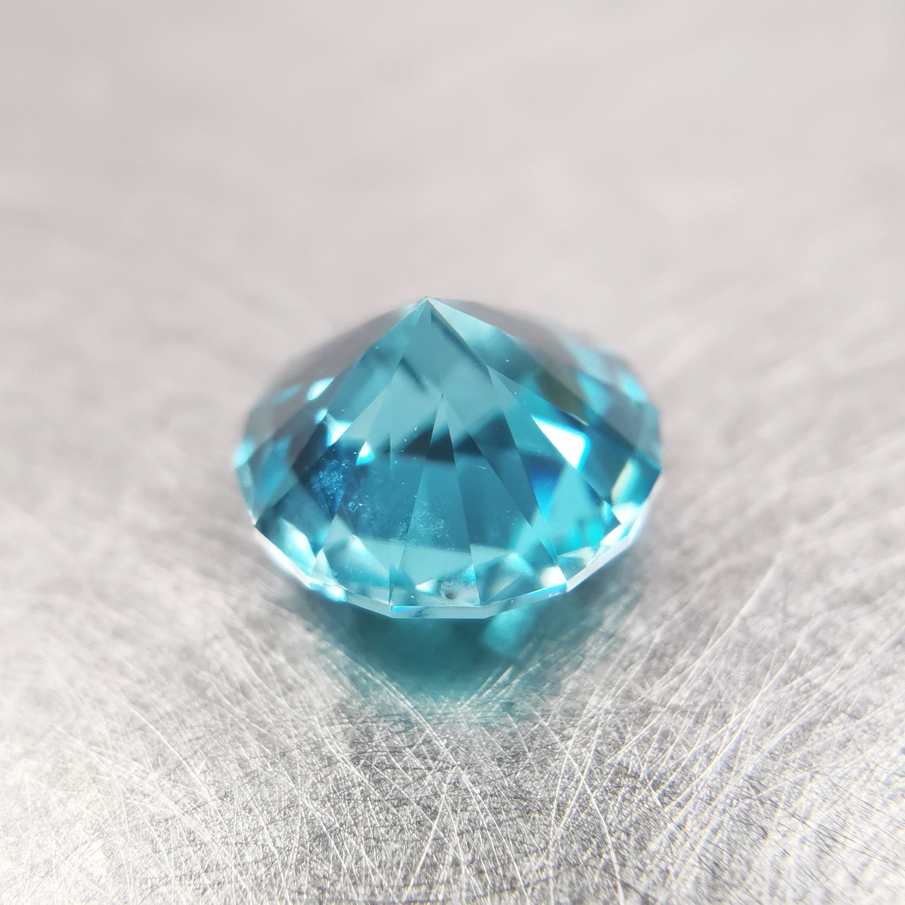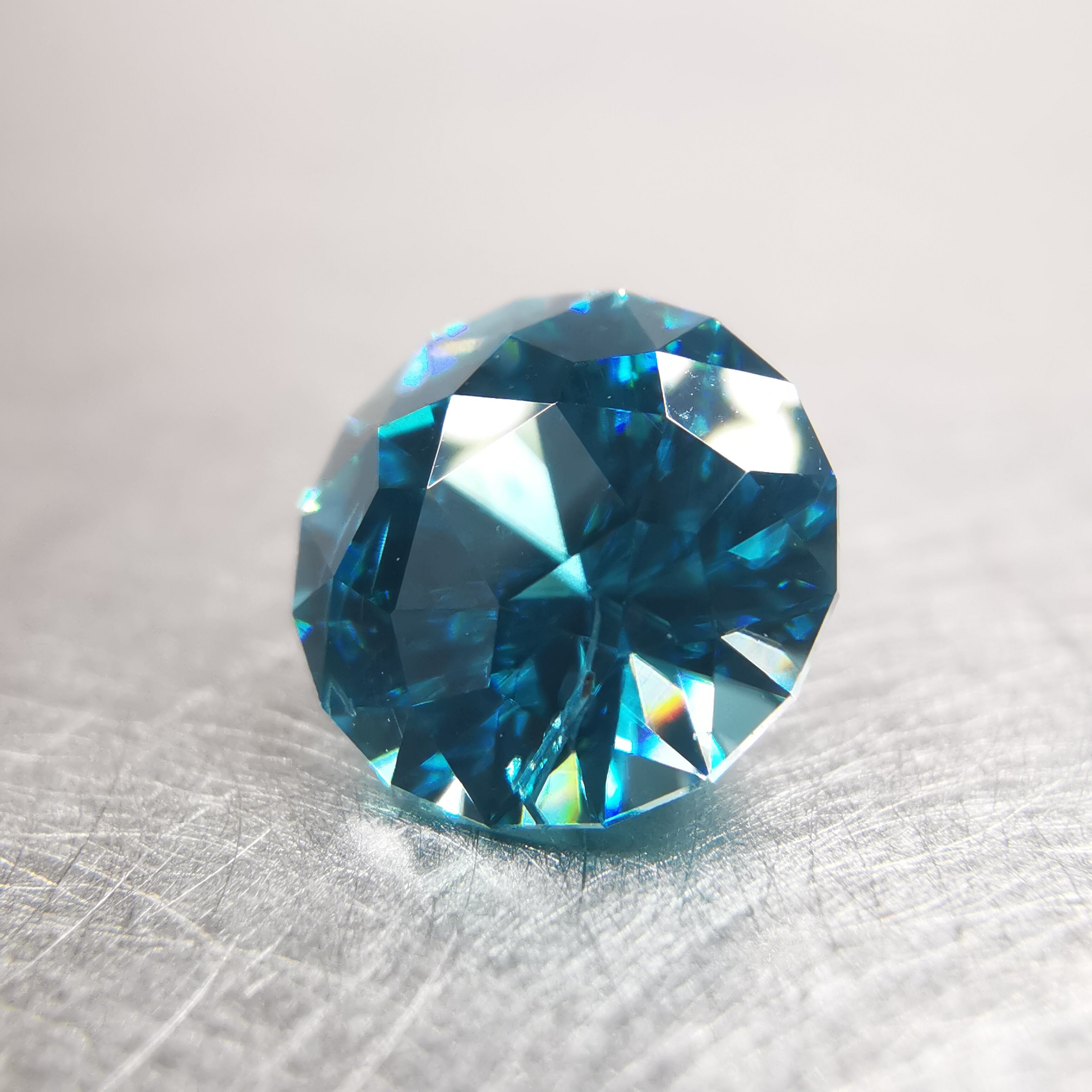 深い海の色、マリンブルーから、鮮やかなセルリアンブルーと、虹色のファイアがきらめくジルコンです。