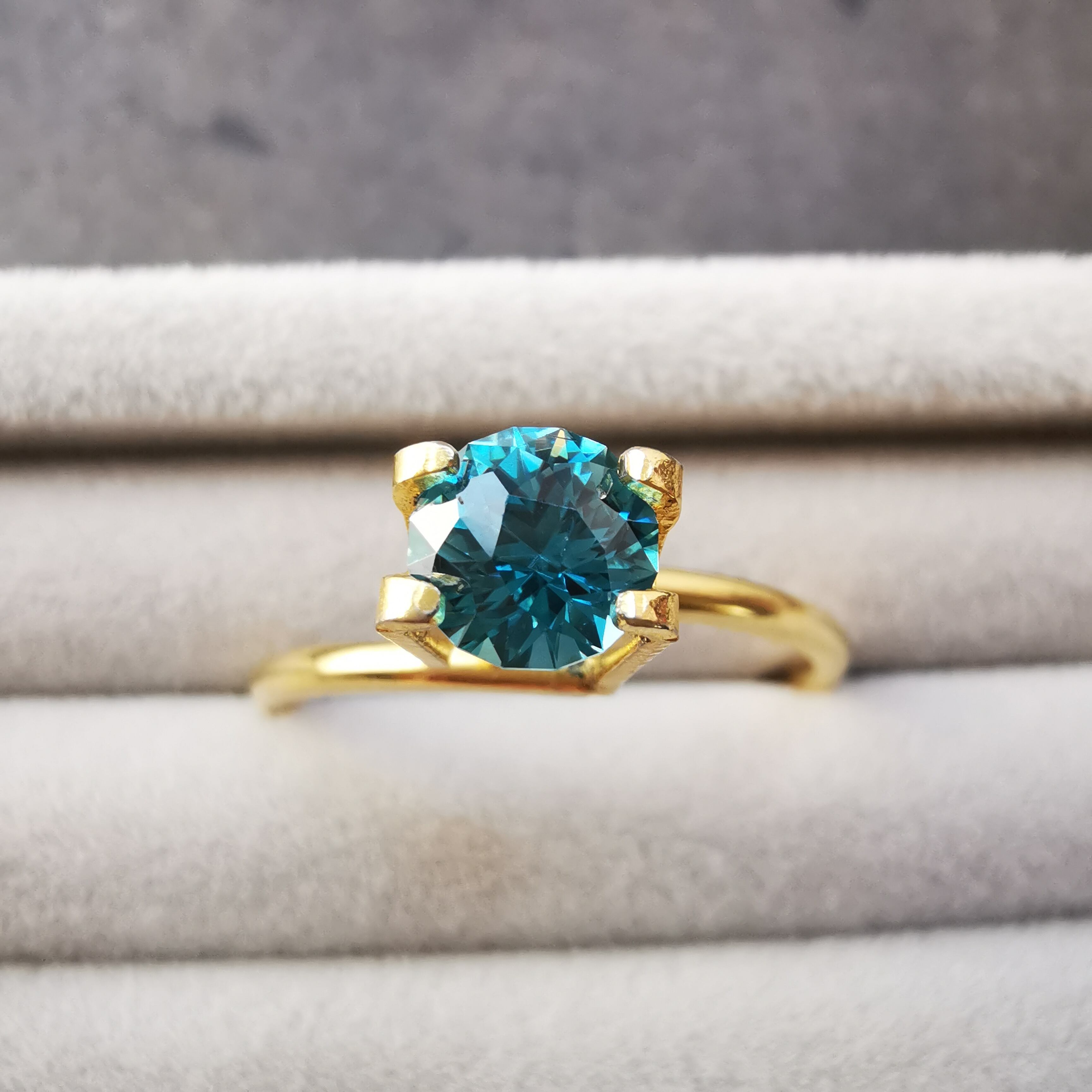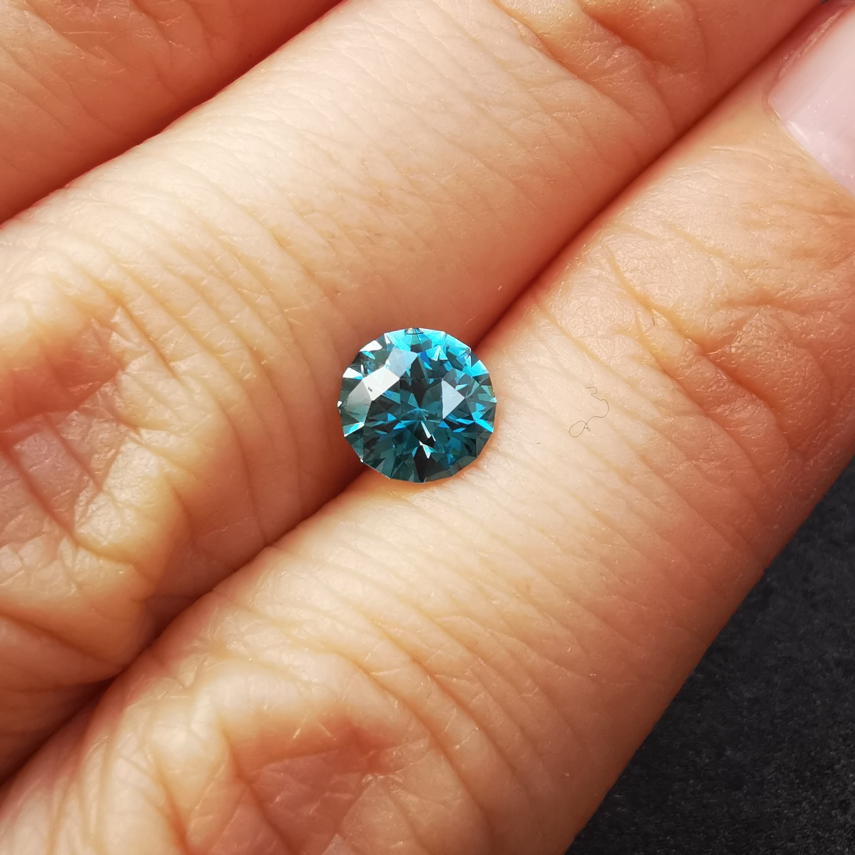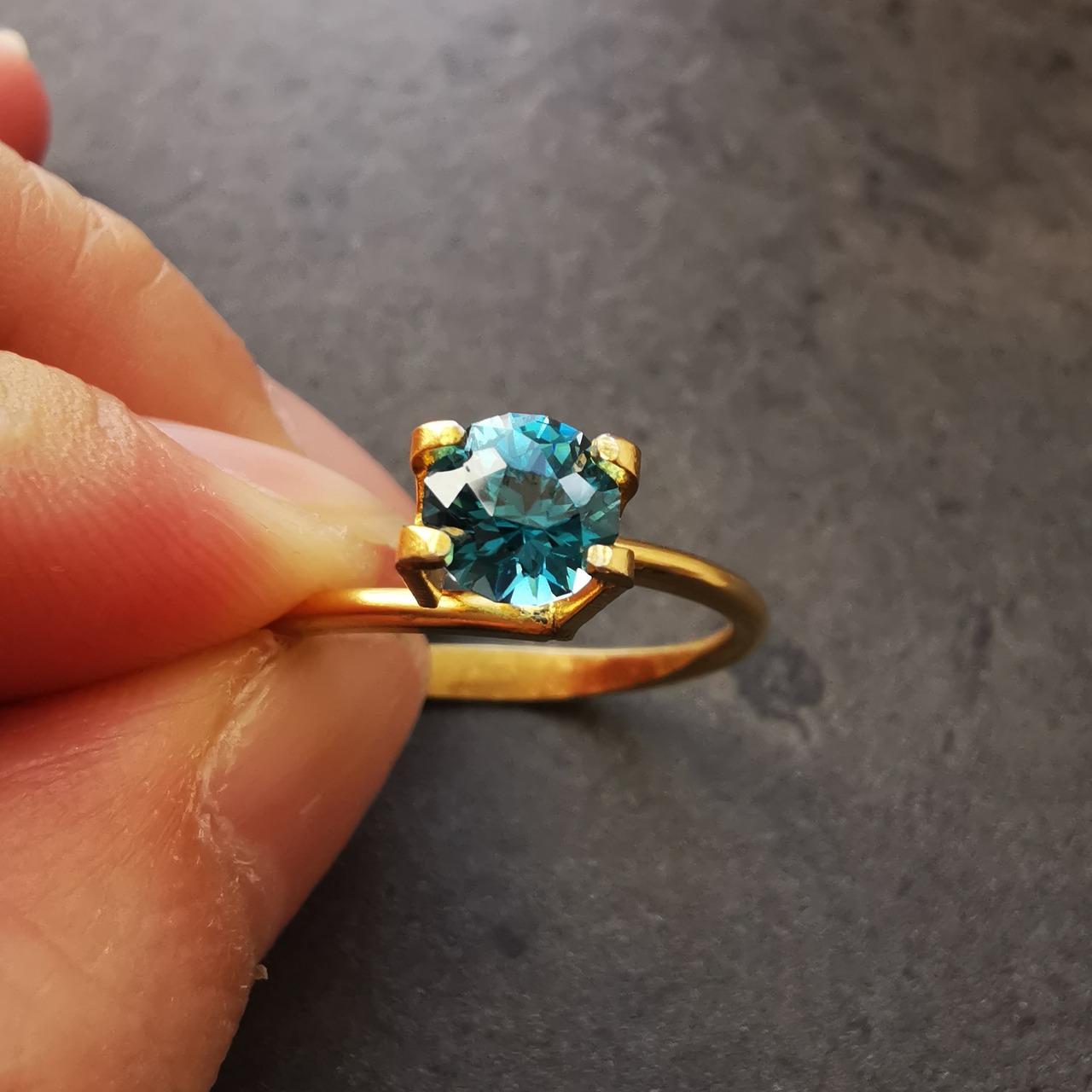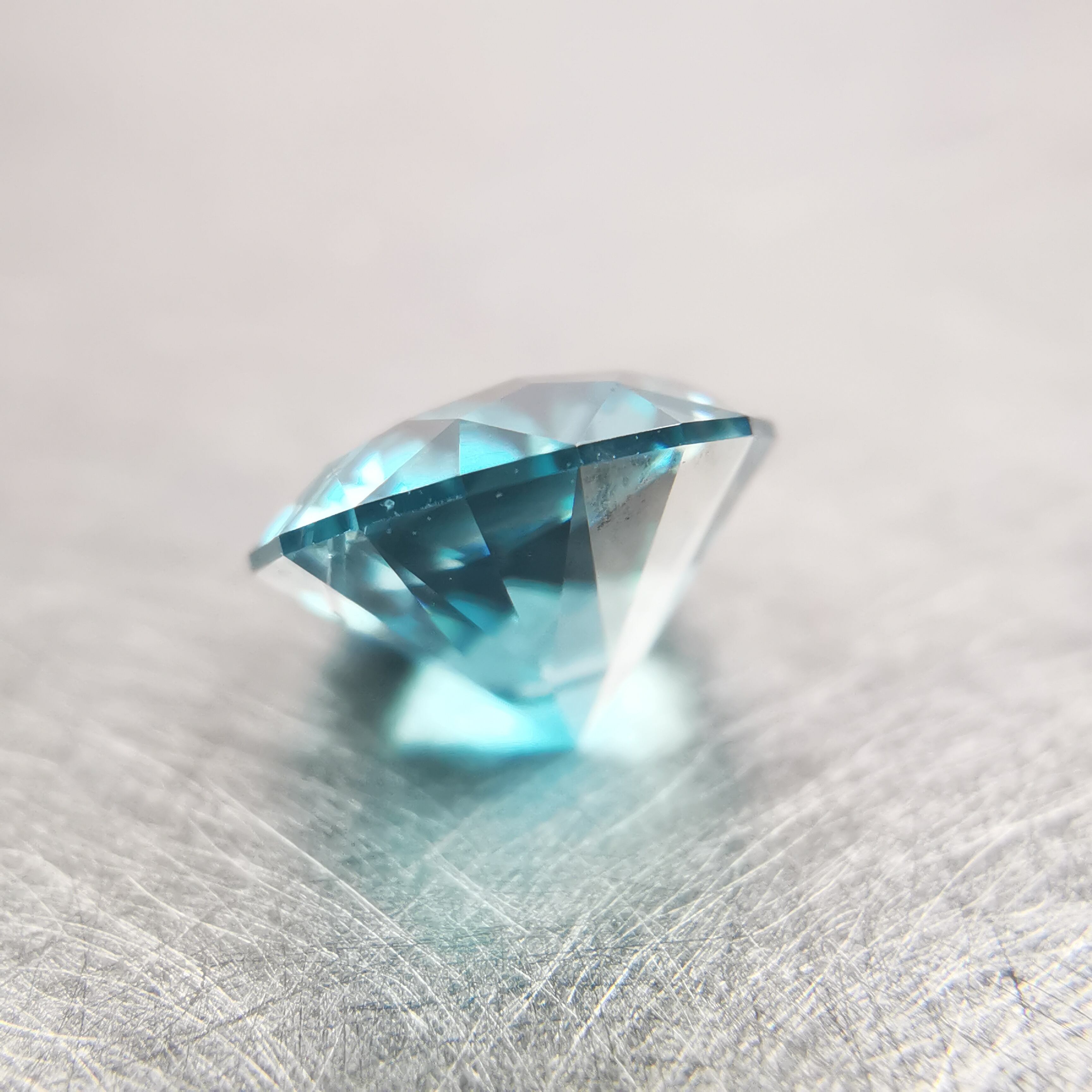 深い海の色、マリンブルーから、鮮やかなセルリアンブルーと、虹色のファイアがきらめくジルコンです。