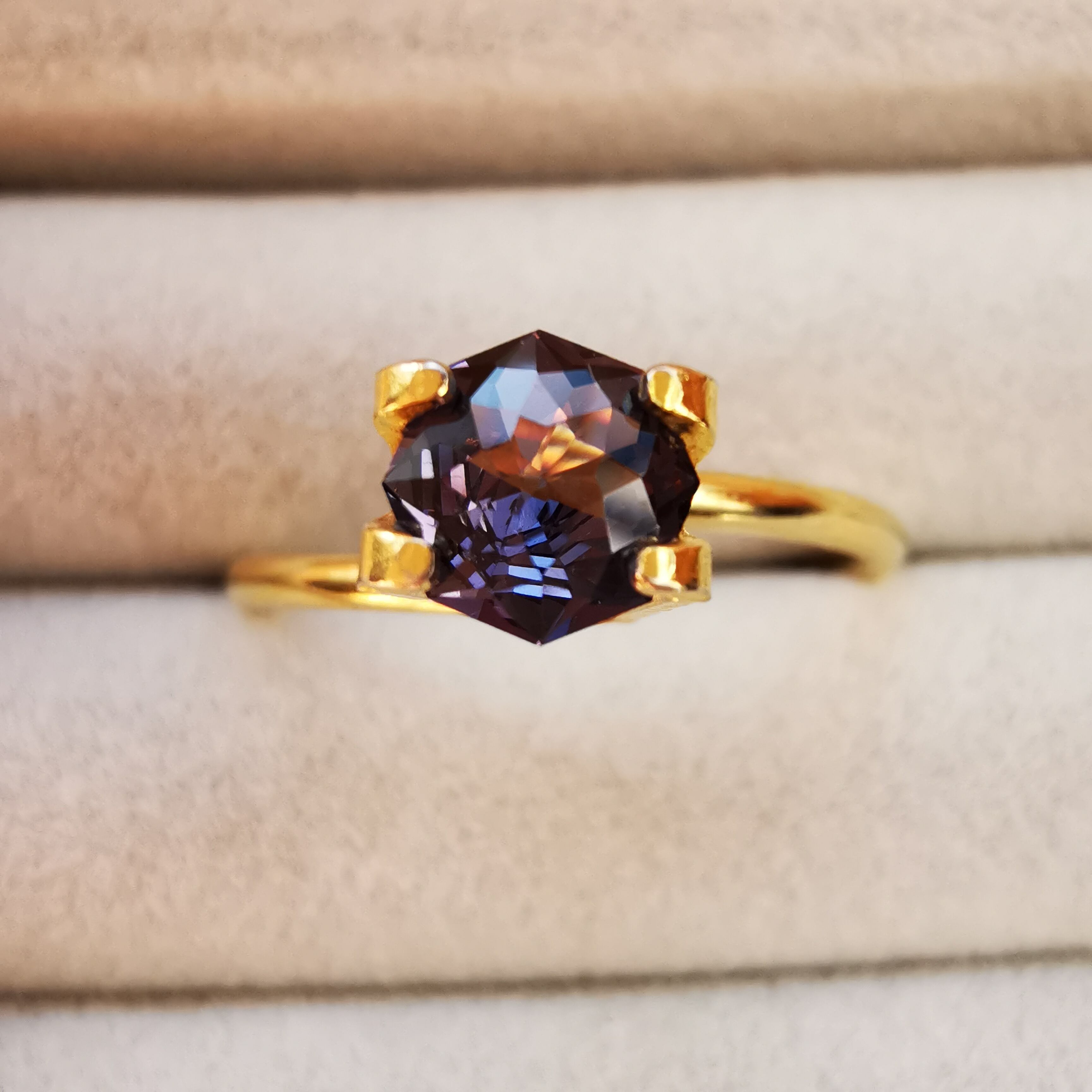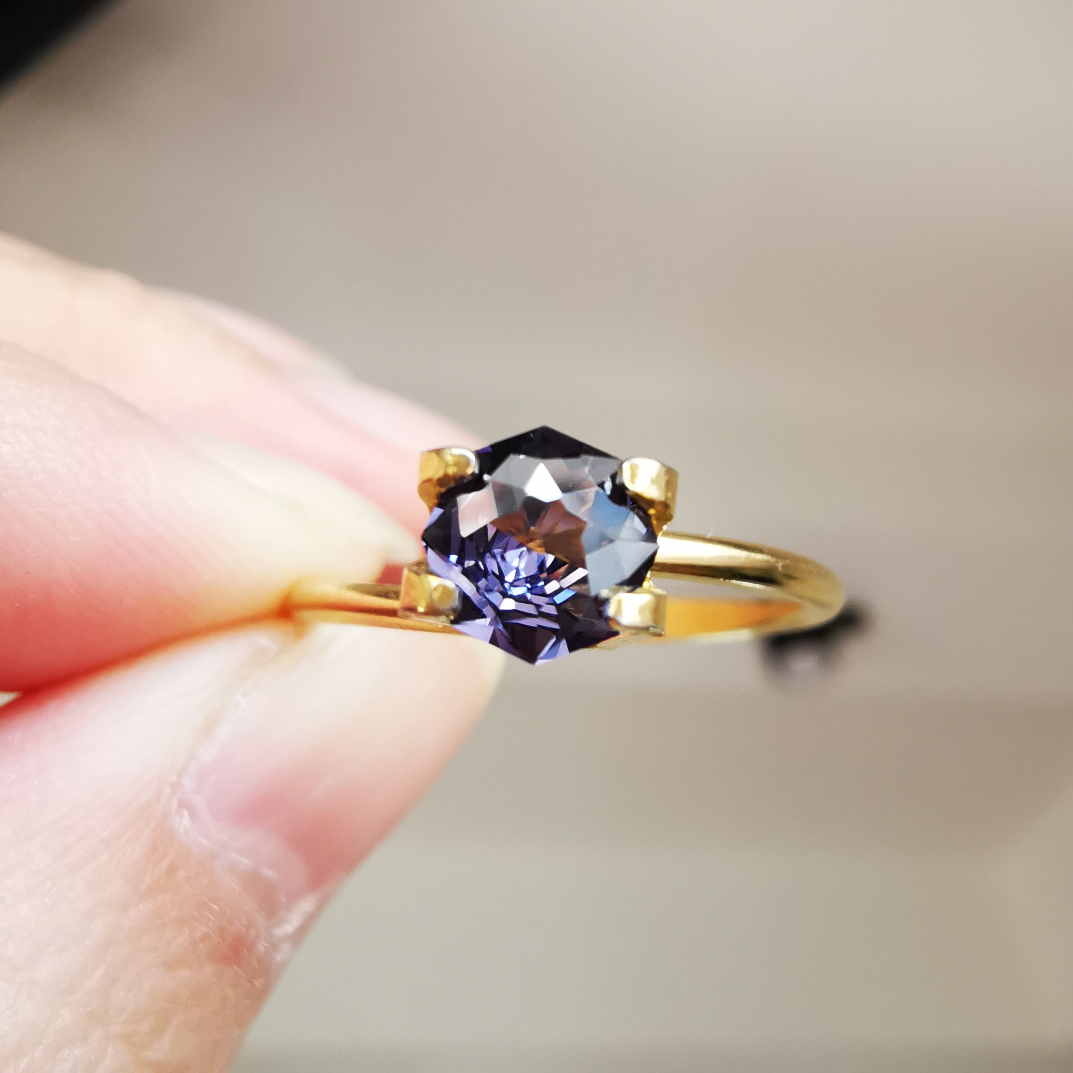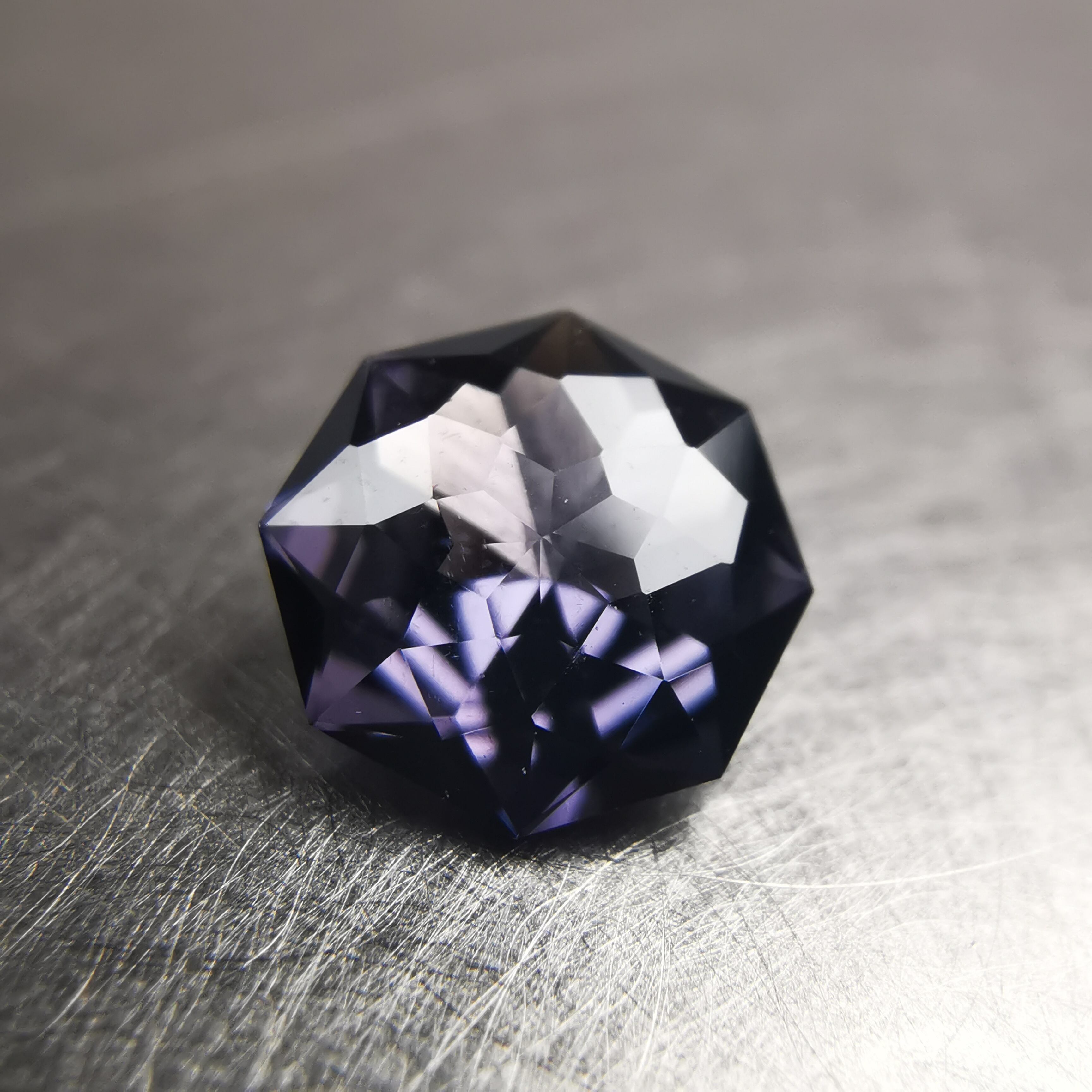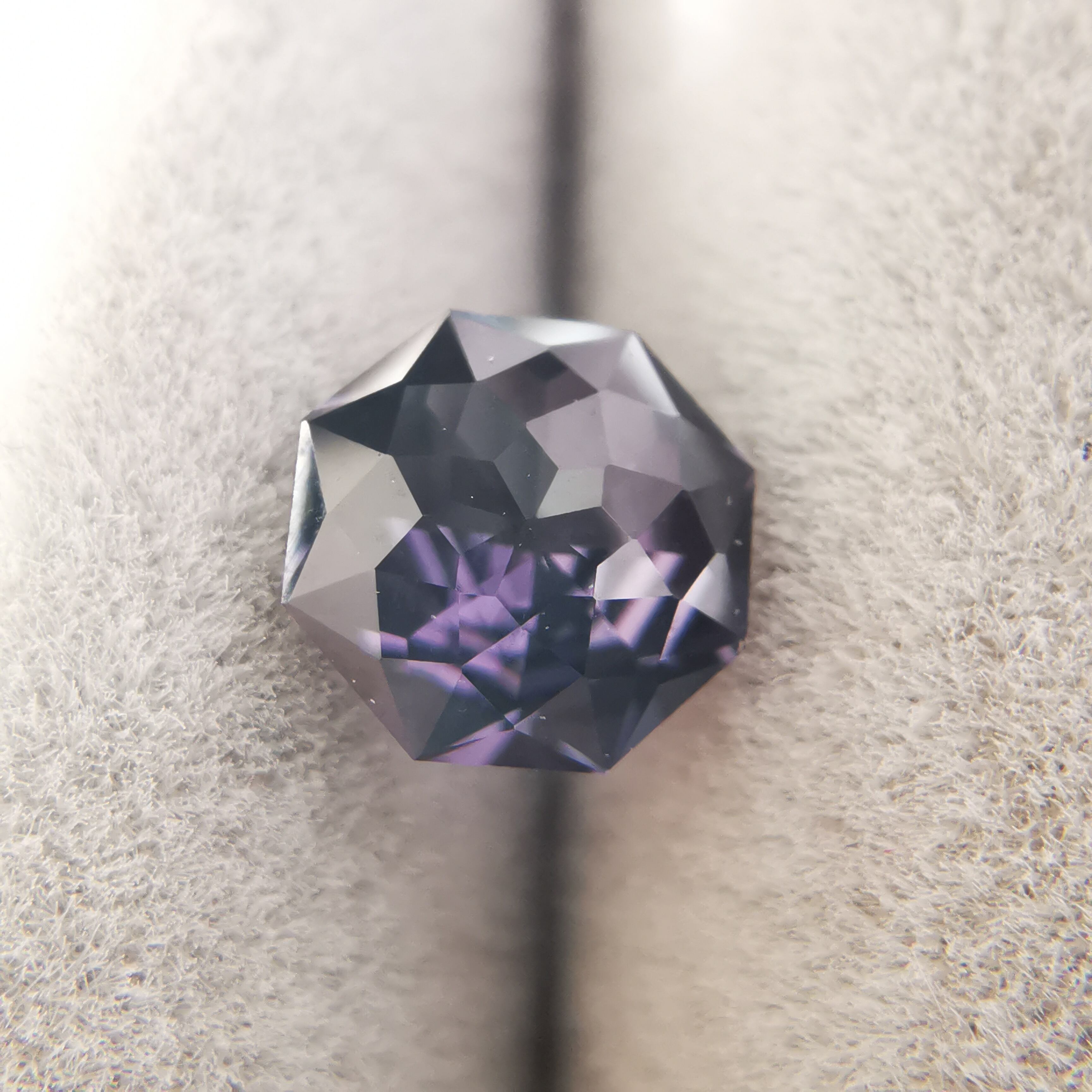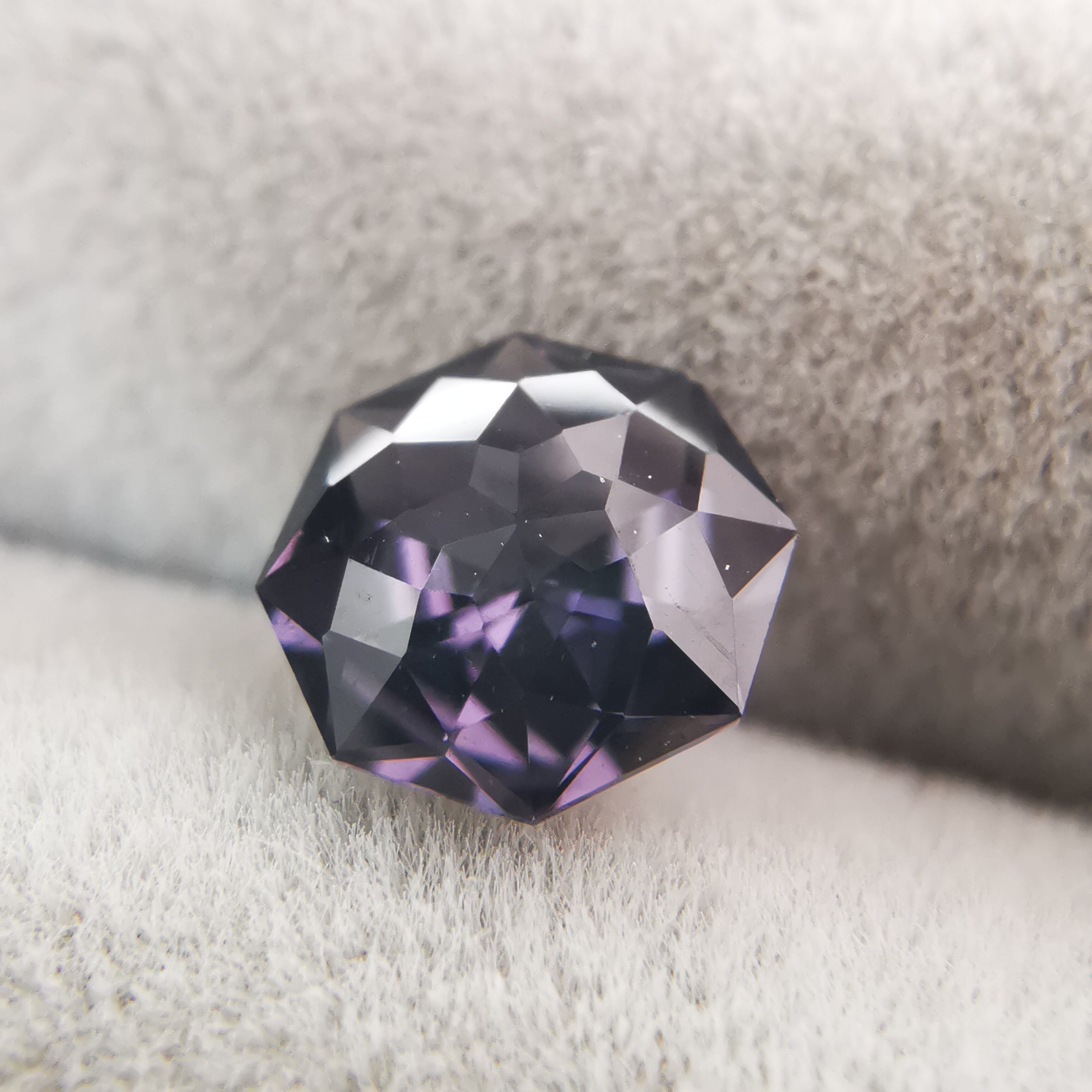 スピネルらしいもモーブカラーのきらめきが、鋭く冴えわたります。