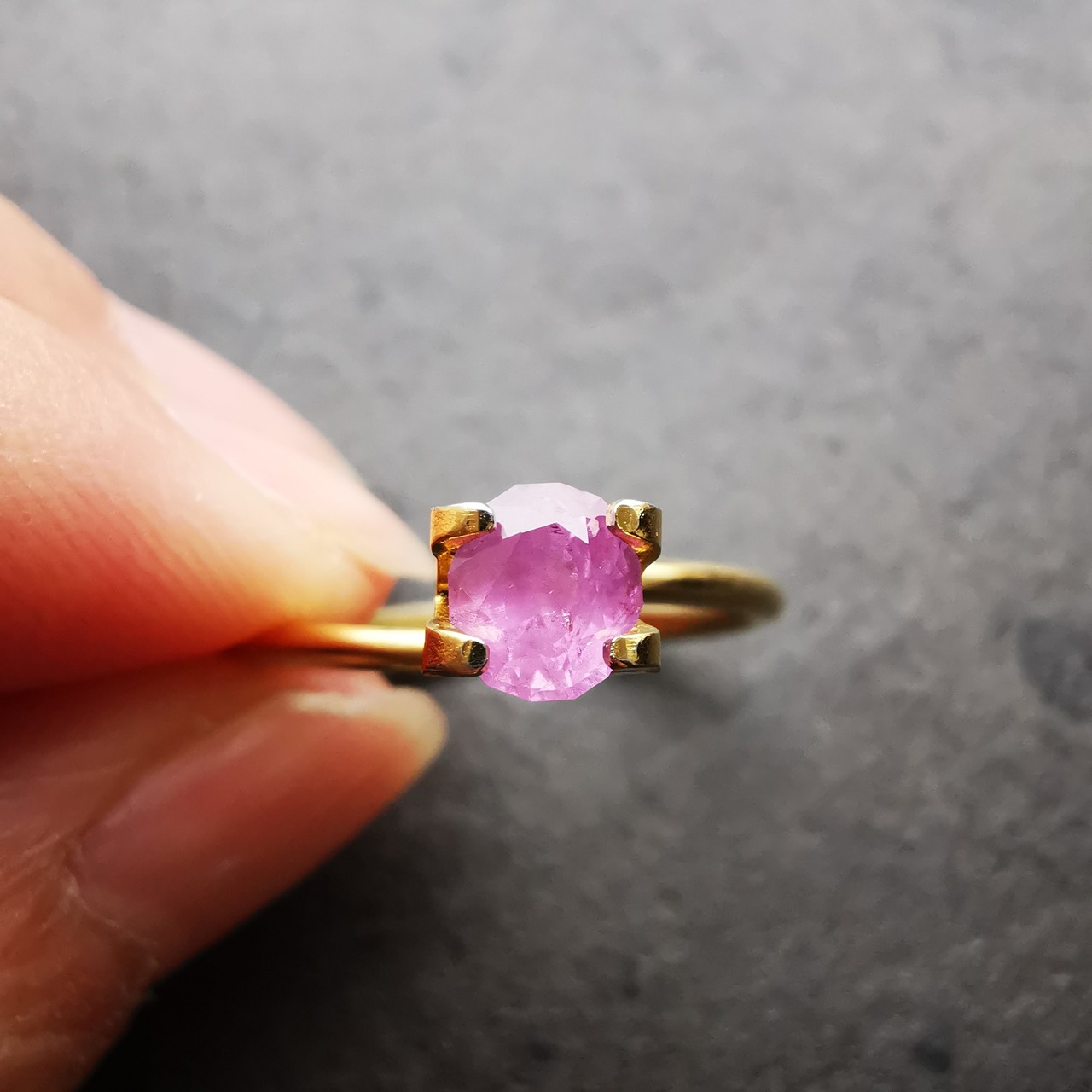 オペラモーブと言われる、やわらかなパープルピンクのサファイアです。